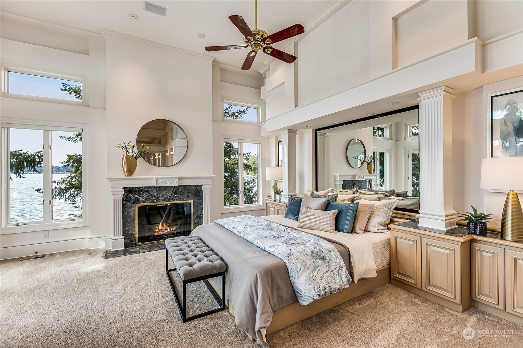 A contemporary icon on the shores of East Lake Sammamish, situated prominently on a point surrounded by 104’ of picturesque waterfront. Nestled amidst nature’s embrace, this ultra-private estate offers a gated entry and breathtaking SW-exposure for stunning nightly sunsets. Inside, a masterful interplay of space and geometry converges to celebrate light and sweeping lake views. Bold architectural lines anchor volumes of space, inviting you to explore further. Embark on leisurely boating adventures from your dock and bask in the sun’s warm embrace from the lakeside terrace. Each day begins with a sense of serenity and wonder from the main floor primary suite. Complete with lower-level wine cellar, spa bath and lakeside jacuzzi. A sanctuary.