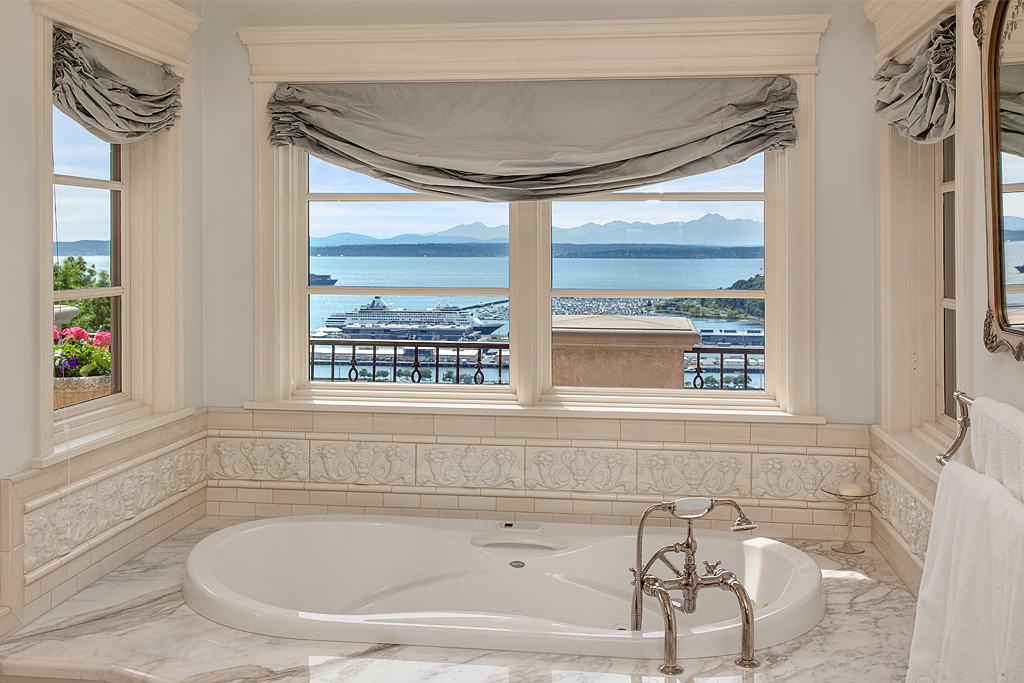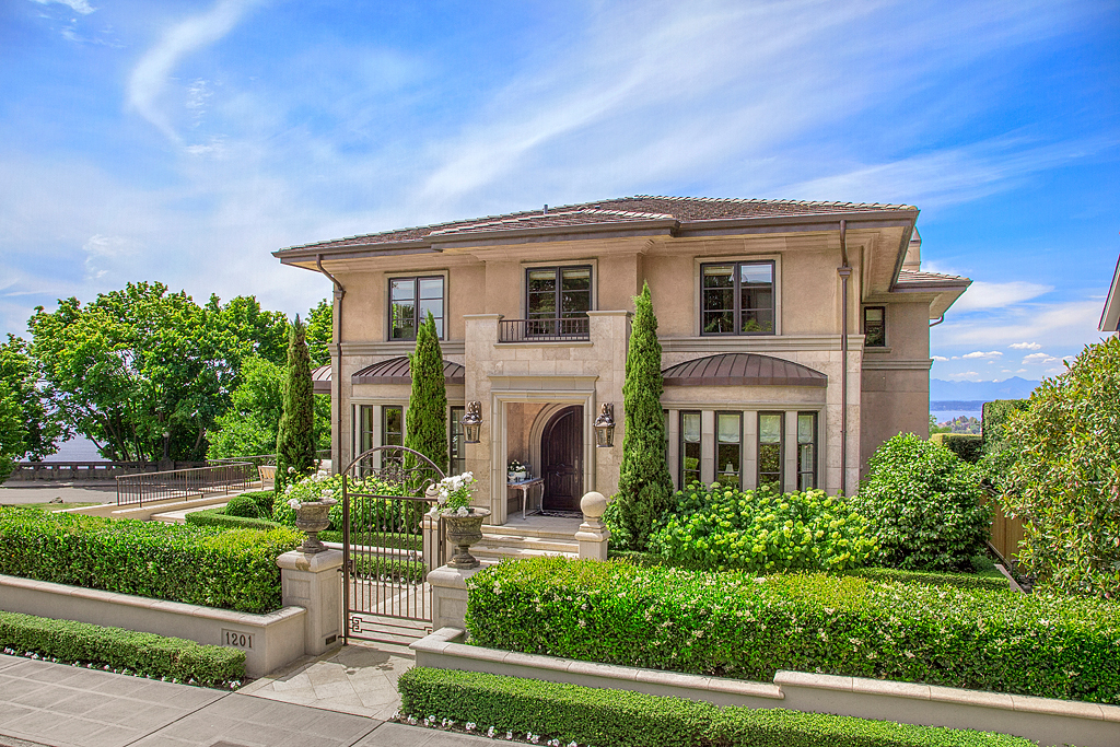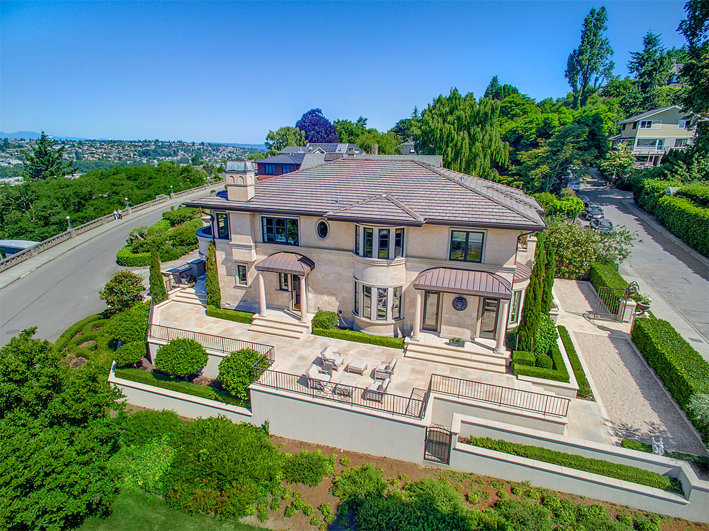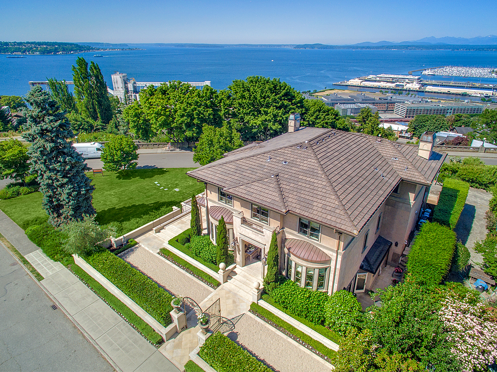 The timeless design of this home melds luxurious sophistication w/old world master craftsmanship that is rarely offered in residential construction, and is evocative of the beautiful villas found in Tuscany and the Mediterranean. Desirably located at the corner of Highland Dr and 7th Ave W w/stunning Western views of the Olympic Mountains, Puget Sound, and maritime activity w/Cruise Ship Terminal and Elliott Bay Marina below. Surrounded by City Parks, giving it privacy and a uniquely commanding presence!