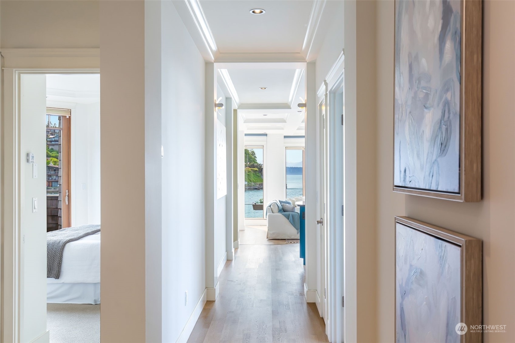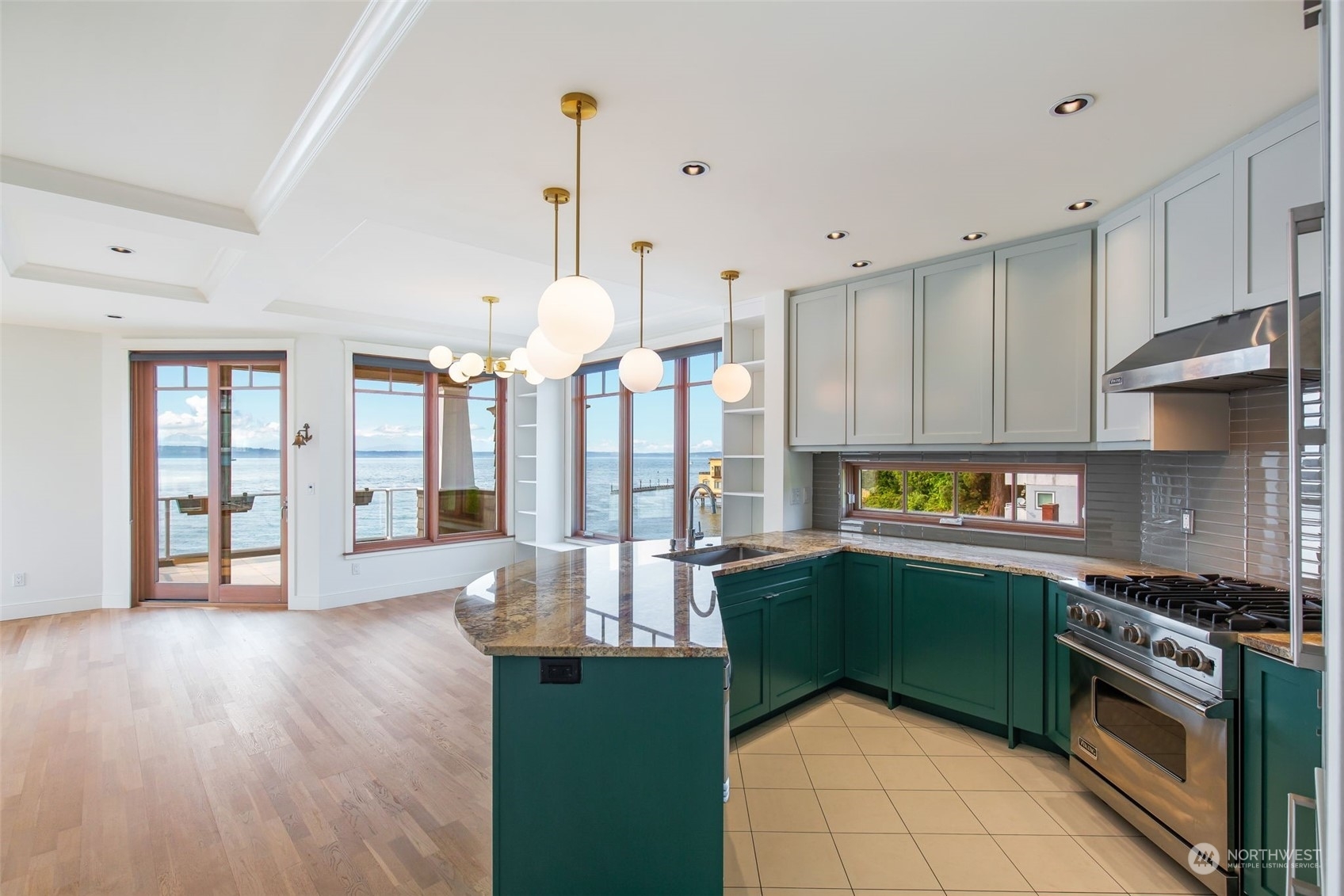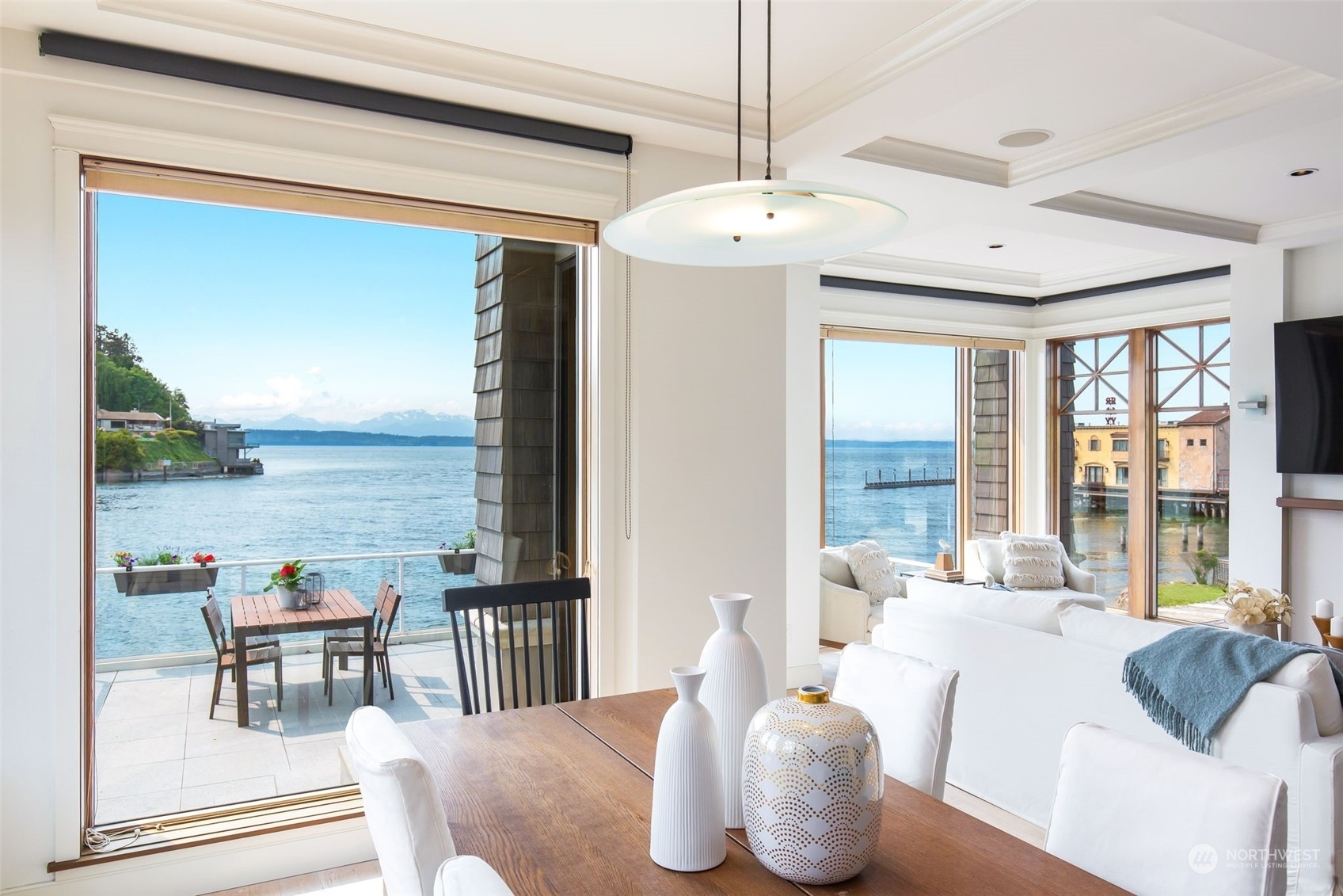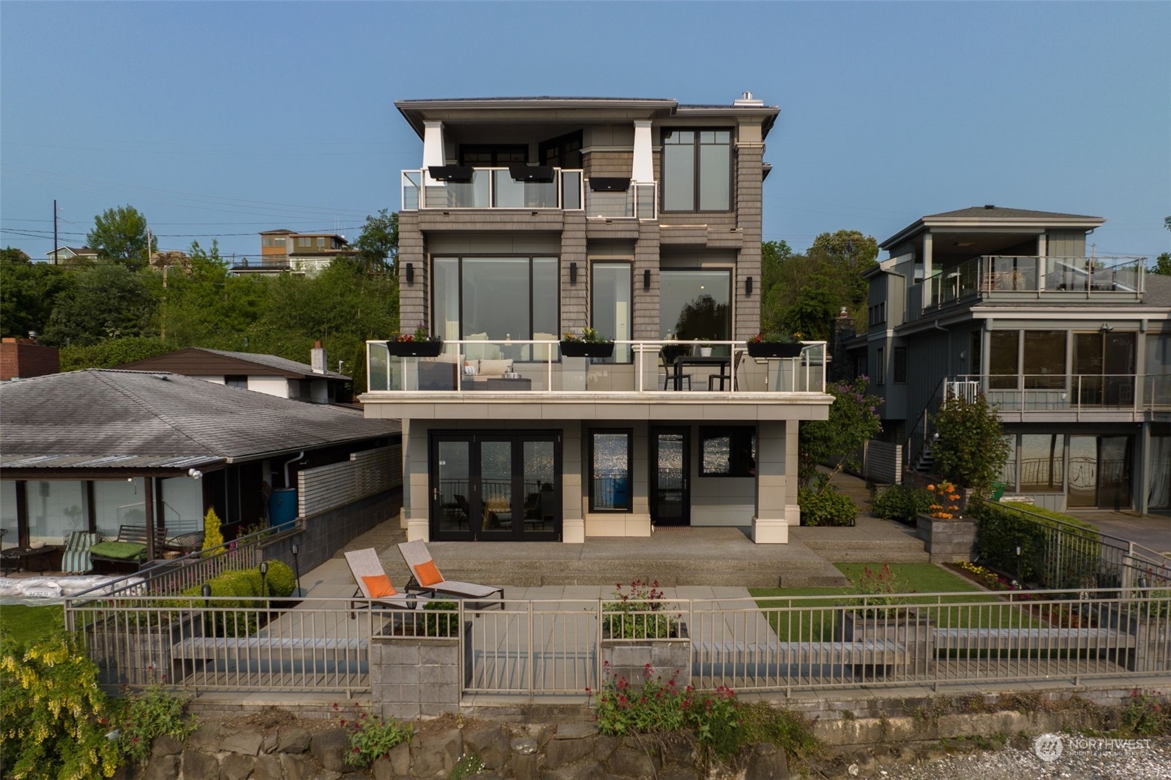 Spectacular opportunity to own a luxury 2010 waterfront property on Seaview. Designed as 2 or 3 residences; imagine multigenerational housing, CoHousing with a group of friends, or an excellent cashflow property. 2 private elevators allow 3 distinct barrier free living levels. Along the shoreline of the saltwater path to the Locks, you can paddle board or sea-gaze to your hearts content. Direct Water views and indoor/outdoor living from every floor; main level 2 bed + den has a party sized patio and currently connects to the lower level for a 2nd living/party room and guest bed suite. Upper level 2 bed + den penthouse has the 'crow’s nest' top deck and direct elevator access. 4 car garage plus off street parking. Very quality construction.