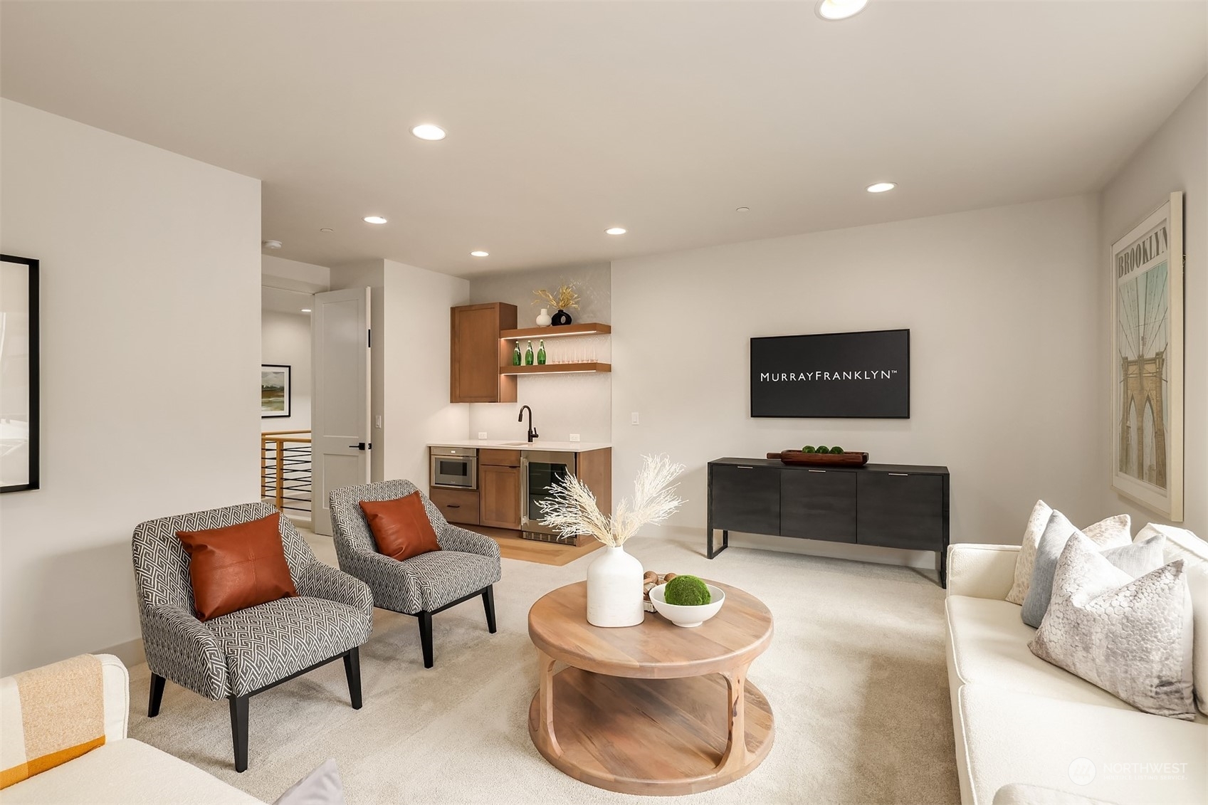 Stunning new construction by local renowned builder Murray Franklyn! Spacious home featuring family room w/soaring ceilings & abundant windows for natural light. Boasting 5 BD & 4.5 BA, including main level Den & Guest Suite w/an attached ensuite & covered porch. Exquisite kitchen equipped w/SS appliances, large island, mini fridge, & working pantry w/additional sink. Dining area w/beams & open-to-above ceiling. Hardwood flooring & plush carpet run throughout. Covered patio w/fireplace is perfect for entertaining. The second level includes a stunning Primary Bedroom w/5-piece ensuite & spacious walk-in closet. Three additional bedrooms; two w/jack & jill bathroom & one with its own ensuite. Large Rec Room, study area, & laundry facilities.