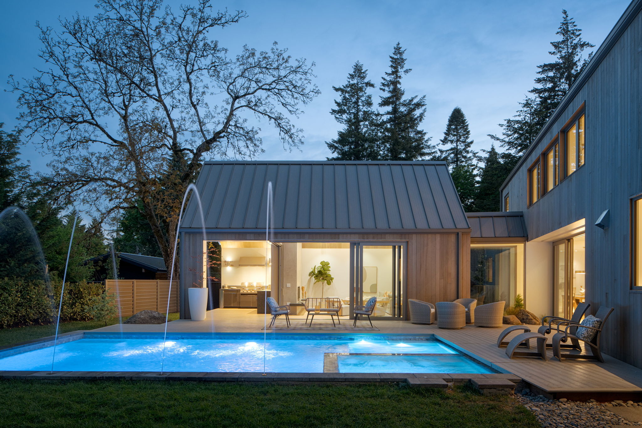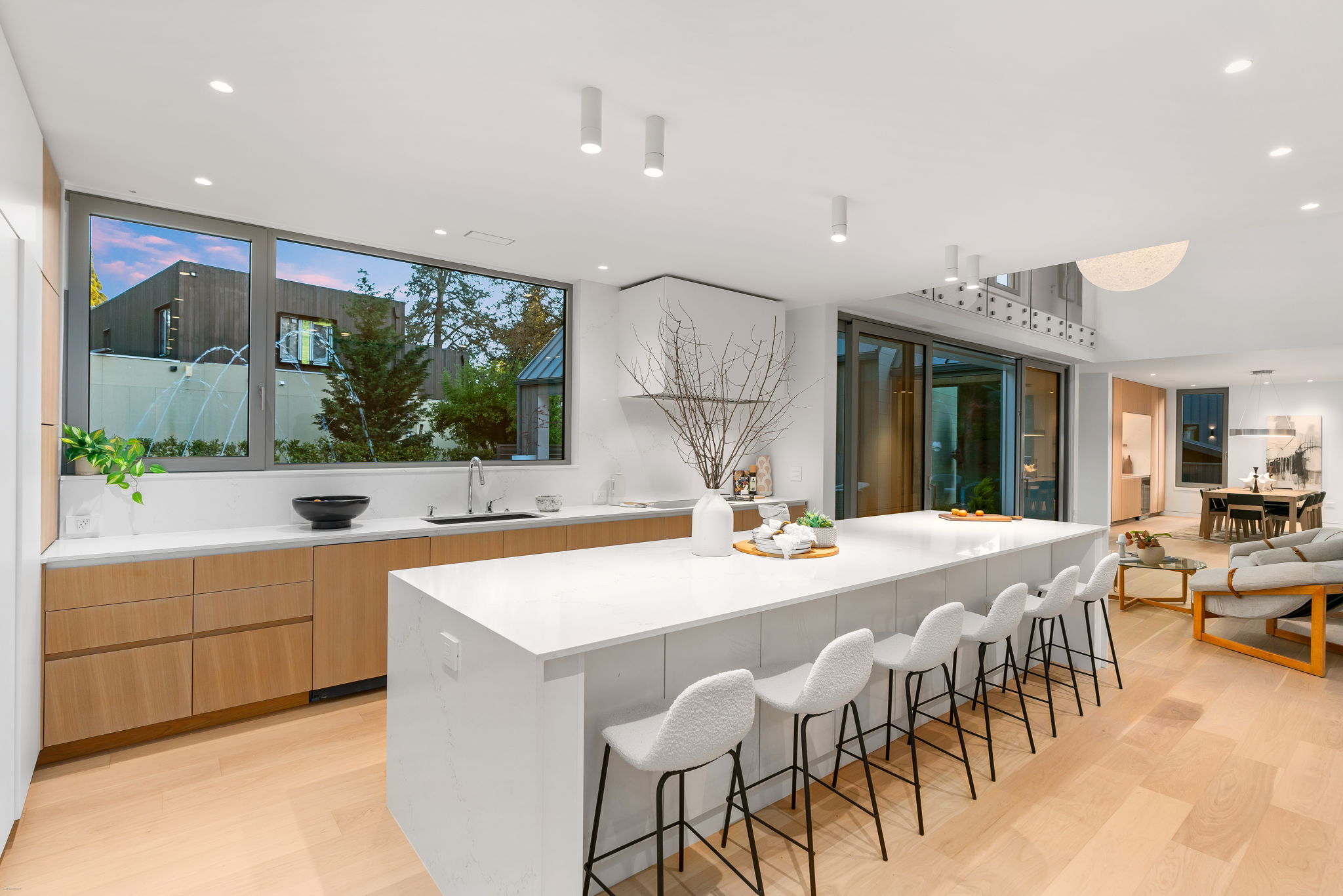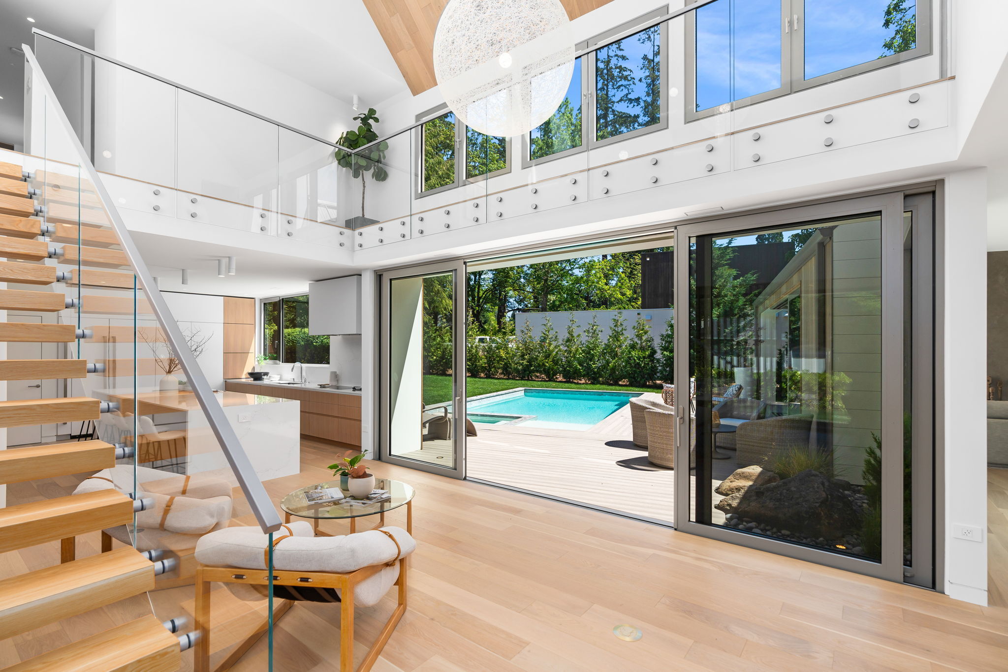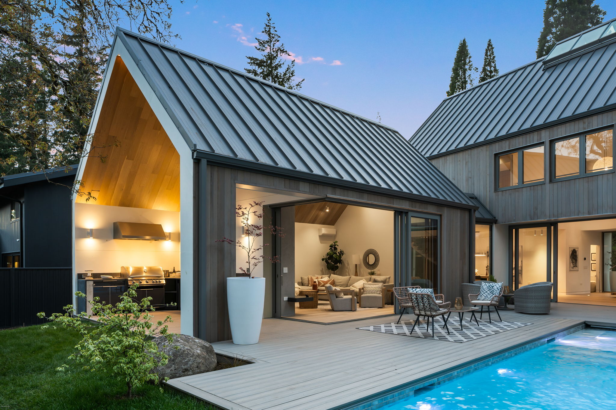 Villa M A Truly Custom Built Contemporary Scandinavian Farmhouse located in the sought-after Dunthorpe neighborhood. Stunning New Construction, soaring 30-foot ceilings capped by glass, creating a light filled living experience. Extensive use of custom white oak cabinetry throughout home, craftsmanship of a bygone era. High-end European Windows and Doors the pinnacle of form and function blurring the lines between interior and exterior. Transverse a glass hallway to the large living room where you?re greeted by vaulted ceilings and a grand fireplace. Walls of glass part to open to the pool deck, and outdoor kitchen. Pool+Spa with fountains, lighting, and automatic pool cover. Chefs kitchen with oversized island, waterfall edge, slab backsplash and high-end appliance package. Upper-level bedrooms with built-in closets and functional loft spaces, taking advantage of the opportunity presented by the voluminous vaulted ceilings. Primary suite with expanisve built-in closet system, walls wrapped in white oak, primary bath with spacious wet room. Main level study with adjoining full bath and zero edge shower entry provide flexibility with accessibility. Sleek clean finishes, lighting choices, museum reveal baseboards, and zero trim doorways all flawlessly crafted and executed to compliment the refreshingly high-end modern aesthetic. Why wait to build? When you can have it all today!