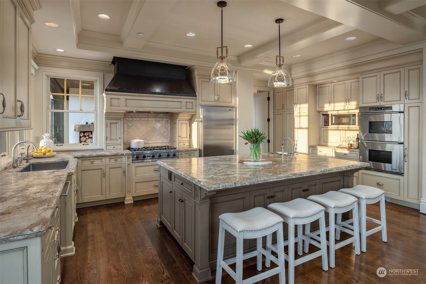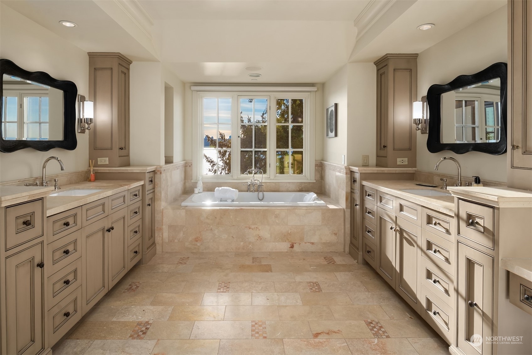 Discover Santa Barbara style & sophistication on Mercer Island at this gracious waterfront estate. Offering spectacular, west-facing views of Lake Washington & the Seattle skyline, this exquisite home boasts light-filled, thoughtfully curated spaces for everyday living, luxurious entertainment & a seamless indoor/outdoor lifestyle. An ideal floor plan from the open kitchen & great room to the luxe primary suite with gorgeous views to the lower level rec room & guest quarters. Lush grounds offer a resort experience complete with private dock & pickleball court. Auto court for guest parking. Located on the coveted north-end minutes to the Island village & a short drive to urban amenities on both sides of the lake. Your Island oasis awaits…
