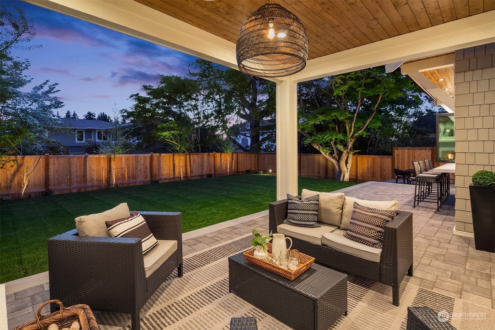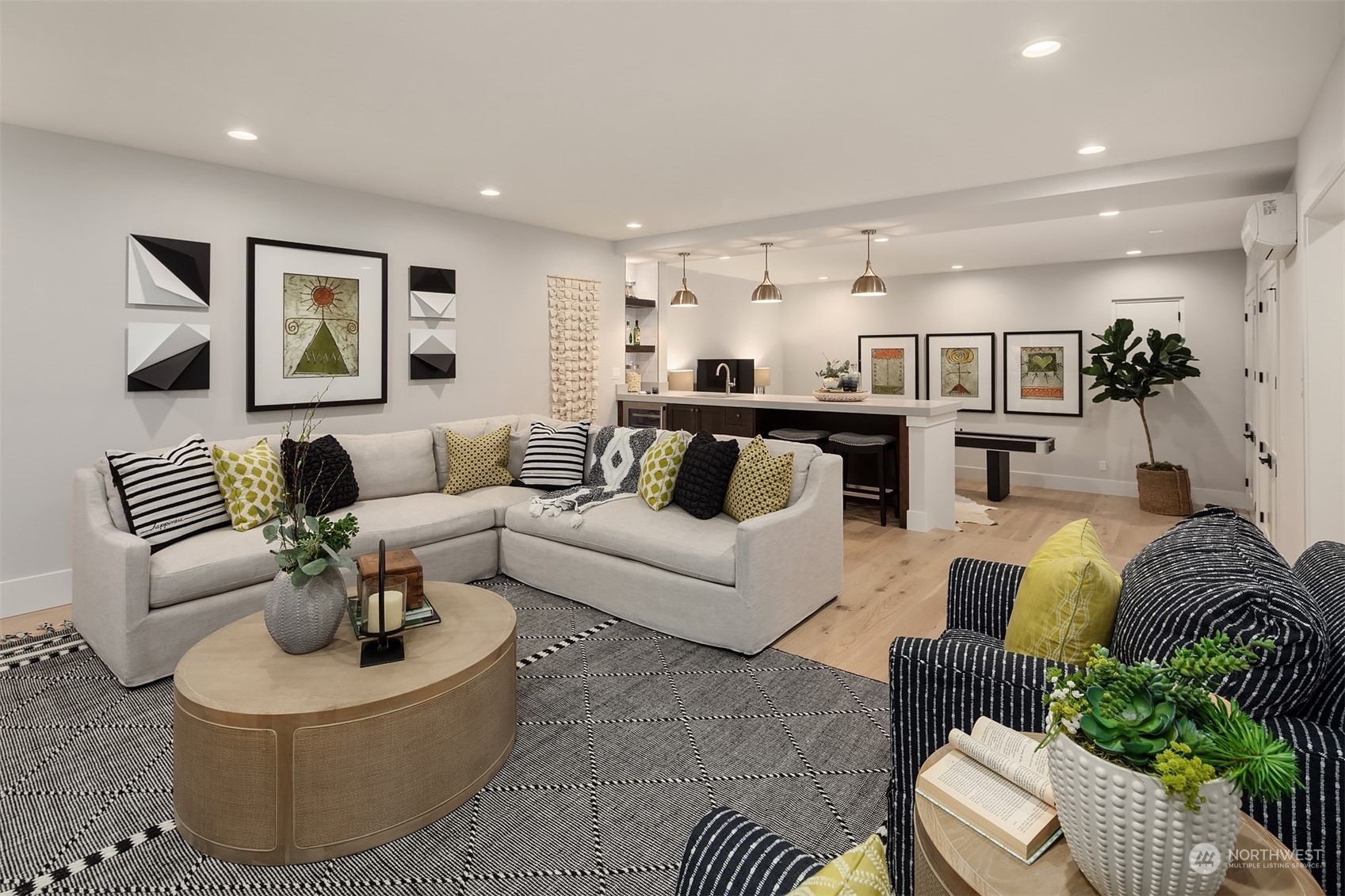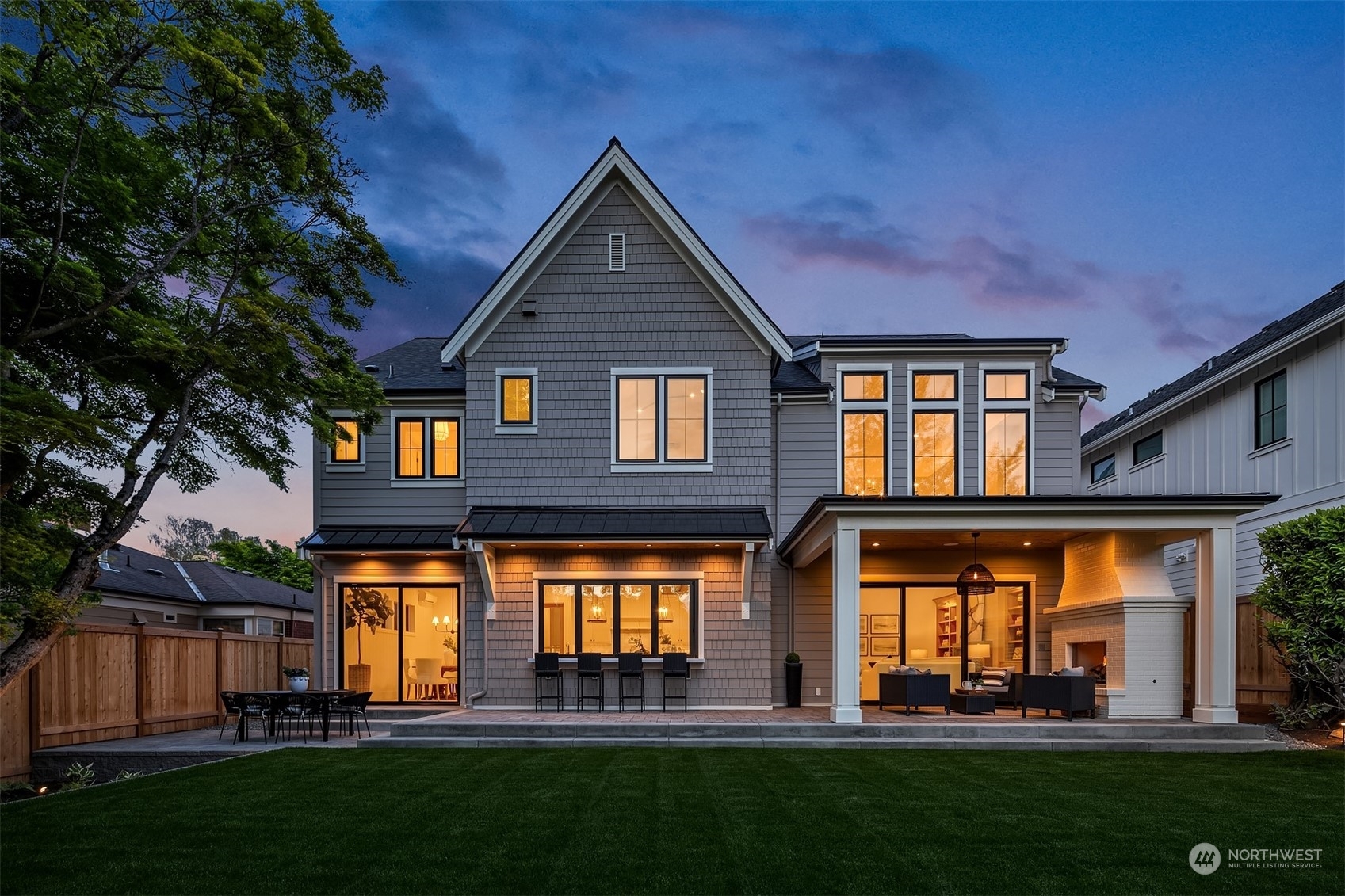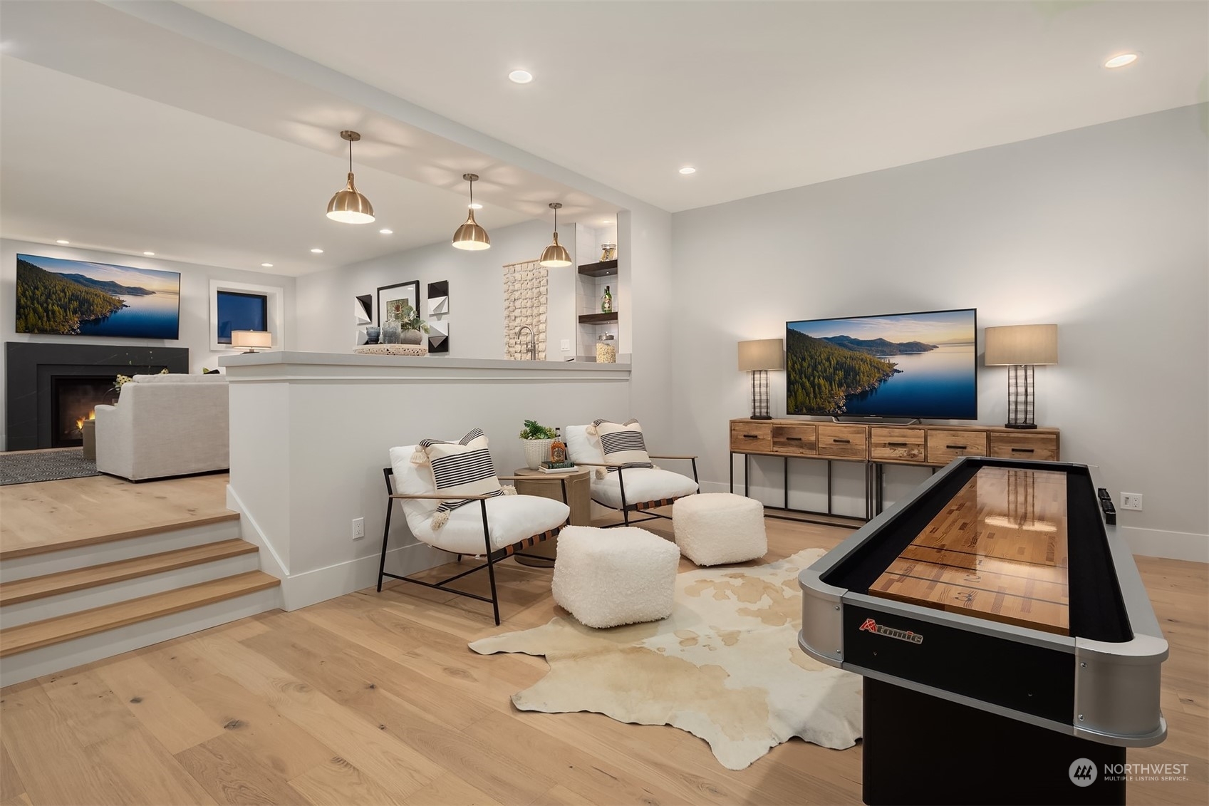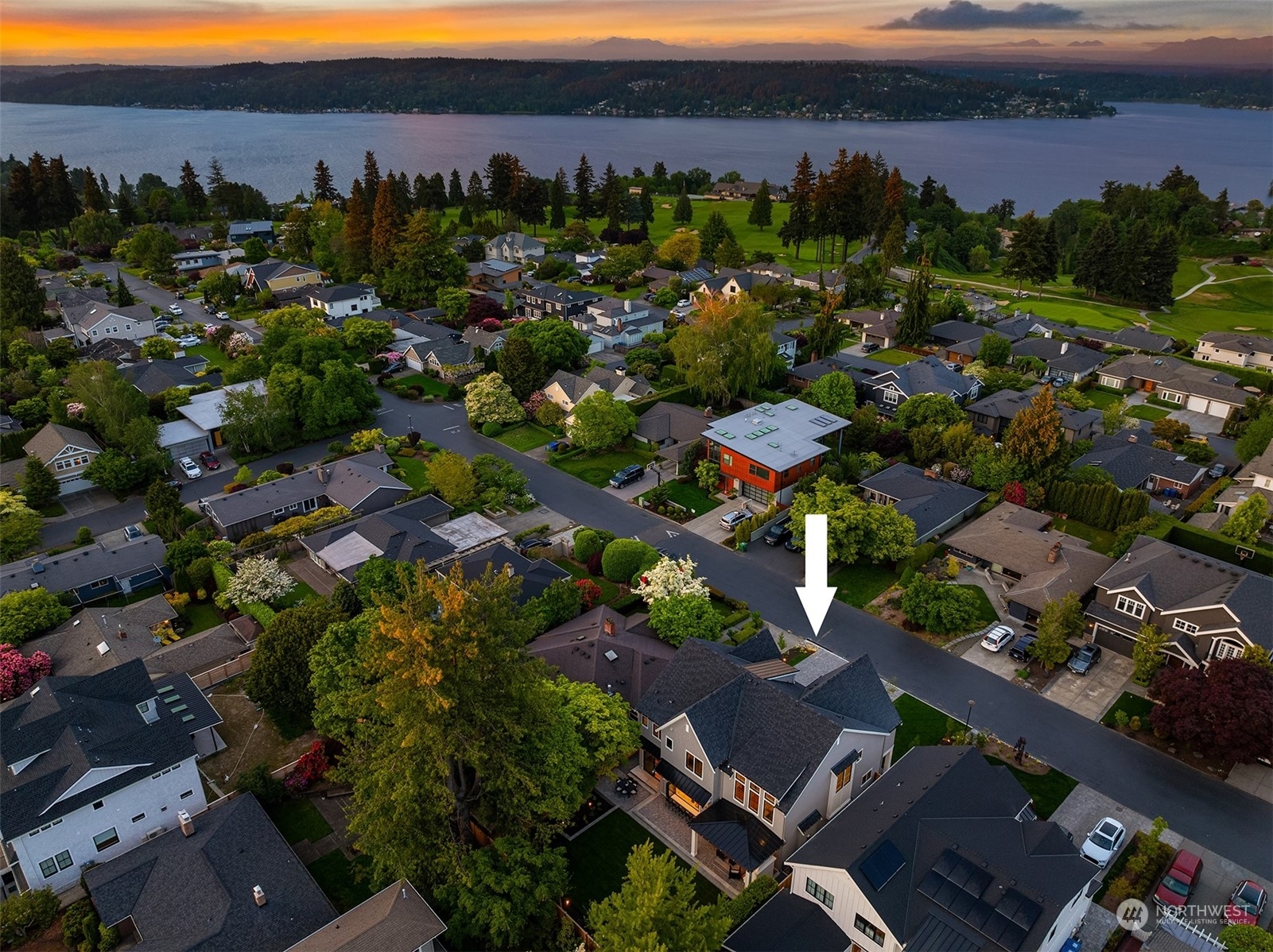 Discover elevated luxury living in this prestigious Sand Point Country Club home by Seattle's premier builder, Approach Build. Inside this timeless modern craftsman, experience grandeur with soaring two-story ceiling in the central living area. Gourmet kitchen boasts a Carrara marble island, butler's pantry and Nanawall window positioned over bar top with beverage center for in/outdoor hosting. Spacious backyard features a covered patio with custom fireplace. Well-appointed lower level is perfect for entertaining with built-in bar and custom designed to fit a Full Swing golf simulator. Upstairs, each of the four bedrooms offers an en-suite, while the luxurious primary spans the depth of the home, with vaulted ceilings and territorial views.