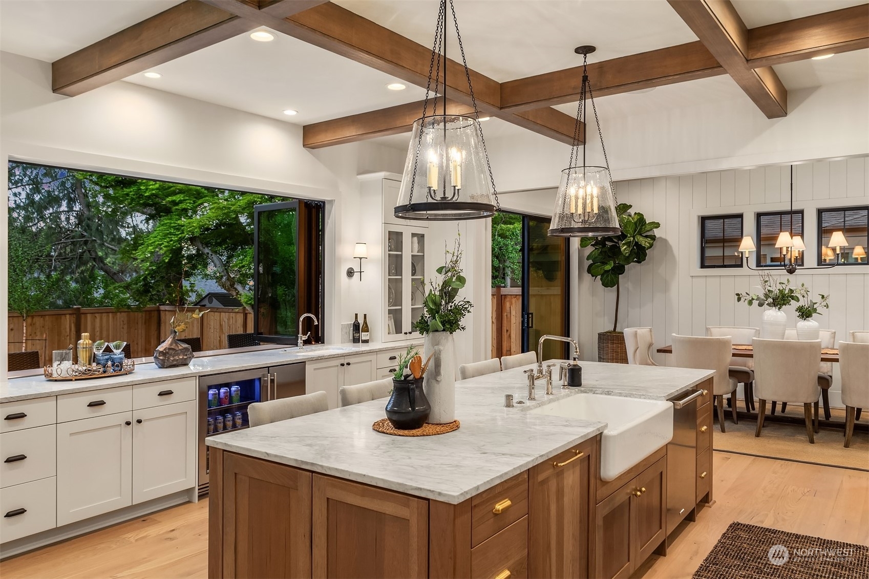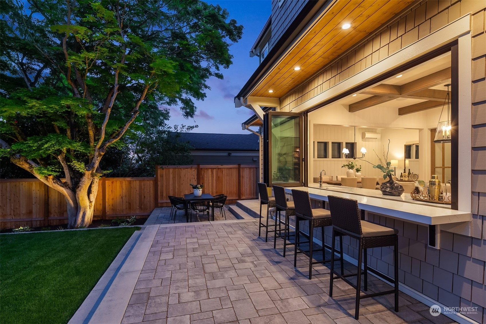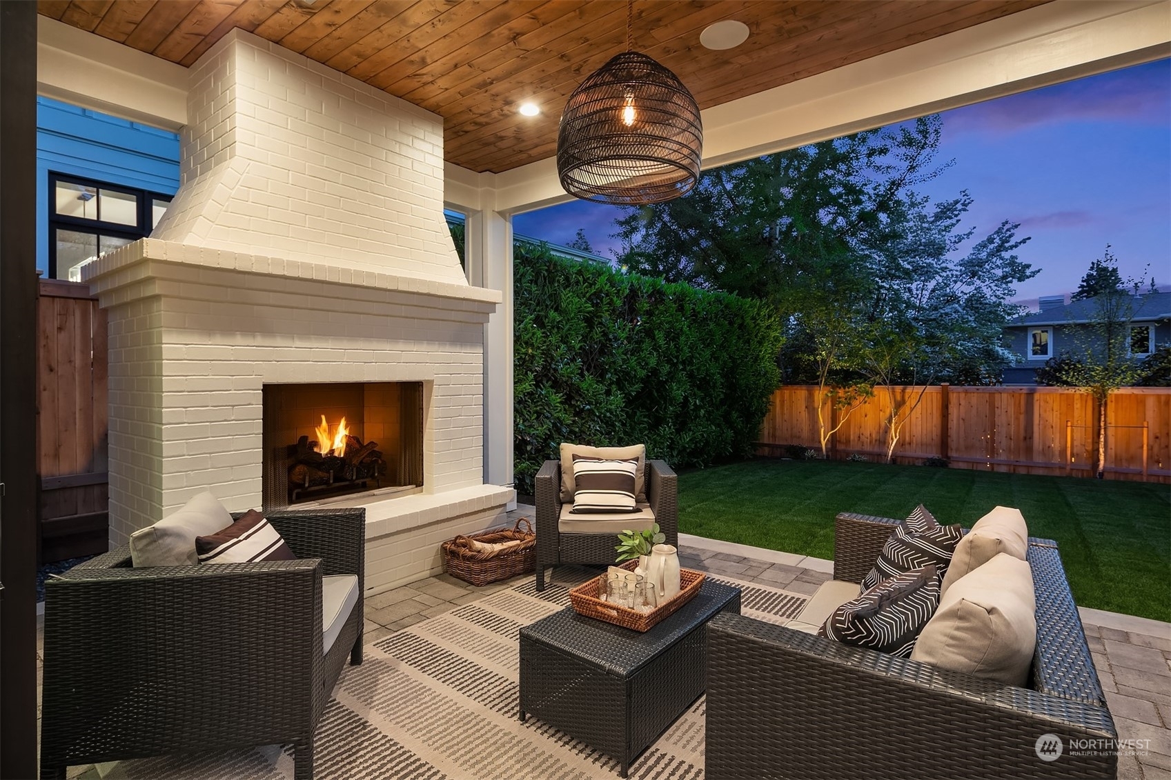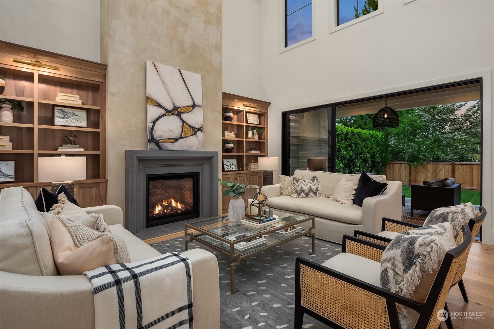 Discover elevated luxury living in this prestigious Sand Point Country Club home by Seattle's premier builder, Approach Build. Inside this timeless modern craftsman, experience grandeur with soaring two-story ceiling in the central living area. Gourmet kitchen boasts a Carrara marble island, butler's pantry and Nanawall window positioned over bar top with beverage center for in/outdoor hosting. Spacious backyard features a covered patio with custom fireplace. Well-appointed lower level is perfect for entertaining with built-in bar and custom designed to fit a Full Swing golf simulator. Upstairs, each of the four bedrooms offers an en-suite, while the luxurious primary spans the depth of the home, with vaulted ceilings and territorial views.