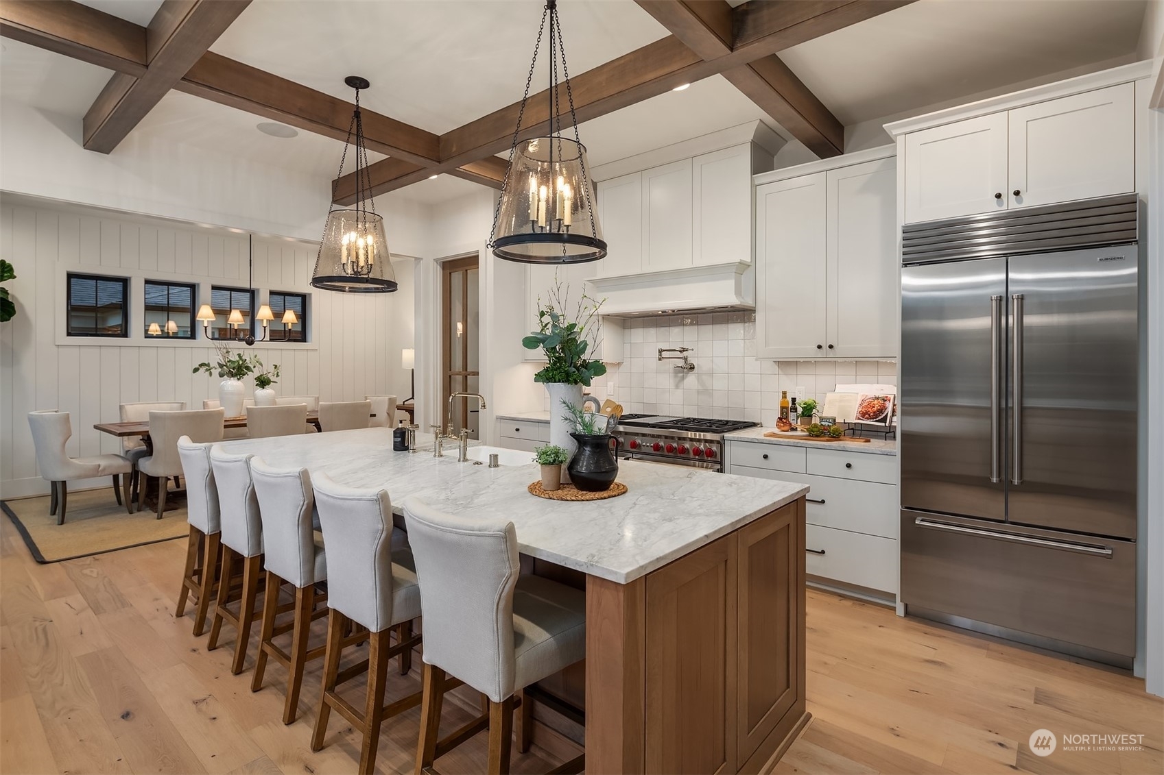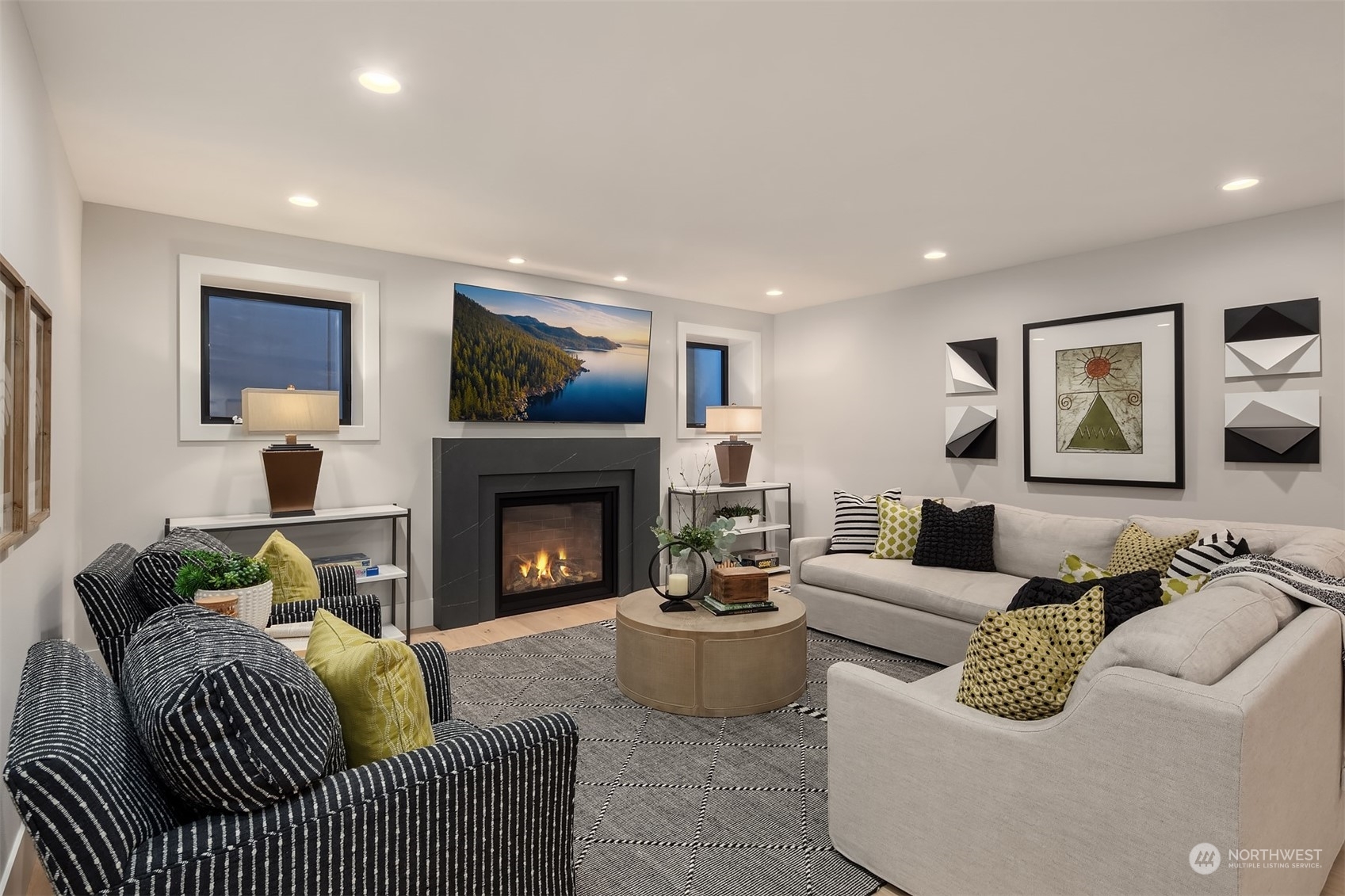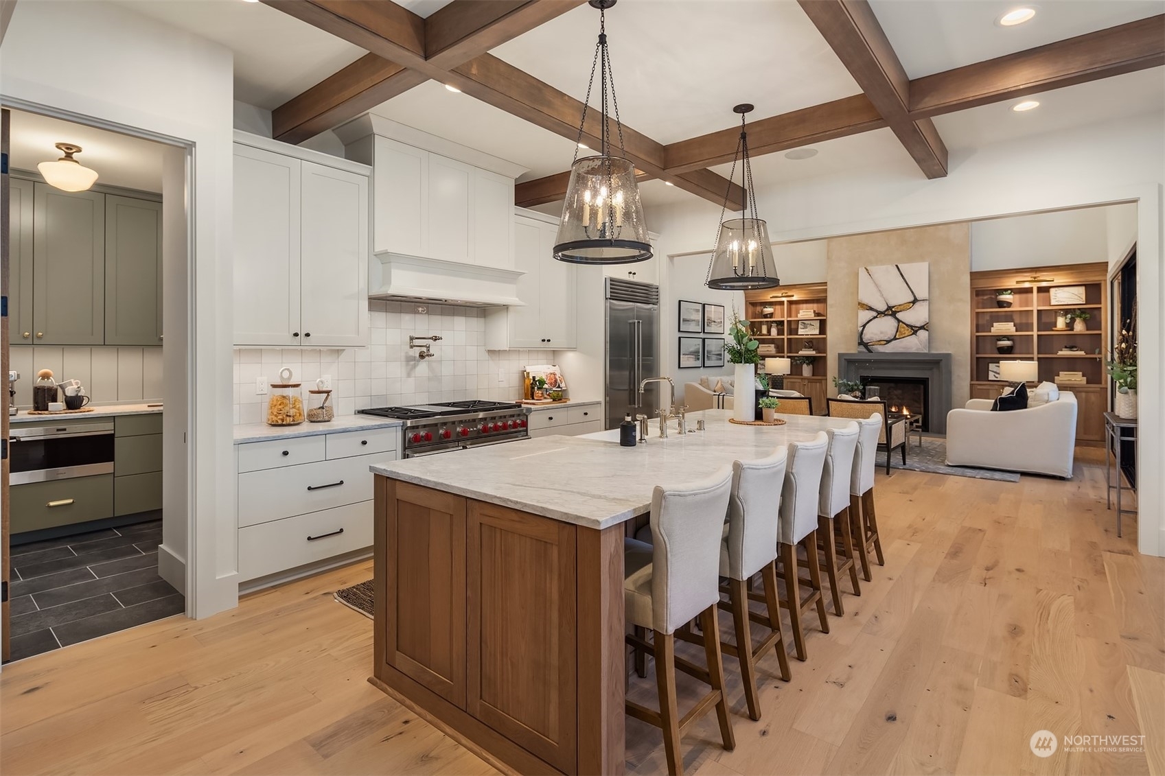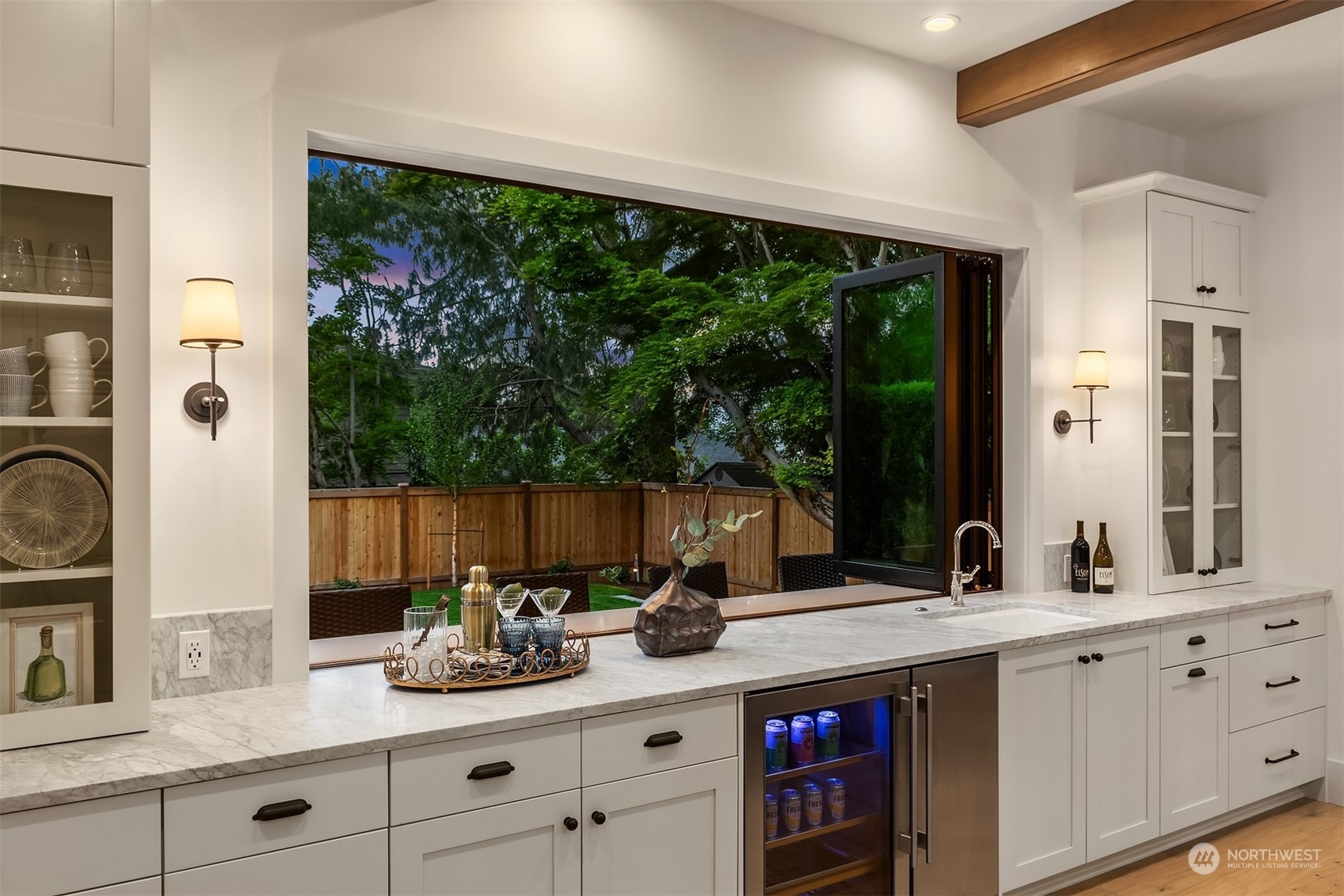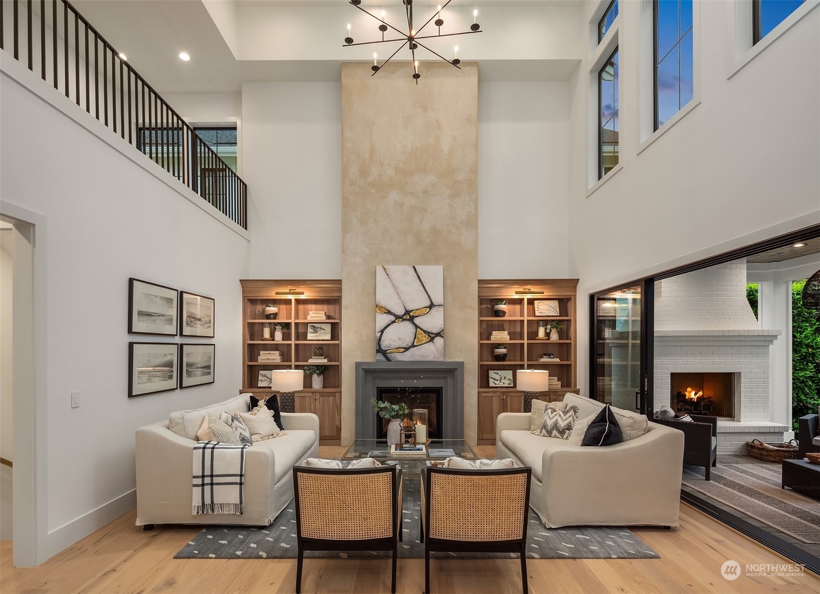 Discover elevated luxury living in this prestigious Sand Point Country Club home by Seattle's premier builder, Approach Build. Inside this timeless modern craftsman, experience grandeur with soaring two-story ceiling in the central living area. Gourmet kitchen boasts a Carrara marble island, butler's pantry and Nanawall window positioned over bar top with beverage center for in/outdoor hosting. Spacious backyard features a covered patio with custom fireplace. Well-appointed lower level is perfect for entertaining with built-in bar and custom designed to fit a Full Swing golf simulator. Upstairs, each of the four bedrooms offers an en-suite, while the luxurious primary spans the depth of the home, with vaulted ceilings and territorial views.