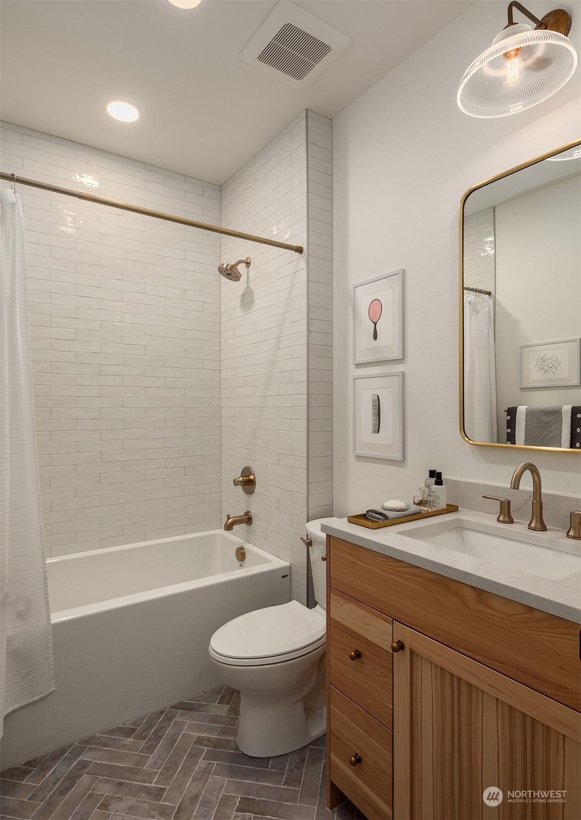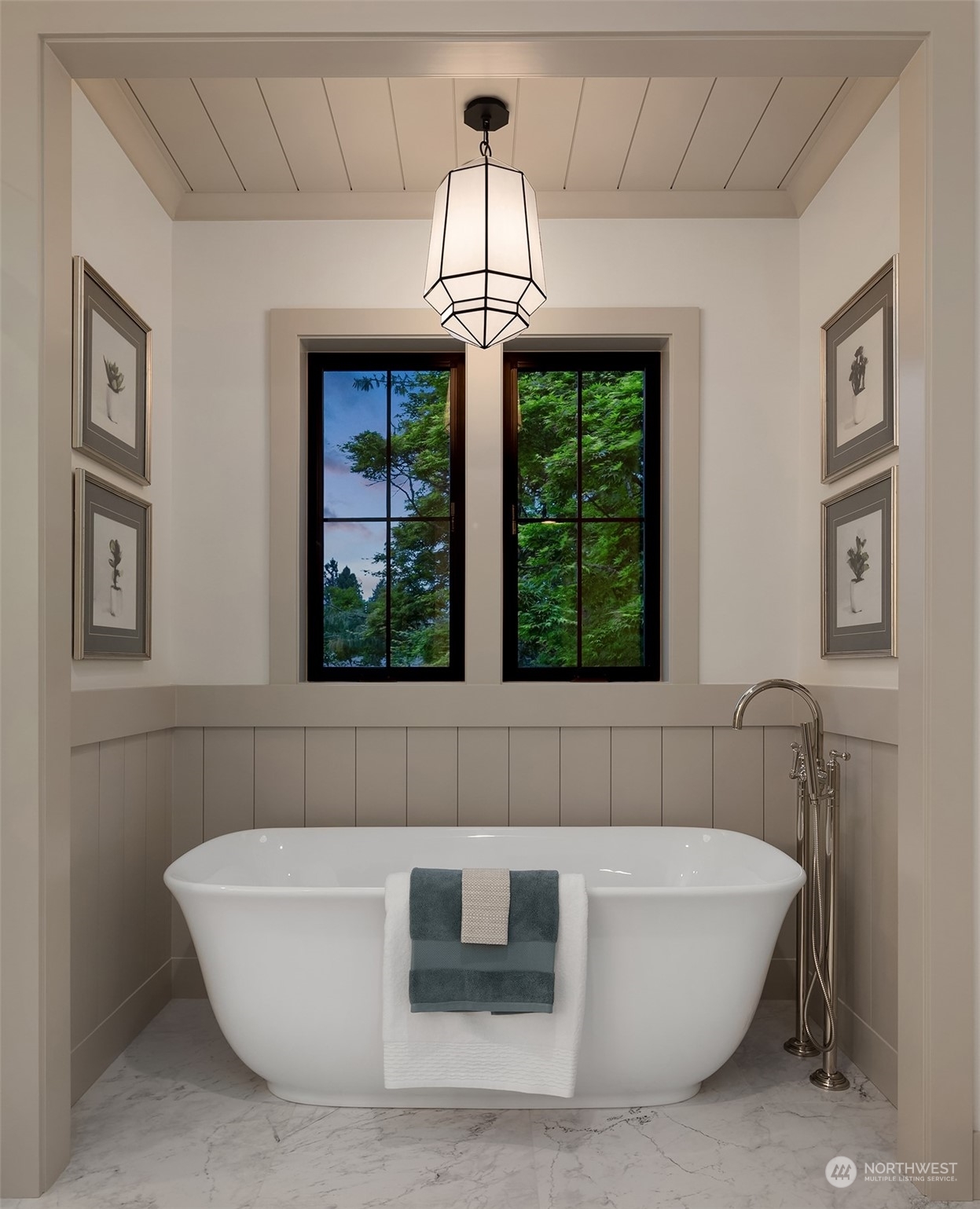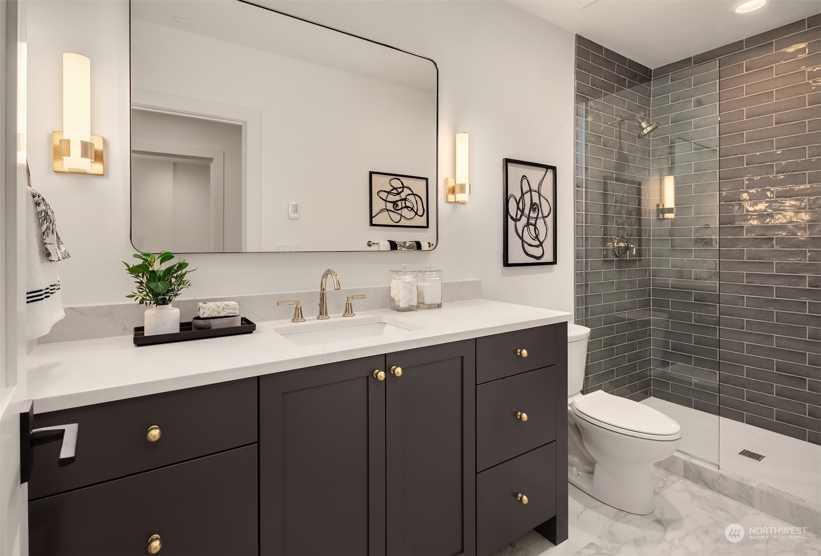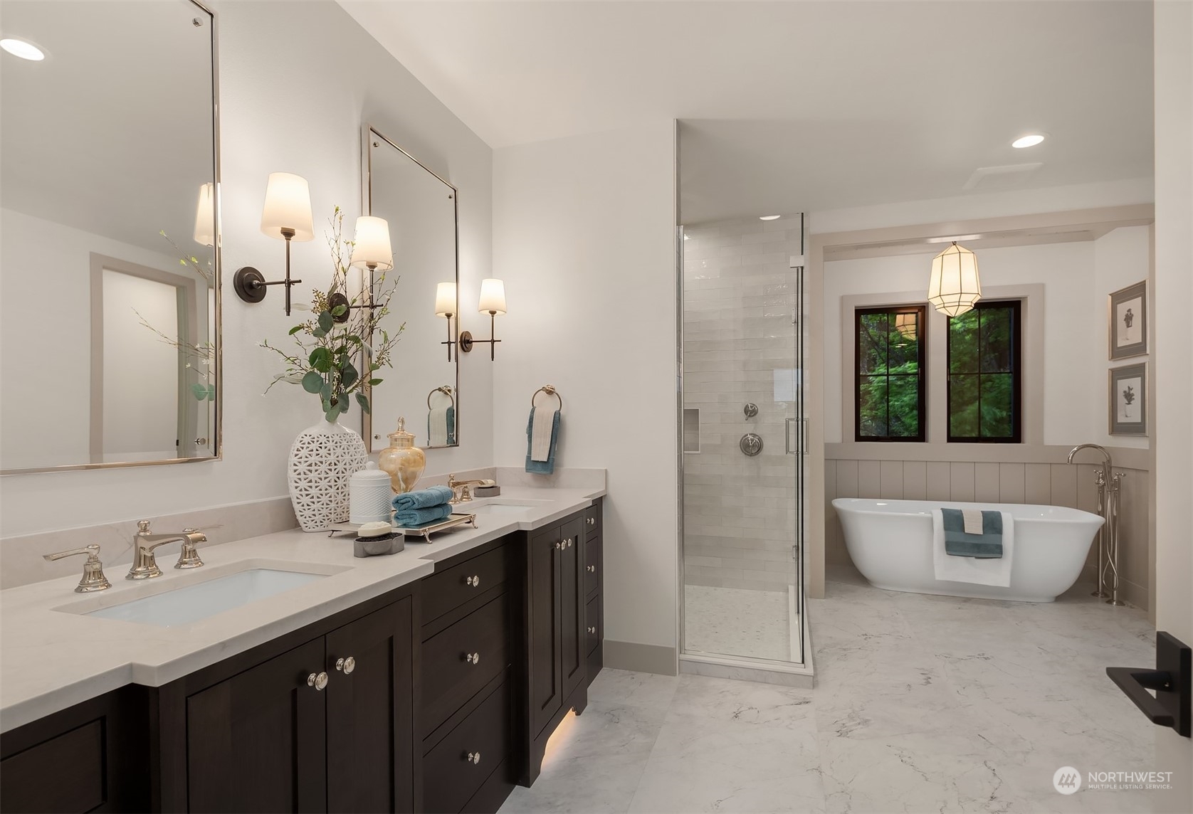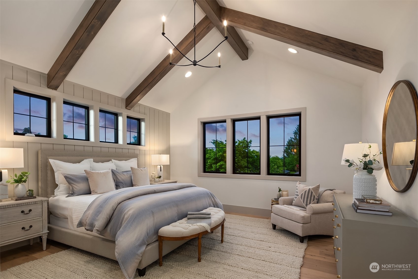 Discover elevated luxury living in this prestigious Sand Point Country Club home by Seattle's premier builder, Approach Build. Inside this timeless modern craftsman, experience grandeur with soaring two-story ceiling in the central living area. Gourmet kitchen boasts a Carrara marble island, butler's pantry and Nanawall window positioned over bar top with beverage center for in/outdoor hosting. Spacious backyard features a covered patio with custom fireplace. Well-appointed lower level is perfect for entertaining with built-in bar and custom designed to fit a Full Swing golf simulator. Upstairs, each of the four bedrooms offers an en-suite, while the luxurious primary spans the depth of the home, with vaulted ceilings and territorial views.