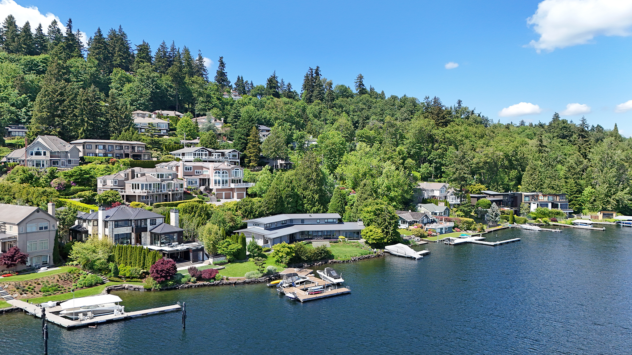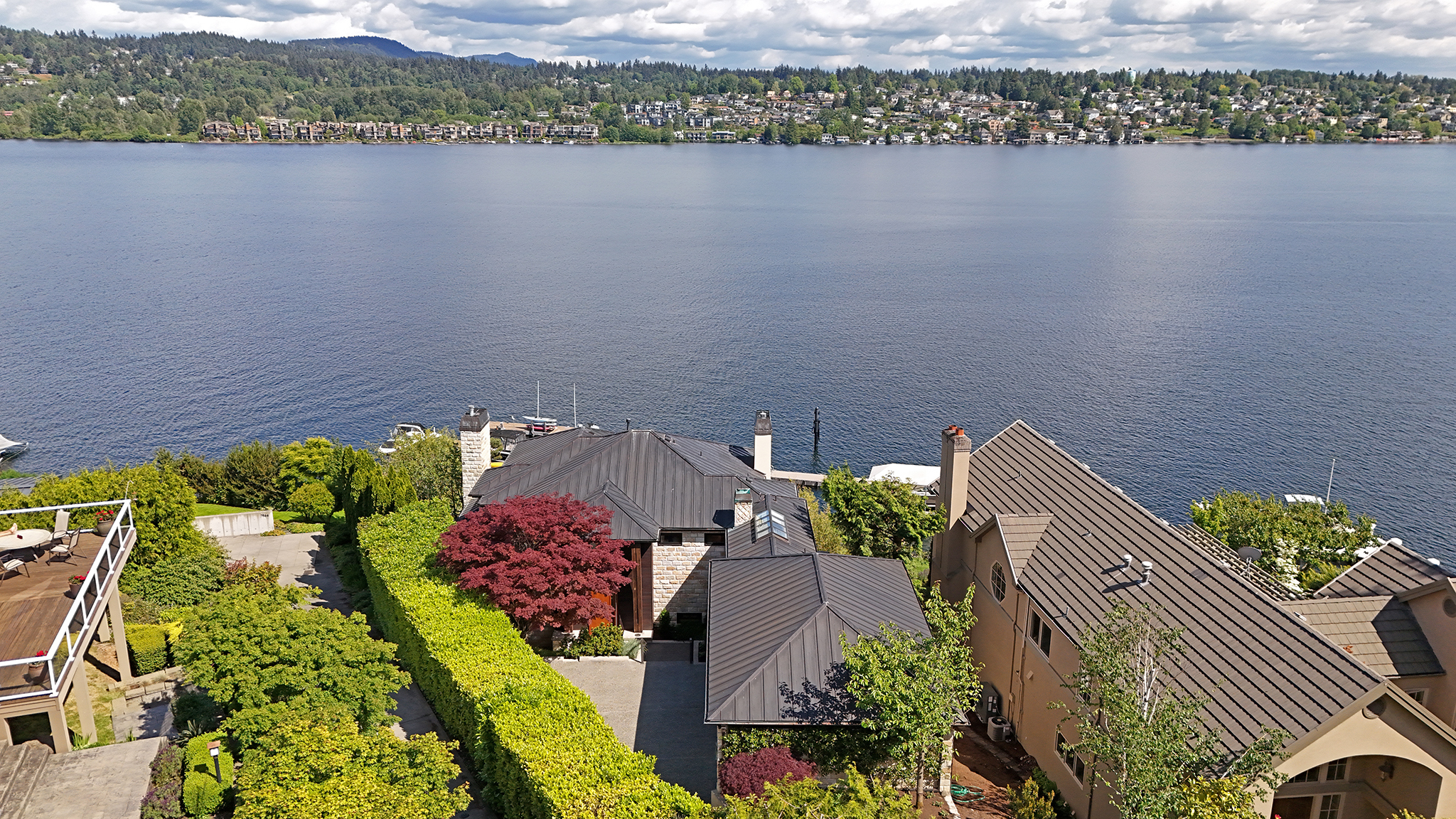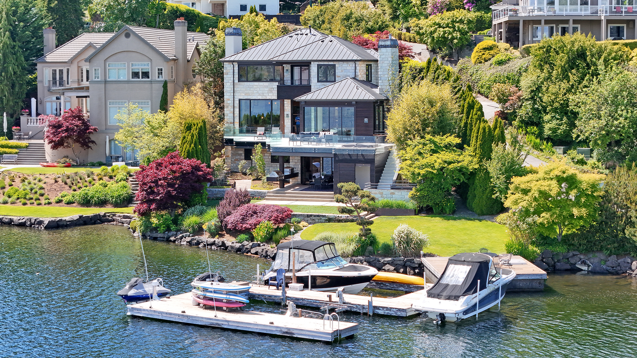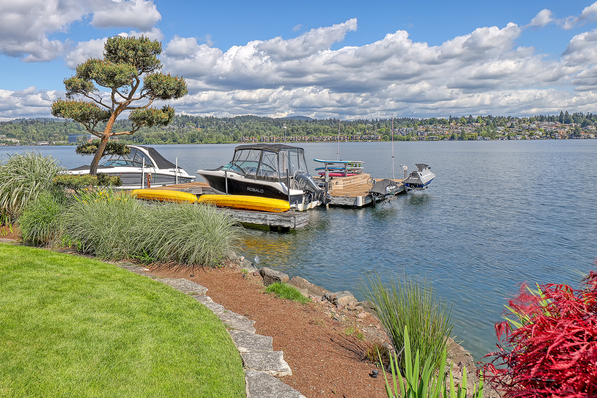 Embrace the epitome of waterfront luxury living with this unparalleled estate nestled along the serene shores of Mercer Island's prestigious south end. Wake up to dramatic views of Mt. Rainier sparkling over the tranquil waters of Lake Washington. Spanning a meticulously landscaped 12,910-square-foot lot, this architectural marvel boasts 85 ft of pristine waterfront, complete w/deep water moorage, boat and jet ski lifts and an oversized shared dock (with just one other home), offering direct access to the excitement of the lake. Expansive decks, gourmet kitchen, BBQ & pizza oven are built for entertaining and sunken spa and cedar sauna for relaxing. Stone, metal and wood come together in an unmatched level of refinement and sophistication.