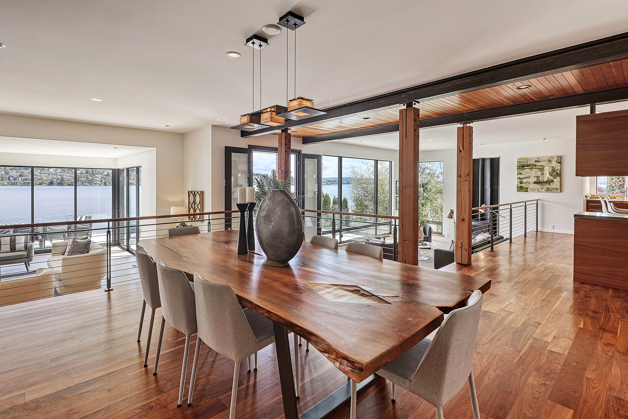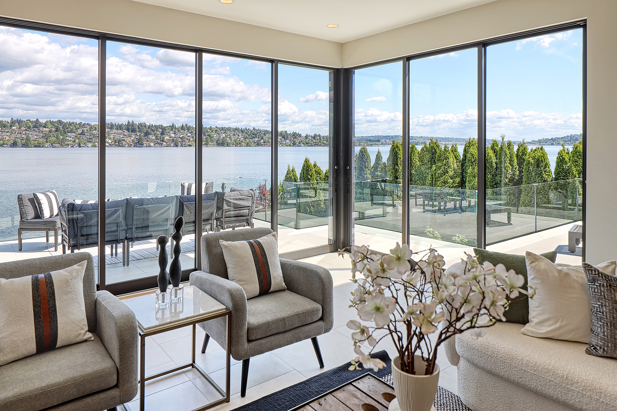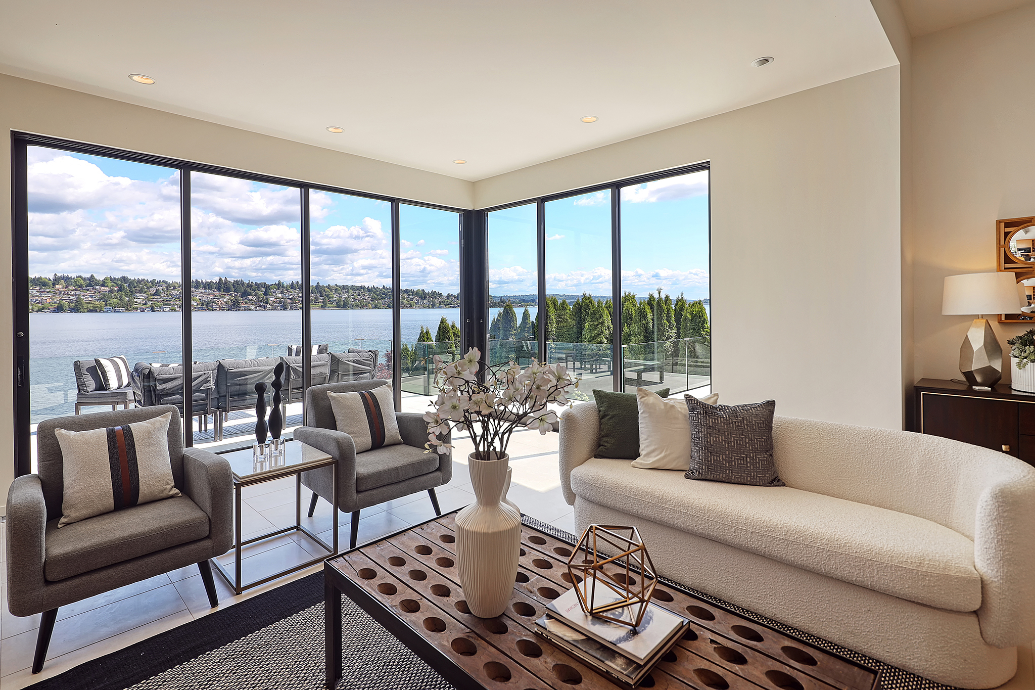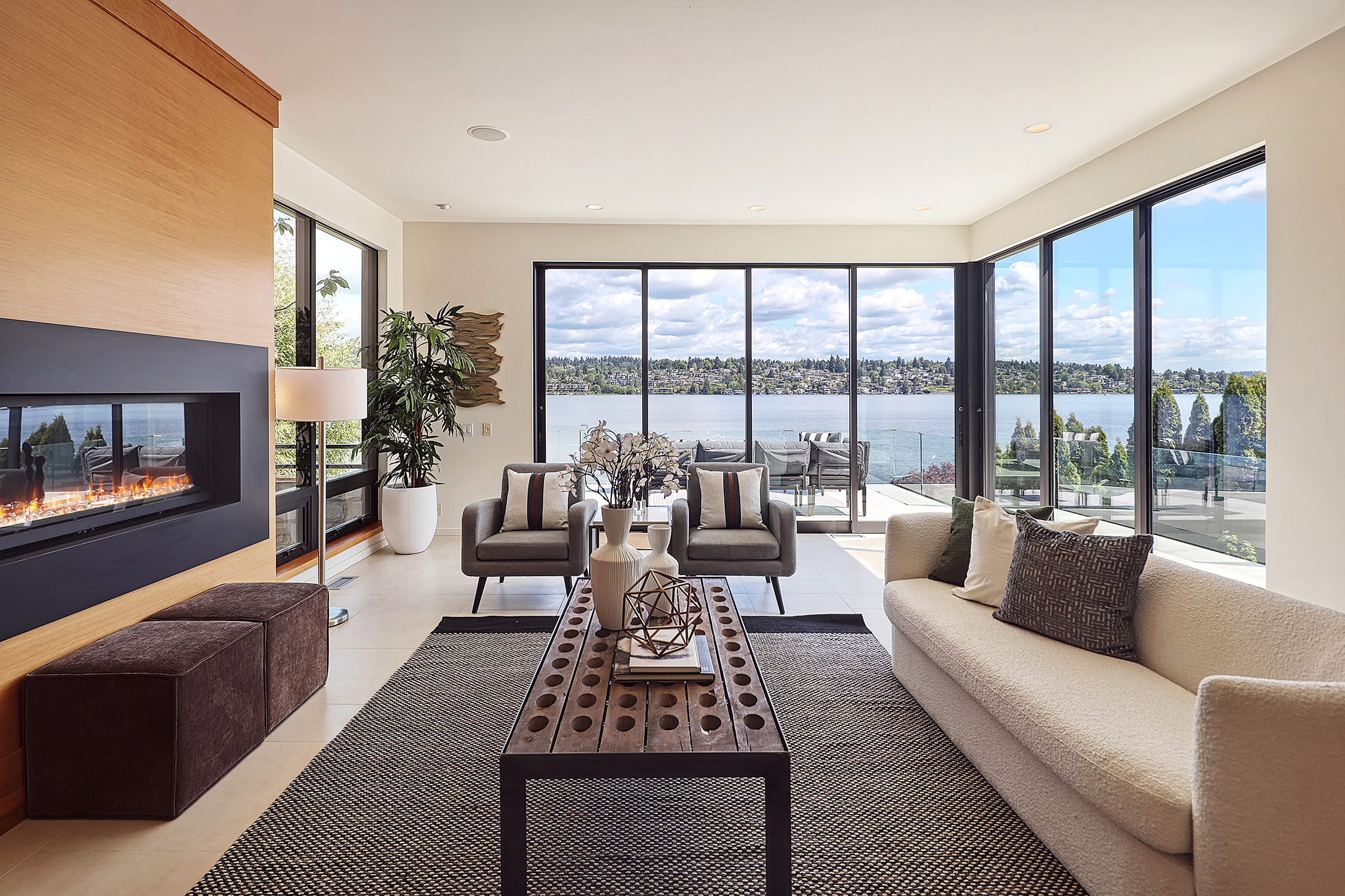 Embrace the epitome of waterfront luxury living with this unparalleled estate nestled along the serene shores of Mercer Island's prestigious south end. Wake up to dramatic views of Mt. Rainier sparkling over the tranquil waters of Lake Washington. Spanning a meticulously landscaped 12,910-square-foot lot, this architectural marvel boasts 85 ft of pristine waterfront, complete w/deep water moorage, boat and jet ski lifts and an oversized shared dock (with just one other home), offering direct access to the excitement of the lake. Expansive decks, gourmet kitchen, BBQ & pizza oven are built for entertaining and sunken spa and cedar sauna for relaxing. Stone, metal and wood come together in an unmatched level of refinement and sophistication.