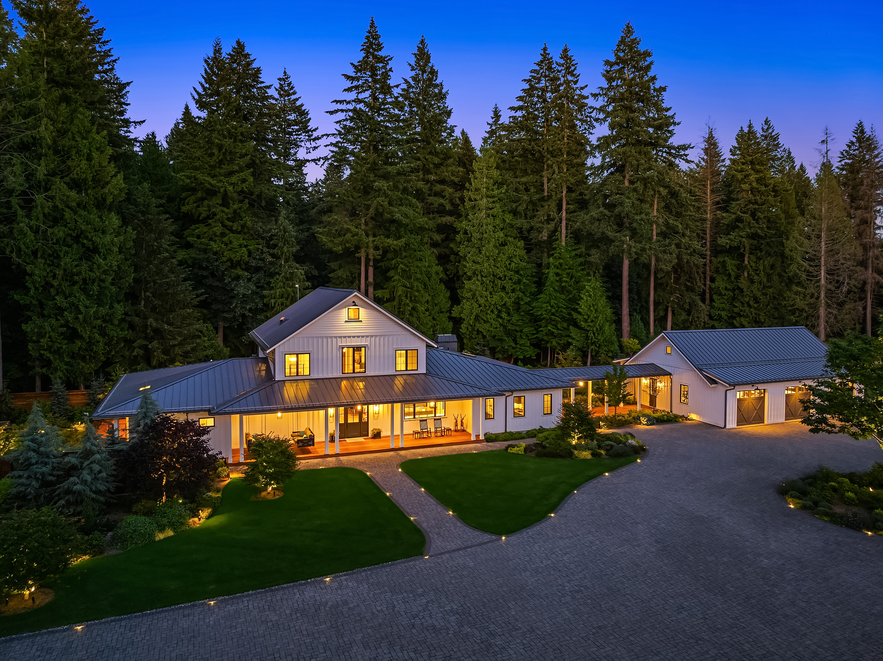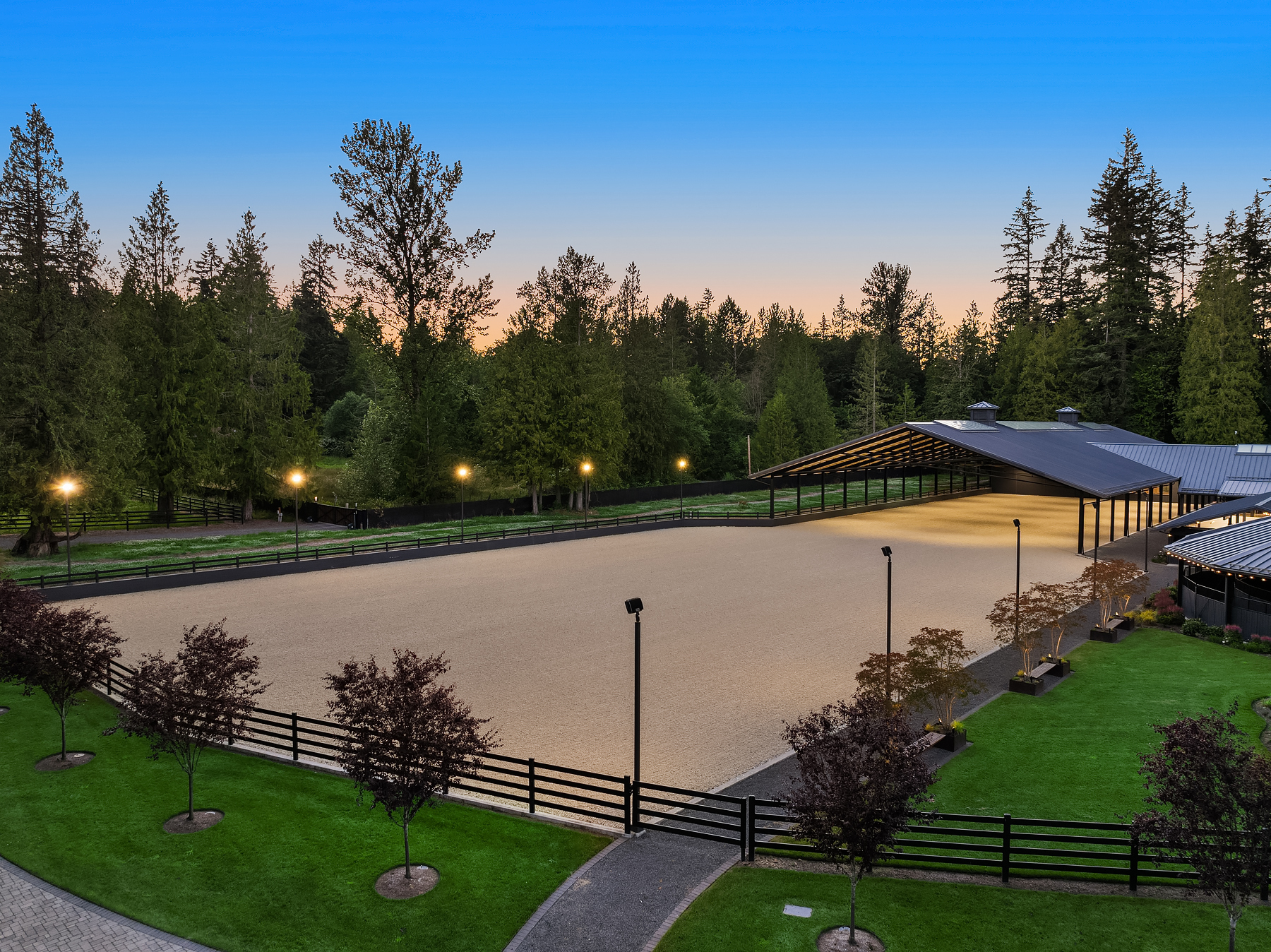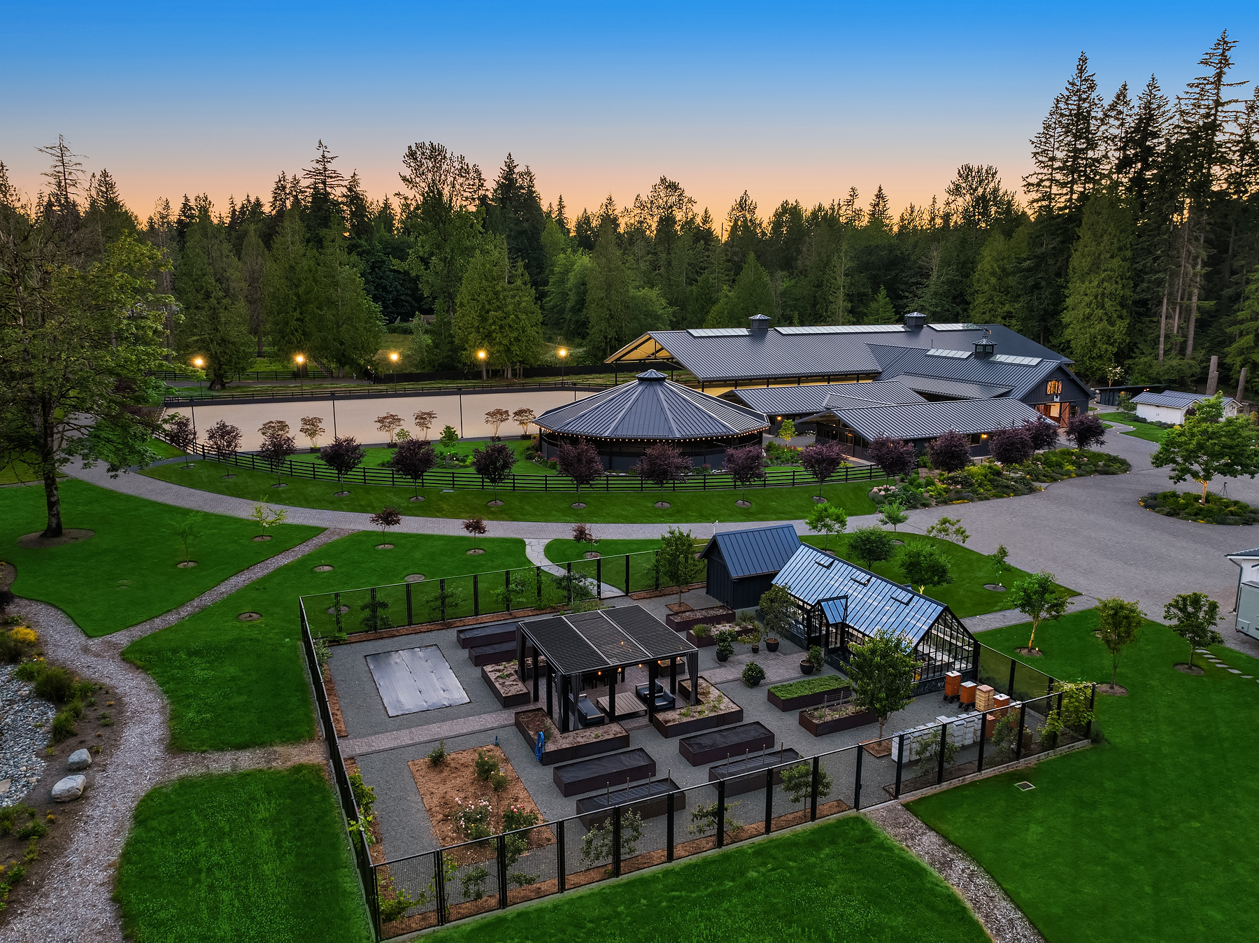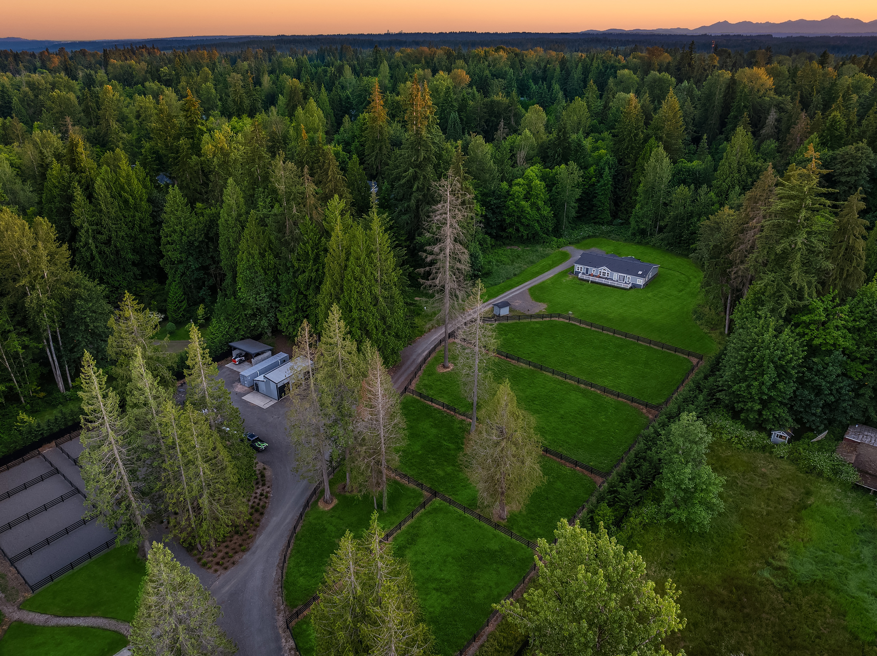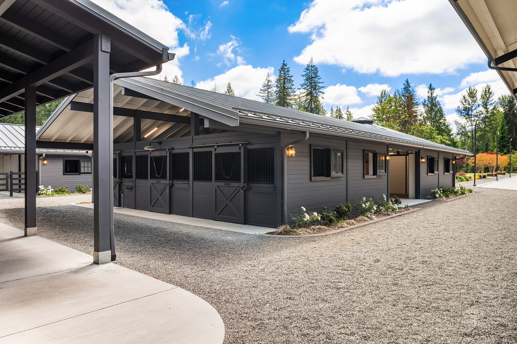 Lost Lake Farm, destined to be a NW Landmark in Equestrian living. A captivating masterpiece built in 2019 sited on over 23 perfected acres. Unparalleled State of the art horse facilities, 19 stalls, 80 x 200 covered arena blends seamlessly into a 110 X 200 outdoor portion for a total of 400' length. Hoofgrid paddocks, heated viewing rm, steel board fencing and countless equine amenities. Over 5000 SF Modern Farmhouse offers grand Great Room design w/ massive pocket doors opening to a forested backdrop & outdoor living spaces. The home and its surroundings were thoughtfully designed and executed with a no expense spared approach from start to finish. 2 gated entries, updated 2700+ SF 3 bed staff home, greenhouse, fenced gardens, RV parking