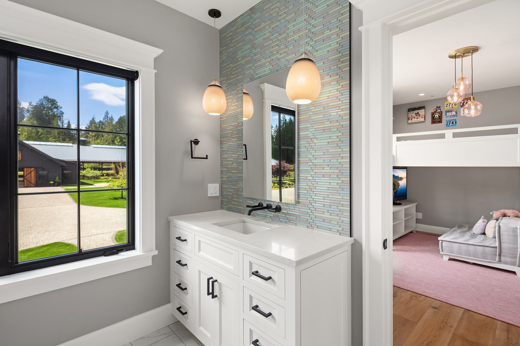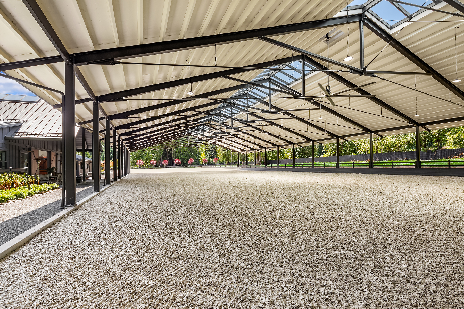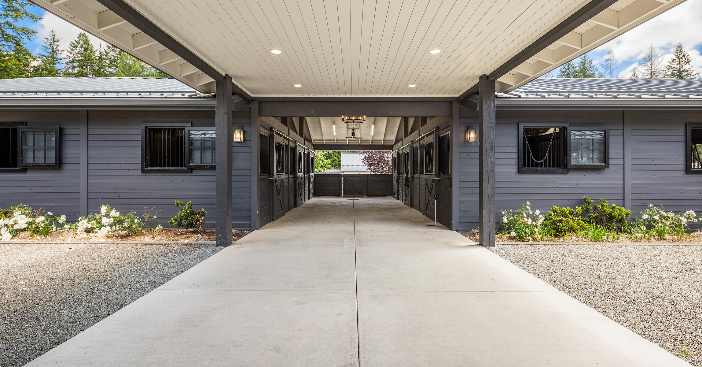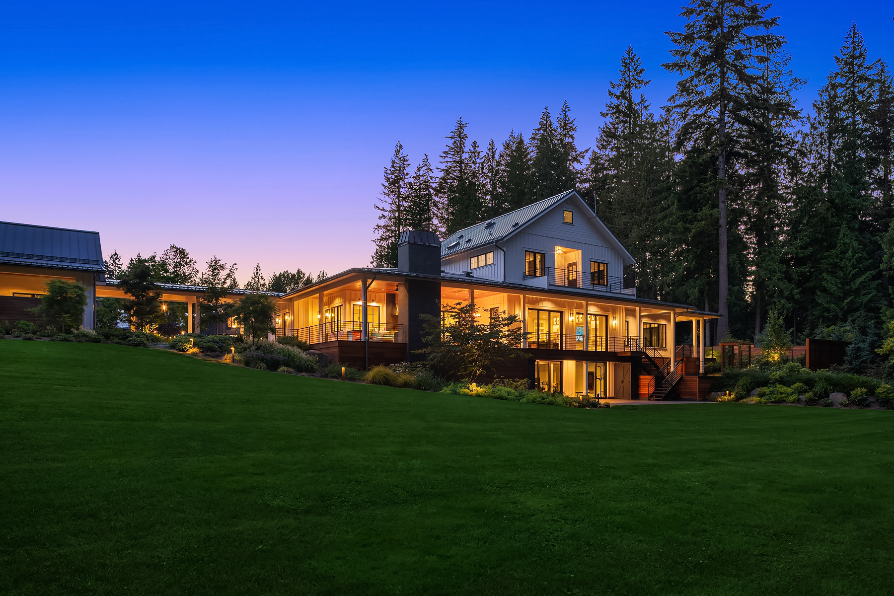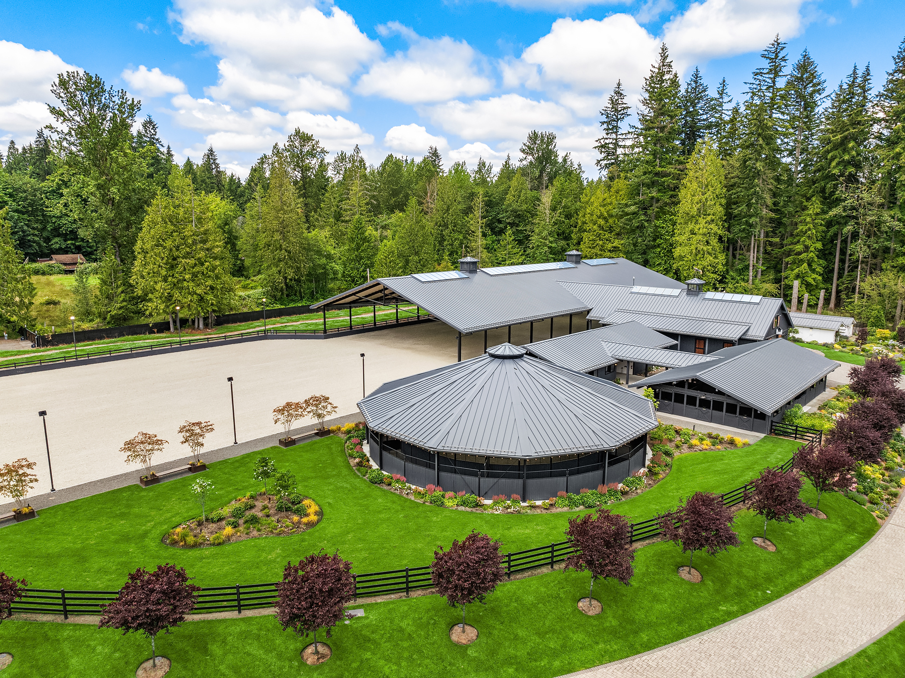 Lost Lake Farm, destined to be a NW Landmark in Equestrian living. A captivating masterpiece built in 2019 sited on over 23 perfected acres. Unparalleled State of the art horse facilities, 19 stalls, 80 x 200 covered arena blends seamlessly into a 110 X 200 outdoor portion for a total of 400' length. Hoofgrid paddocks, heated viewing rm, steel board fencing and countless equine amenities. Over 5000 SF Modern Farmhouse offers grand Great Room design w/ massive pocket doors opening to a forested backdrop & outdoor living spaces. The home and its surroundings were thoughtfully designed and executed with a no expense spared approach from start to finish. 2 gated entries, updated 2700+ SF 3 bed staff home, greenhouse, fenced gardens, RV parking