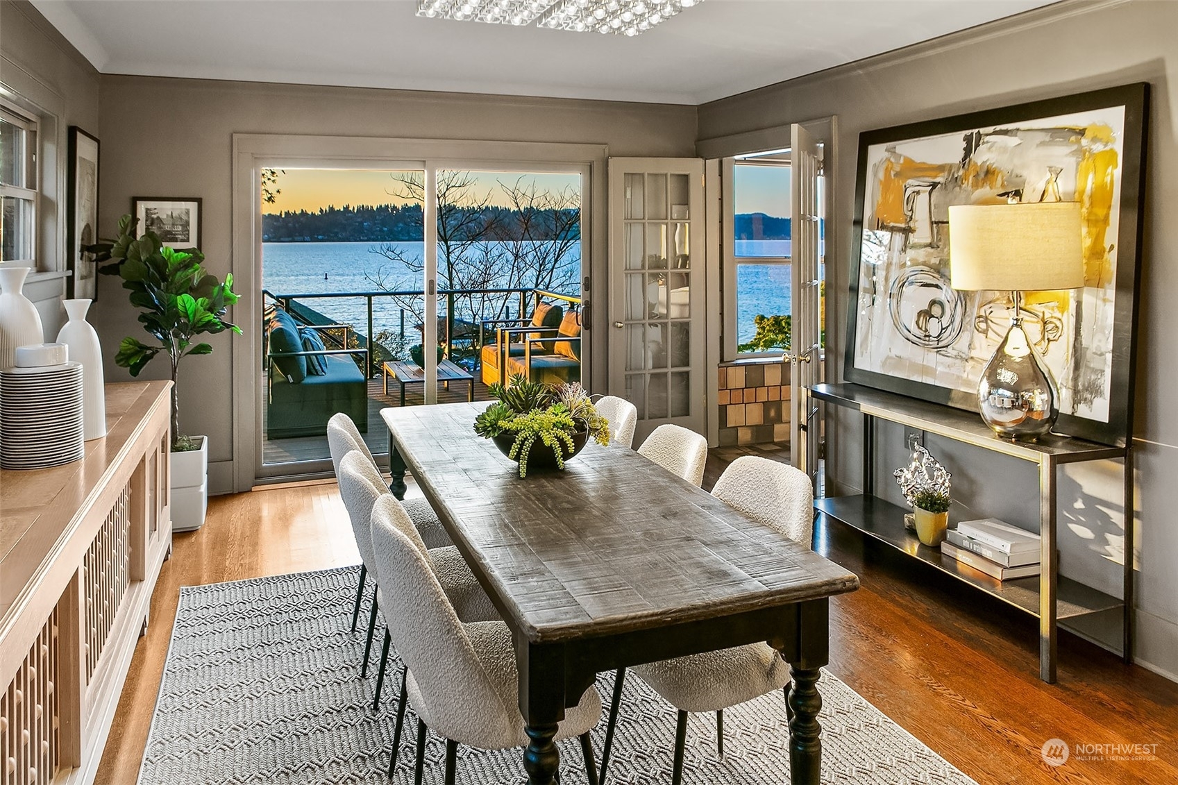 The lifestyle is easy, comfortable, and ready for your guest to arrive by boat and say hello. Your day begins with idyllic decisions to consider ... paddle, swim, sail, wakeboard or coffee on the 75' dock. At nearly an acre, this legacy property is spread across 120' of Lake Washington waterfront. The grounds are punctuated with established gardens, meandering creek, reflecting pool, and enclosed with a handsome brick wall for the utmost privacy. Inside, walls of windows invite natural light and mesmerizing lake and mountain views. Flexible living spaces are ideal for entertaining groups of all sizes. The lower level presents an expansive family room which opens to the east lawn and guest suite, an ideal home for multi-generational living.