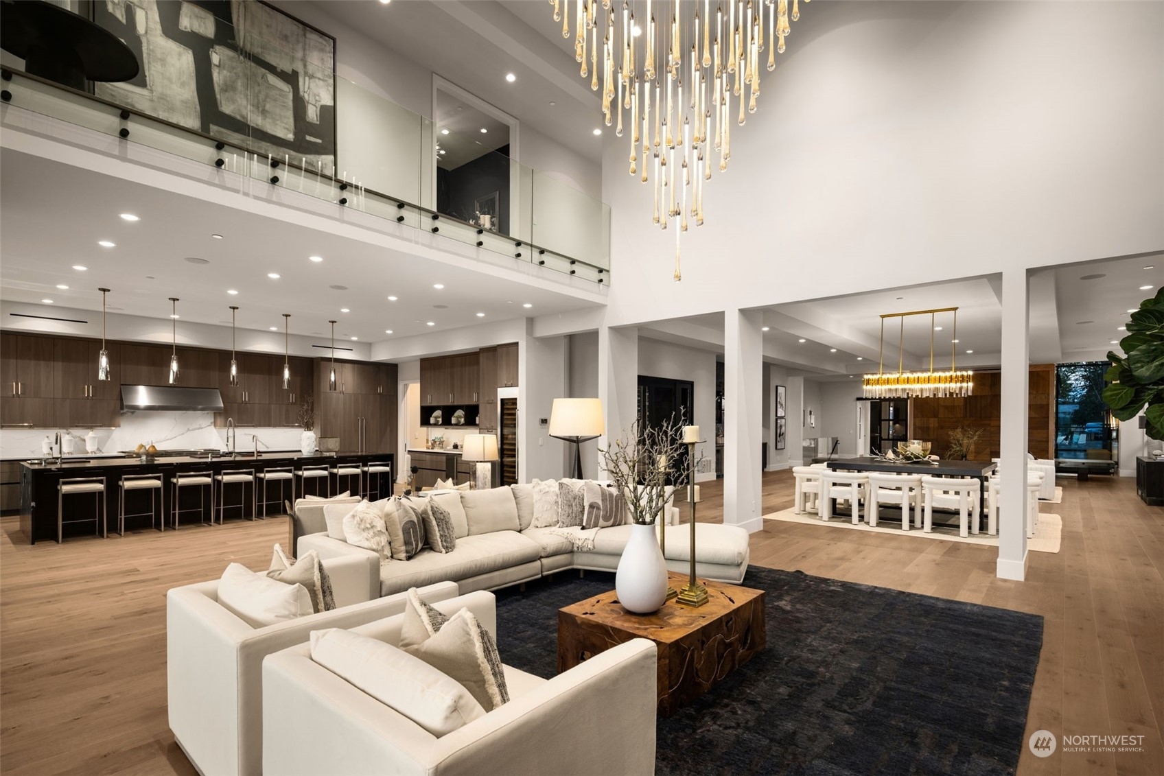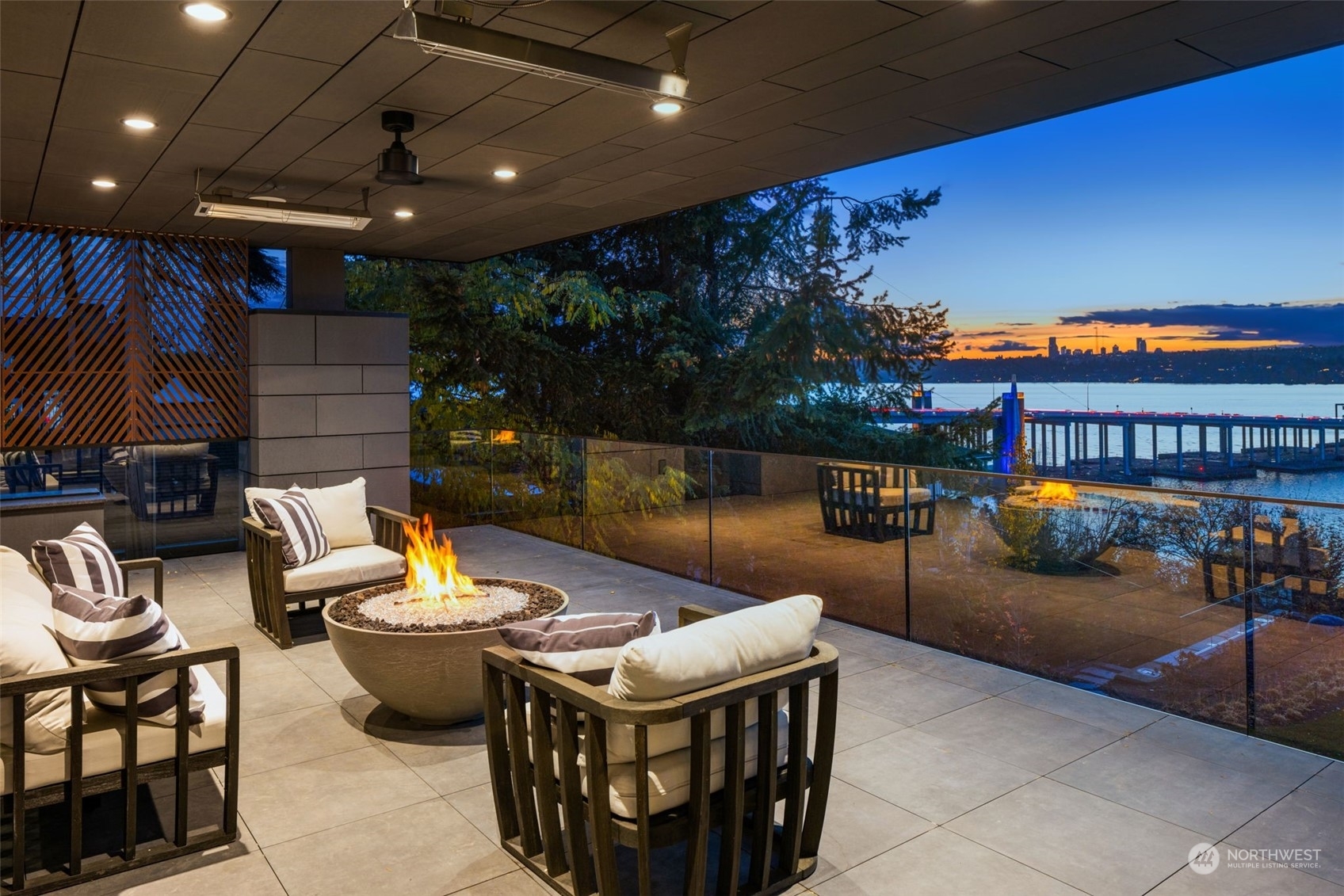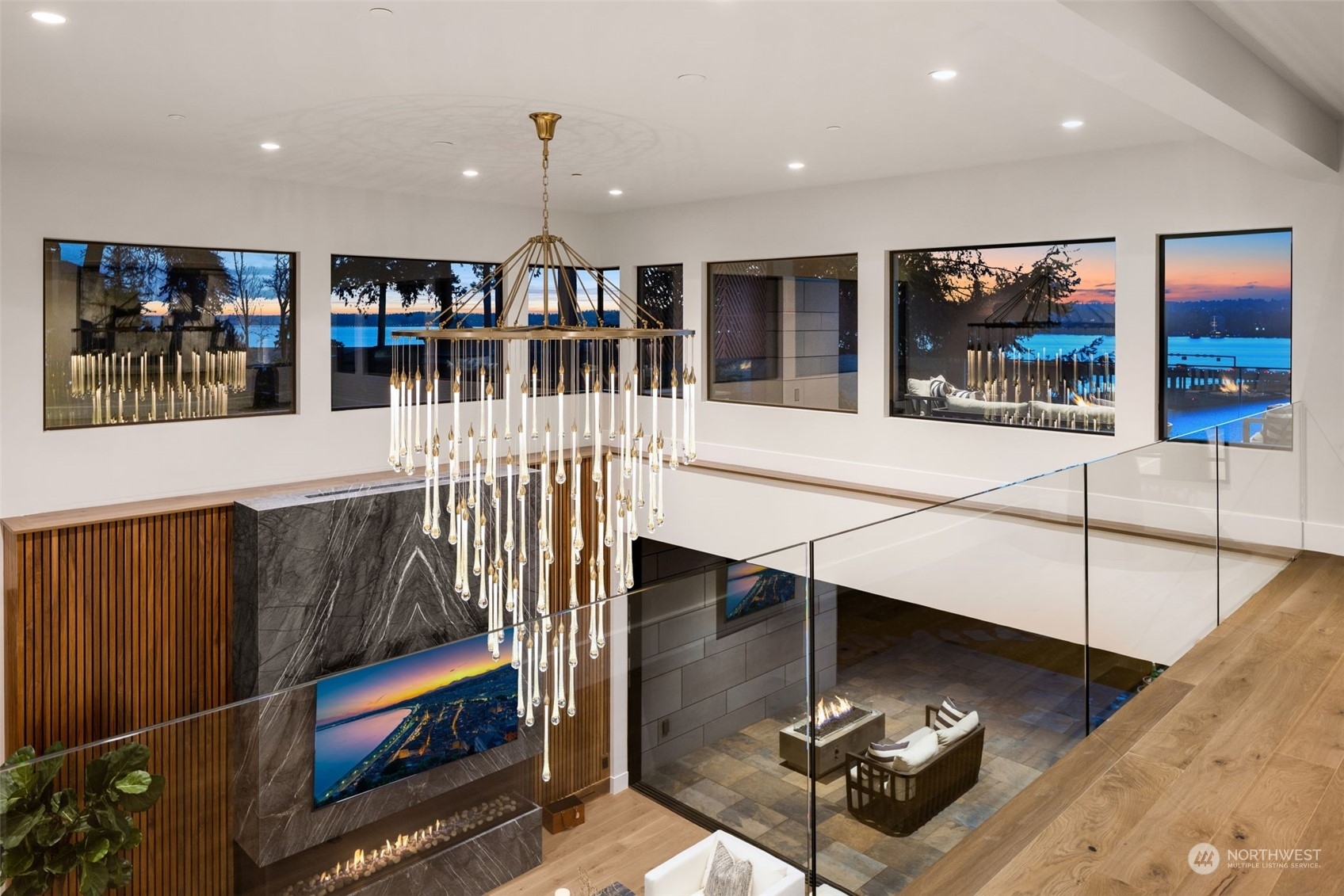 The most exclusive new-construction offering in Medina—where modern design, scale, & rare waterfront access converge. This 12,000+ SF gated estate showcases soaring architecture, an illuminated 20’ quartzite entry wall, and gallery-like interiors with panoramic west-facing views of Lake Washington, Seattle & the Olympics. The main level redefines entertaining with a 22’ wall of glass that disappears to unite indoor & heated outdoor living. A culinary statement, the home offers a primary kitchen and fully outfitted prep kitchen. Amenities include dual primary suites, wine room, theater, sauna, elevator, and 4-car garage. Private path to 32’ of shared waterfront with dock and moorage. A singular opportunity in Medina’s most coveted location.