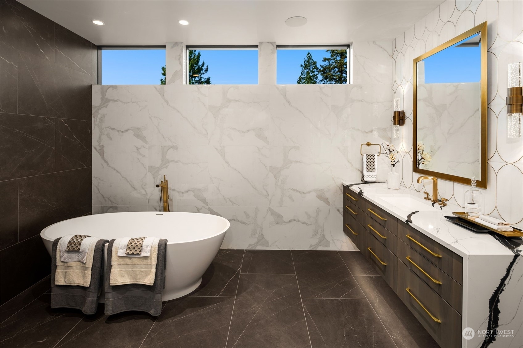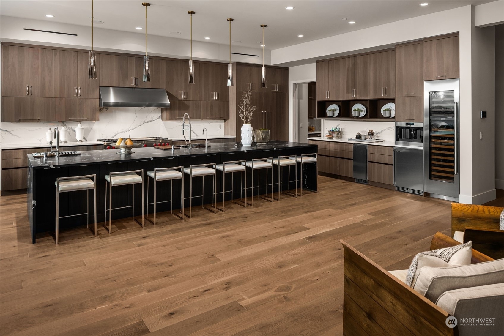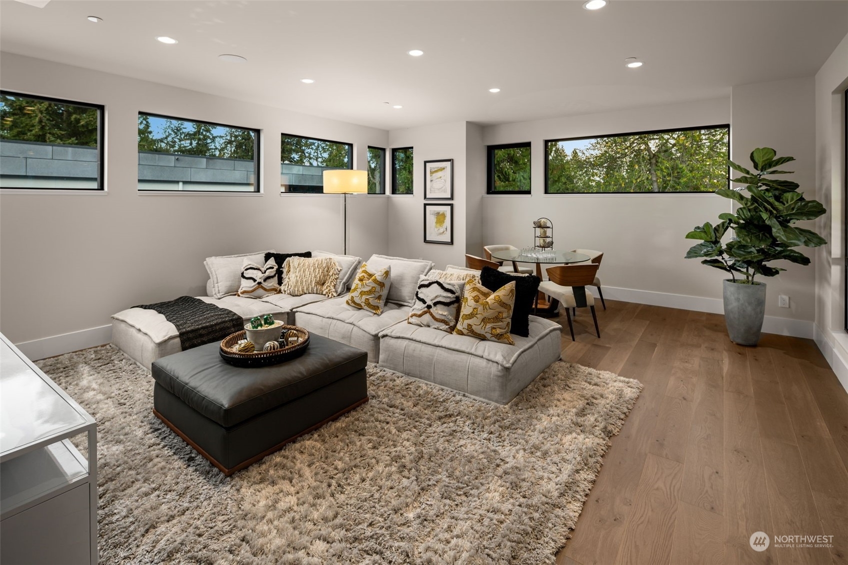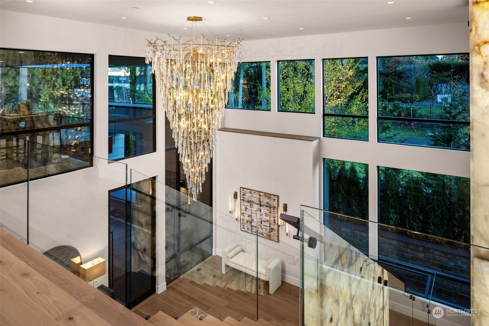 The most exclusive new-construction offering in Medina—where modern design, scale, & rare waterfront access converge. This 12,000+ SF gated estate showcases soaring architecture, an illuminated 20’ quartzite entry wall, and gallery-like interiors with panoramic west-facing views of Lake Washington, Seattle & the Olympics. The main level redefines entertaining with a 22’ wall of glass that disappears to unite indoor & heated outdoor living. A culinary statement, the home offers a primary kitchen and fully outfitted prep kitchen. Amenities include dual primary suites, wine room, theater, sauna, elevator, and 4-car garage. Private path to 32’ of shared waterfront with dock and moorage. A singular opportunity in Medina’s most coveted location.
