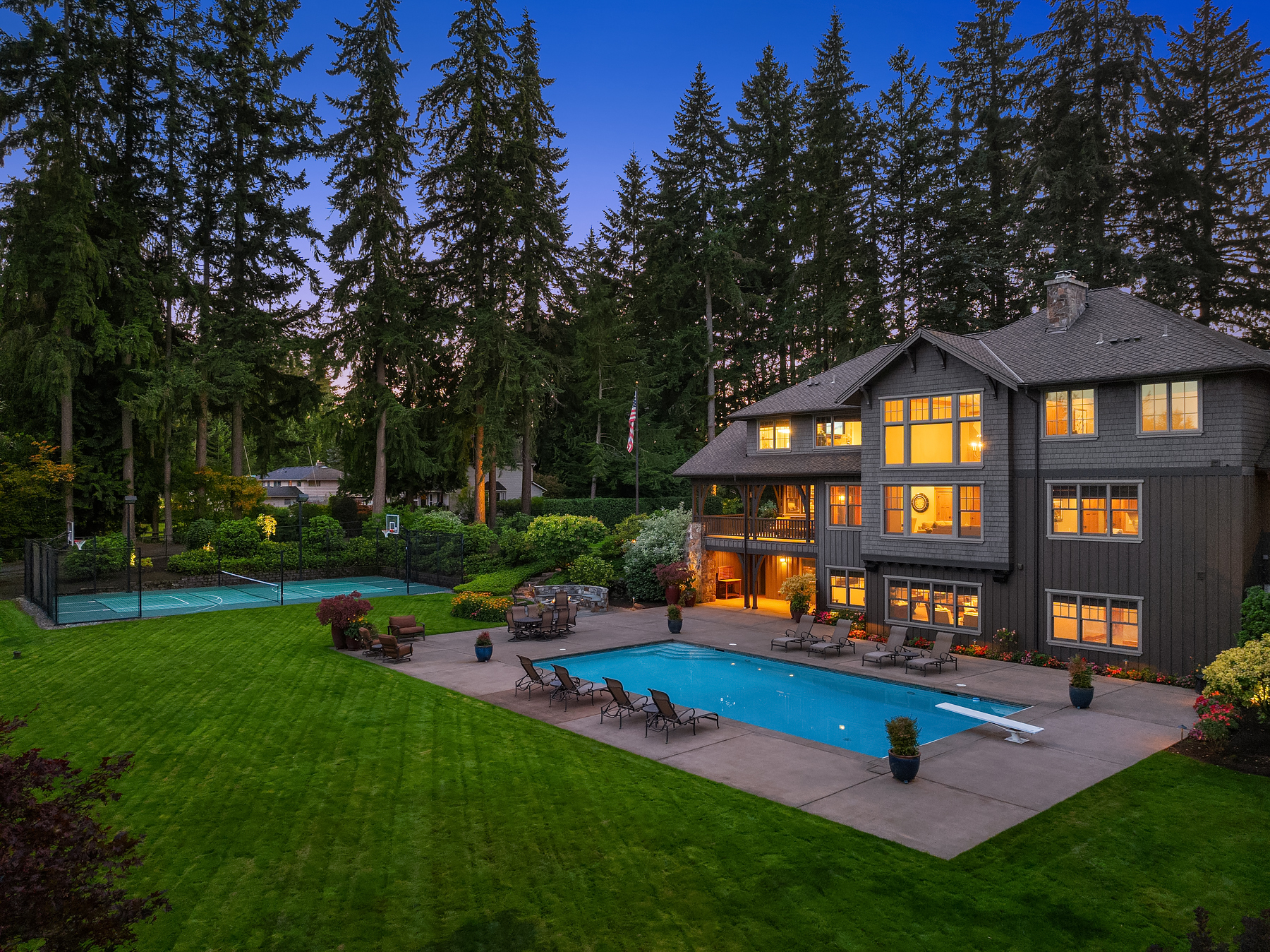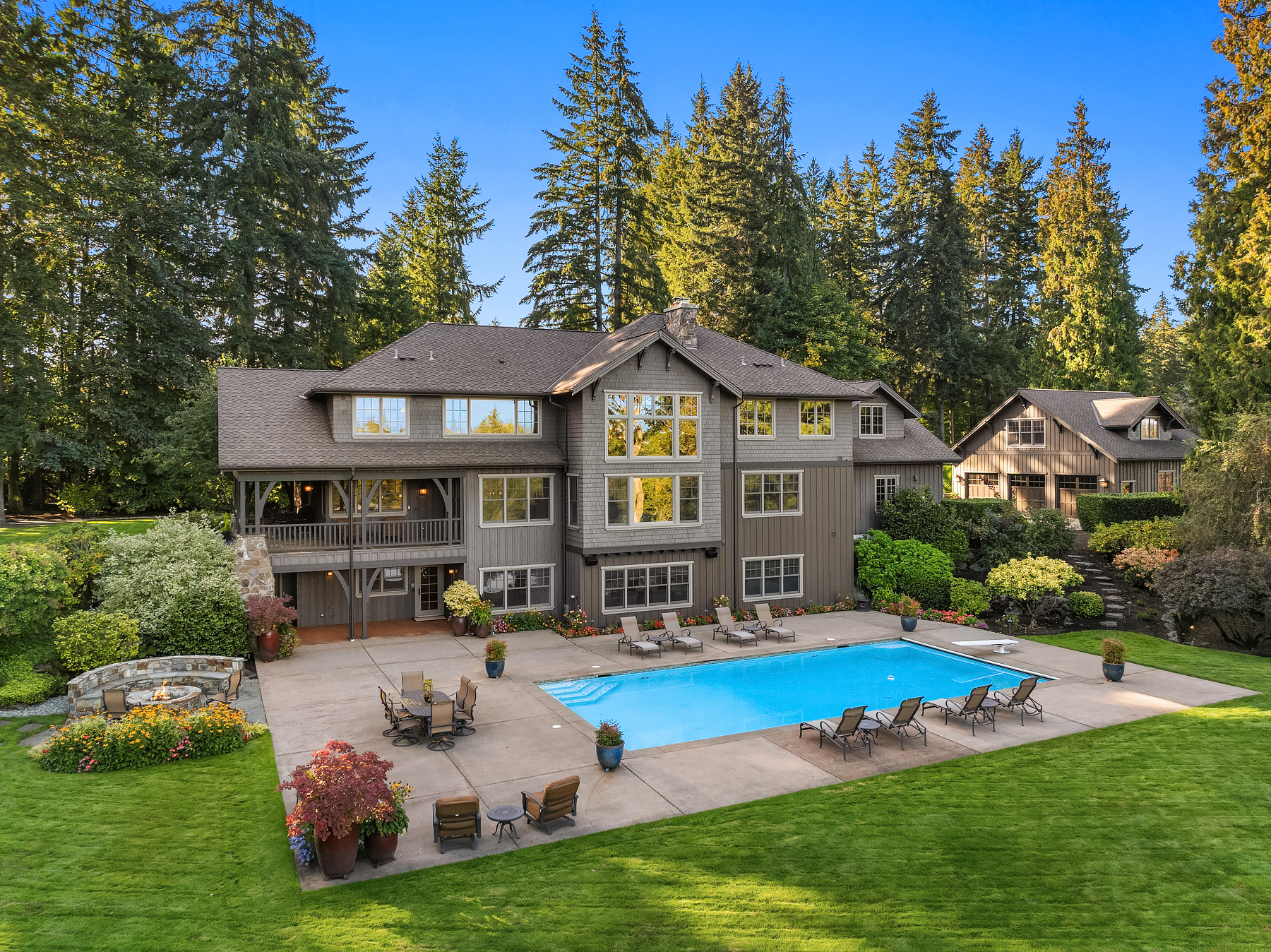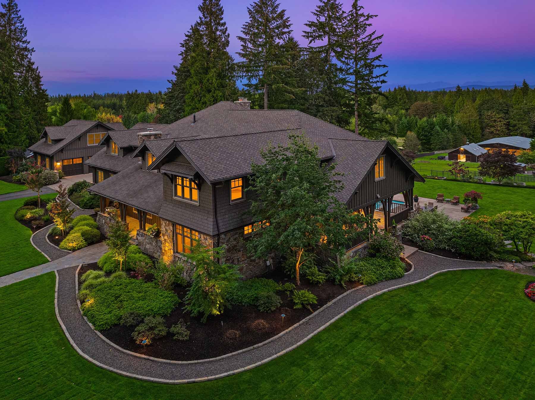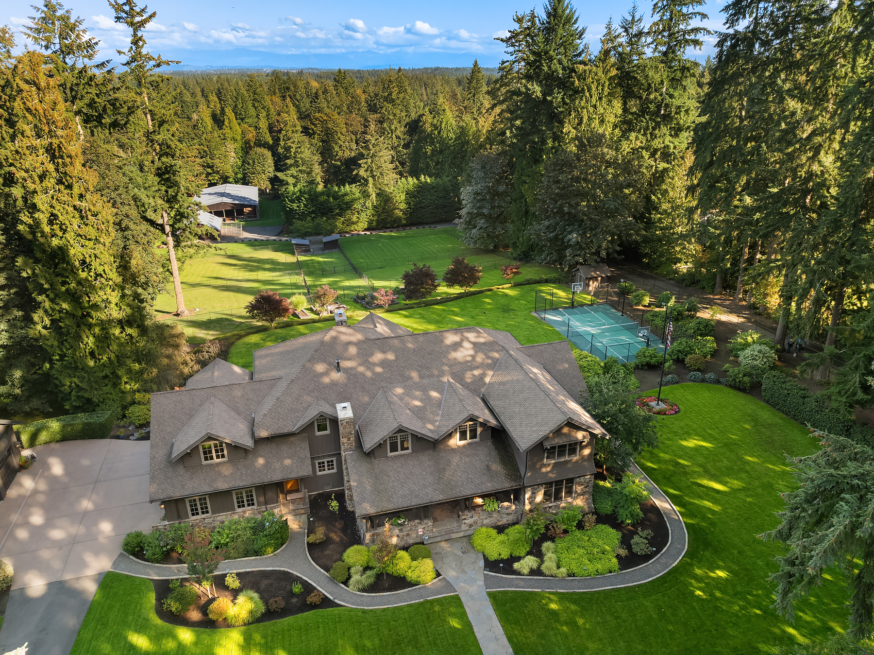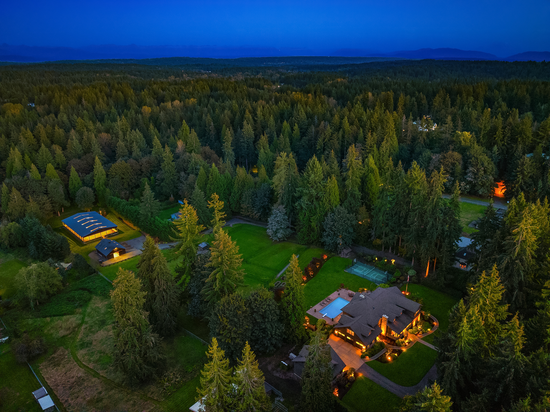 Classic. Timeless. Inviting. Wellington Farm is a legacy, gated equestrian home seamlessly balancing interior comforts w/ perfectly appointed exterior amenities. Rich warm woodwork & carefully curated finishes greet you upon entry. The regal staircase, floor to ceiling fireplace & terraced views of the mountains take you to a place that feels secluded & private, yet you are minutes from Woodinville wine district, shopping & restaurants. Spacious gathering spaces are large enough for festive gatherings yet beckon quiet moments & space for memory making. Plus 2nd kitchen on lower level! Outside enjoy your 70x120 covered riding arena, 4 stall barn & fenced/cross fenced pastures for your horses. Pool & pickle ball court complete the picture.