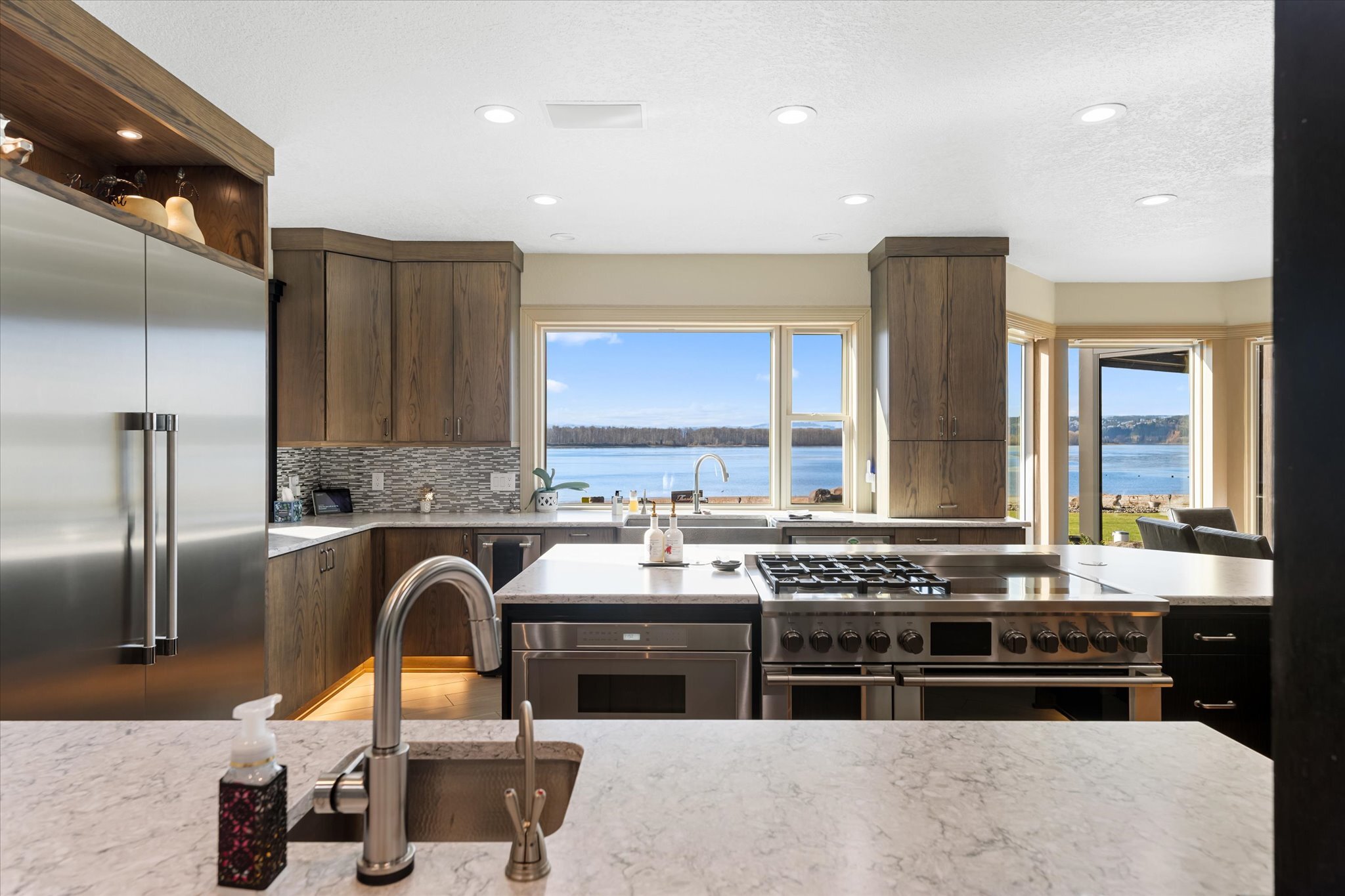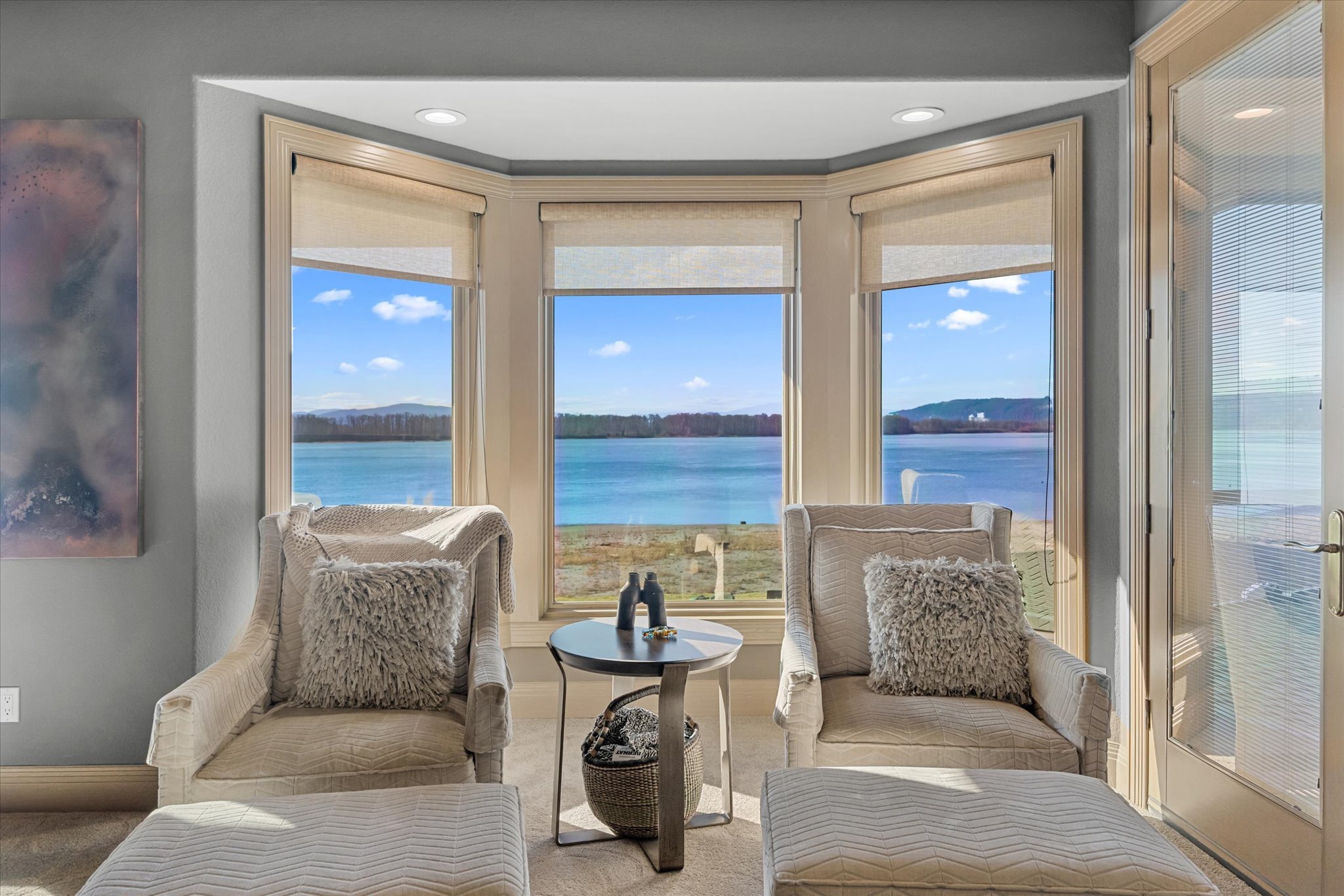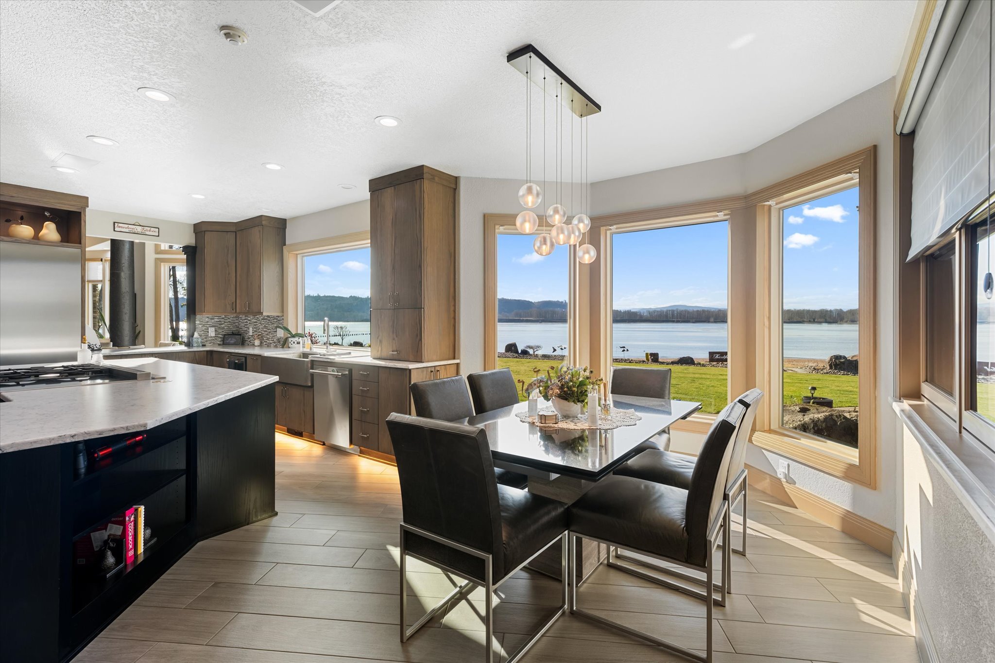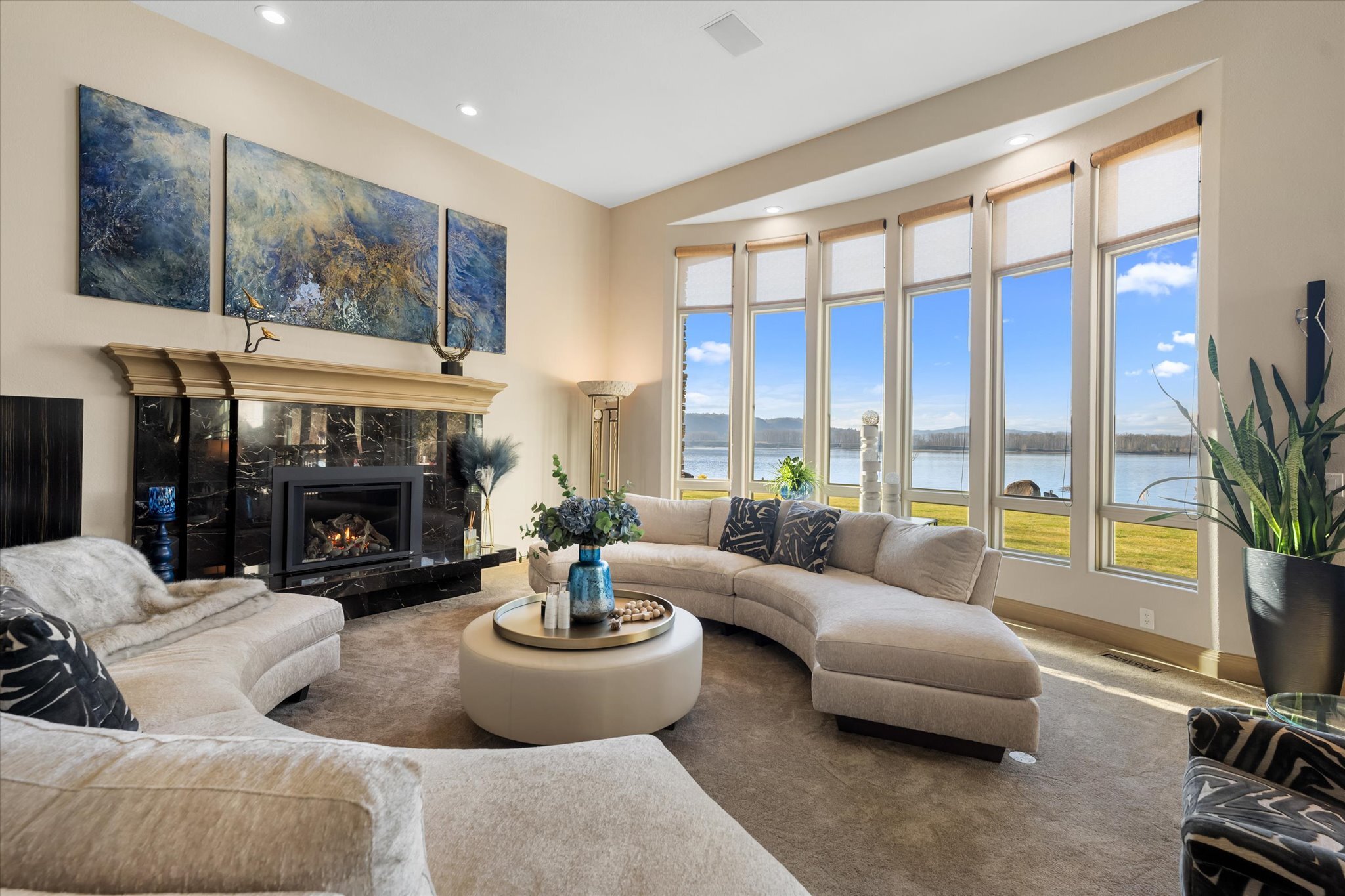 Stunning waterfront estate offers an unparalleled lifestyle, with 16 acres of privacy surrounded by water on three sides. Over 1,000 feet of sandy Columbia River beach and breathtaking views from nearly every room in the 7,280 sq ft home. Picturesque boardwalk leads to the 80-ft long boat dock, ideal for water adventures. Completely remodeled open kitchen is a chef’s dream with 3 ovens, quartz counters, and so much more. River front gazebo is perfect for hosting large gatherings with a full kitchen and the option to enclose-complete with playground, gas fire pit and more. 4 bedrooms, office, 2 versatile flex rooms and 5 bathrooms. Primary suite is an oasis of comfort you'll never want to leave. Garage parking for at least 10 cars and an RV.