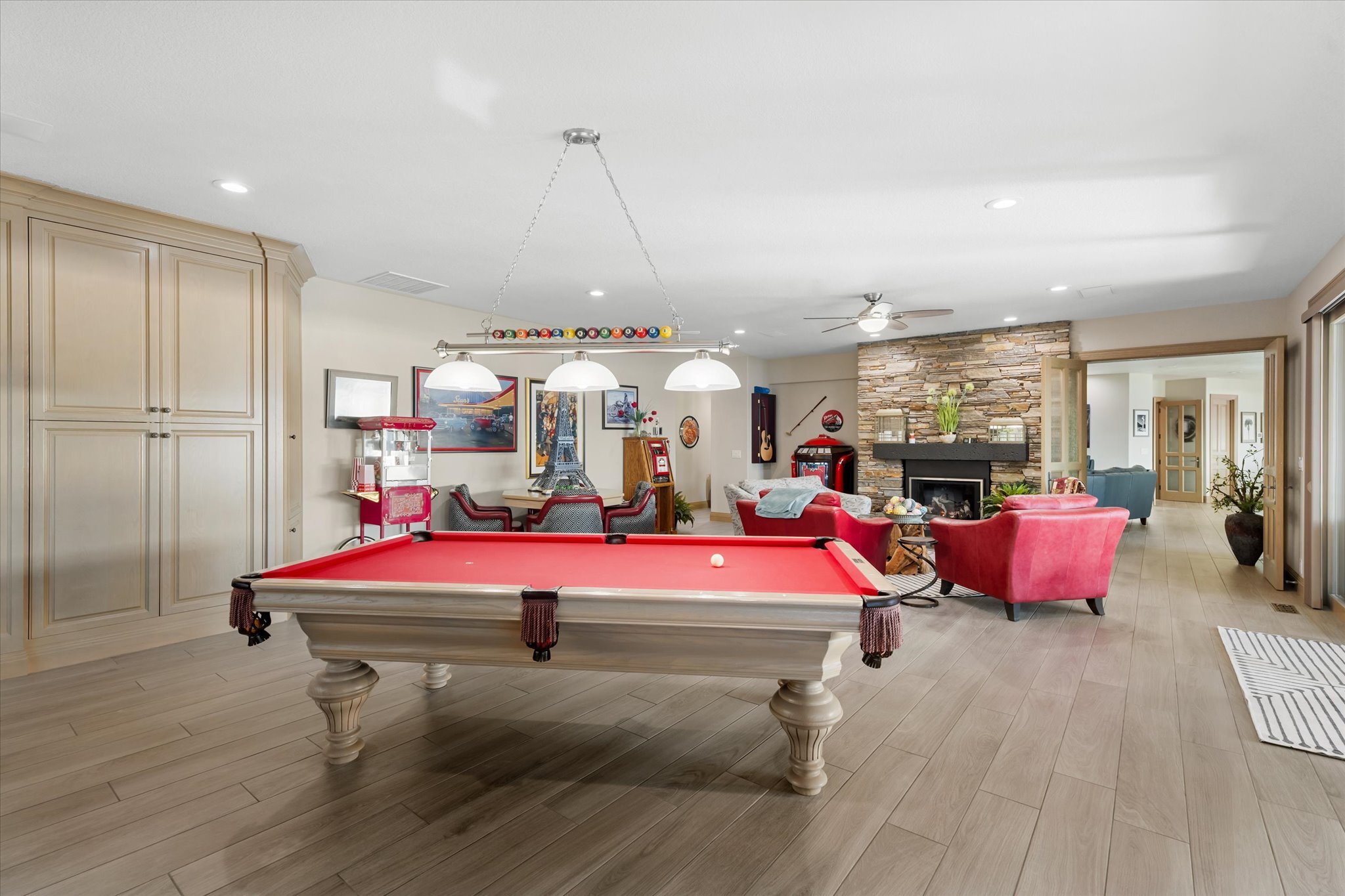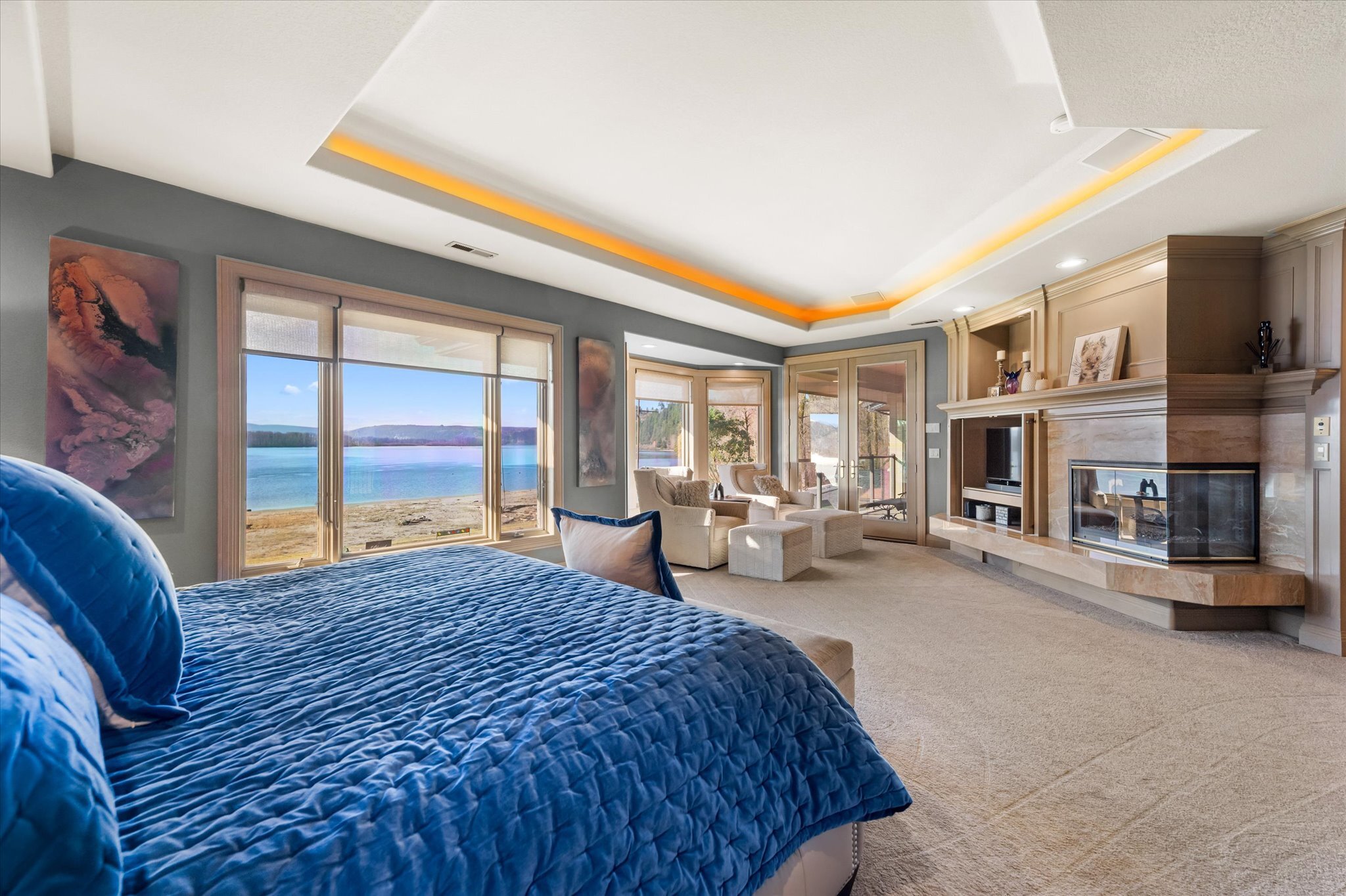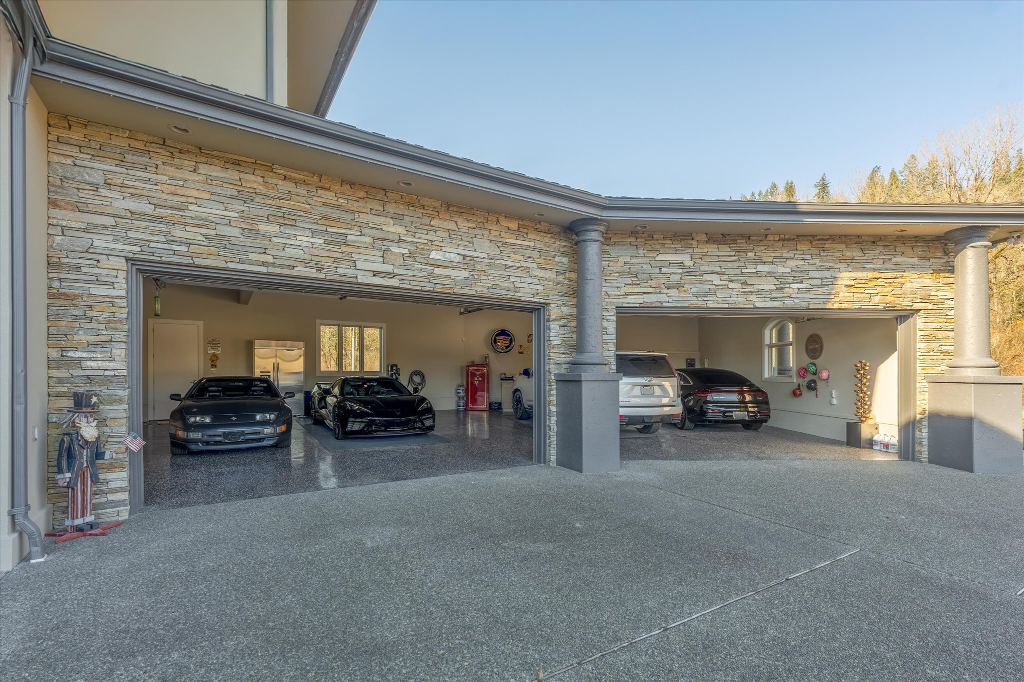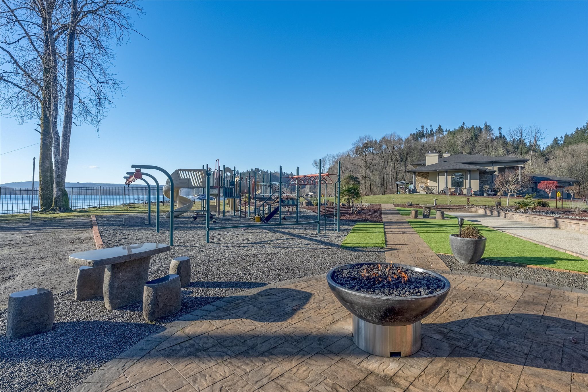 Stunning waterfront estate offers an unparalleled lifestyle, with 16 acres of privacy surrounded by water on three sides. Over 1,000 feet of sandy Columbia River beach and breathtaking views from nearly every room in the 7,280 sq ft home. Picturesque boardwalk leads to the 80-ft long boat dock, ideal for water adventures. Completely remodeled open kitchen is a chef’s dream with 3 ovens, quartz counters, and so much more. River front gazebo is perfect for hosting large gatherings with a full kitchen and the option to enclose-complete with playground, gas fire pit and more. 4 bedrooms, office, 2 versatile flex rooms and 5 bathrooms. Primary suite is an oasis of comfort you'll never want to leave. Garage parking for at least 10 cars and an RV.