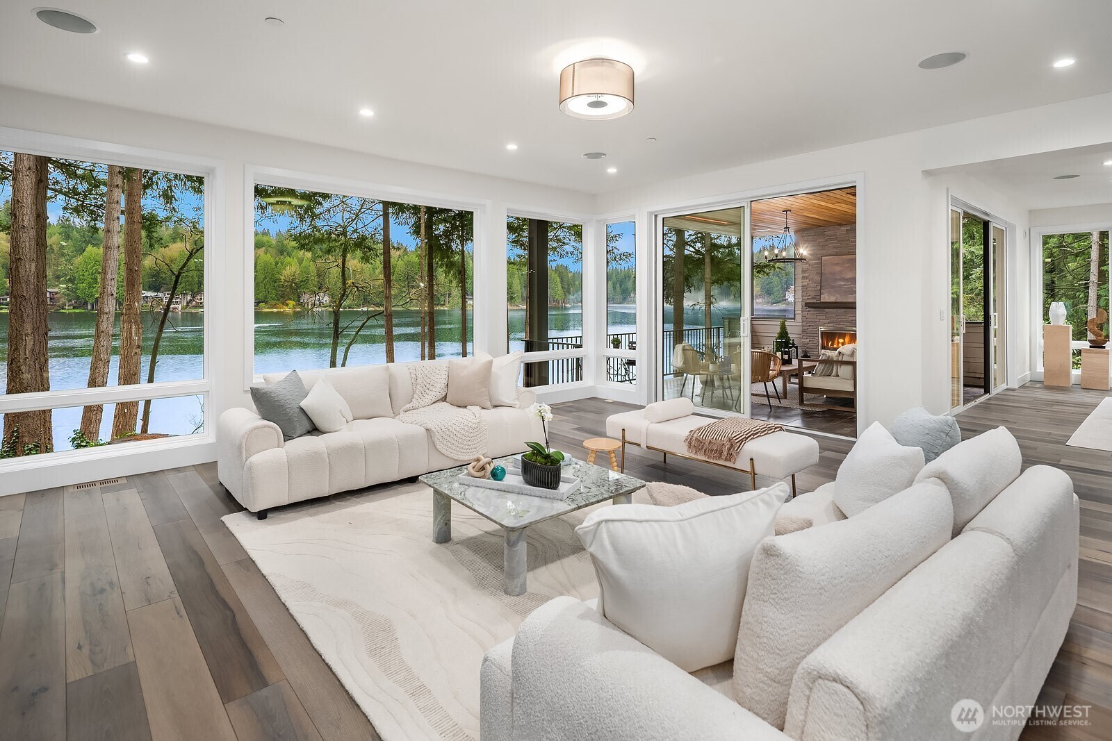 Gorgeous Ames Lake custom-built masterpiece featuring 100 feet of pristine no-bank waterfront set on large, private, flat lot. Surrounded in windows to take in the views. Great room flows to the chef’s dream kitchen with high-end appliances and walk-in pantry. Spacious covered deck for year-round enjoyment of the lake. Den/office just off the great room. Upper level features a stunning primary suite with spa bath all situated to take in the views, and two luxurious junior suites. Lower-level has a guest suite or 2nd office, full bath and bonus room that flows outside for ideal lakeside entertaining or just relaxing. Paddleboarding, fishing, boating are your backyard activities. A serene escape that is just minutes from Redmond & Bellevue.