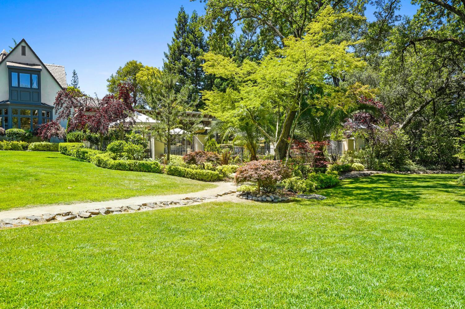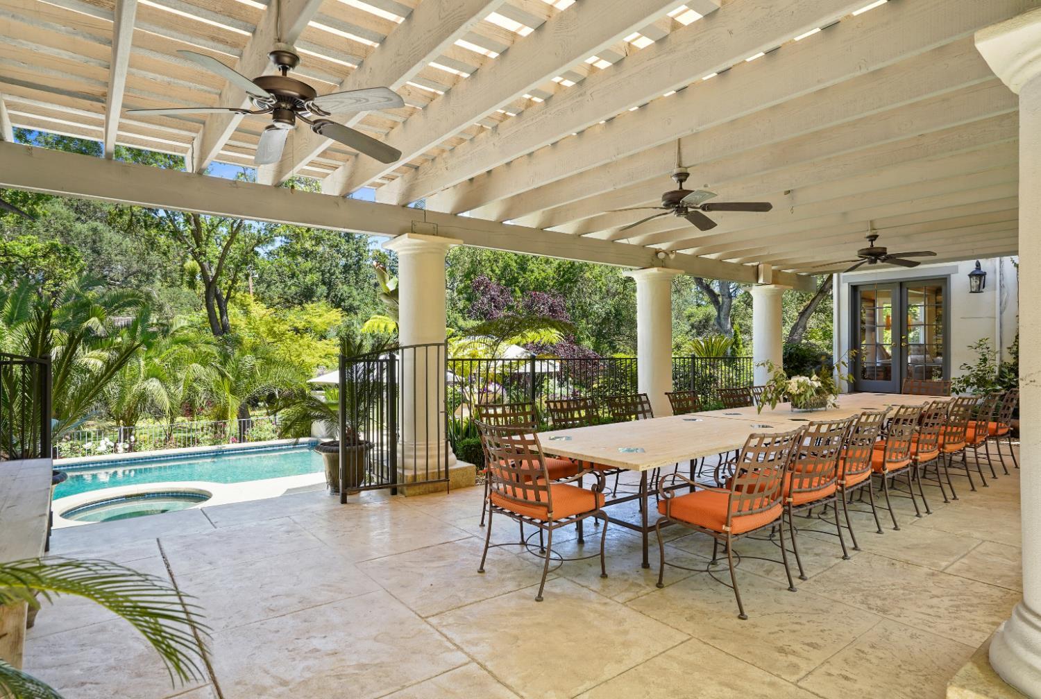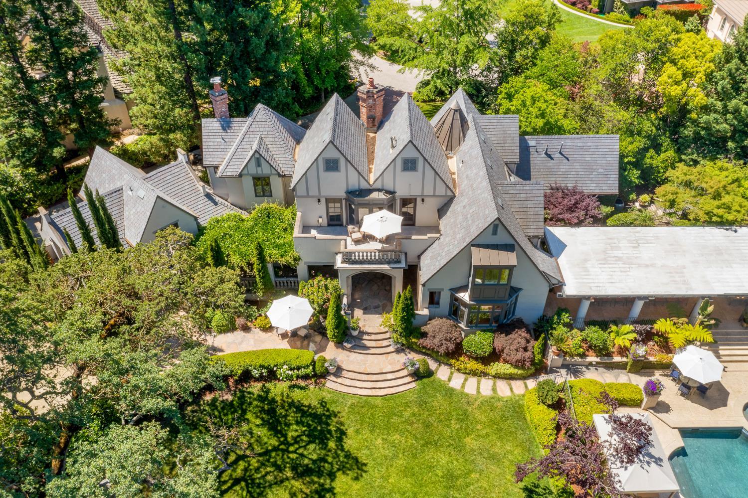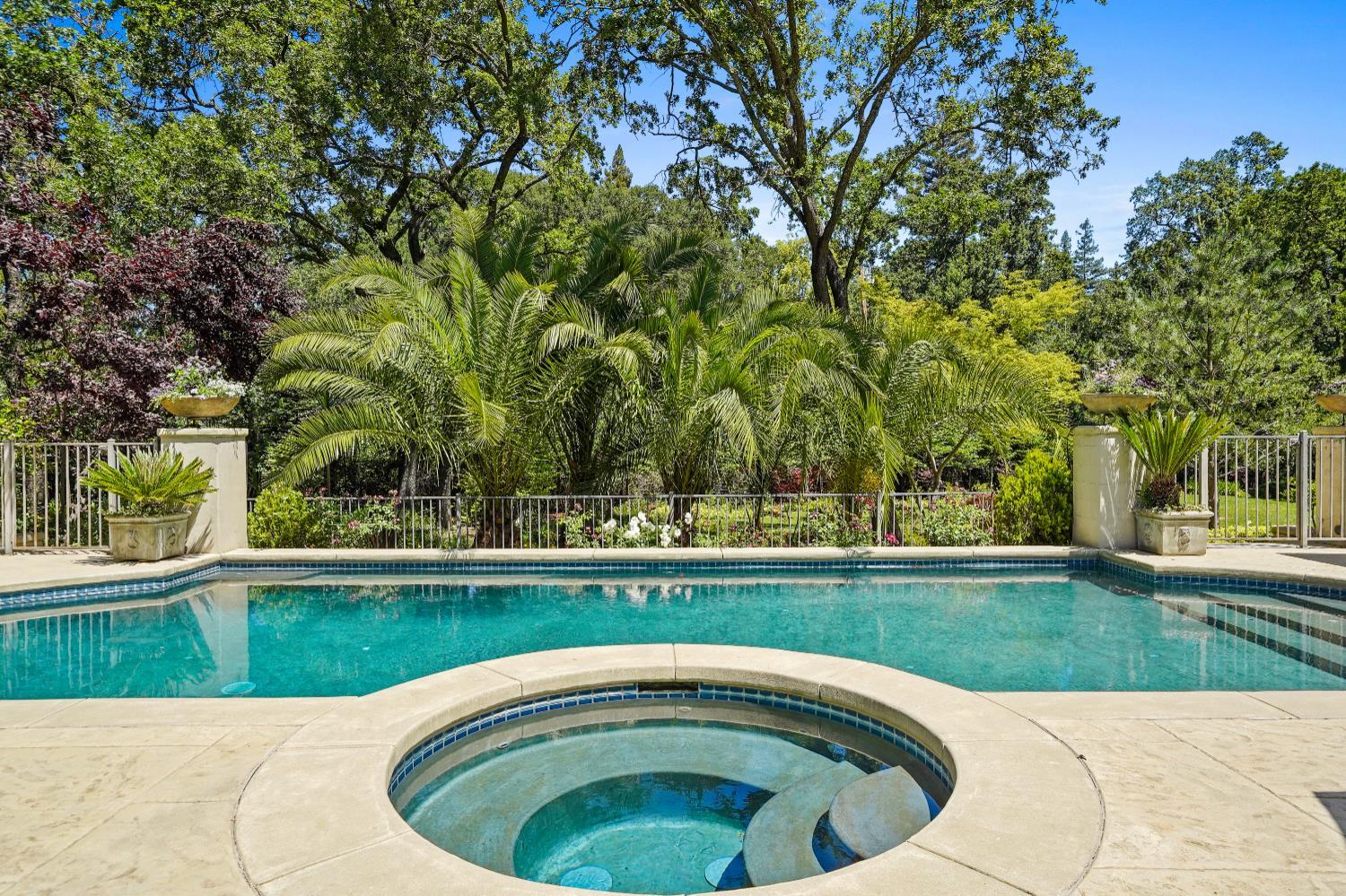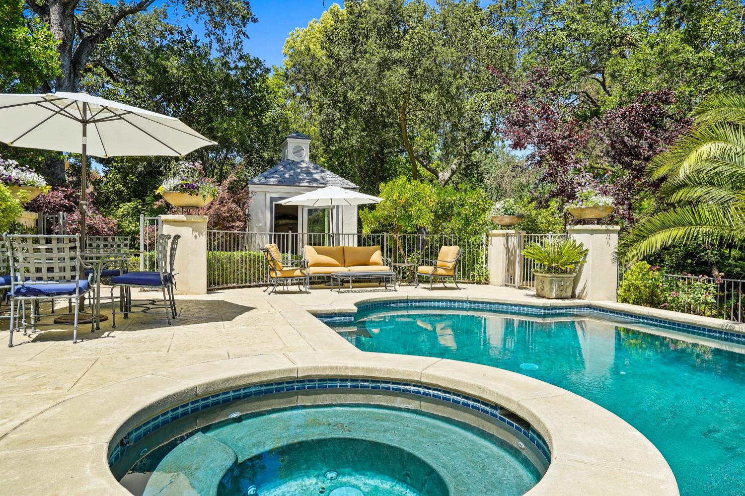 Prestigious Knightsbridge Lane, secluded behind gates, is home to this exceptional estate offering privacy and elegance in Sierra Oaks Vista. Set on over an acre of lush gardens and majestic Heritage Oaks, this Chateau-inspired home seamlessly blends timeless charm with modern luxury. Inside, you'll find stunning beamed ceilings in the formal dining room, a full library, and a gourmet chef's kitchen featuring a grand marble islandperfect for entertaining. The spa-inspired primary suite offers a tranquil retreat with a balcony overlooking the gardens, while the spectacular wine cellar, separate in-law flat, and poolside gym cater to every lifestyle need. Step outside to enjoy a resort-style loggia with seating for 20, an outdoor kitchen and BBQ, a relaxing fireplace lounge by the pool, a rose garden, and a secluded fire pit. All just minutes from top schools, restaurants, shopping, freeway access, and downtown Sacramento. This is more than a homeit's a private sanctuary in the heart of the city.