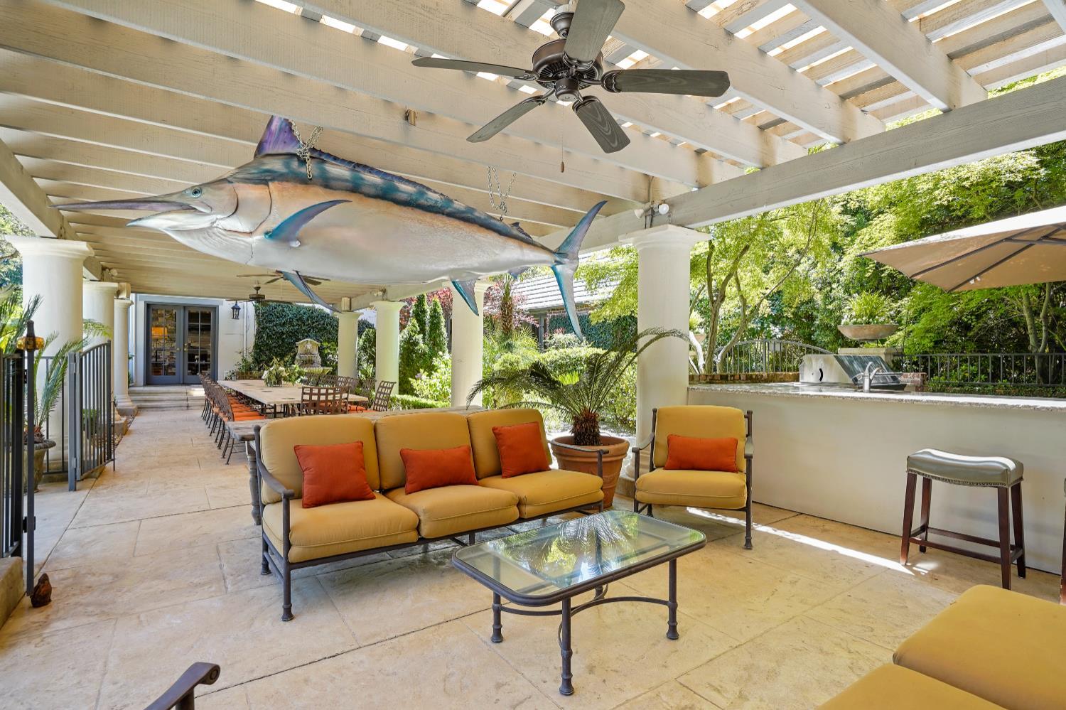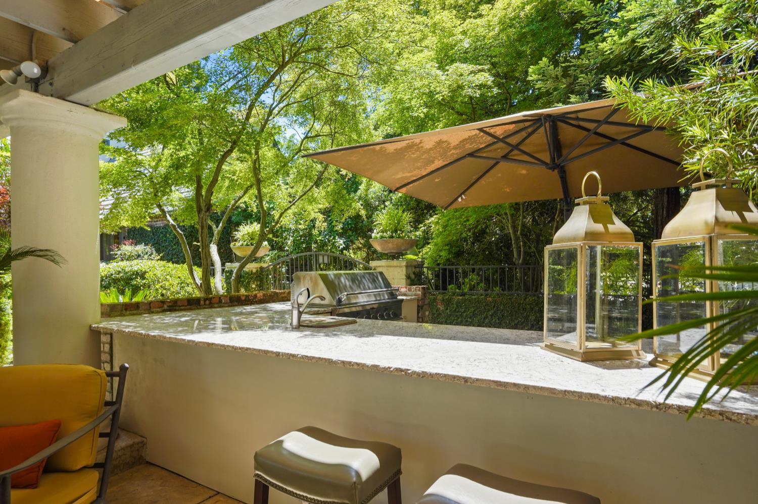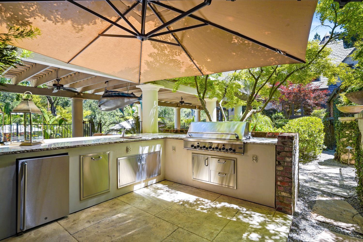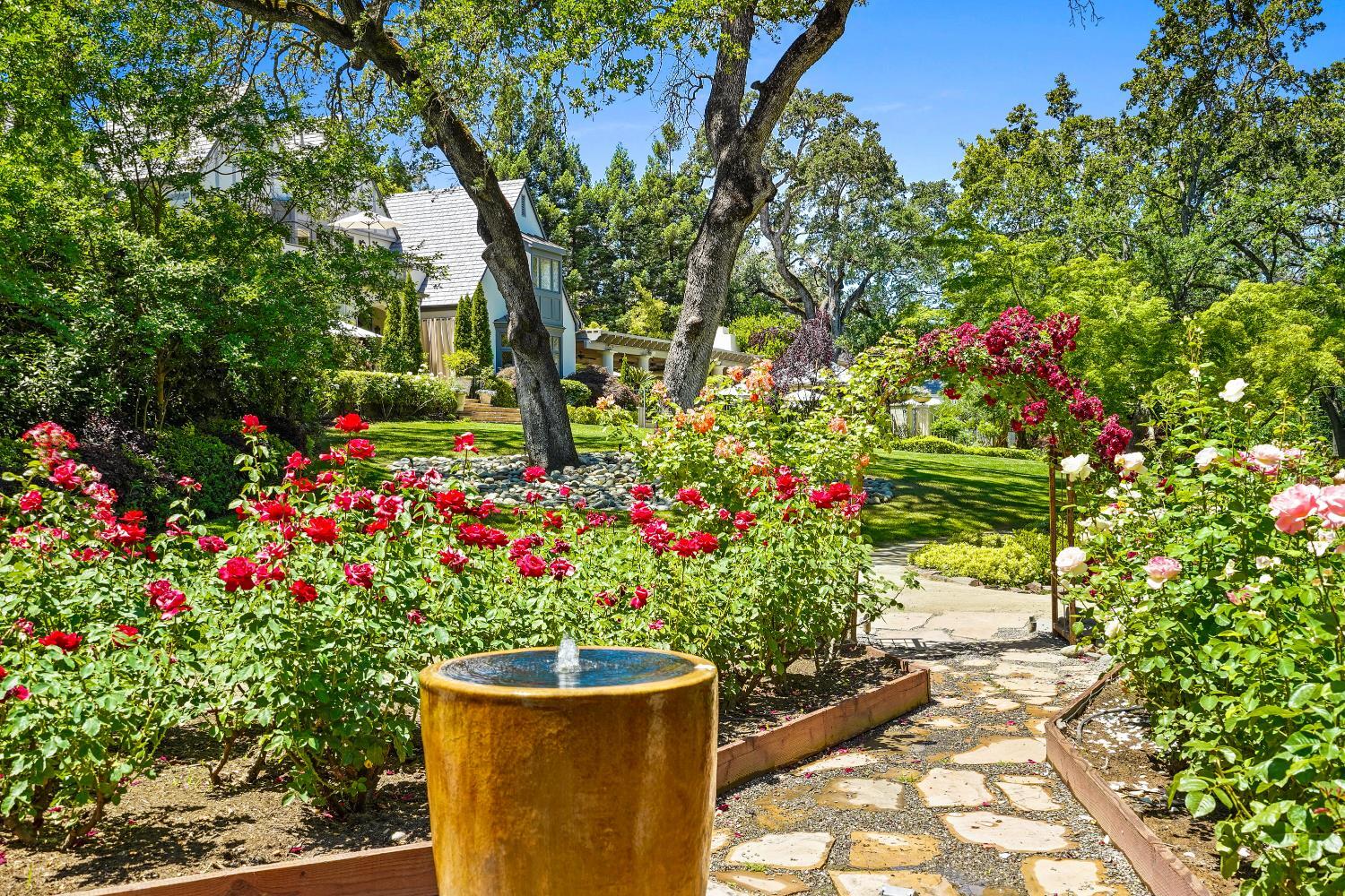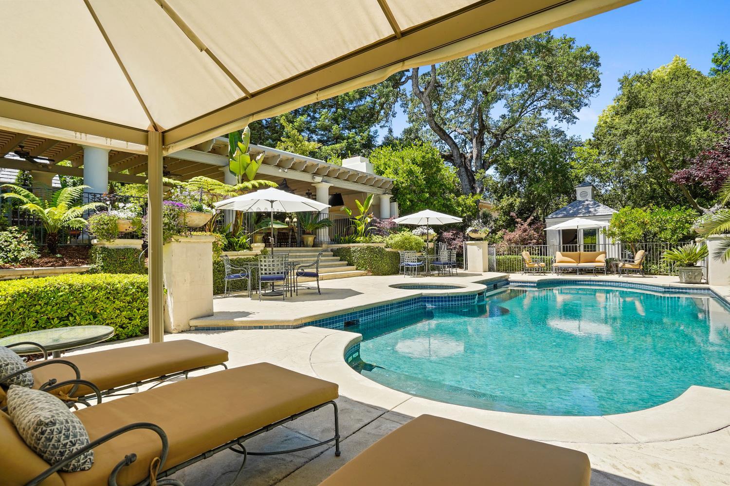 Prestigious Knightsbridge Lane, secluded behind gates, is home to this exceptional estate offering privacy and elegance in Sierra Oaks Vista. Set on over an acre of lush gardens and majestic Heritage Oaks, this Chateau-inspired home seamlessly blends timeless charm with modern luxury. Inside, you'll find stunning beamed ceilings in the formal dining room, a full library, and a gourmet chef's kitchen featuring a grand marble islandperfect for entertaining. The spa-inspired primary suite offers a tranquil retreat with a balcony overlooking the gardens, while the spectacular wine cellar, separate in-law flat, and poolside gym cater to every lifestyle need. Step outside to enjoy a resort-style loggia with seating for 20, an outdoor kitchen and BBQ, a relaxing fireplace lounge by the pool, a rose garden, and a secluded fire pit. All just minutes from top schools, restaurants, shopping, freeway access, and downtown Sacramento. This is more than a homeit's a private sanctuary in the heart of the city.
