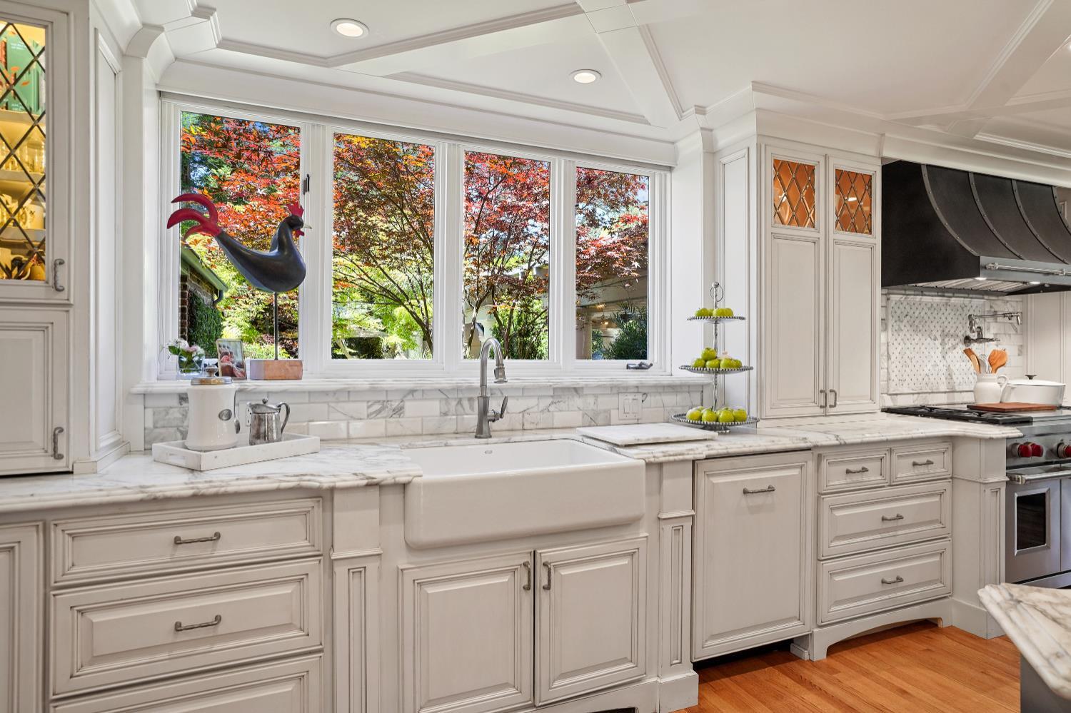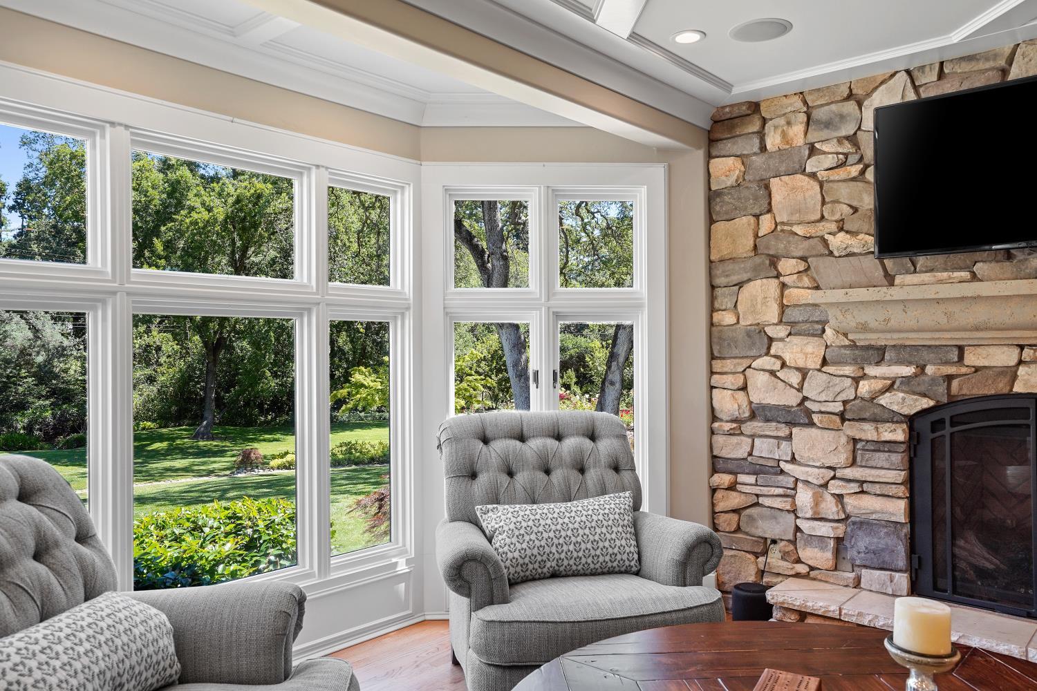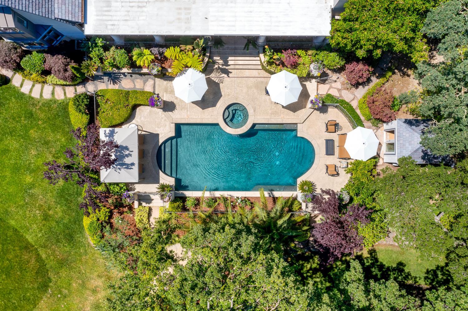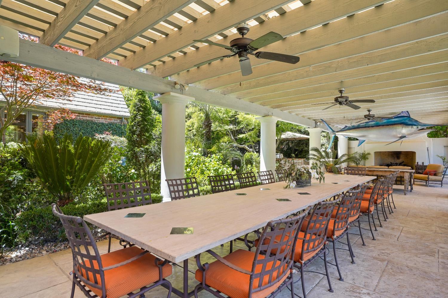 Prestigious Knightsbridge Lane, secluded behind gates, is home to this exceptional estate offering privacy and elegance in Sierra Oaks Vista. Set on over an acre of lush gardens and majestic Heritage Oaks, this Chateau-inspired home seamlessly blends timeless charm with modern luxury. Inside, you'll find stunning beamed ceilings in the formal dining room, a full library, and a gourmet chef's kitchen featuring a grand marble islandperfect for entertaining. The spa-inspired primary suite offers a tranquil retreat with a balcony overlooking the gardens, while the spectacular wine cellar, separate in-law flat, and poolside gym cater to every lifestyle need. Step outside to enjoy a resort-style loggia with seating for 20, an outdoor kitchen and BBQ, a relaxing fireplace lounge by the pool, a rose garden, and a secluded fire pit. All just minutes from top schools, restaurants, shopping, freeway access, and downtown Sacramento. This is more than a homeit's a private sanctuary in the heart of the city.