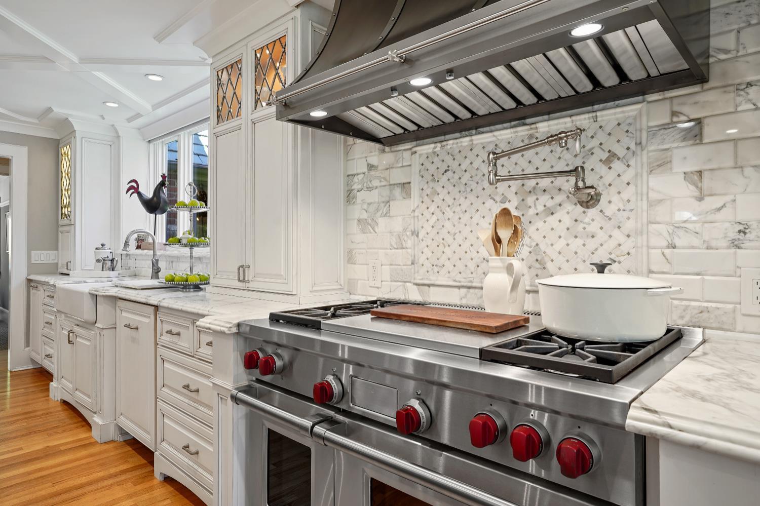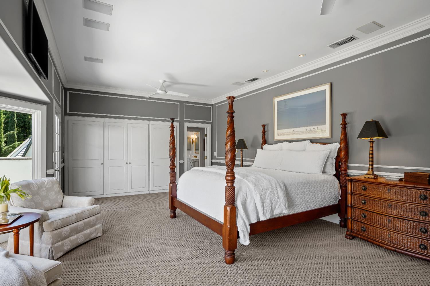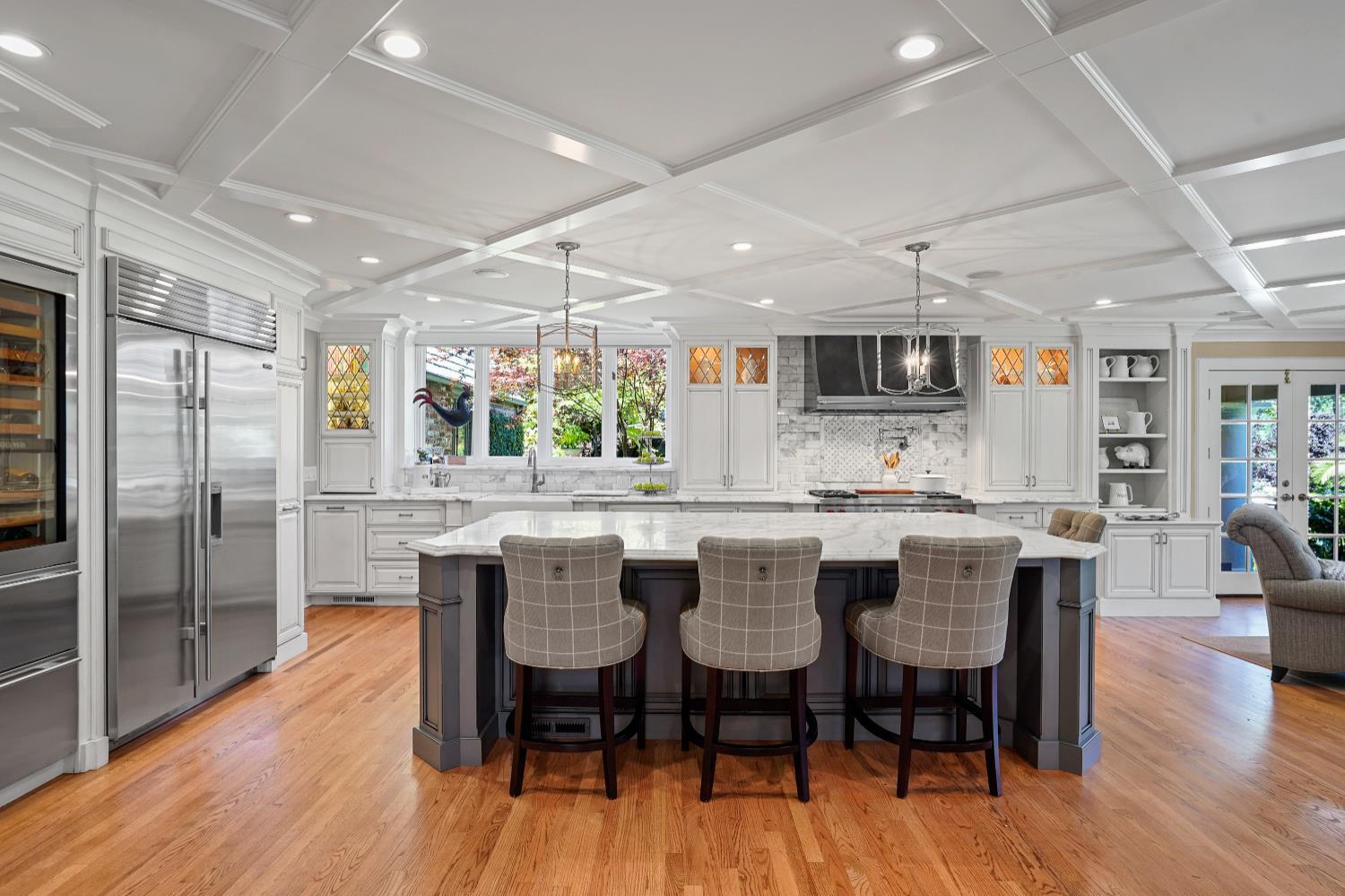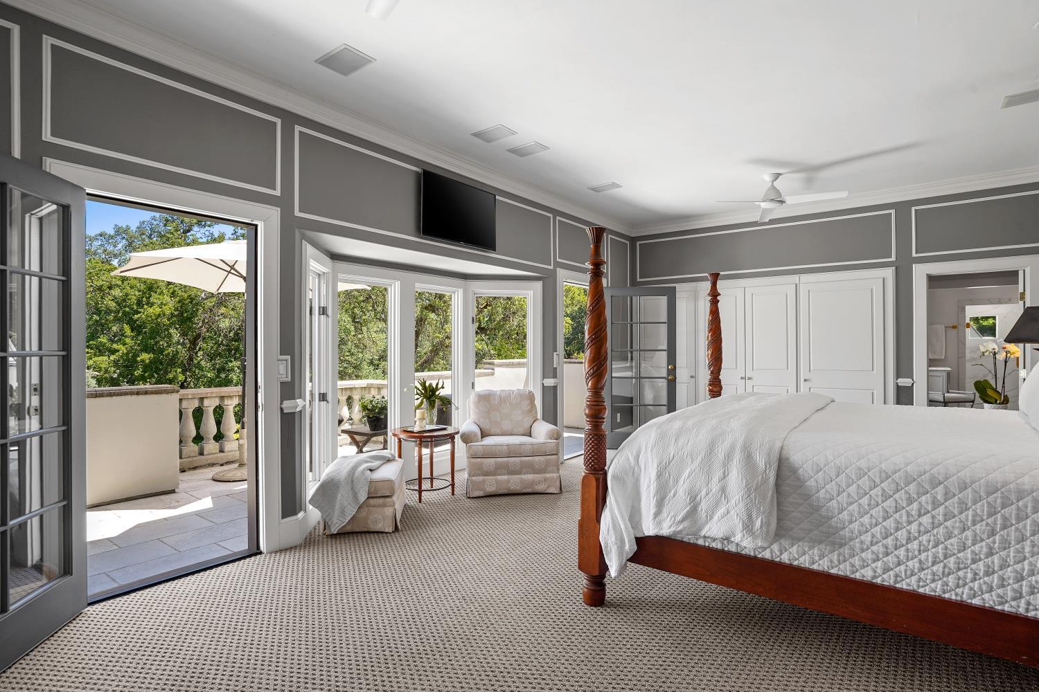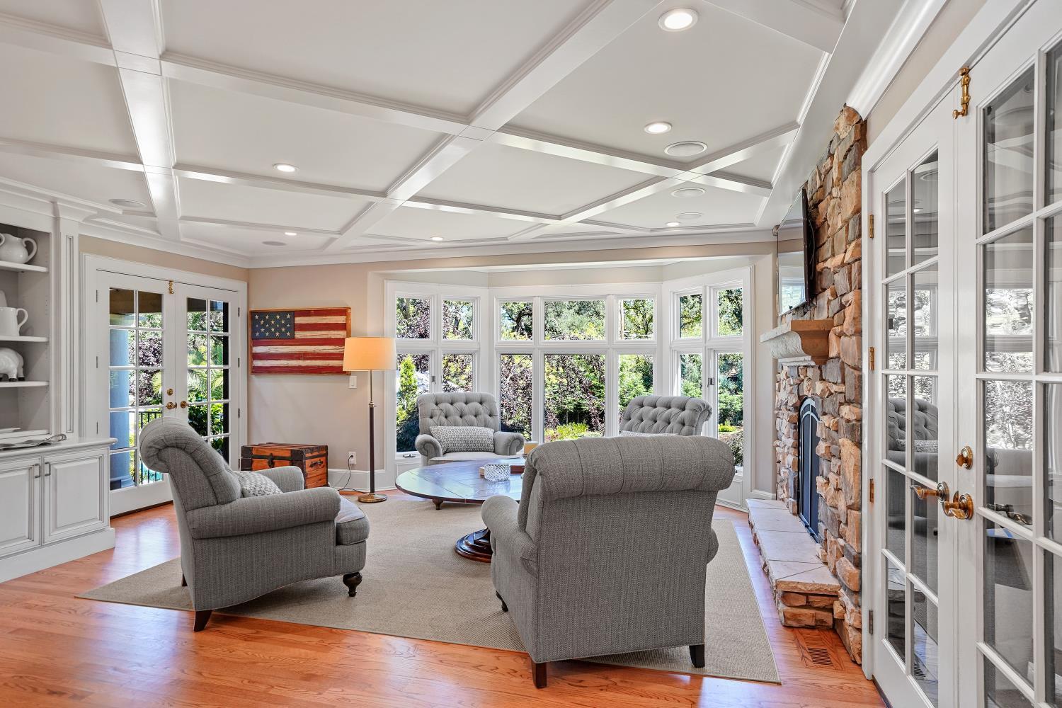 Prestigious Knightsbridge Lane, secluded behind gates, is home to this exceptional estate offering privacy and elegance in Sierra Oaks Vista. Set on over an acre of lush gardens and majestic Heritage Oaks, this Chateau-inspired home seamlessly blends timeless charm with modern luxury. Inside, you'll find stunning beamed ceilings in the formal dining room, a full library, and a gourmet chef's kitchen featuring a grand marble islandperfect for entertaining. The spa-inspired primary suite offers a tranquil retreat with a balcony overlooking the gardens, while the spectacular wine cellar, separate in-law flat, and poolside gym cater to every lifestyle need. Step outside to enjoy a resort-style loggia with seating for 20, an outdoor kitchen and BBQ, a relaxing fireplace lounge by the pool, a rose garden, and a secluded fire pit. All just minutes from top schools, restaurants, shopping, freeway access, and downtown Sacramento. This is more than a homeit's a private sanctuary in the heart of the city.