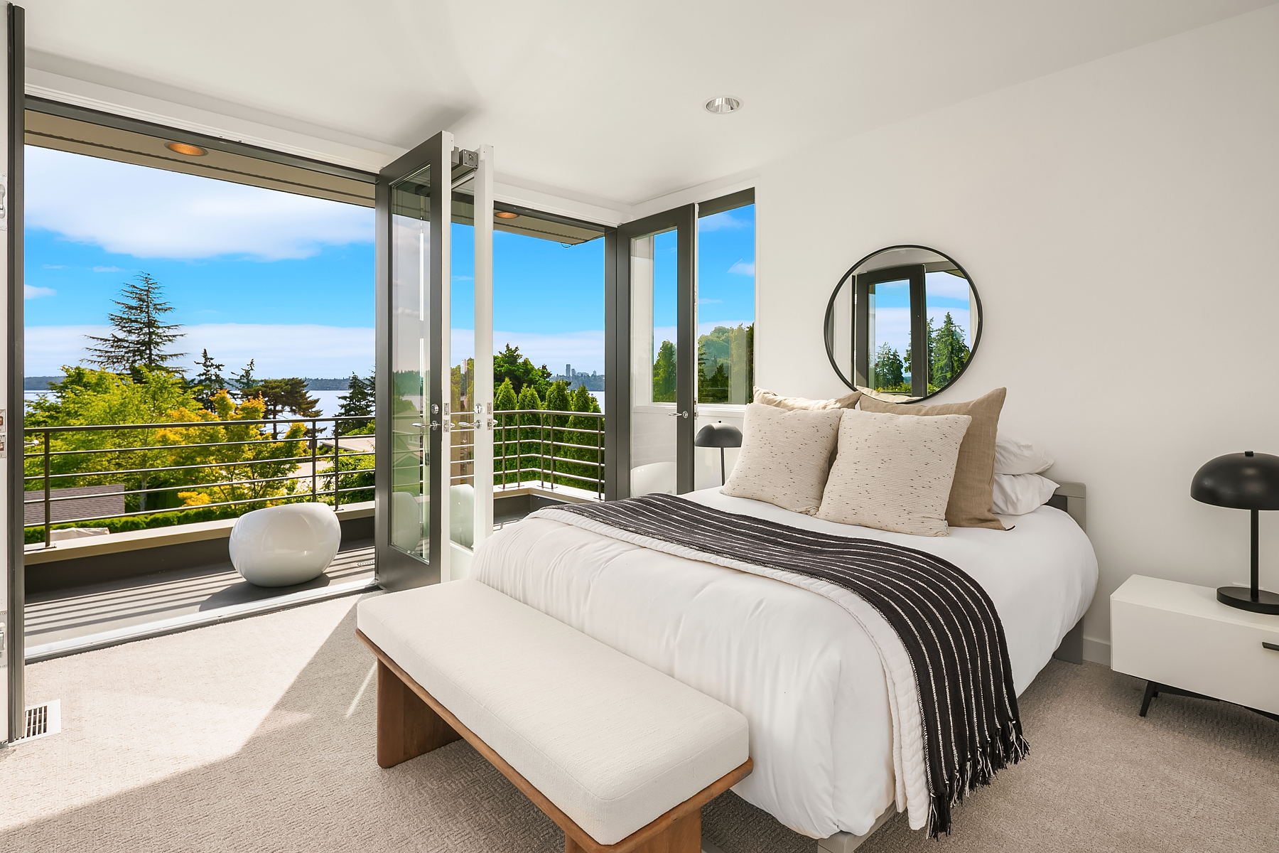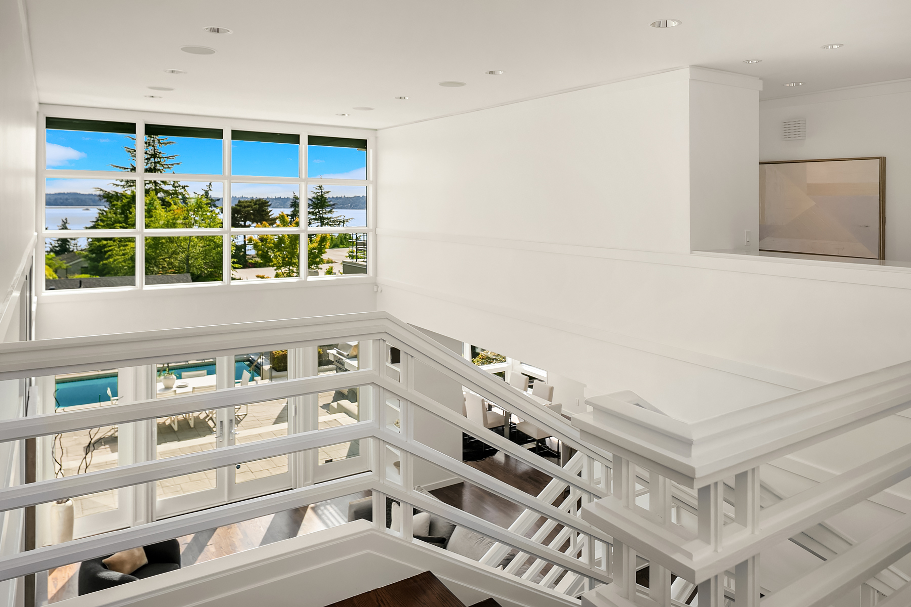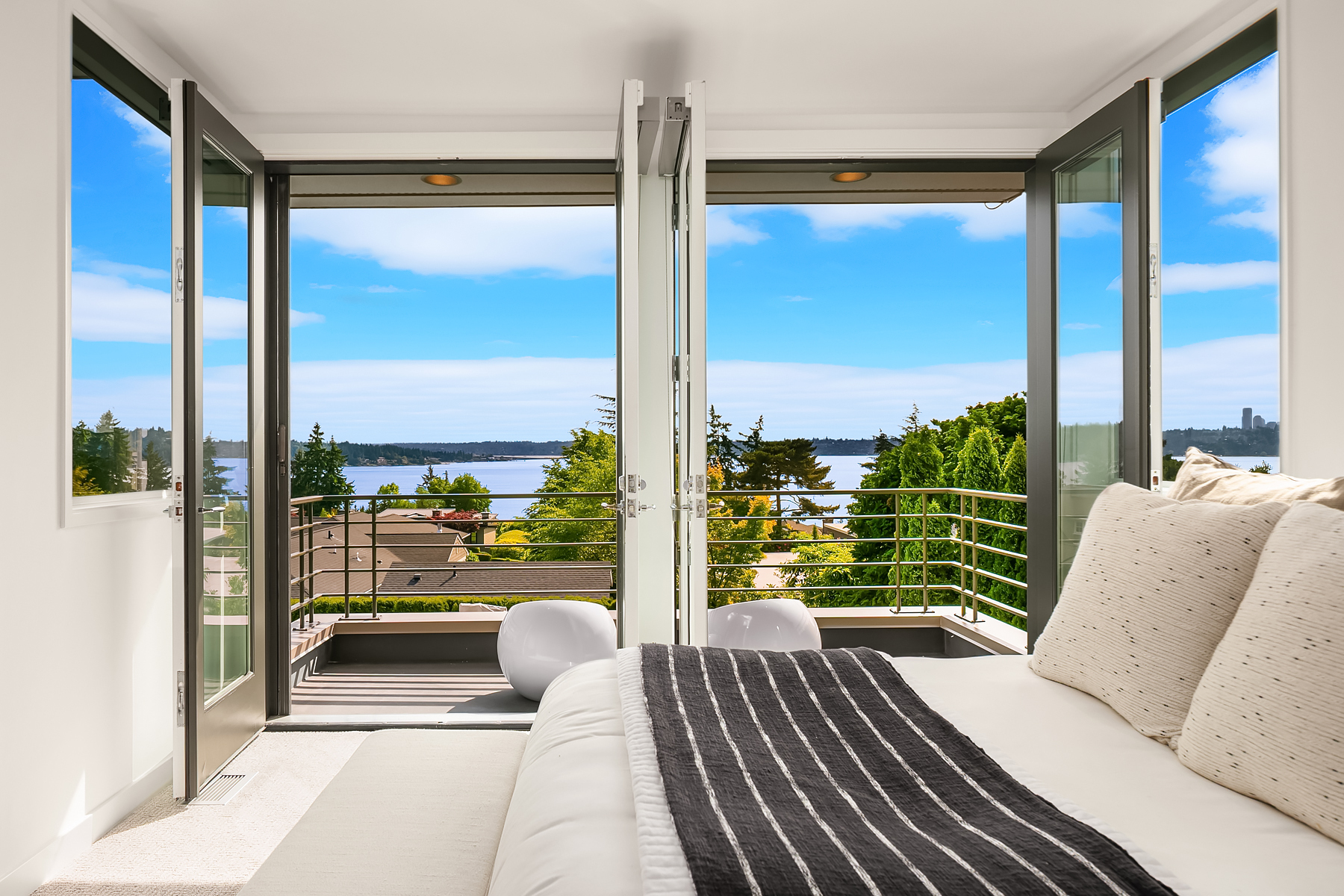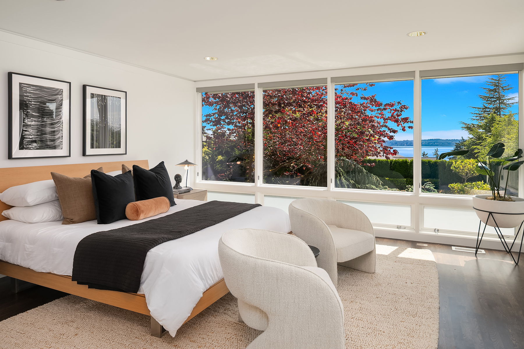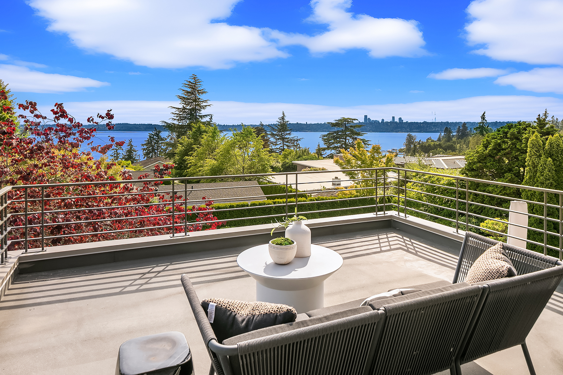 Set in coveted Medina Heights and enveloped in verdant landscaping, this Bender-Chaffey custom residence offers sweeping Westerly views of Lake Washington, Seattle Skyline and Olympic Mountains from both levels. Designed for grand entertaining and everyday elegance, the home features an impressive remodel, soaring ceilings and floor-to-ceiling glass walls that capture the stunning vistas and overlooks the resort-style pool and spa from nearly every room. The well-appointed kitchen boasts a suite of professional-grade appliances perfect for the avid entertainer and epicurean chef. Rare-to-find main floor primary plus grand jr suite on upper floor. Blending style & sophistication, this one-of-a-kind residence is designed to inspire & impress.