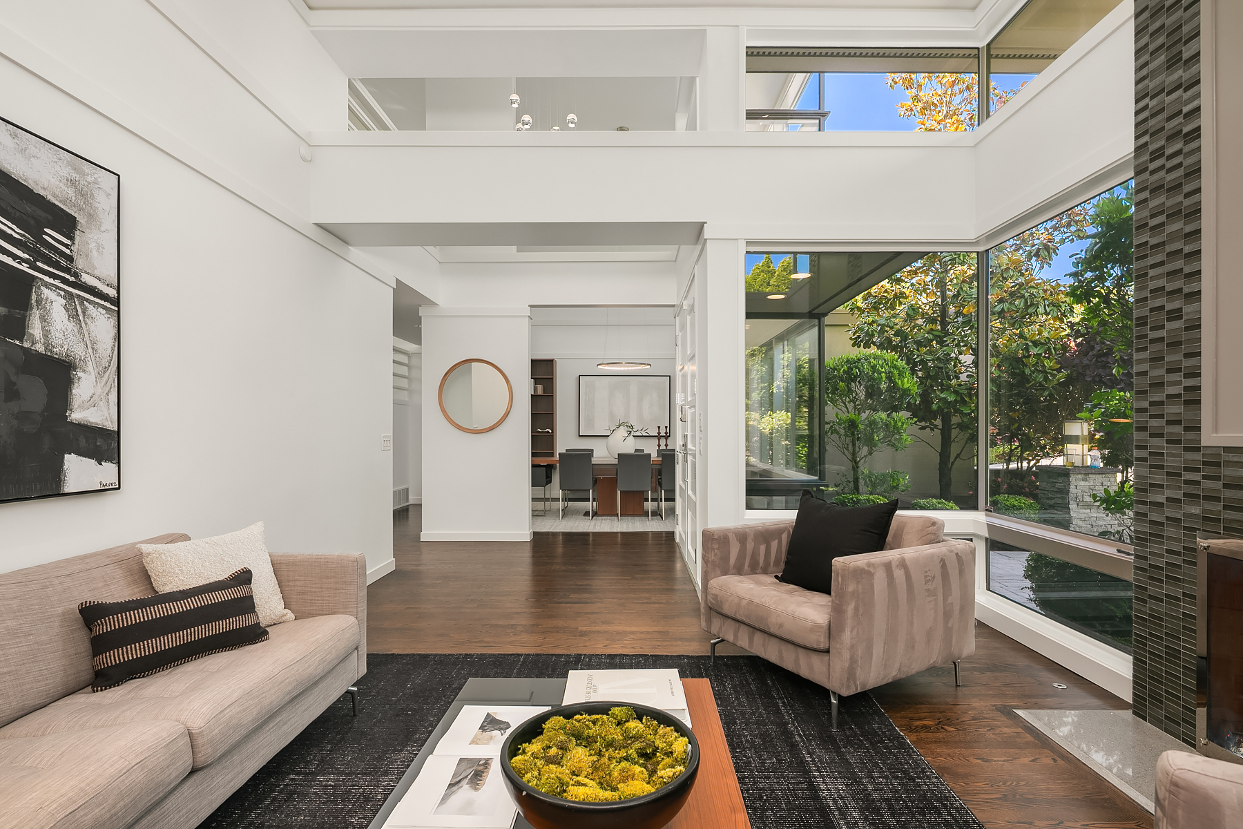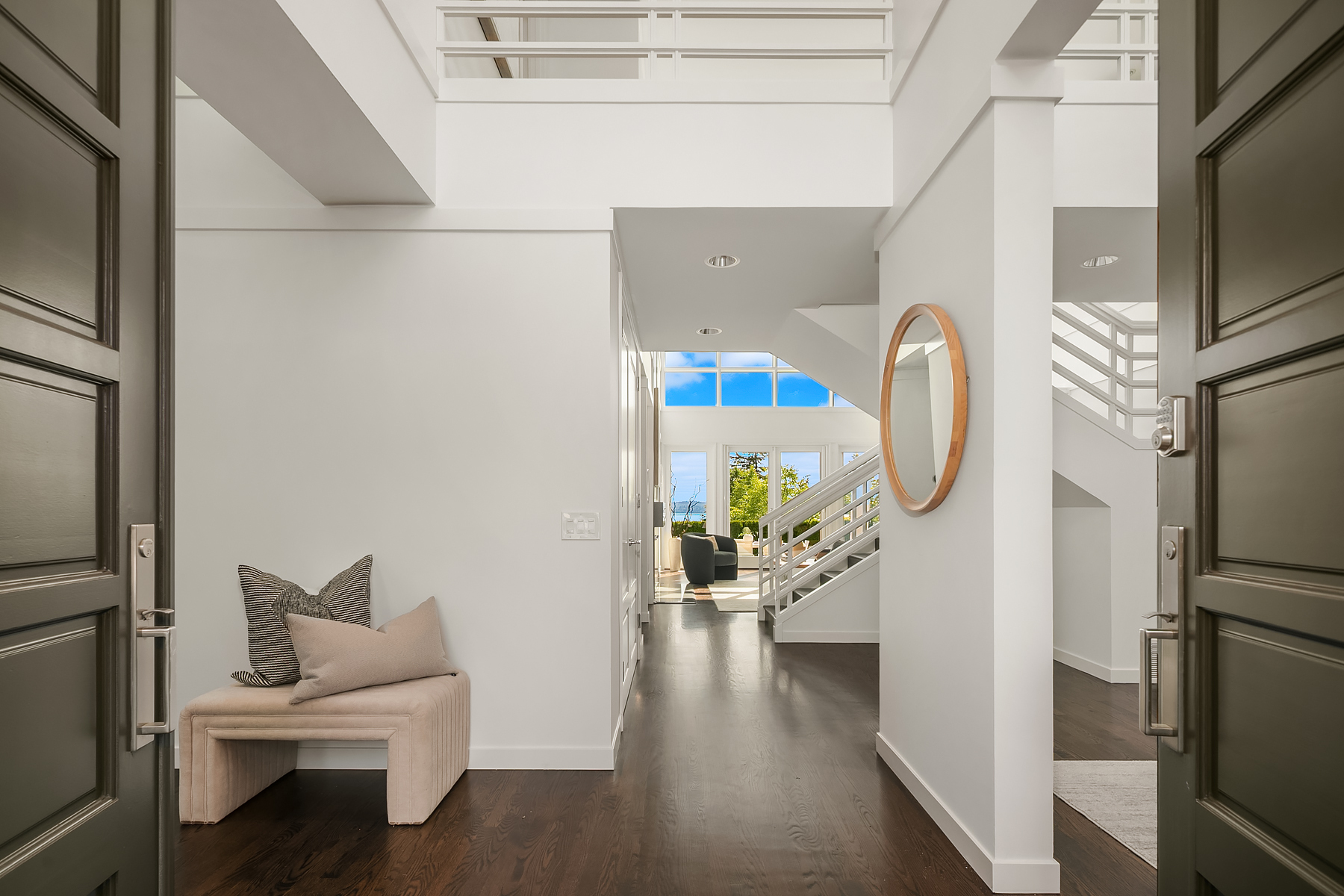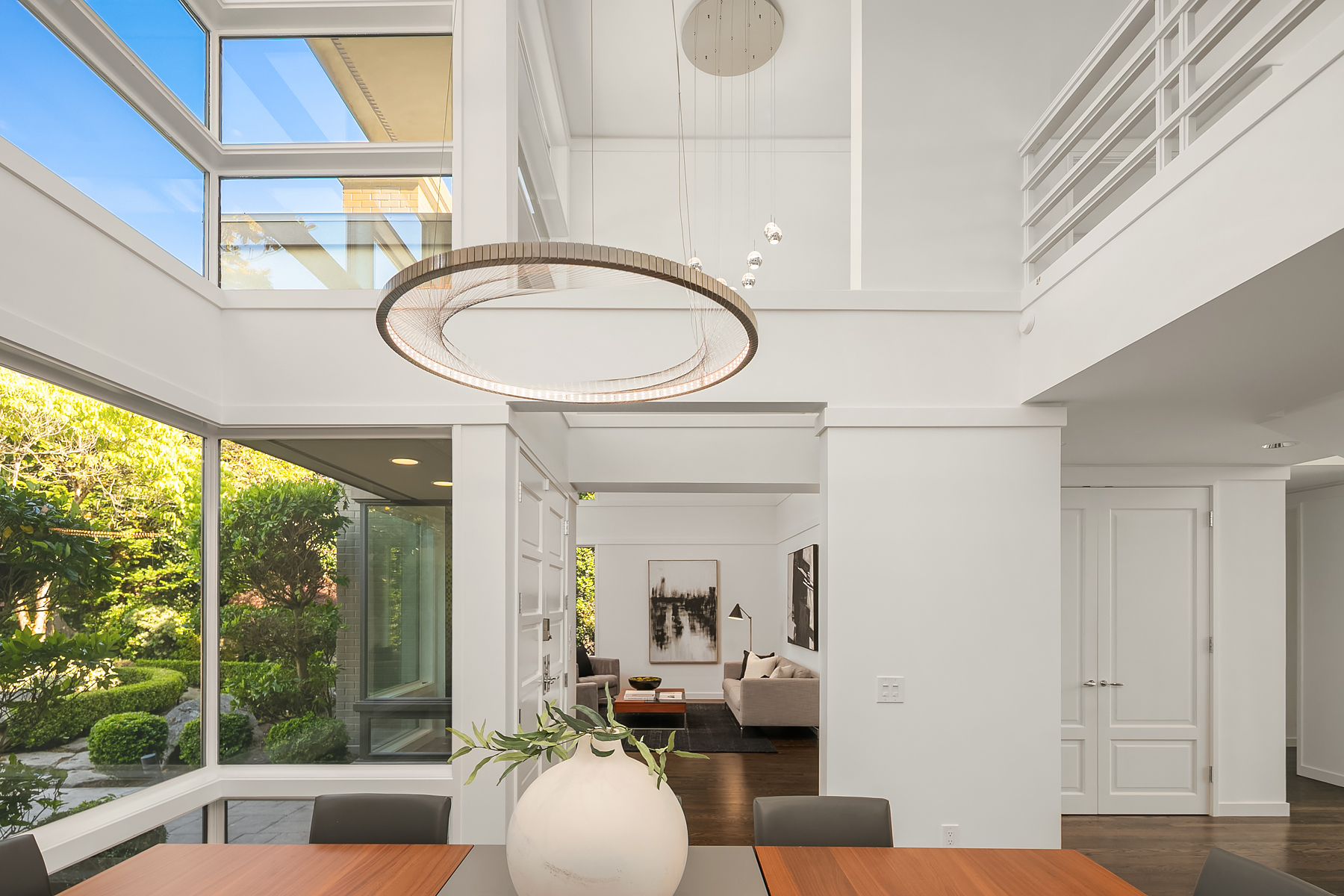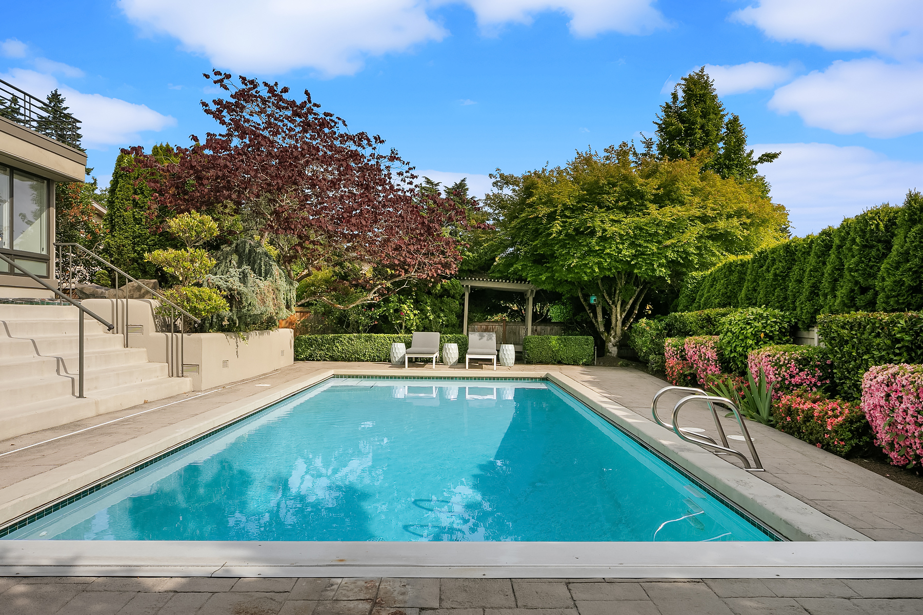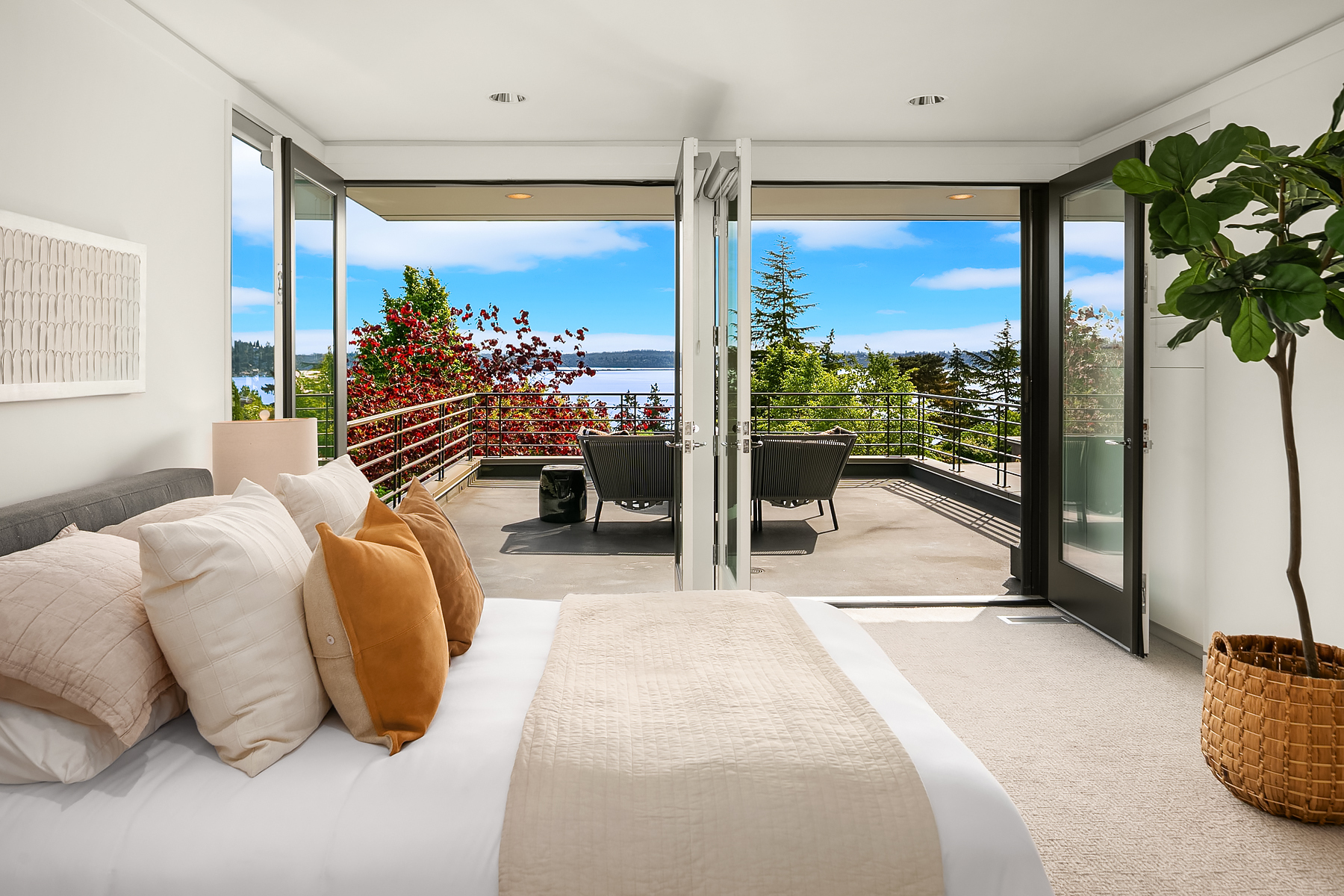 Set in coveted Medina Heights and enveloped in verdant landscaping, this Bender-Chaffey custom residence offers sweeping Westerly views of Lake Washington, Seattle Skyline and Olympic Mountains from both levels. Designed for grand entertaining and everyday elegance, the home features an impressive remodel, soaring ceilings and floor-to-ceiling glass walls that capture the stunning vistas and overlooks the resort-style pool and spa from nearly every room. The well-appointed kitchen boasts a suite of professional-grade appliances perfect for the avid entertainer and epicurean chef. Rare-to-find main floor primary plus grand jr suite on upper floor. Blending style & sophistication, this one-of-a-kind residence is designed to inspire & impress.