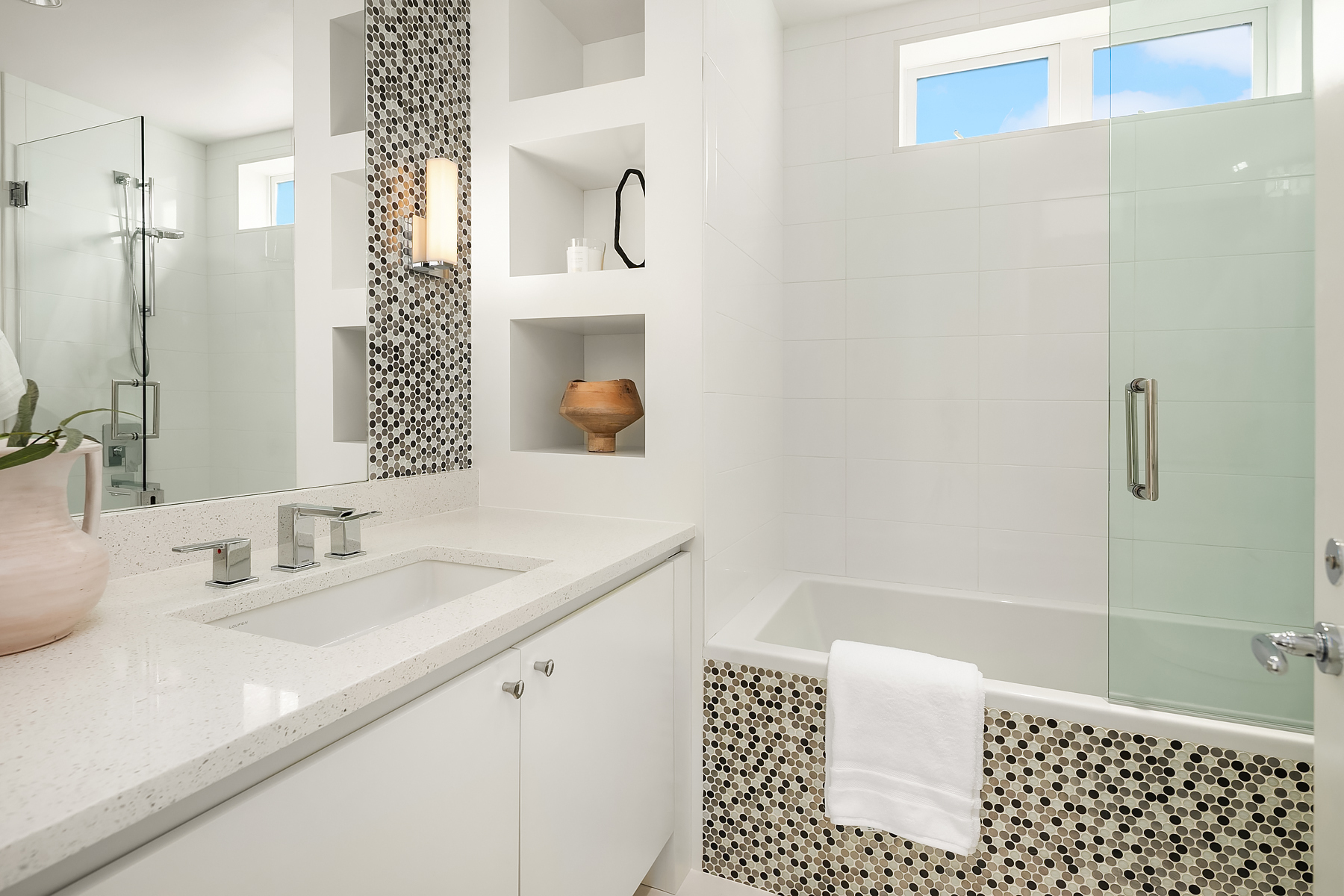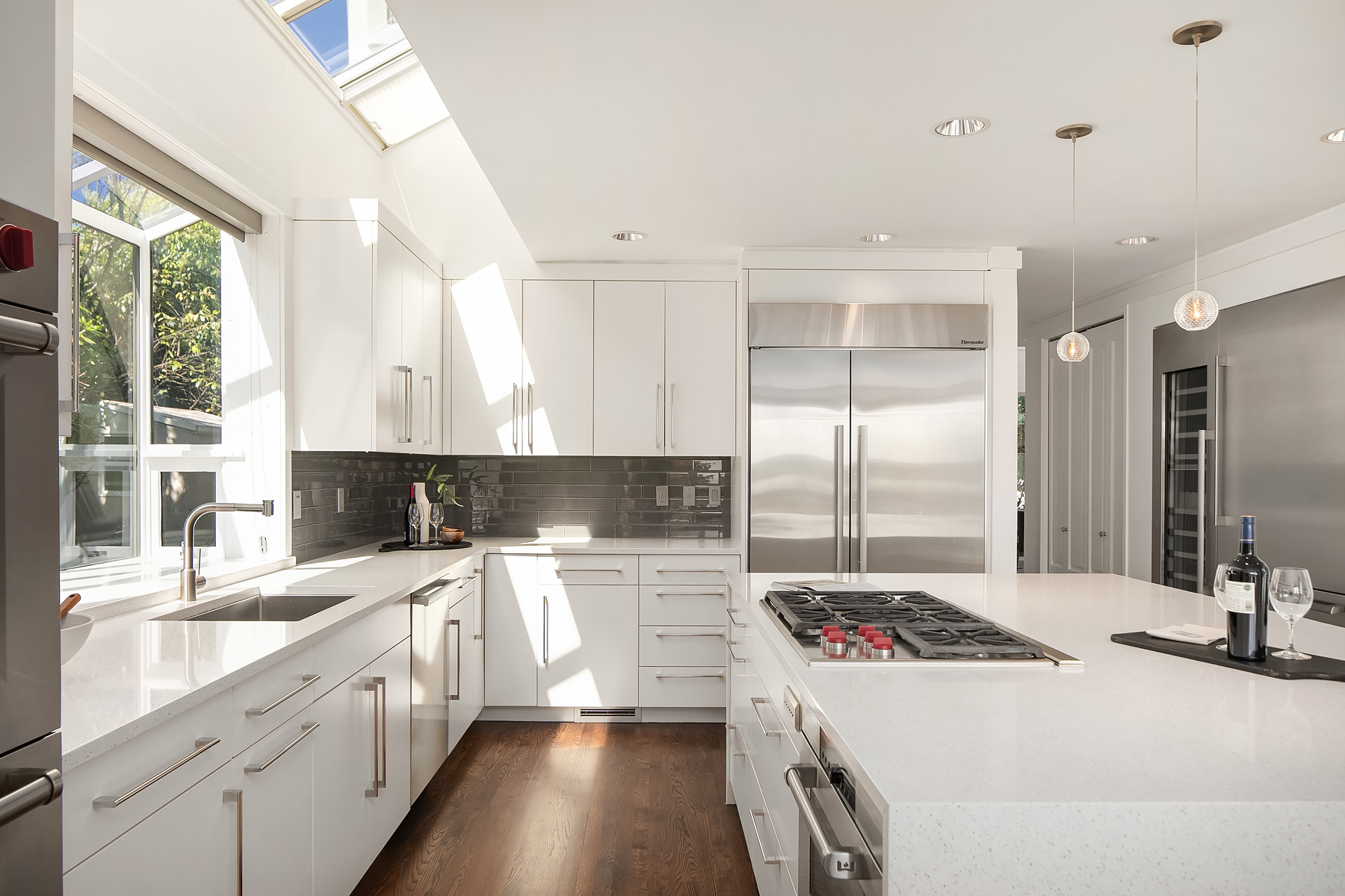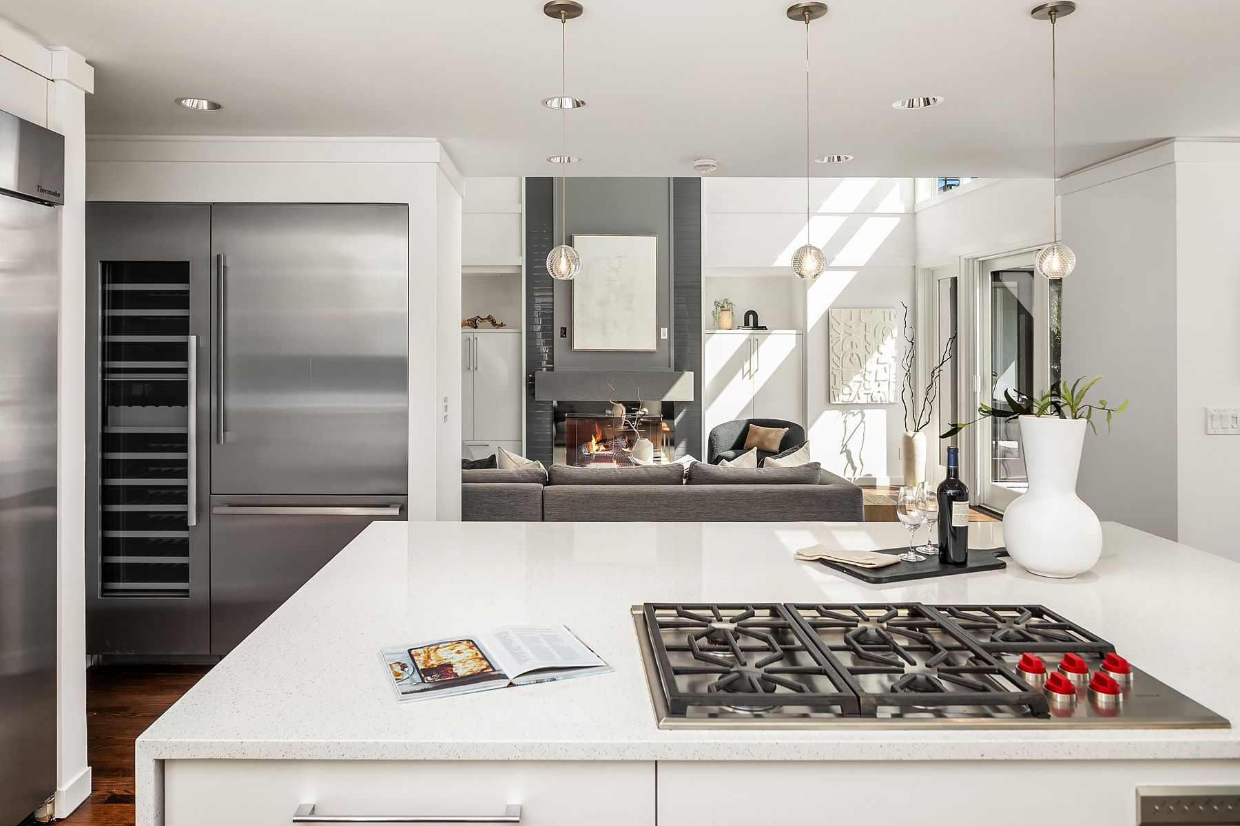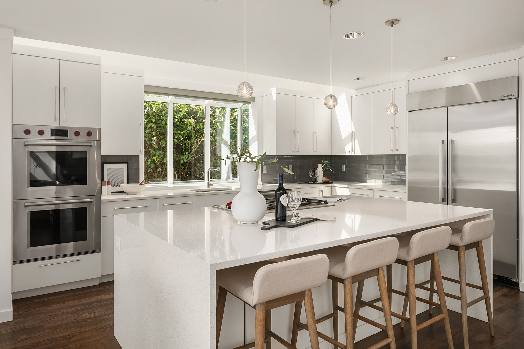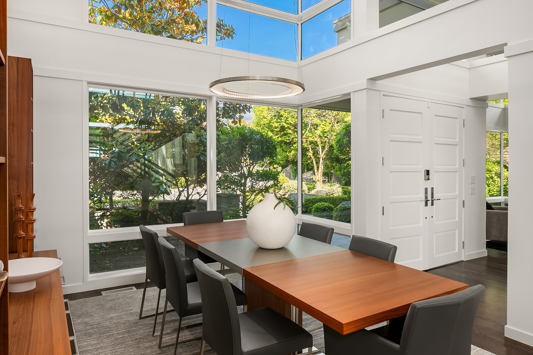 Set in coveted Medina Heights and enveloped in verdant landscaping, this Bender-Chaffey custom residence offers sweeping Westerly views of Lake Washington, Seattle Skyline and Olympic Mountains from both levels. Designed for grand entertaining and everyday elegance, the home features an impressive remodel, soaring ceilings and floor-to-ceiling glass walls that capture the stunning vistas and overlooks the resort-style pool and spa from nearly every room. The well-appointed kitchen boasts a suite of professional-grade appliances perfect for the avid entertainer and epicurean chef. Rare-to-find main floor primary plus grand jr suite on upper floor. Blending style & sophistication, this one-of-a-kind residence is designed to inspire & impress.