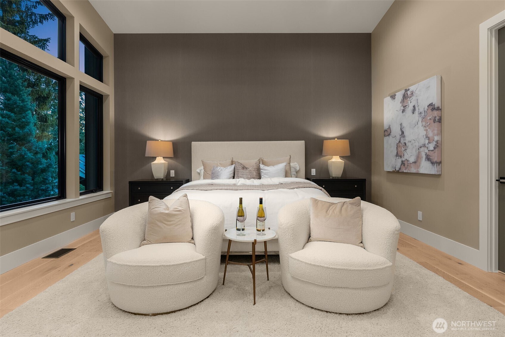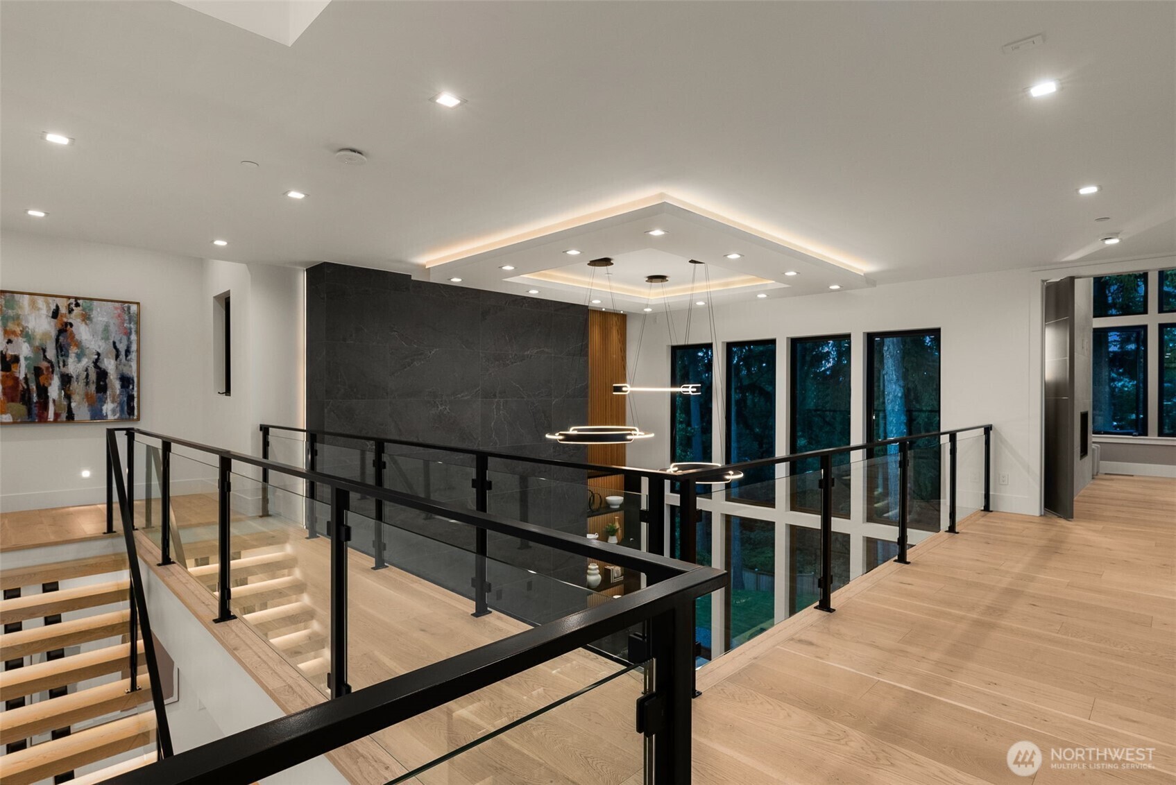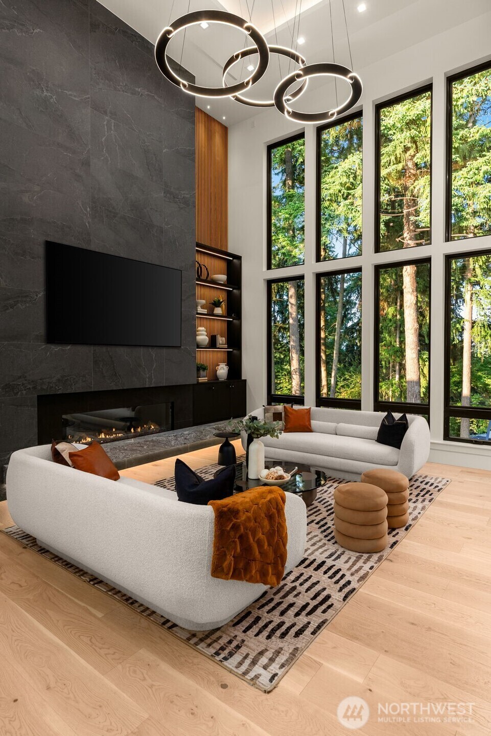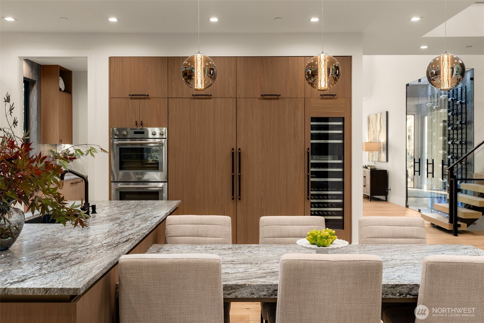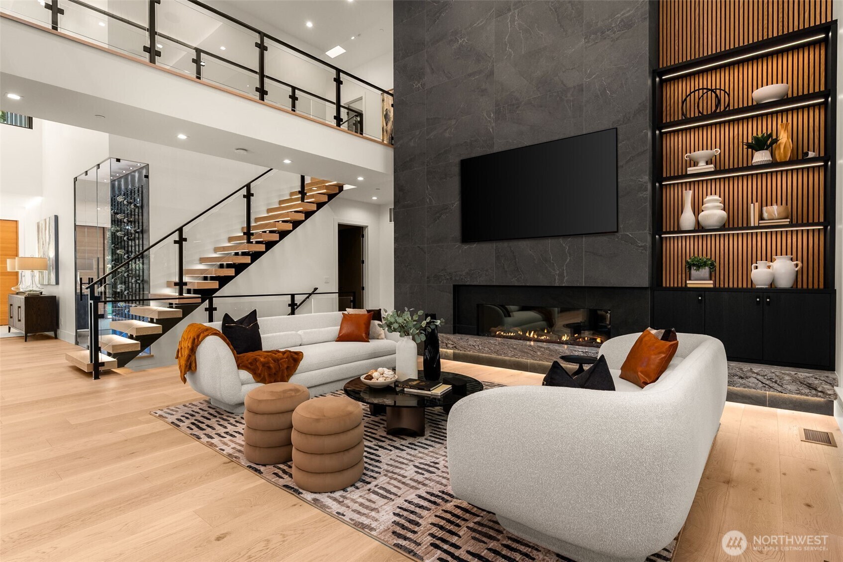 A Masterclass in Modern Luxury by Bellshire Homes. This generously scaled showpiece rests on a private, expansive homesite, where design and function flow effortlessly. Soaring 10–20' ceilings, a two-story atrium, and a custom floating staircase define architectural brilliance. The chef’s kitchen stuns with Thermador appliances, Azul Celeste granite, a hidden scullery, and a sleek dining island. Unwind in the spa-inspired primary suite, host in the expansive great room, or relax on the terrace by a custom fire pit. Designed for modern living with a full ADU, smart tech throughout, solar power, and thoughtfully curated materials. Framed by towering evergreens, the backyard is a private retreat for everyday moments and unforgettable evenings.