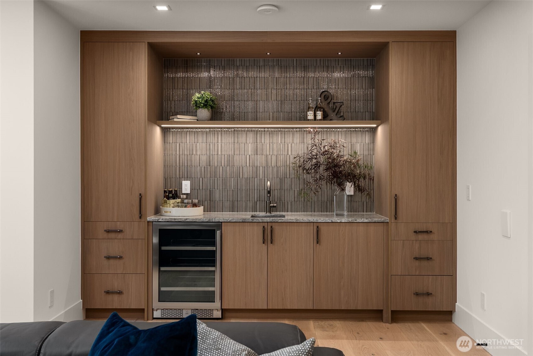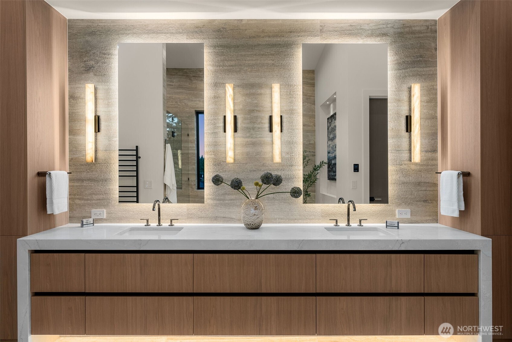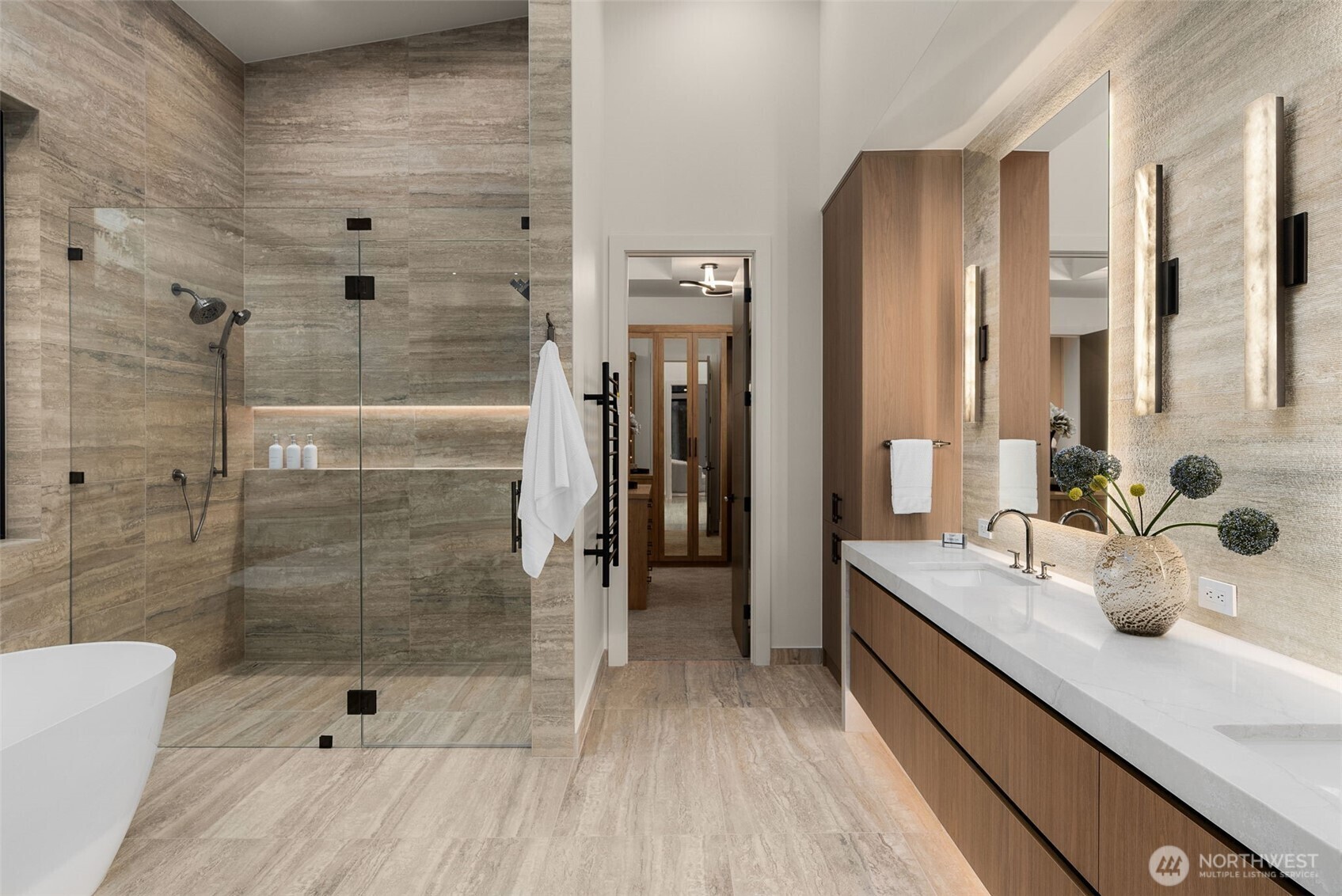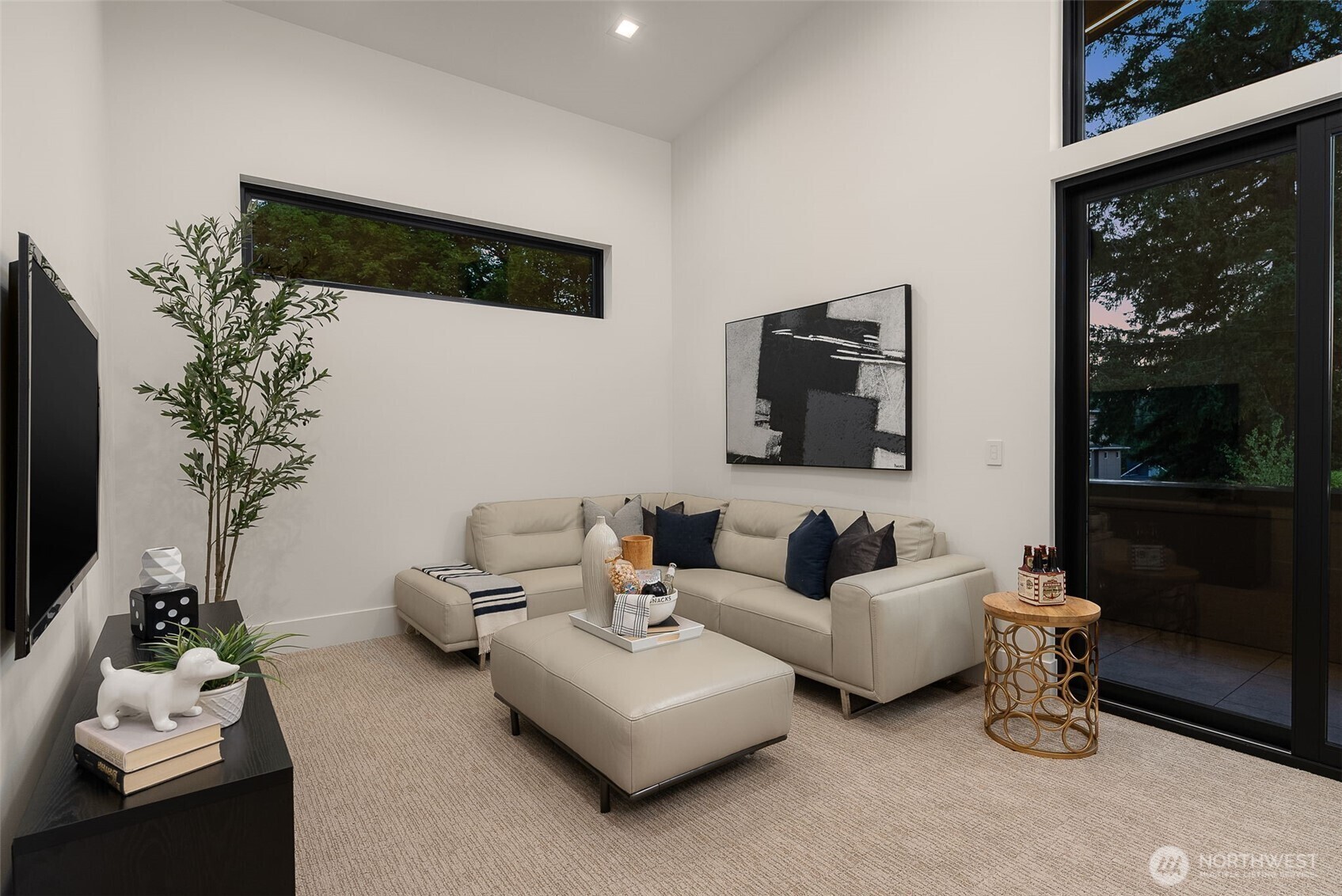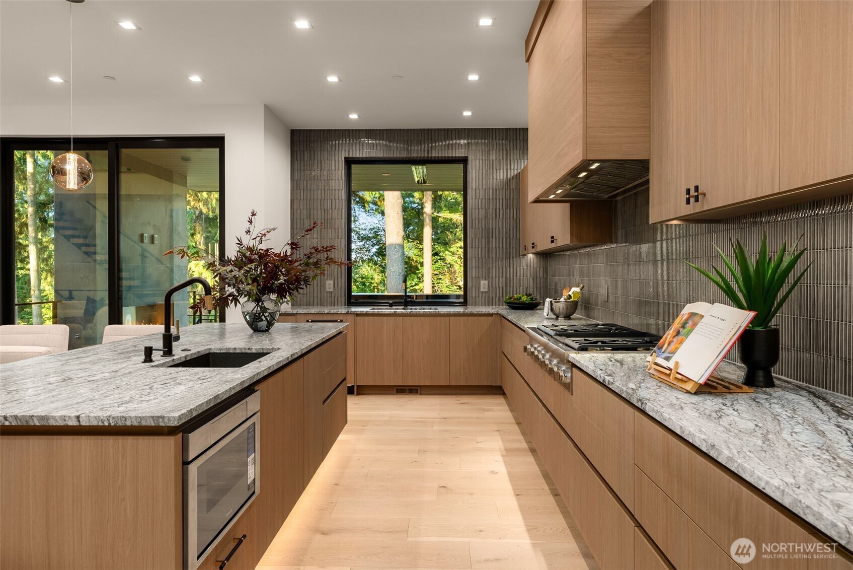 A Masterclass in Modern Luxury by Bellshire Homes. This generously scaled showpiece rests on a private, expansive homesite, where design and function flow effortlessly. Soaring 10–20' ceilings, a two-story atrium, and a custom floating staircase define architectural brilliance. The chef’s kitchen stuns with Thermador appliances, Azul Celeste granite, a hidden scullery, and a sleek dining island. Unwind in the spa-inspired primary suite, host in the expansive great room, or relax on the terrace by a custom fire pit. Designed for modern living with a full ADU, smart tech throughout, solar power, and thoughtfully curated materials. Framed by towering evergreens, the backyard is a private retreat for everyday moments and unforgettable evenings.
