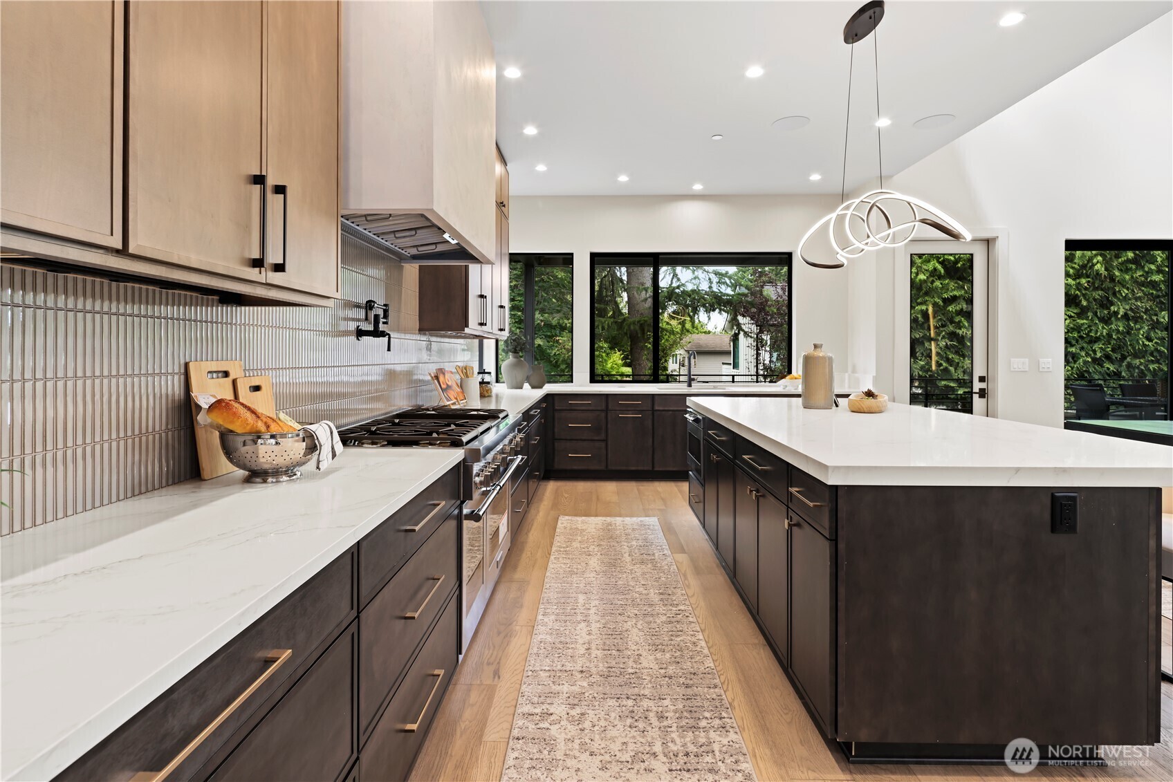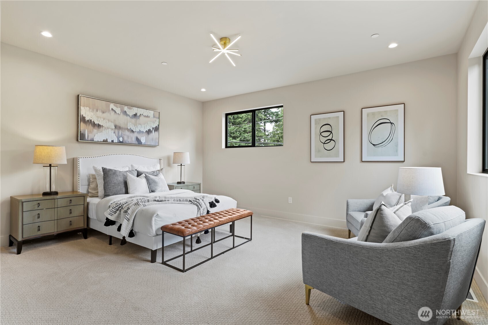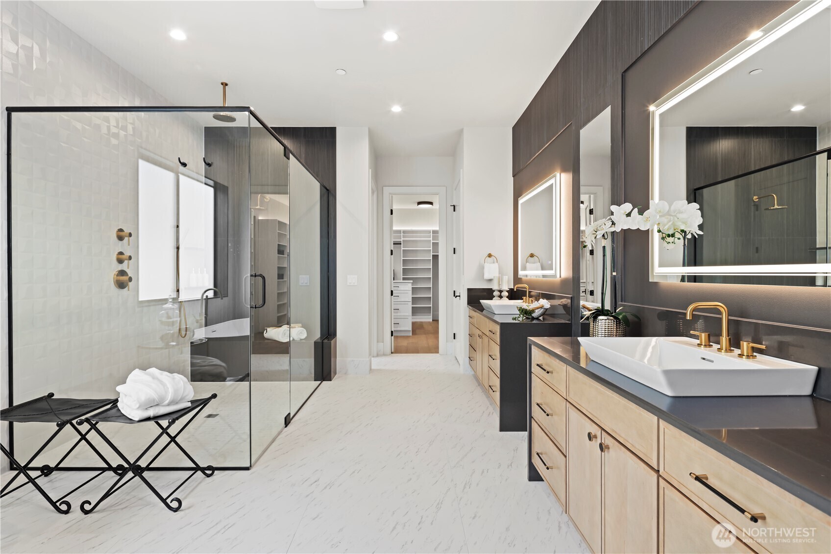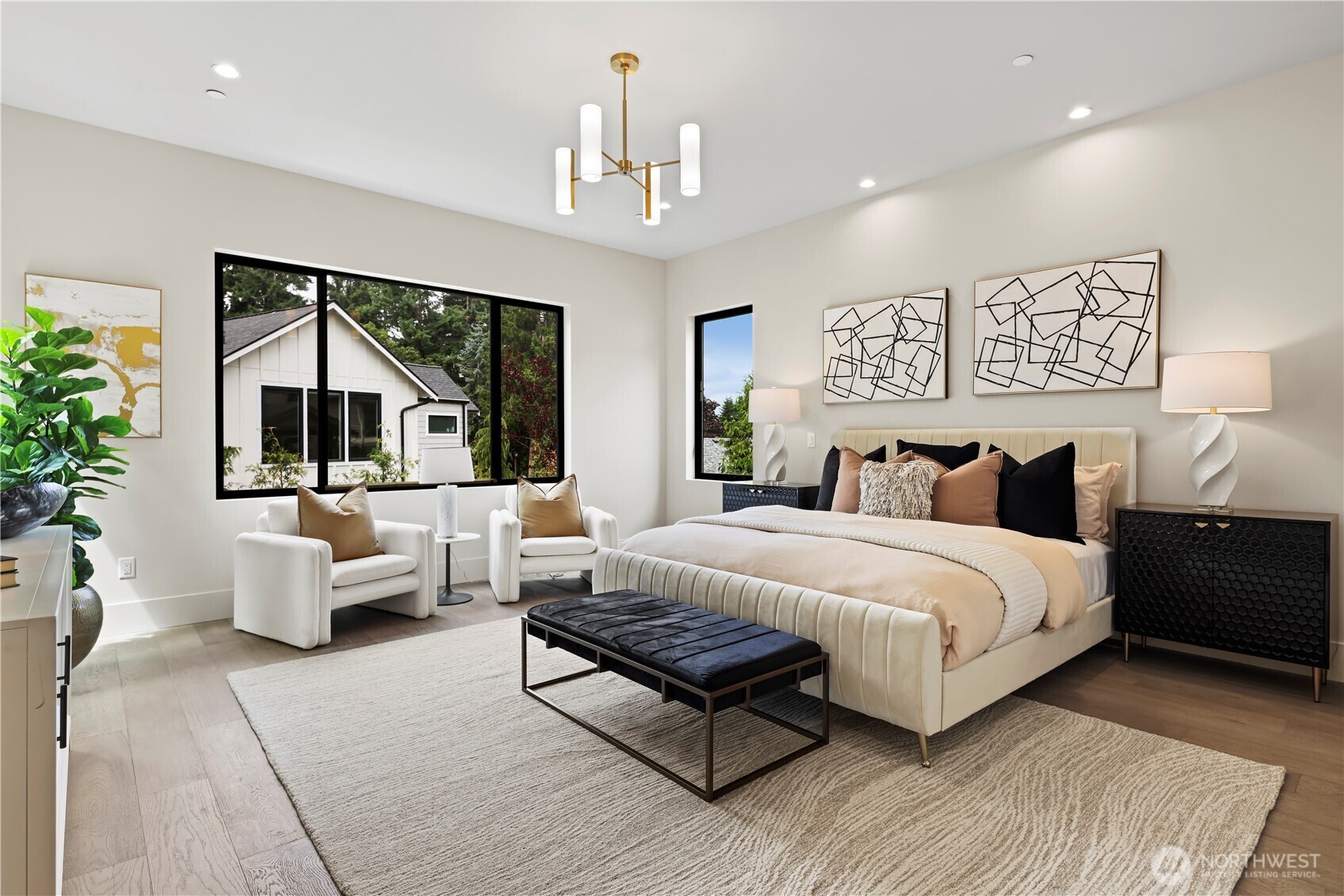 JUST COMPLETED NEW CONSTRUCTION! Grand Primary Suite on Main Floor w/Level Entry! New 5 BD/5 BA custom home by premier builder Serena Construction, sophisticated luxury in every detail. Coveted central Houghton location! Open concept blends Great Room w/85 fireplace, dining area w/entertainer’s buffet & gourmet kitchen w/high end appliances & walk-in pantry. 480 sqft outdoor covered deck w/heaters & speakers. Also on main, guest suite, office, laundry rm & mud rm. 3BD, 2BA on upper w/ bonus/media rm & 2nd laundry. Built-in gas-fueled generator, smart tech for lighting-heating-security, 2 gas furnaces & 2 heat pump/hot water heaters. Expansive 826 sqft 3-car garage & EV charging conduit. Solar panels & fully fenced back yard.