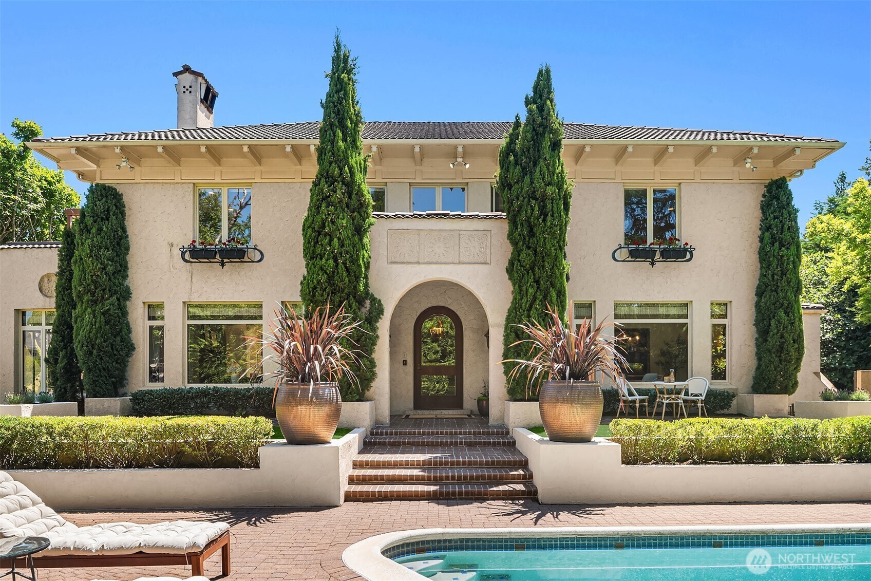 A splash of Hollywood in coveted Mt Baker! Renowned architect Ellsworth Storey gives us the romance & glamour of the Roaring 20s in stunning Spanish Revival style. Behind supremely private walls, some of the city's most storied social events unfolded beside the sun-soaked pool & the grand interior entertaining spaces. Fully updated w/the finest systems & materials, incl luxuriously timeless walnut chef's kitchen w/double Sub-Zero, this home plays host to intimate gatherings as easily as it does a crowd. Upstairs a sumptuous primary w/2 addtl beds. Lwr level boasts media, guest suite, sauna & gym. Double lot gives room for classic greenhouse, 2 car garage, & gracious outdoor living just steps from pickleball, pizza, coffee, parks & the lake.