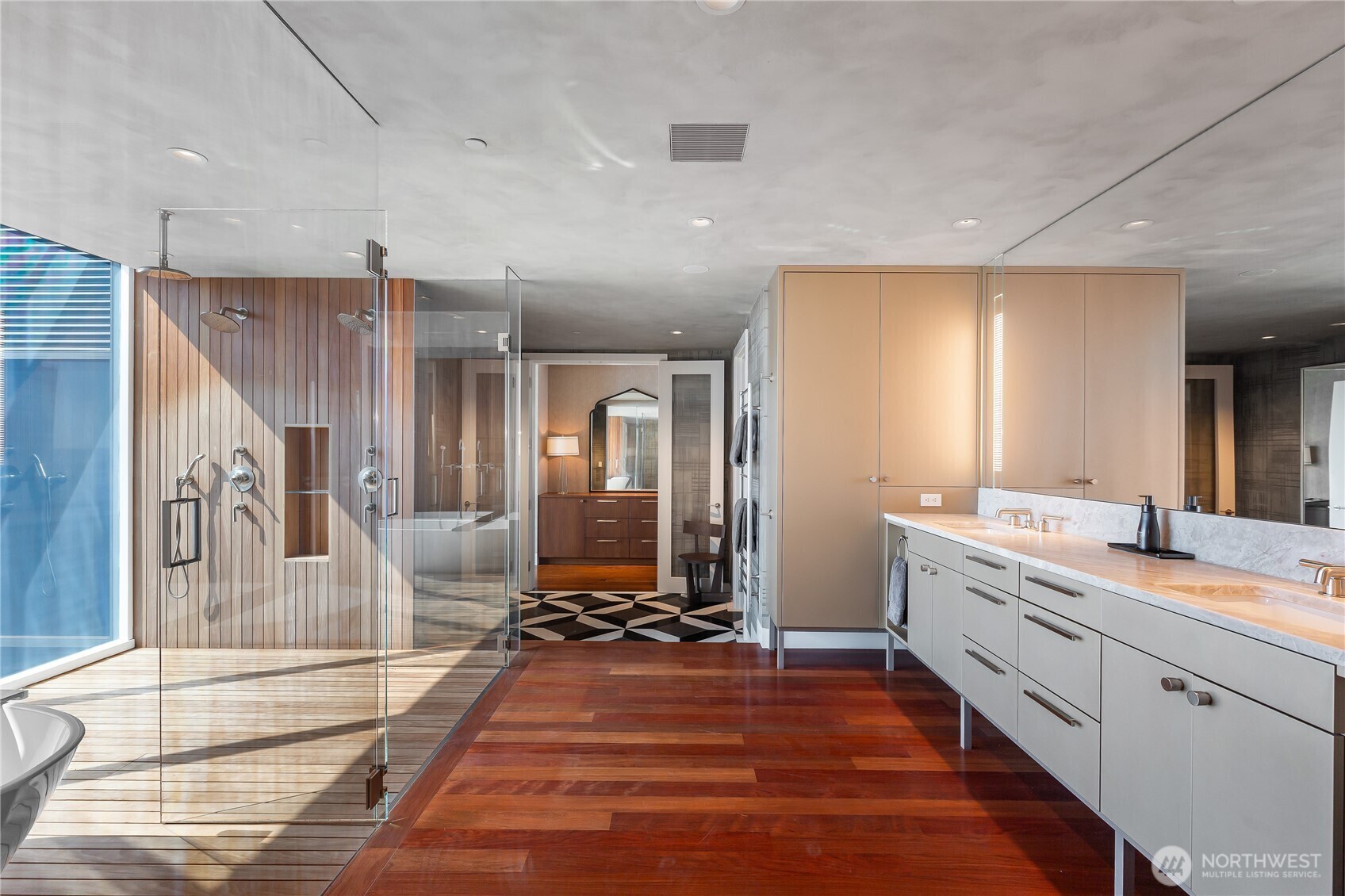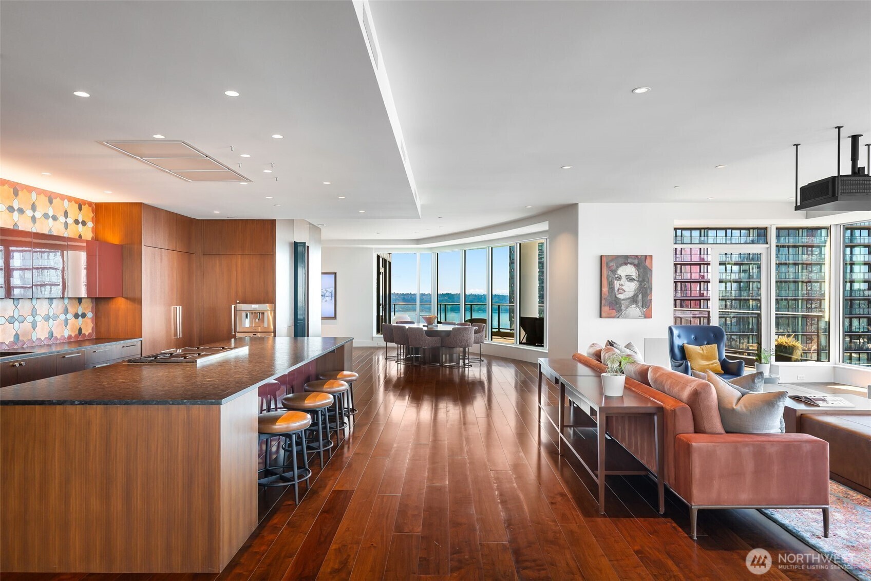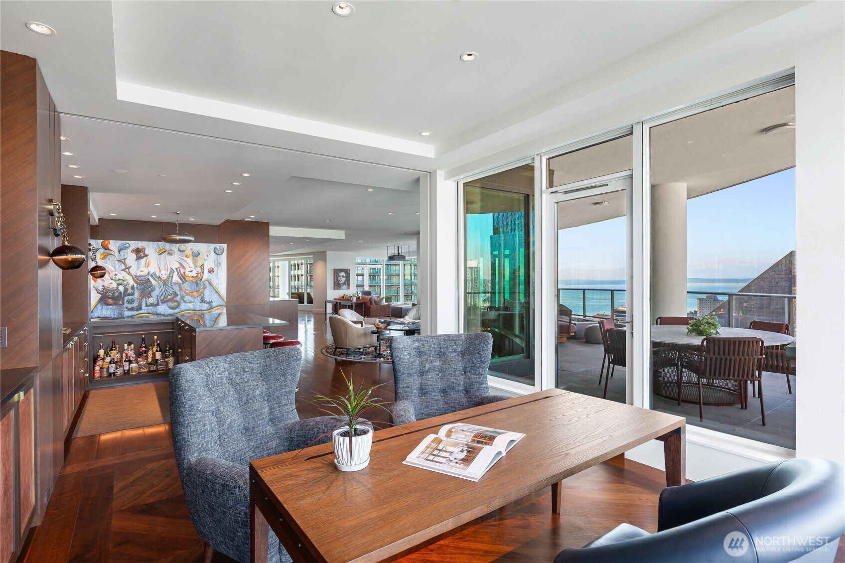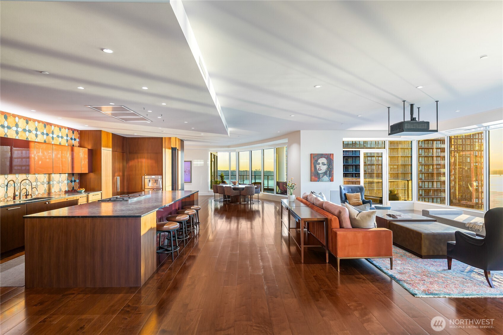 Achievement & position. Spaces, finishes & design exuding permanence, creativity & energy. Curious? Vibrancy emanates from natural materials: gallery walls of book-matched walnut, teak, leather, earthen tile & beautiful stone; embraced by sublime views of water & mountains. Perfect functionality: two private elevator vestibules, bedrooms (all en-suite) separated by copious living spaces. Entertaining is perfect: gallery walls display your latest, a central kitchen & a discreet butler’s pantry support. Two decks for conversations & innovation; flowing inside & out. Retreat to a dreamy primary suite: large, view bedroom with sitting room for reflection, deck access, immense dressing room and a bath that will knock your socks off. 4 parking.