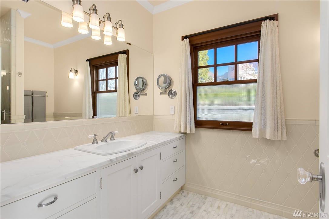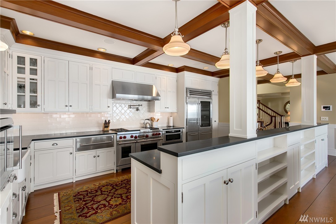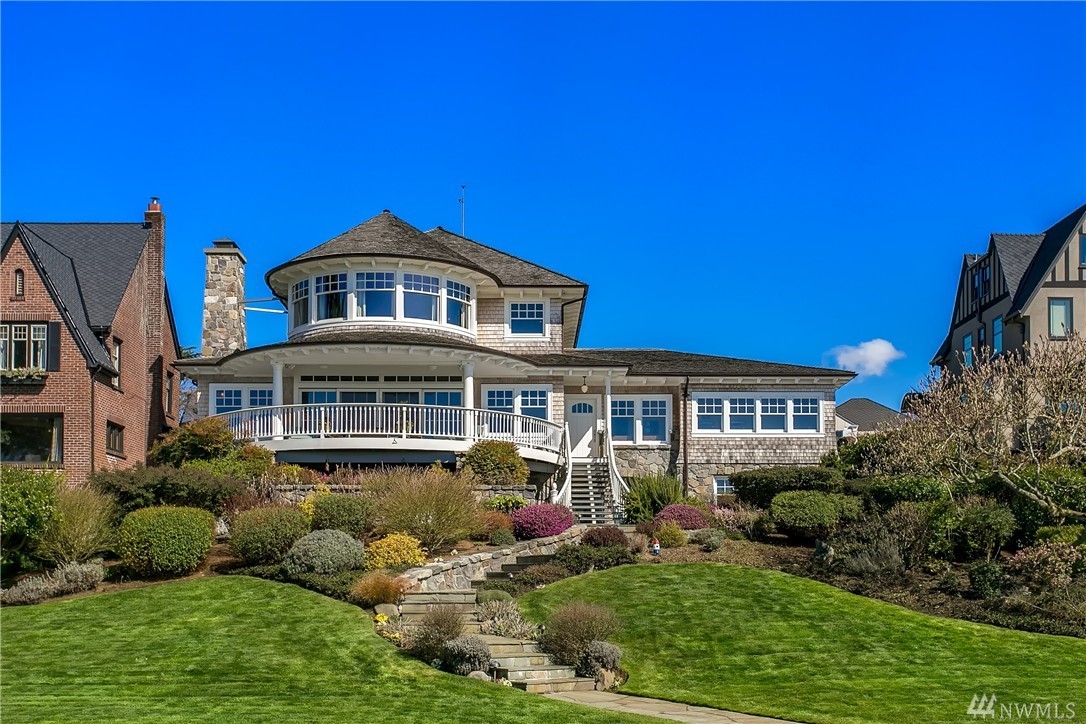 Beautiful 2006 Cape Cod impeccably maintained home with breathtaking views of the Sound and Olympics from every level and located on one of Magnolia's most coveted streets. Grand indoor/outdoor spaces, perfect for entertaining. Three bedroom suites, all with views. Well appointed kitchen with Sub Zero, Miele, Wolf and Gaggenau appliances. Wide plank oak floors. Large attached shop. Two car garage. Lush landscaping. This meticulously built, smart home with iPorts throughout is spectacular!
