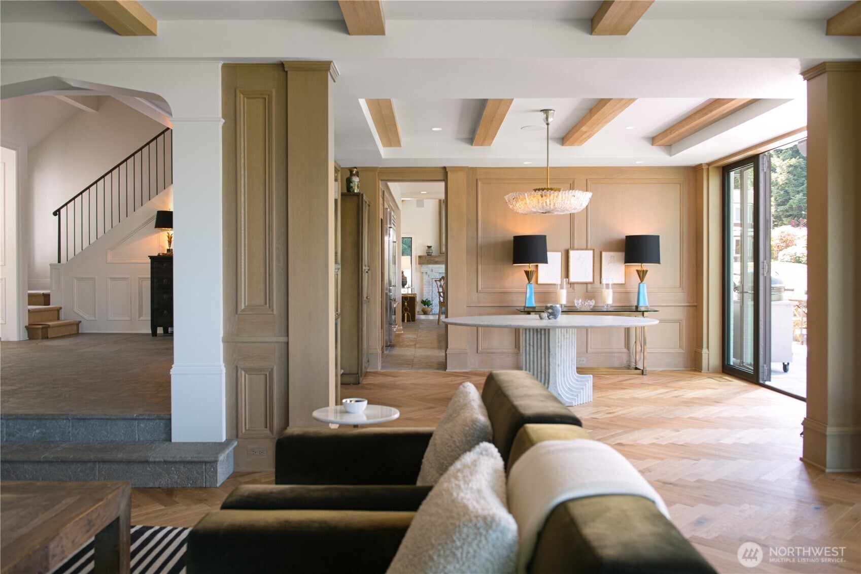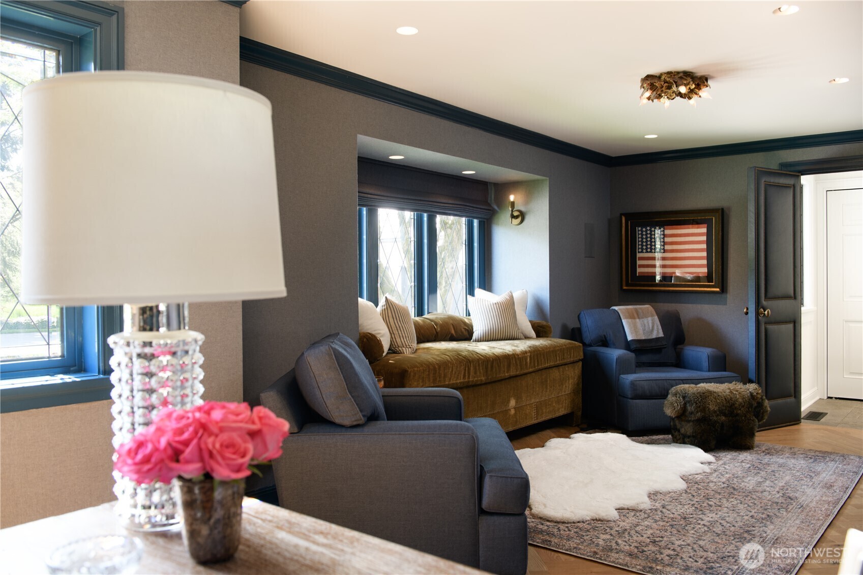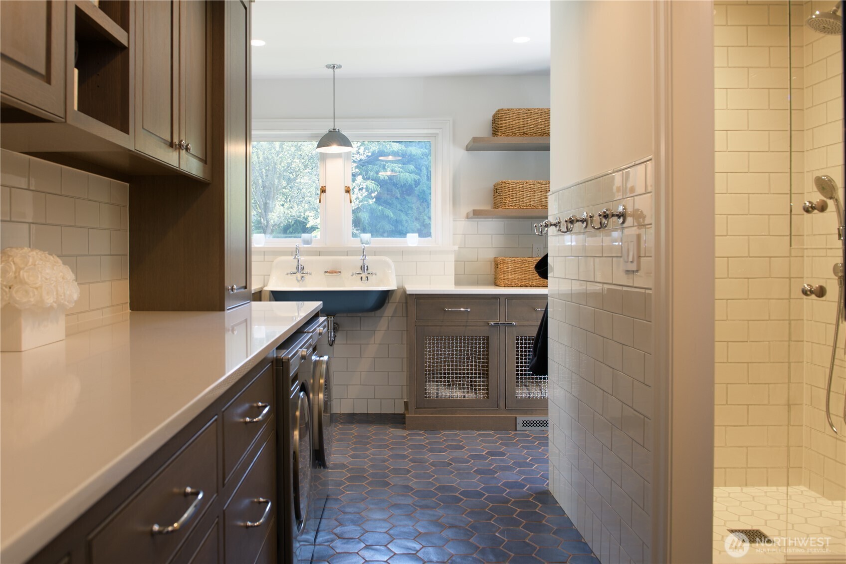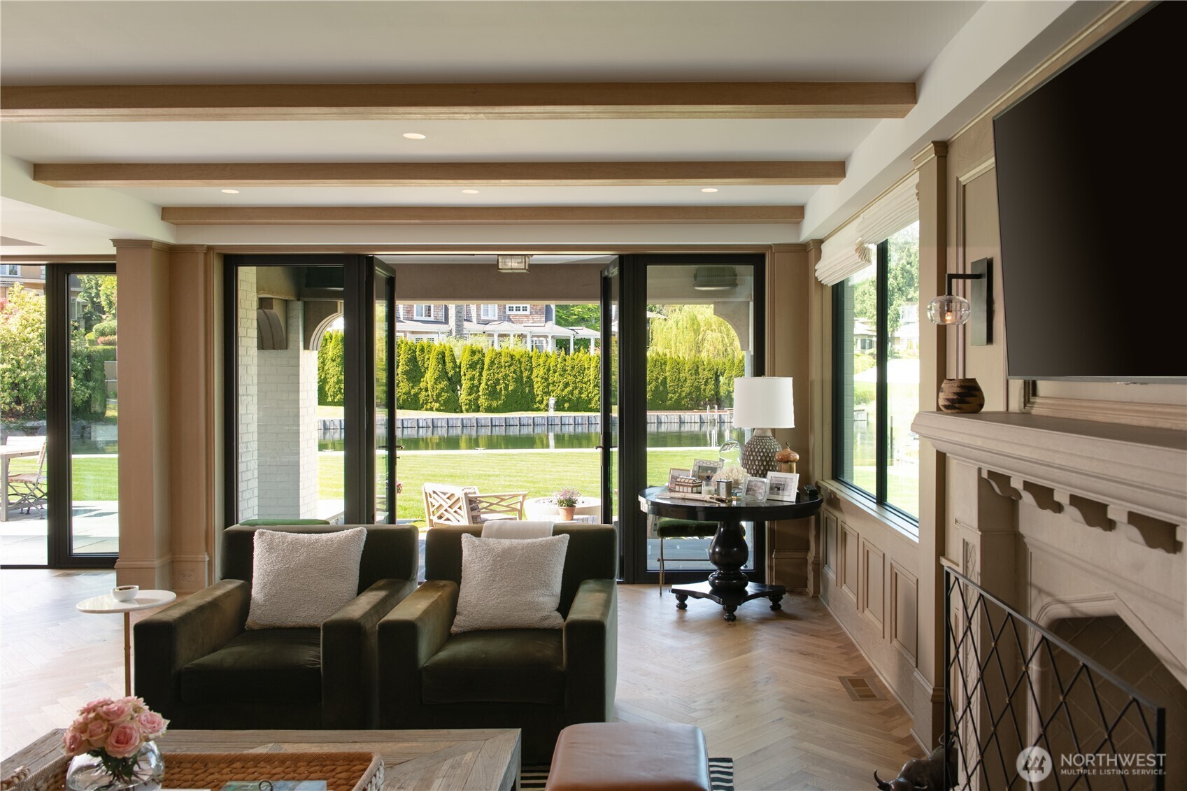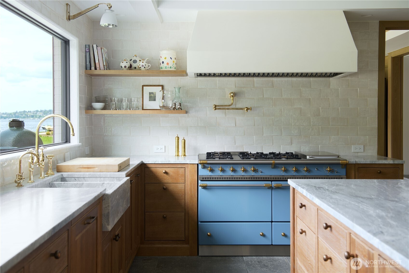 Reimagined English Tudor nestled on the west-facing shores of Lake Washington.Double doors open to two story entry with bespoke iron railings & gorgeous stone floors mined in Ireland.Formal living & dining rooms with oversized French doors to bluestone patio, huge lawn, fire pits & calming water views.Study with cashmere walls, lacquered trims and bookcases.Kitchen/Great room with fireplace, stunning marble & Ann Sacks terra cotta tile finishes and blue Lacanche range.Primary room w/antique fireplace & Calacatta marble bathroom. Hand-cut herringbone white oak floors. 123 ft of waterfront-new bulkhead/dock/platform lift for the boating enthusiast.5 Beds, 5.5 Baths.Gym.Park-like setting with gated drive. Do not miss the pickleball court!