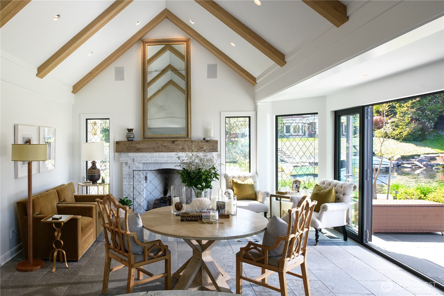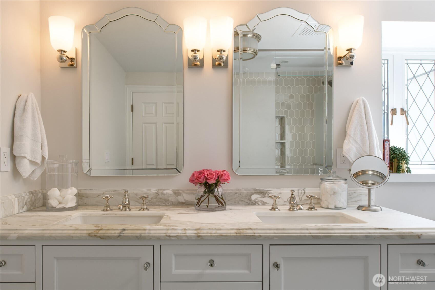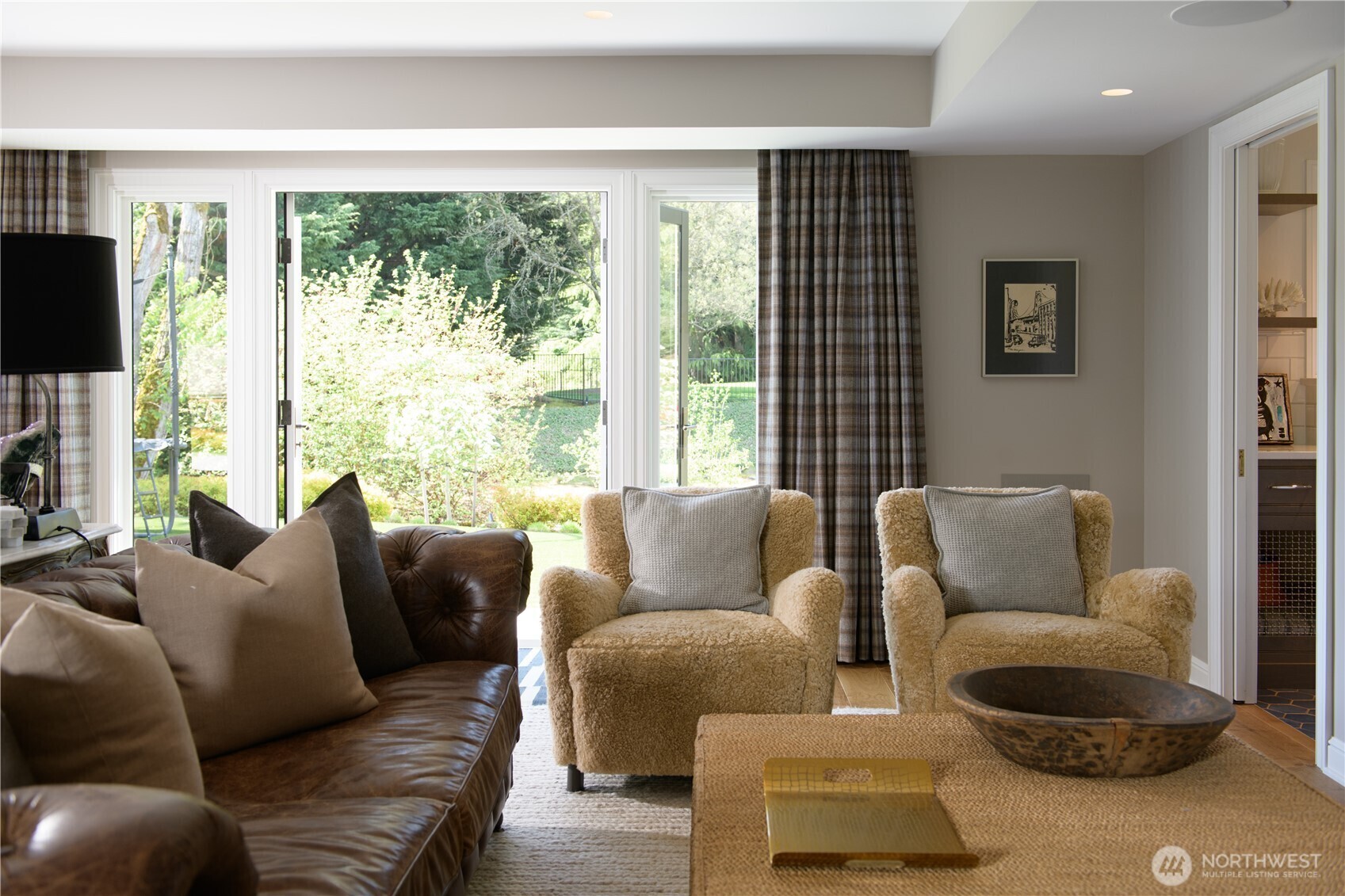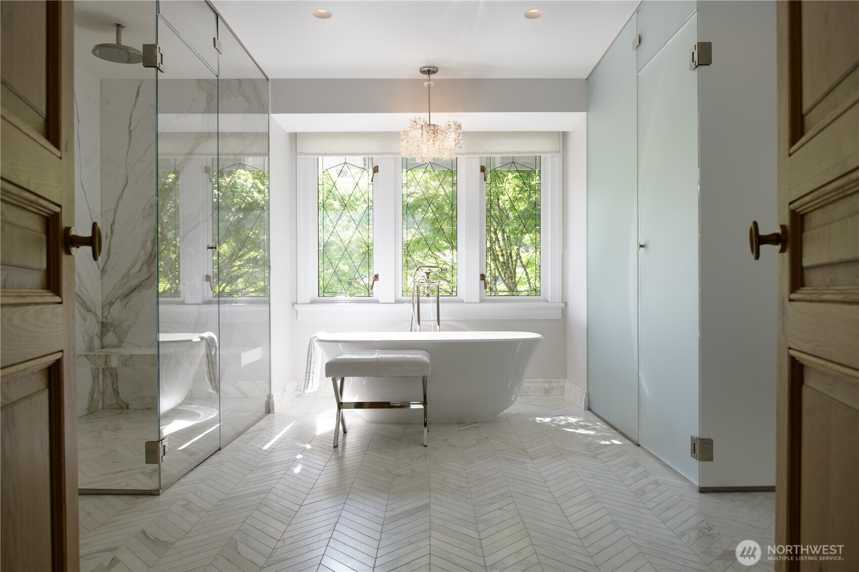Reimagined English Tudor nestled on the west-facing shores of Lake Washington.Double doors open to two story entry with bespoke iron railings & gorgeous stone floors mined in Ireland.Formal living & dining rooms with oversized French doors to bluestone patio, huge lawn, fire pits & calming water views.Study with cashmere walls, lacquered trims and bookcases.Kitchen/Great room with fireplace, stunning marble & Ann Sacks terra cotta tile finishes and blue Lacanche range.Primary room w/antique fireplace & Calacatta marble bathroom. Hand-cut herringbone white oak floors. 123 ft of waterfront-new bulkhead/dock/platform lift for the boating enthusiast.5 Beds, 5.5 Baths.Gym.Park-like setting with gated drive. Do not miss the pickleball court!