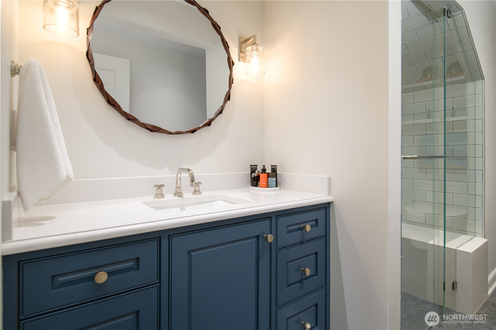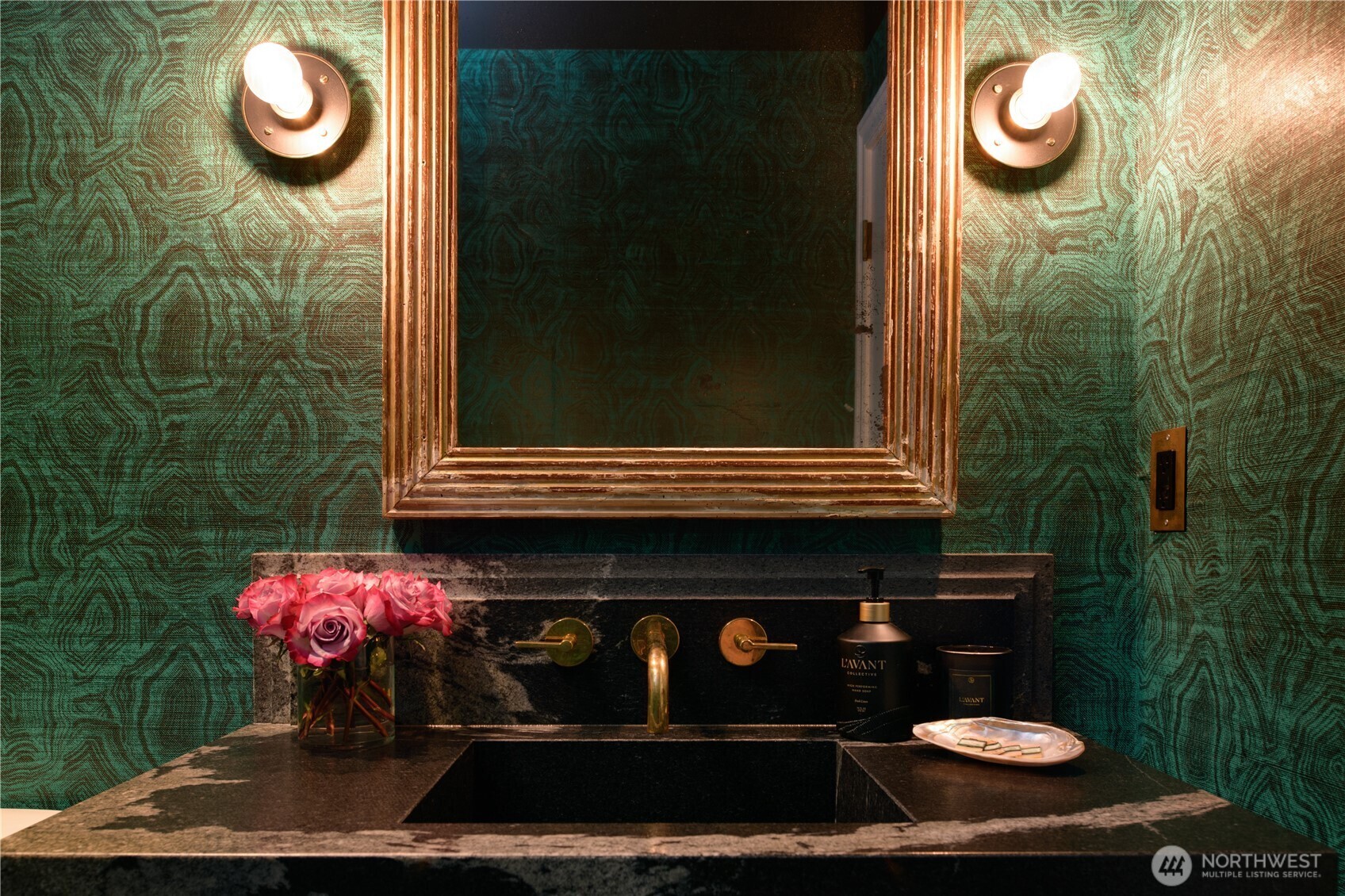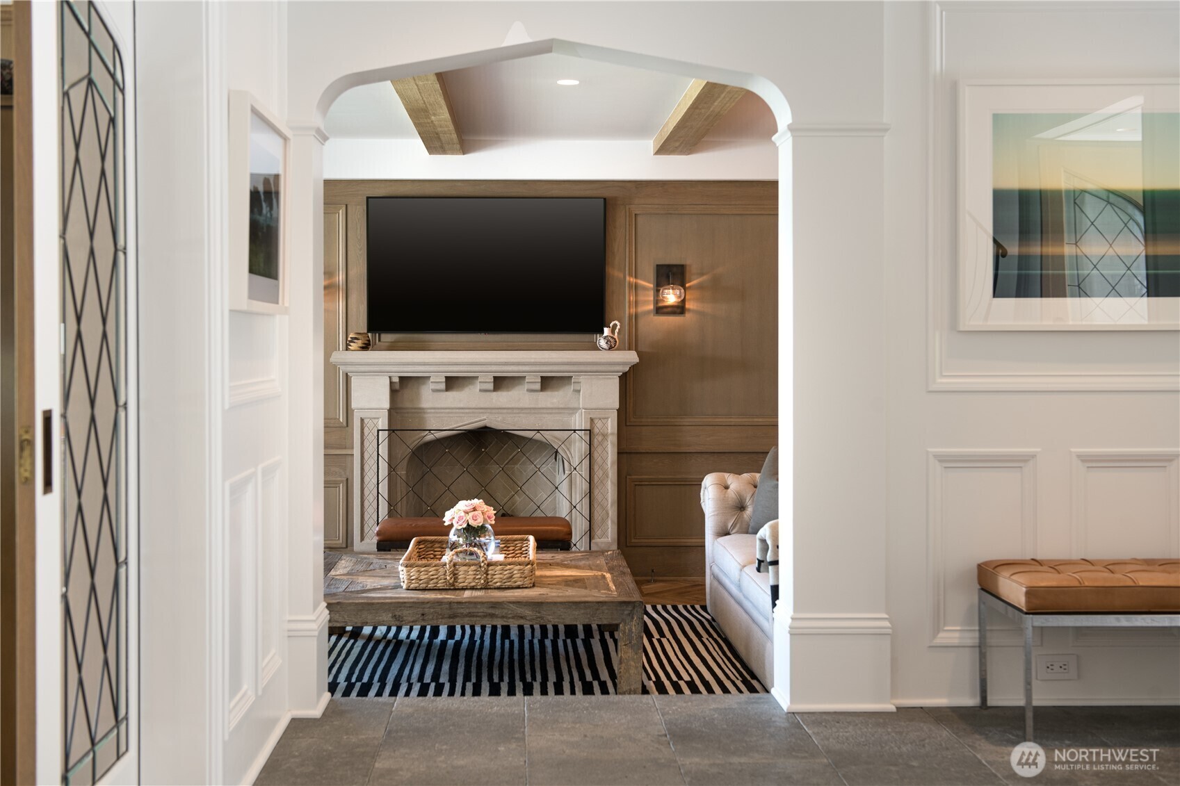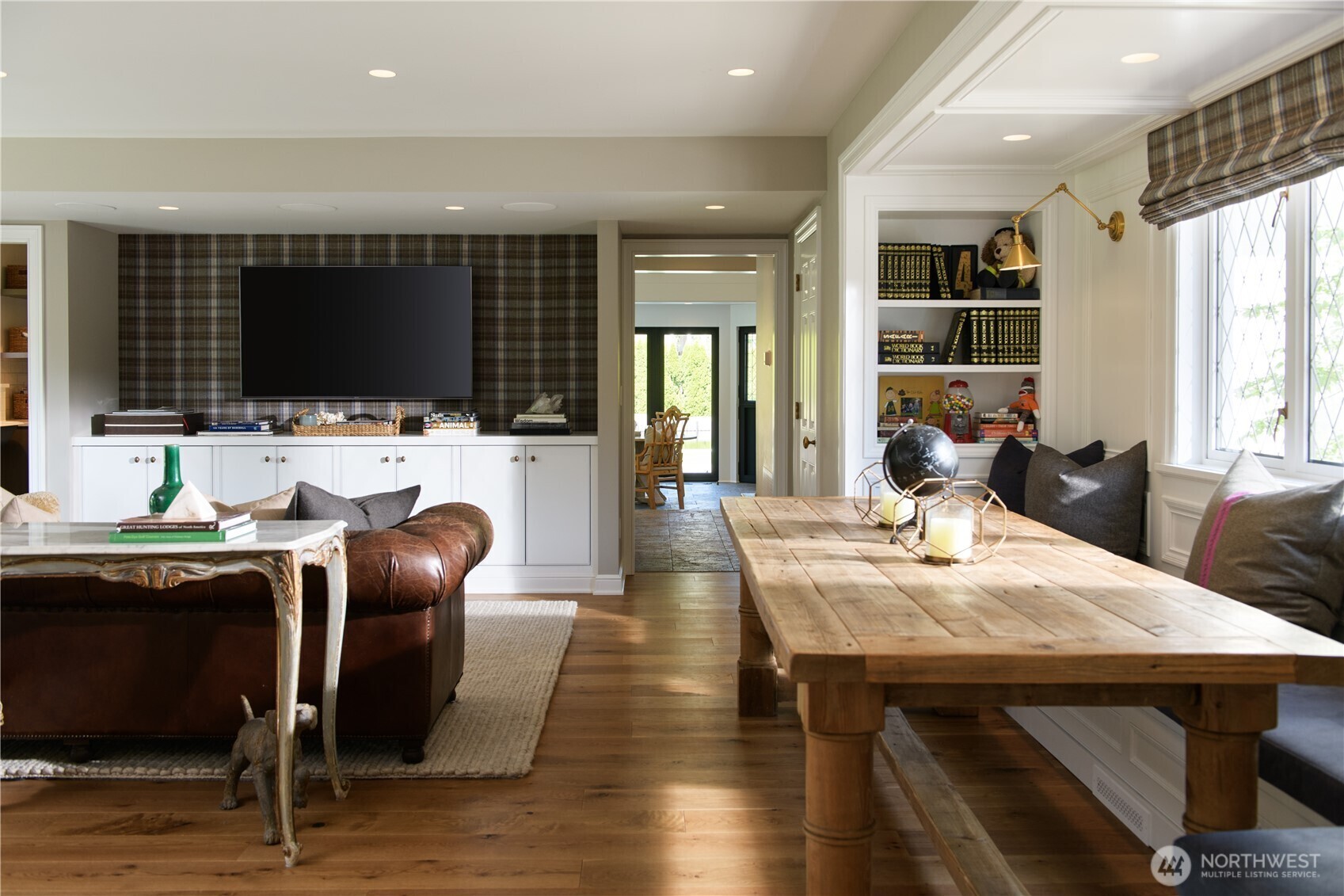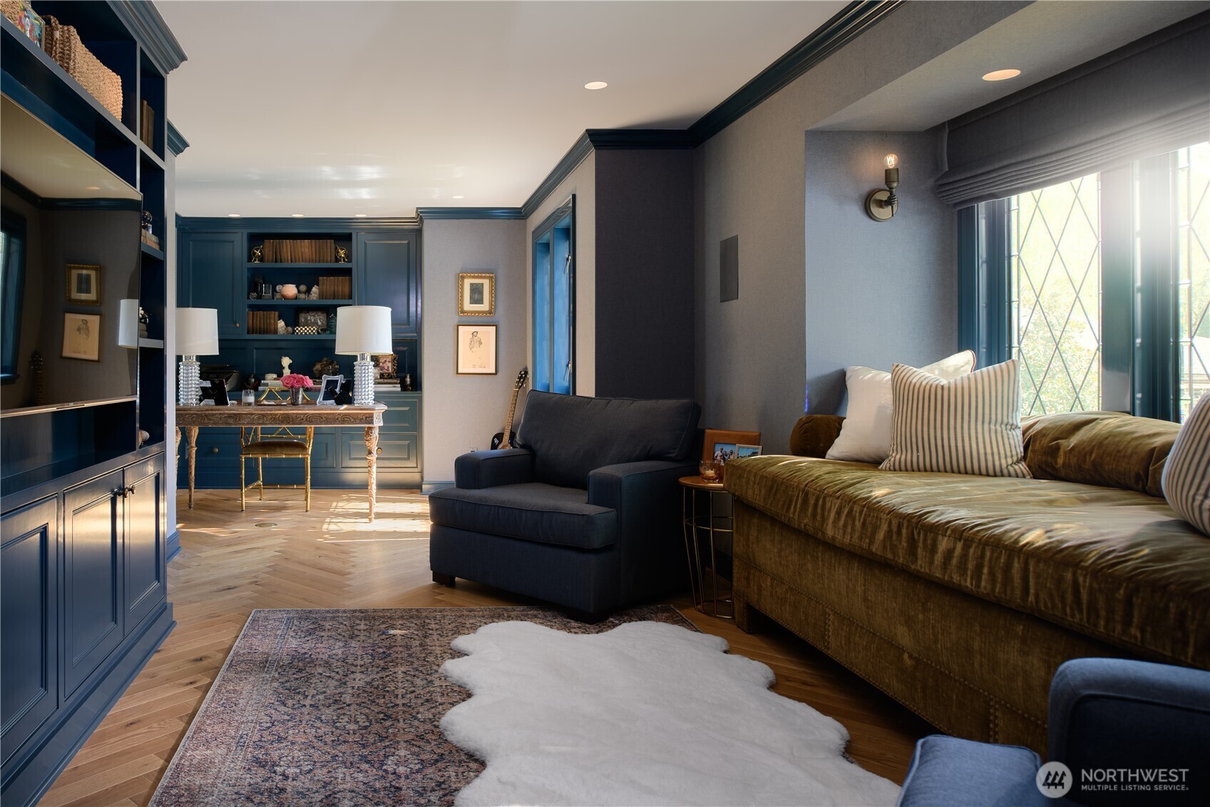 Reimagined English Tudor nestled on the west-facing shores of Lake Washington.Double doors open to two story entry with bespoke iron railings & gorgeous stone floors mined in Ireland.Formal living & dining rooms with oversized French doors to bluestone patio, huge lawn, fire pits & calming water views.Study with cashmere walls, lacquered trims and bookcases.Kitchen/Great room with fireplace, stunning marble & Ann Sacks terra cotta tile finishes and blue Lacanche range.Primary room w/antique fireplace & Calacatta marble bathroom. Hand-cut herringbone white oak floors. 123 ft of waterfront-new bulkhead/dock/platform lift for the boating enthusiast.5 Beds, 5.5 Baths.Gym.Park-like setting with gated drive. Do not miss the pickleball court!