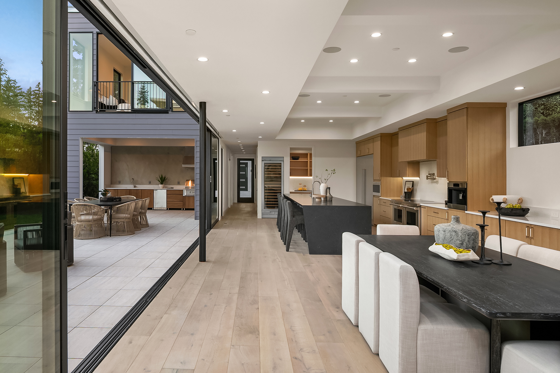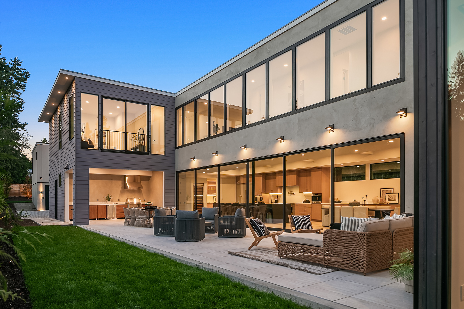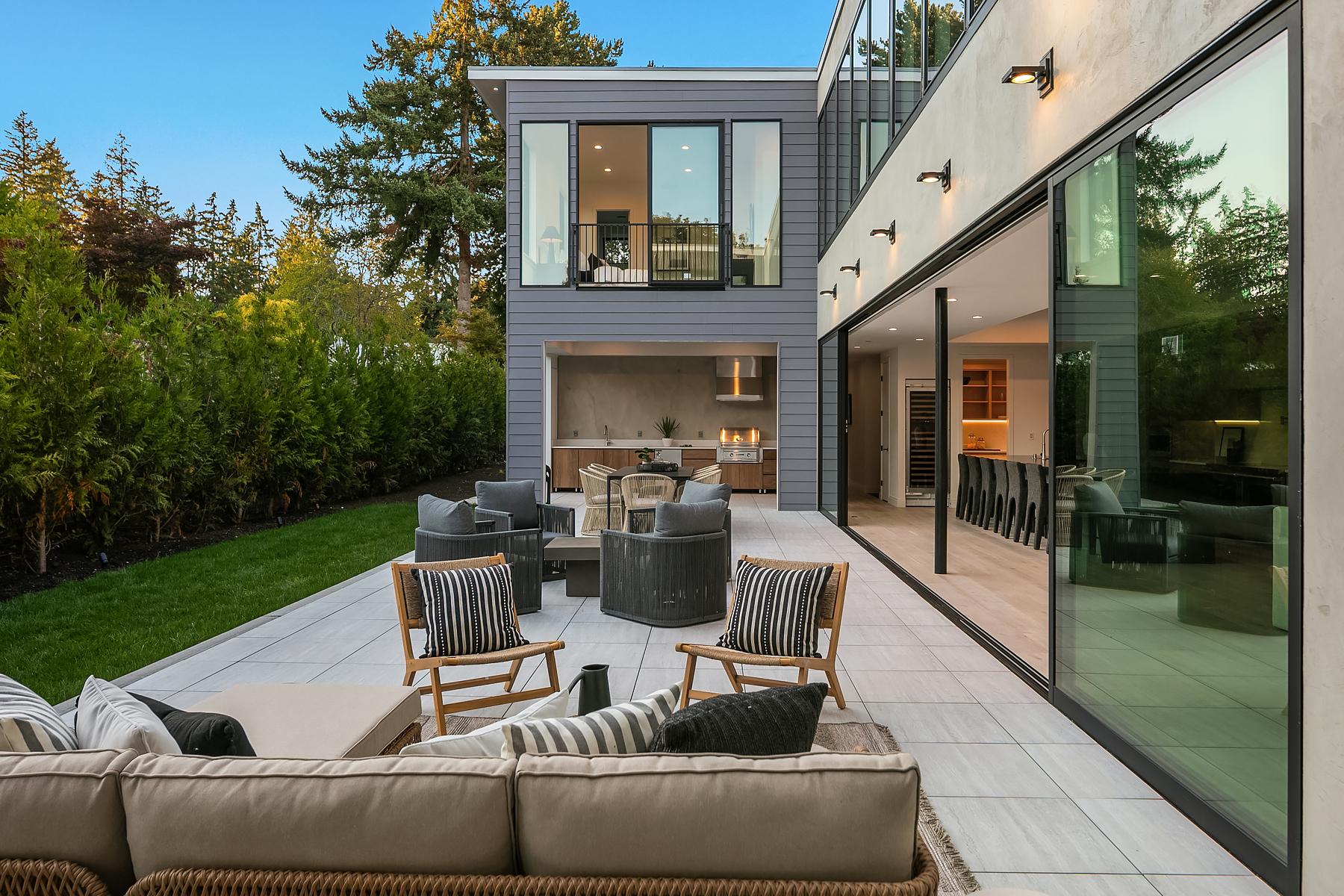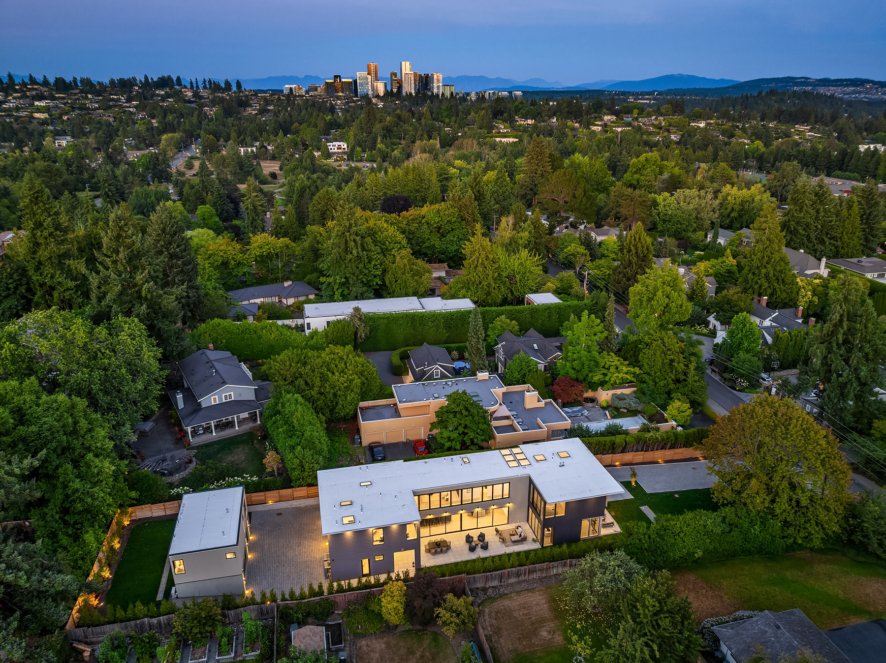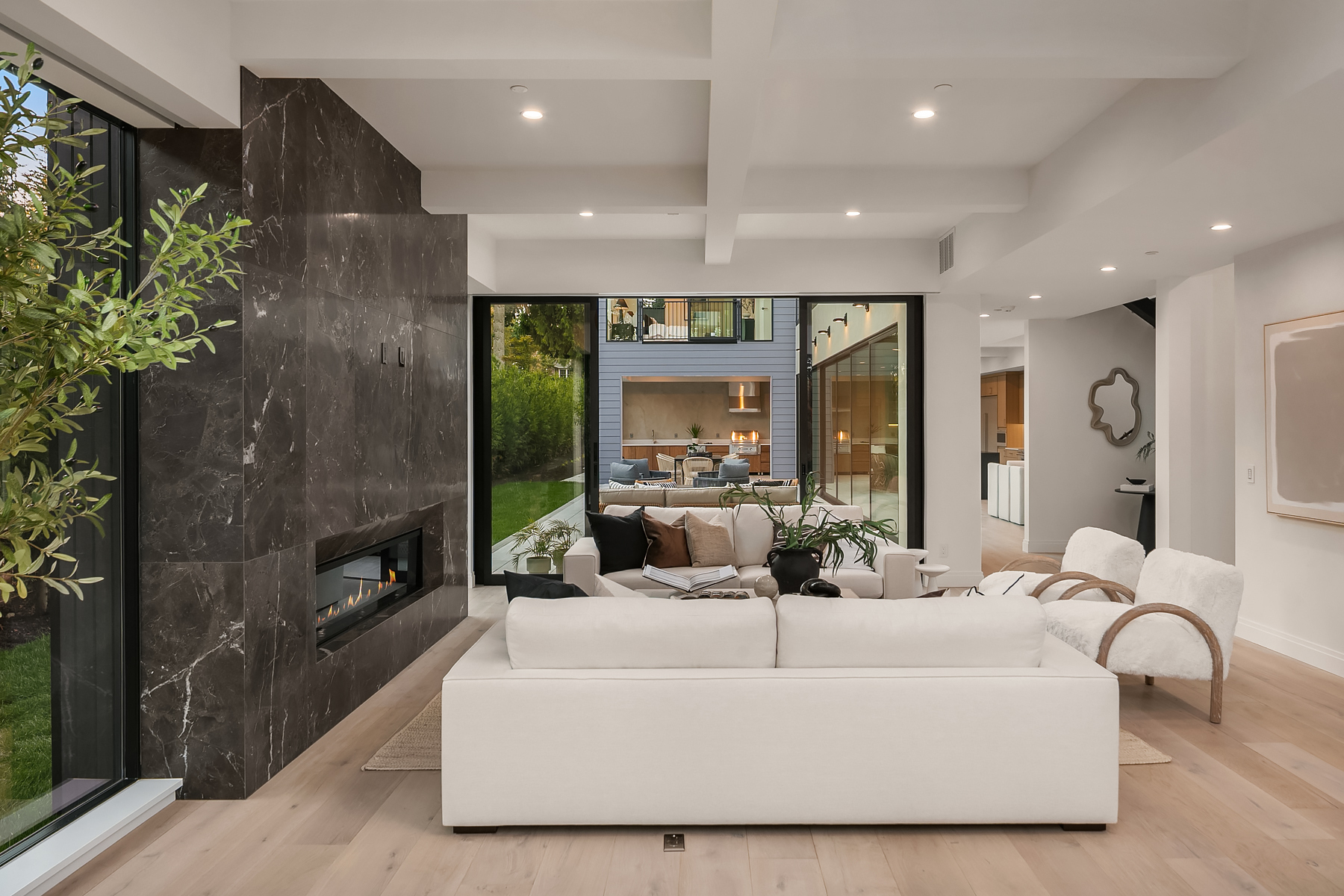 Introducing an extraordinary new build showcasing cutting-edge technology & sophisticated design. Blending luxury & innovation, this architectural masterpiece features 6 beds, bonus room & office + 935sf 1 bedroom ADU. Sited on a private lot on one of Medina's favorite streets w gated driveway. Designed for energy efficiency and convenience with 100% Electric functionality, elevator, solar, dual zero-emission fireplaces, Control4 home automation, built-in speakers, security and surveillance. Gourmet kitchen outfitted with an array of Wolf and SubZero appliances + stunning 18-ft island. Dramatic 40-ft motorized multi-slide door seamlessly connects to private courtyard. 5 beds on upper level including 2 luxurious primary suites & spa baths.