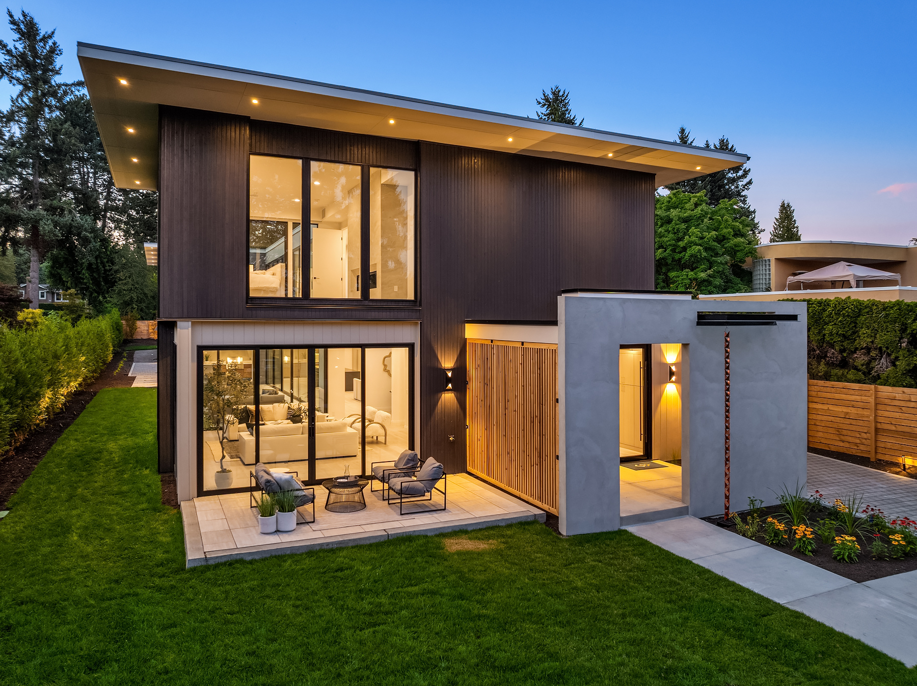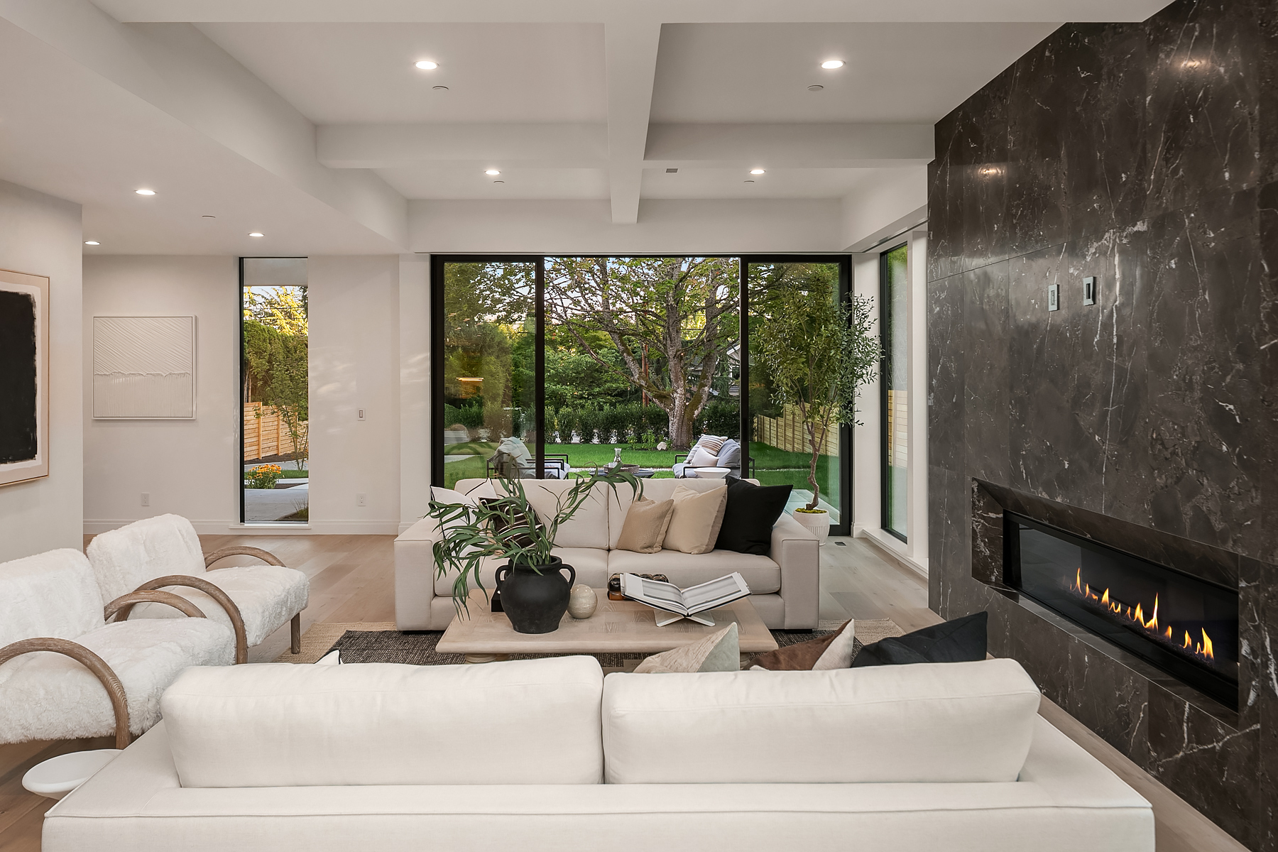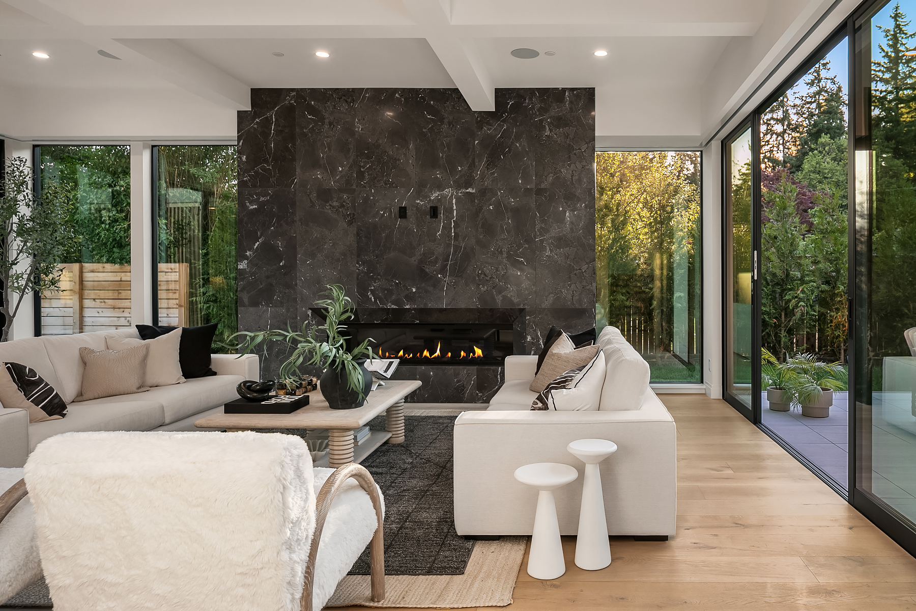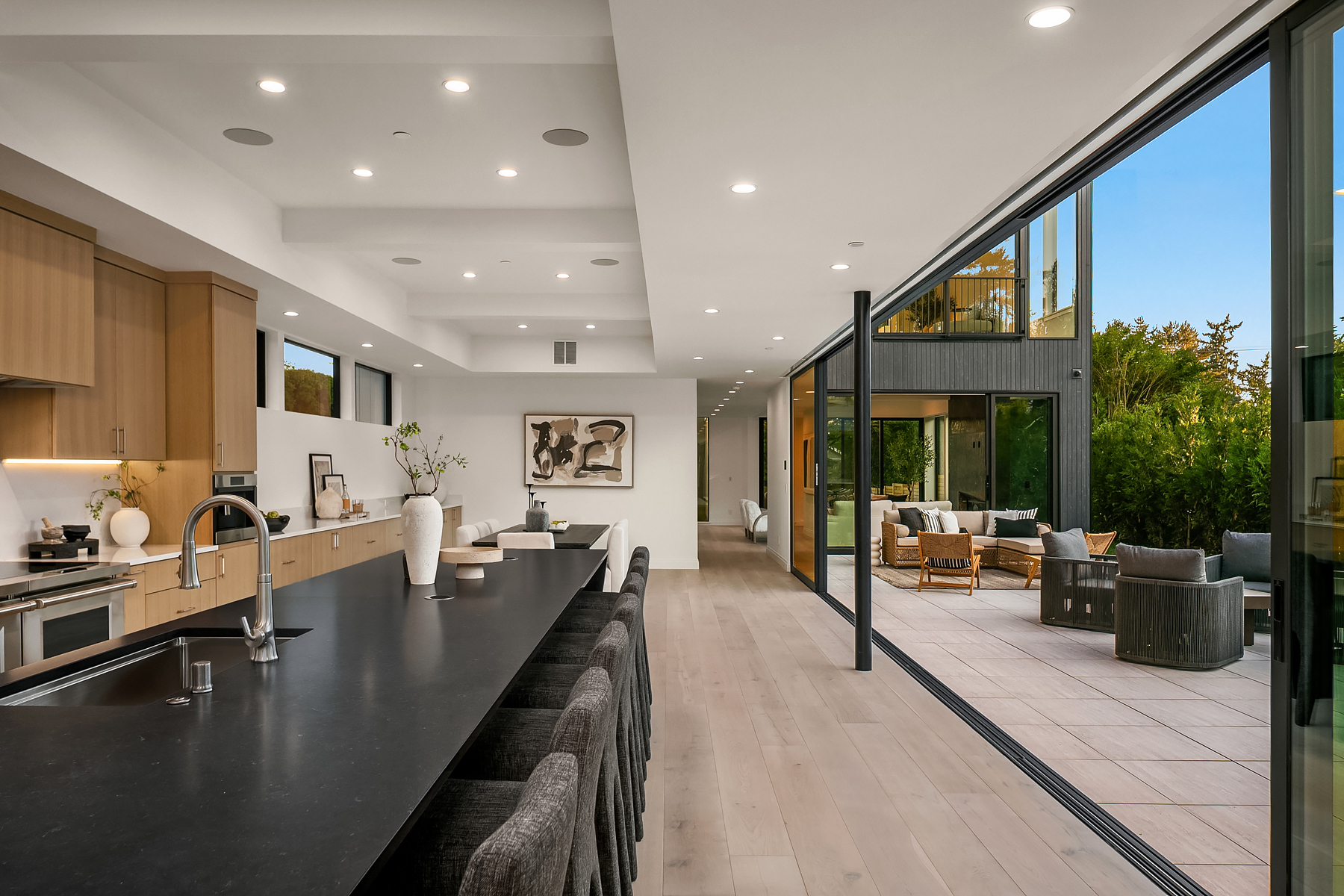 Introducing an extraordinary new build showcasing cutting-edge technology & sophisticated design. Blending luxury & innovation, this architectural masterpiece features 6 beds, bonus room & office + 935sf 1 bedroom ADU. Sited on a private lot on one of Medina's favorite streets w gated driveway. Designed for energy efficiency and convenience with 100% Electric functionality, elevator, solar, dual zero-emission fireplaces, Control4 home automation, built-in speakers, security and surveillance. Gourmet kitchen outfitted with an array of Wolf and SubZero appliances + stunning 18-ft island. Dramatic 40-ft motorized multi-slide door seamlessly connects to private courtyard. 5 beds on upper level including 2 luxurious primary suites & spa baths.