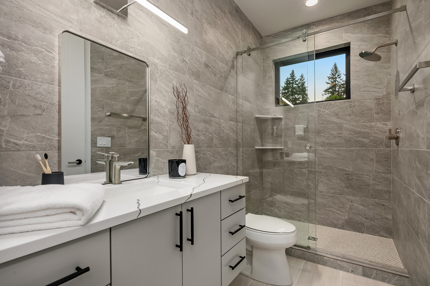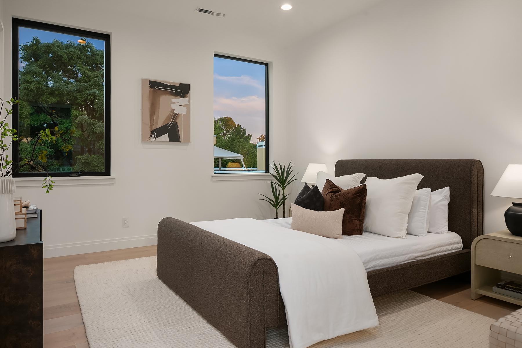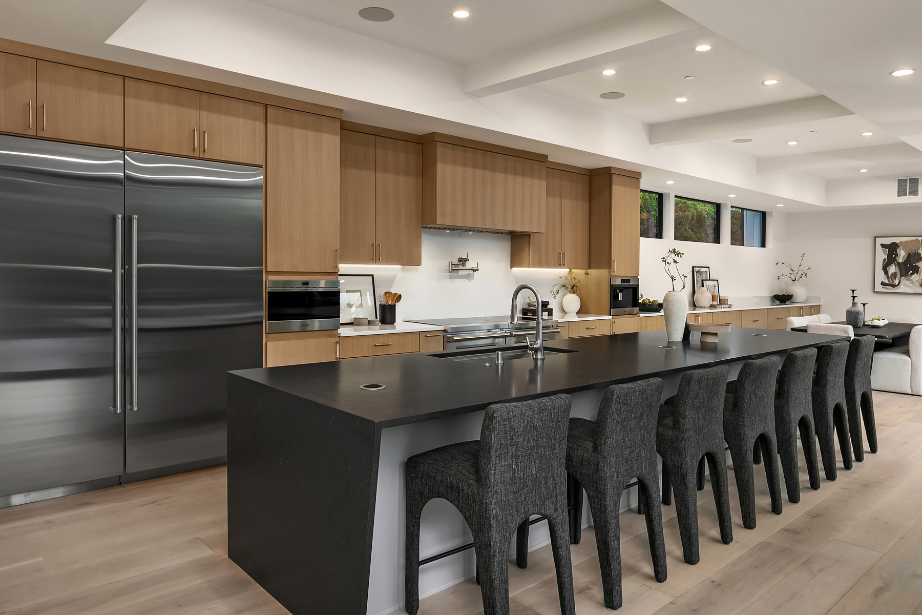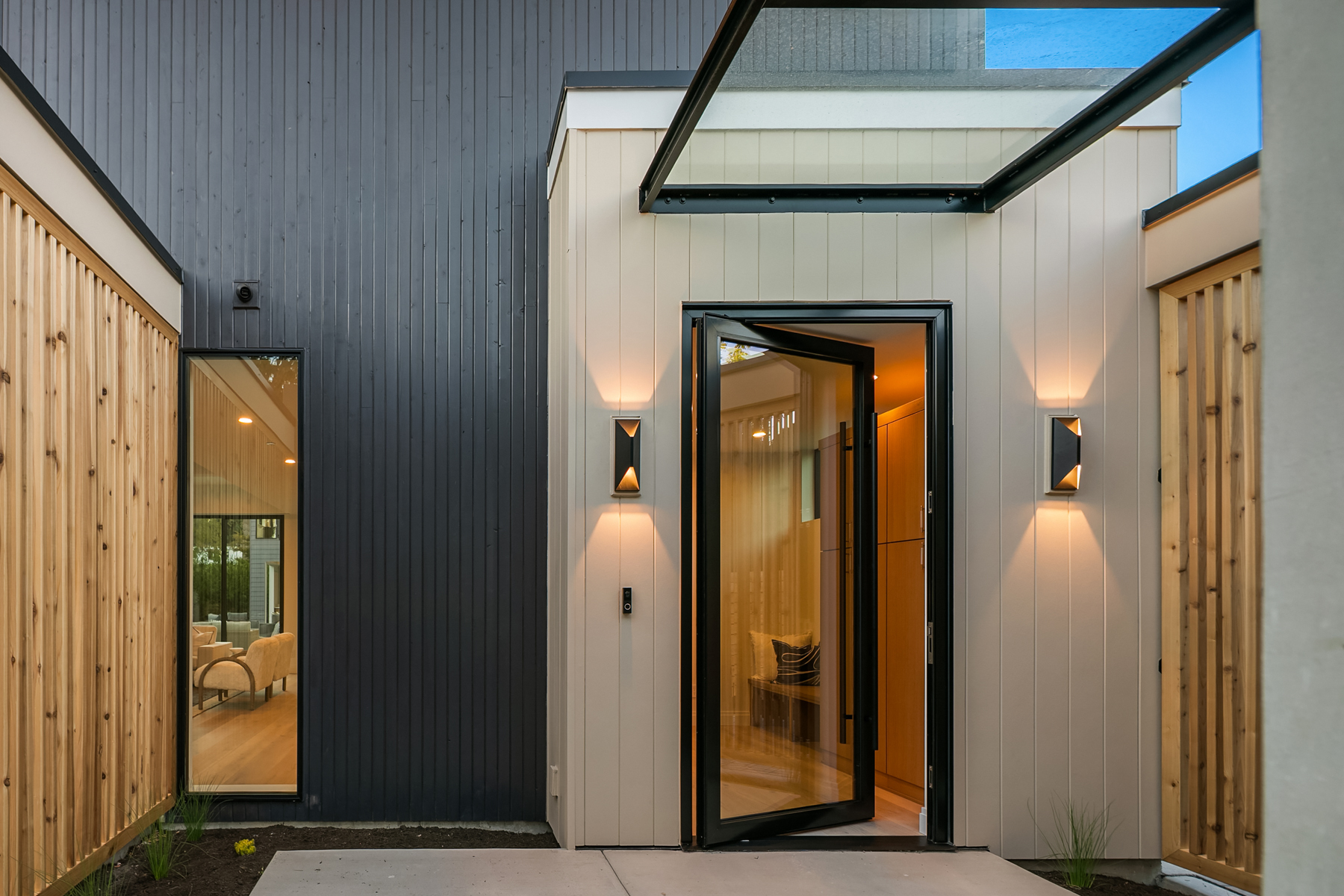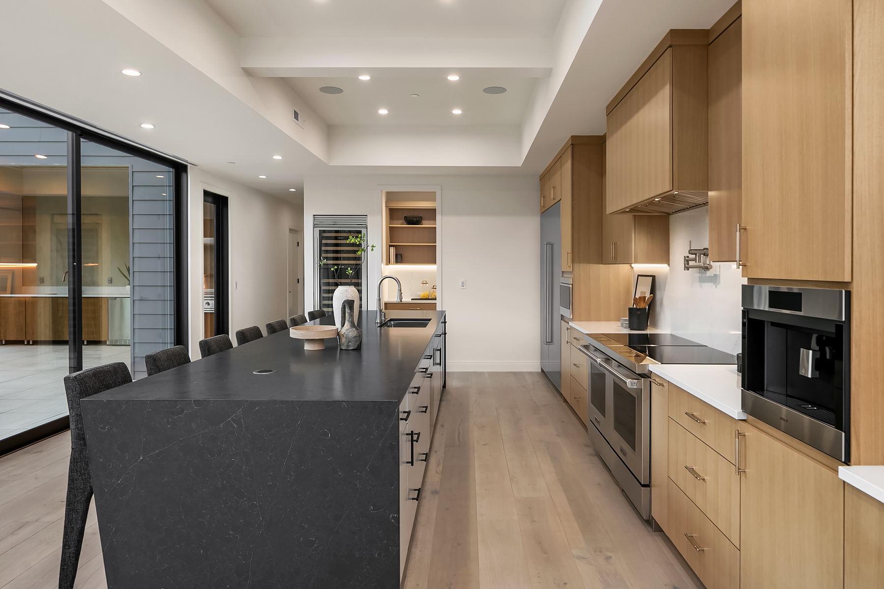 Introducing an extraordinary new build showcasing cutting-edge technology & sophisticated design. Blending luxury & innovation, this architectural masterpiece features 6 beds, bonus room & office + 935sf 1 bedroom ADU. Sited on a private lot on one of Medina's favorite streets w gated driveway. Designed for energy efficiency and convenience with 100% Electric functionality, elevator, solar, dual zero-emission fireplaces, Control4 home automation, built-in speakers, security and surveillance. Gourmet kitchen outfitted with an array of Wolf and SubZero appliances + stunning 18-ft island. Dramatic 40-ft motorized multi-slide door seamlessly connects to private courtyard. 5 beds on upper level including 2 luxurious primary suites & spa baths.