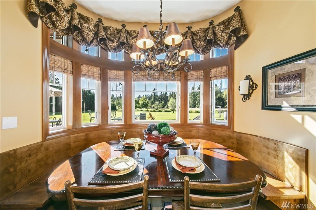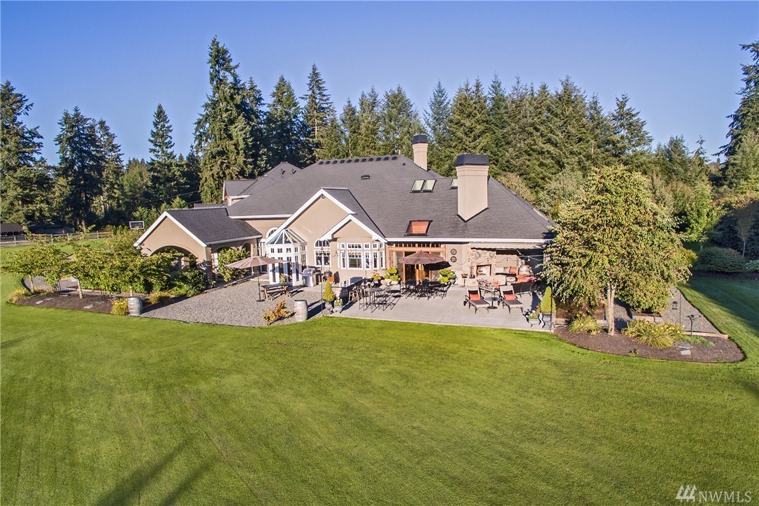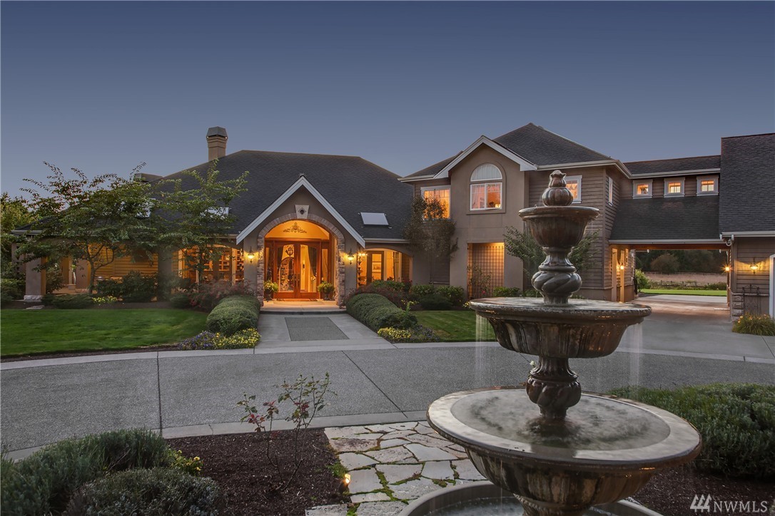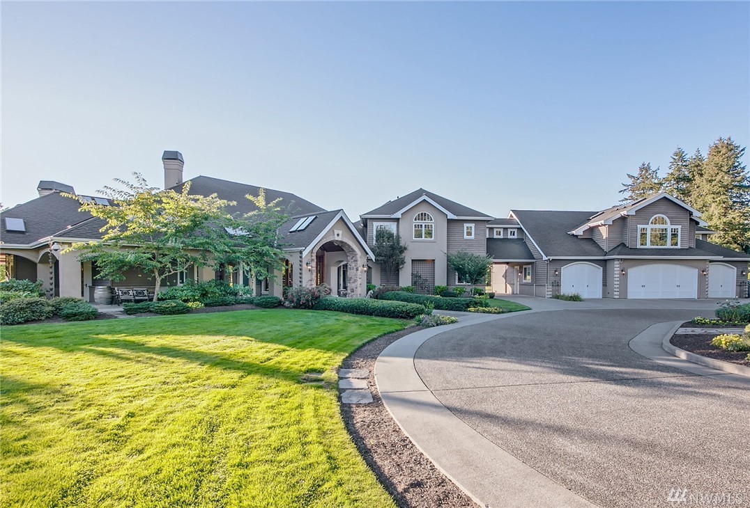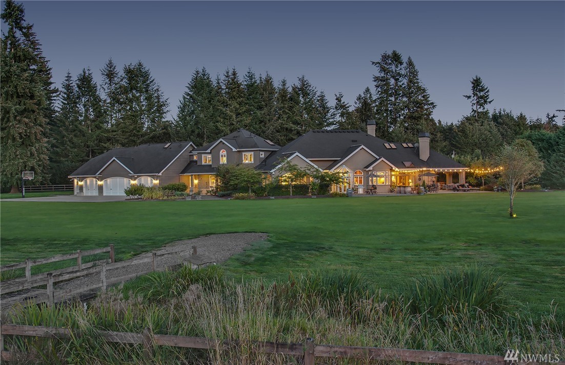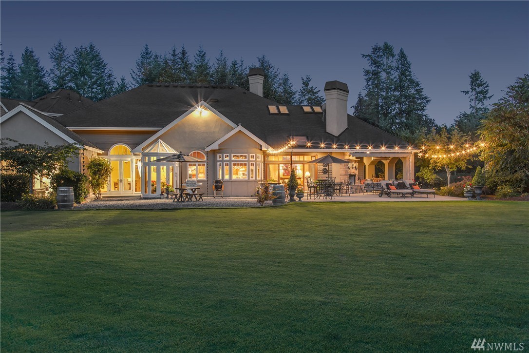Designed to evoke its NW surroundings, custom-built with elegance in mind. Rich in architectural details including natural light reflecting from crystal chandeliers, rich hardwoods, soaring ceilings and warm natural stone. Luxurious chefs kitchen w/ 6-burner gas range, butlers pantry and wine cellar. Entertain loved ones on the covered/heated patios as you take in the secluded 5-acre setting. MIL/au pair suite w/separate entry and kitchen. Gated entry w/ circular drive and impressive 8-car garage.