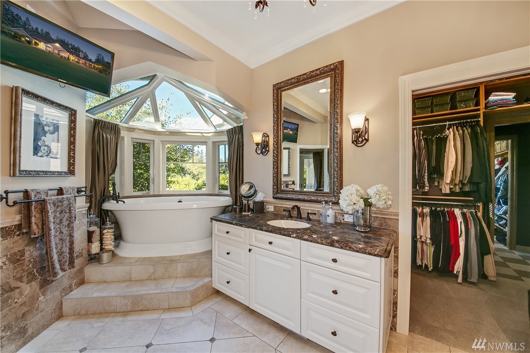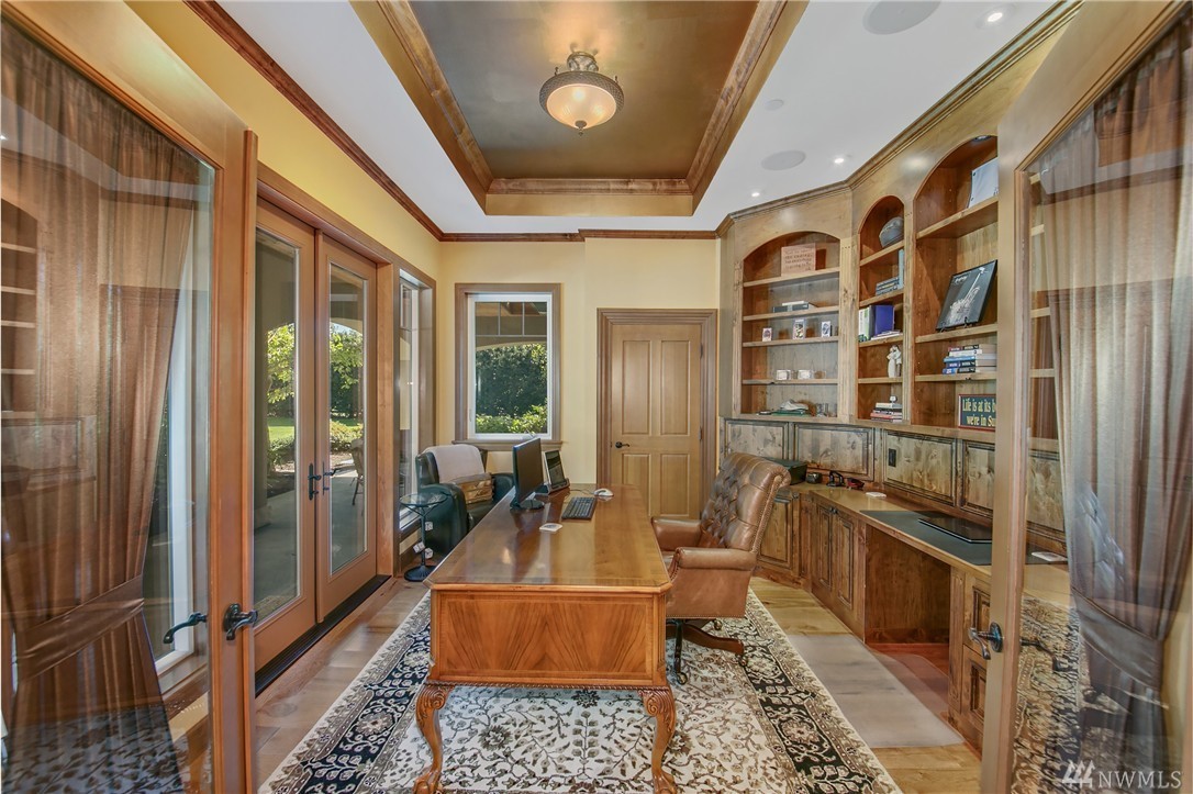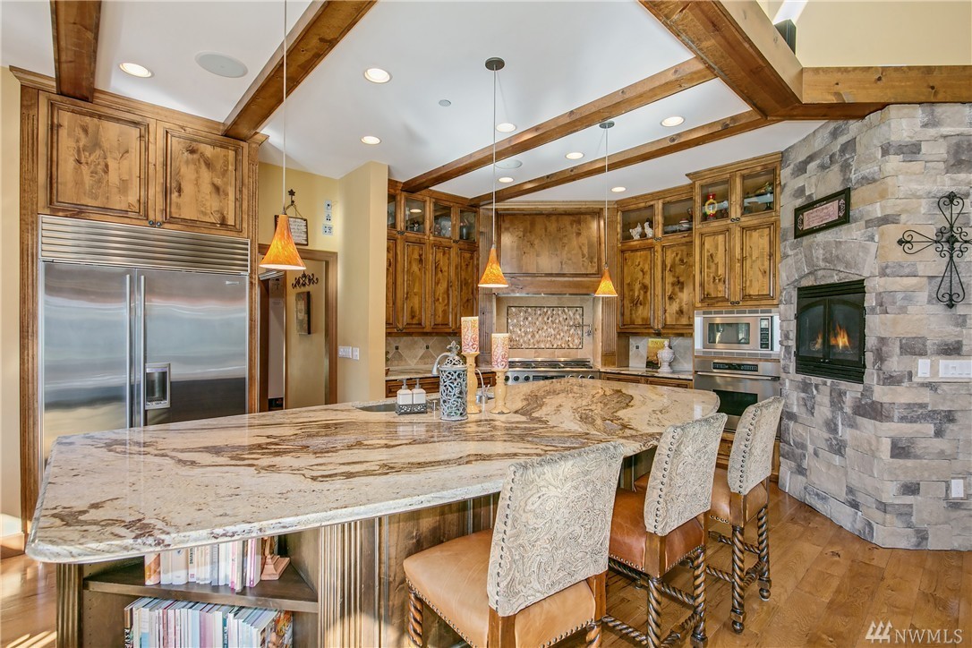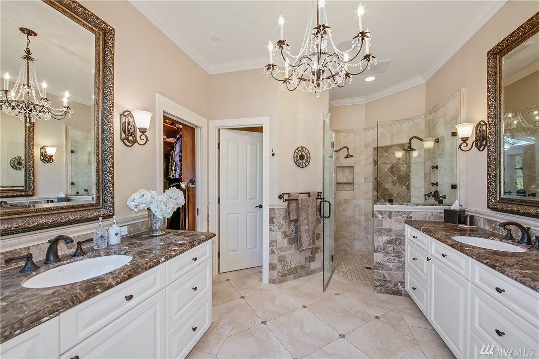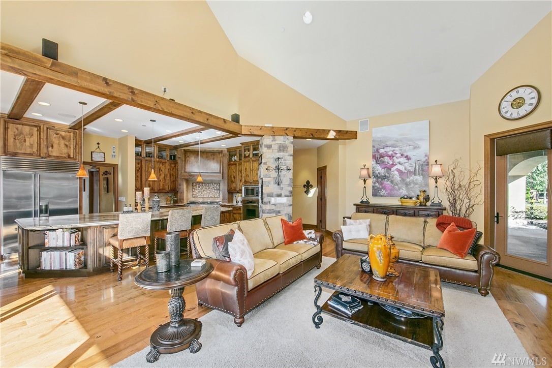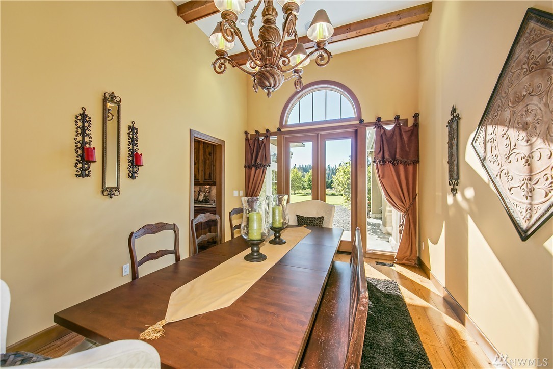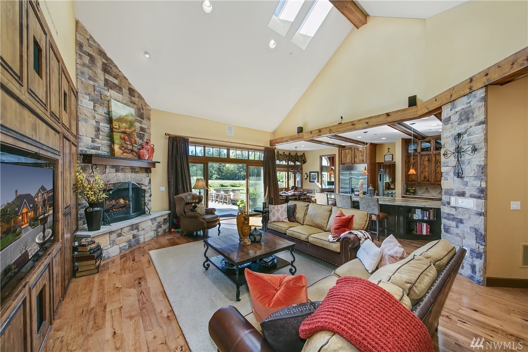Designed to evoke its NW surroundings, custom-built with elegance in mind. Rich in architectural details including natural light reflecting from crystal chandeliers, rich hardwoods, soaring ceilings and warm natural stone. Luxurious chefs kitchen w/ 6-burner gas range, butlers pantry and wine cellar. Entertain loved ones on the covered/heated patios as you take in the secluded 5-acre setting. MIL/au pair suite w/separate entry and kitchen. Gated entry w/ circular drive and impressive 8-car garage.