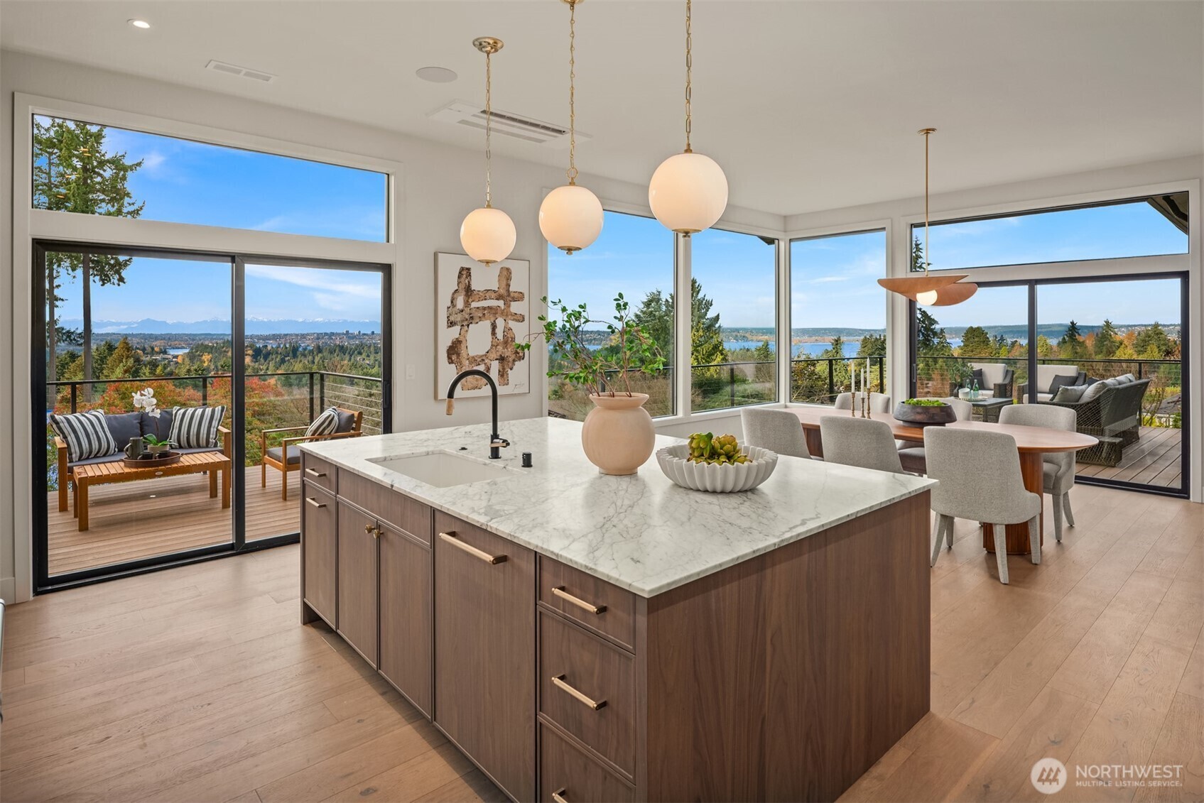 Signature Clyde Hill residence boasts breathtaking panoramic views in the coveted Aqua Vista community. Exquisite property has been completely reimagined w/whole-house luxury remodel by acclaimed local builder Gerry Homes. Walls of glass frame unrivaled views & illuminate an interior loaded w/sophisticated bespoke finishes. Main level offers sumptuous primary suite, open concept living spaces designed for effortless entertaining & chef’s epicurean kitchen w/Carrera slab marble, custom cabinetry & Subzero/Wolf appliance package. Expansive lower level features 4BRs + bonus rm & gym. Expertly sited on a 20K+ SF lot, just mins from DT Bellevue & SR520. A truly rare offering for the discerning luxury buyer searching for that “Forever” view home!