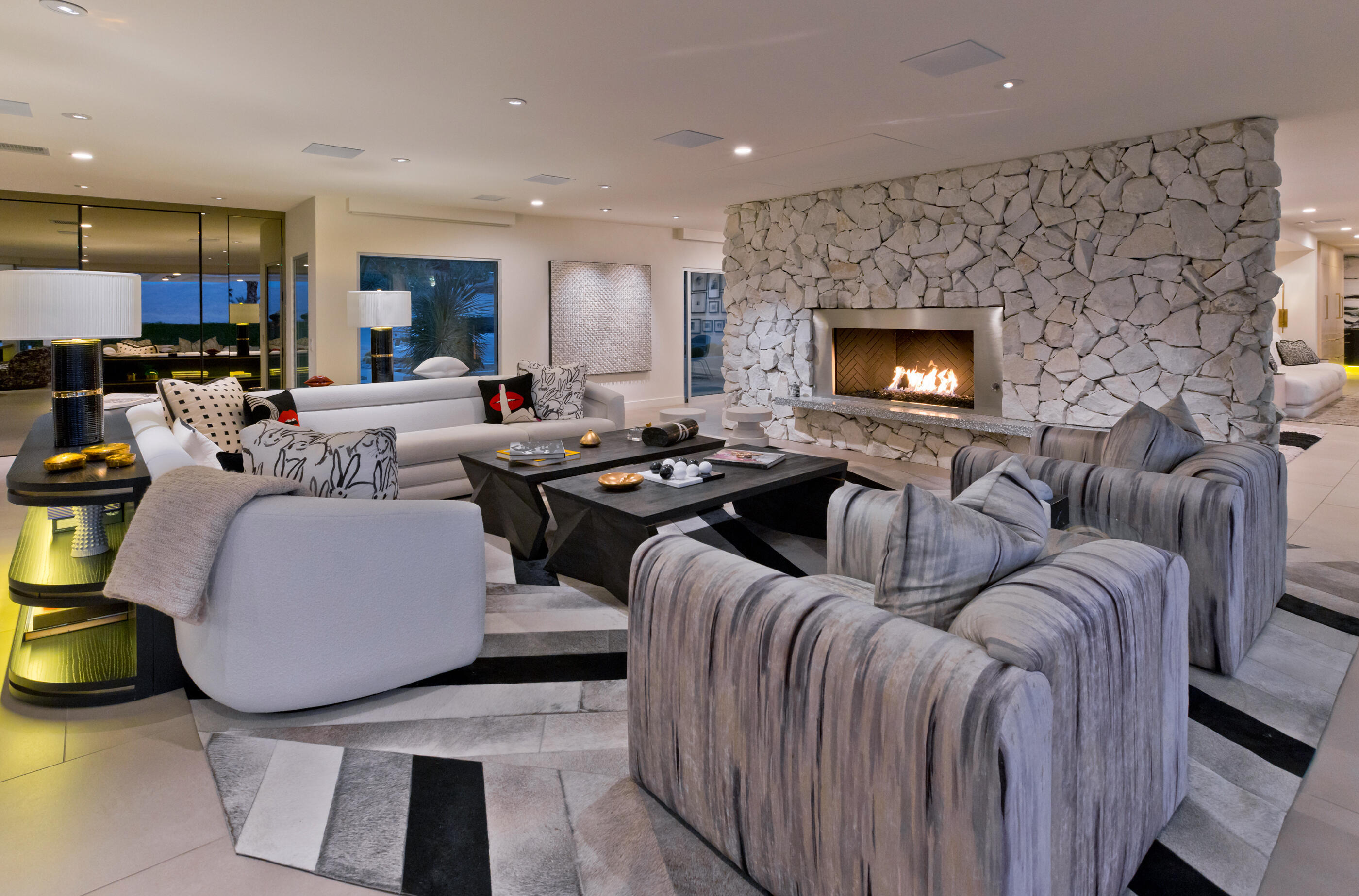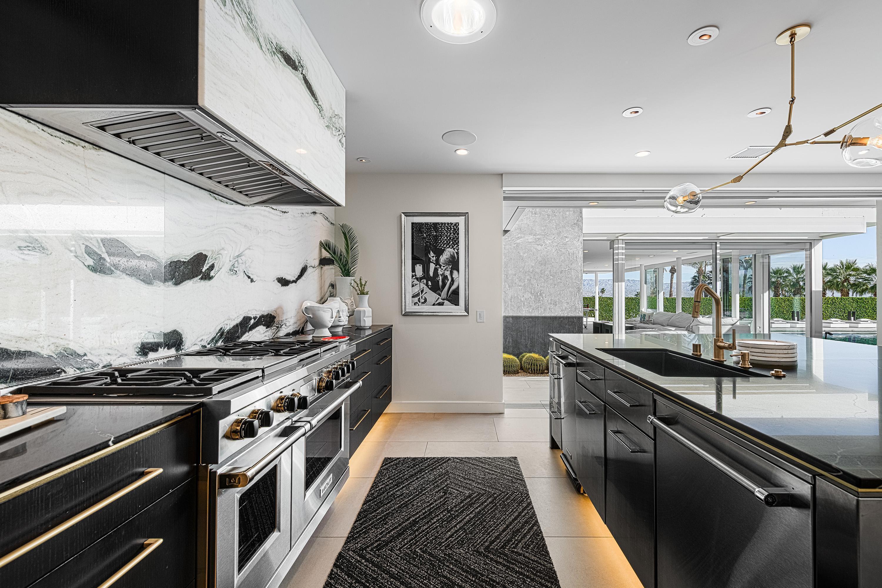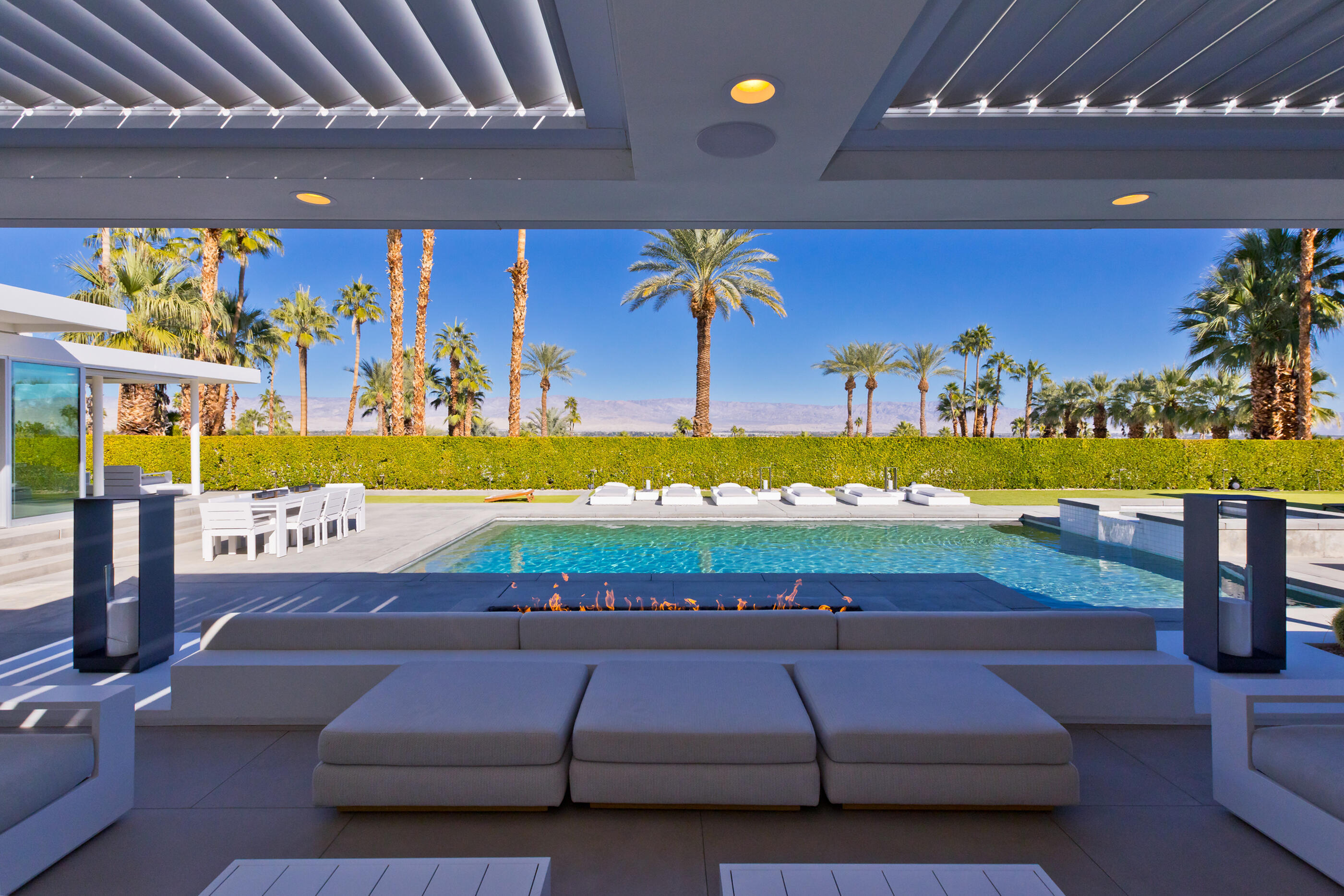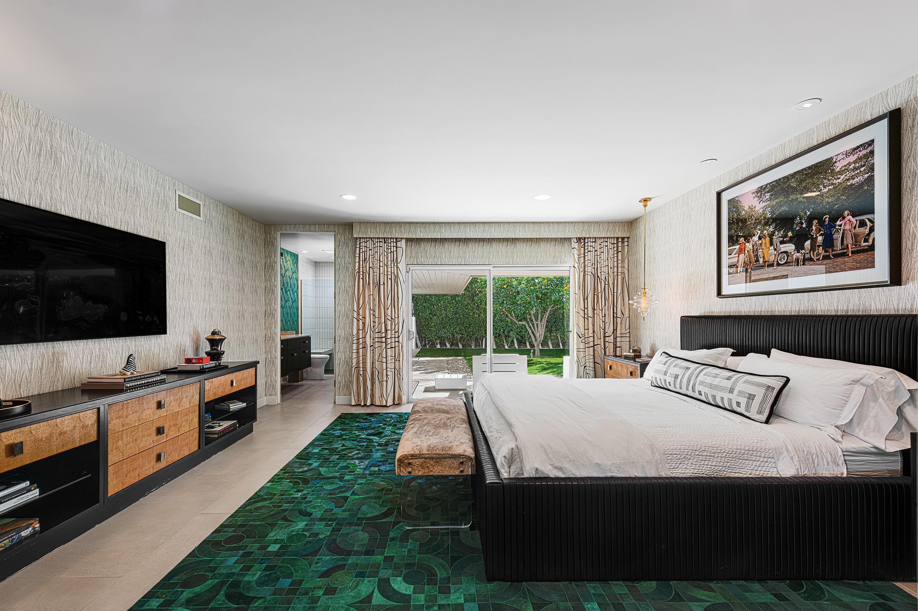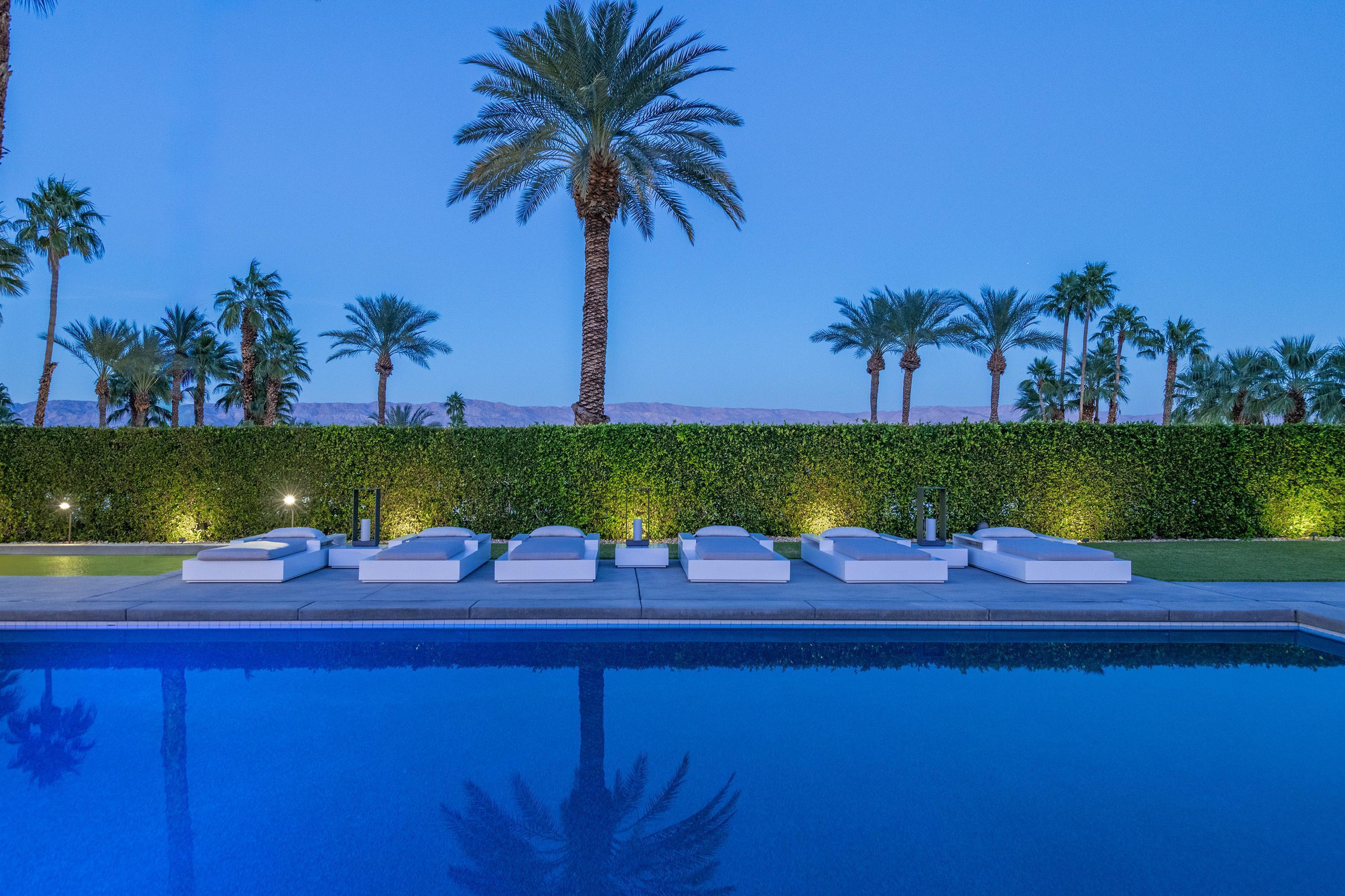 Perched high atop the exclusive Thunderbird Heights enclave, this extraordinary 6-bedroom, 7-bath residence offers 6,148 square feet of luxury living with a seamless blend of California ranch charm and mid-century modern sophistication. From the front, the home showcases its California ranch-style façade, while the rear opens into a private modern oasis—perfectly designed for indoor-outdoor living and entertaining. The home is fully renovated, every detail showcases the finest finishes, state-of-the-art appliances, smart home technology, and curated design. The expansive floor plan features multiple living and dining areas, a chef's kitchen, and generously sized bedrooms, each with an en-suite bath. Fleetwood doors and windows are integrated throughout—many retract fully to disappear into the architecture—blurring the line between indoors and outdoors, framing sweeping views, and flooding the home with natural light. The main living space is ideal for entertainers and sports enthusiasts. Four tastefully integrated televisions create the ultimate setting for game-day gatherings, movie nights, or multi-event viewing—all without compromising the home's elegant design. The property offers multiple outdoor spaces for relaxation and entertaining, including a well-appointed grilling and cooking area discreetly tucked away for seamless hosting. Whether enjoying al fresco dining or quiet moments poolside, the home's outdoor amenities elevate every occasion. Set within the historic Thunderbird Heights community, this property offers golf cart access to the legendary Thunderbird Country Club, while its elevated position provides privacy and panoramic vistas. This is desert luxury at its finest.
