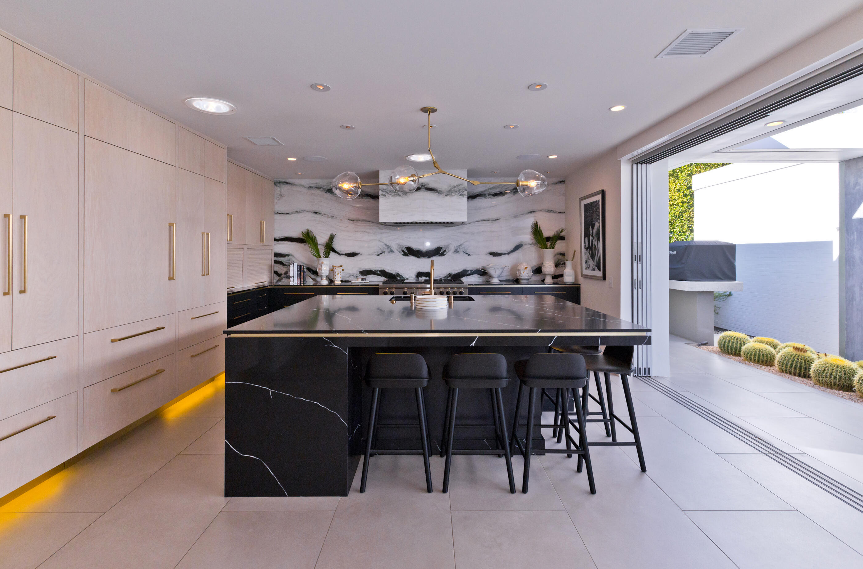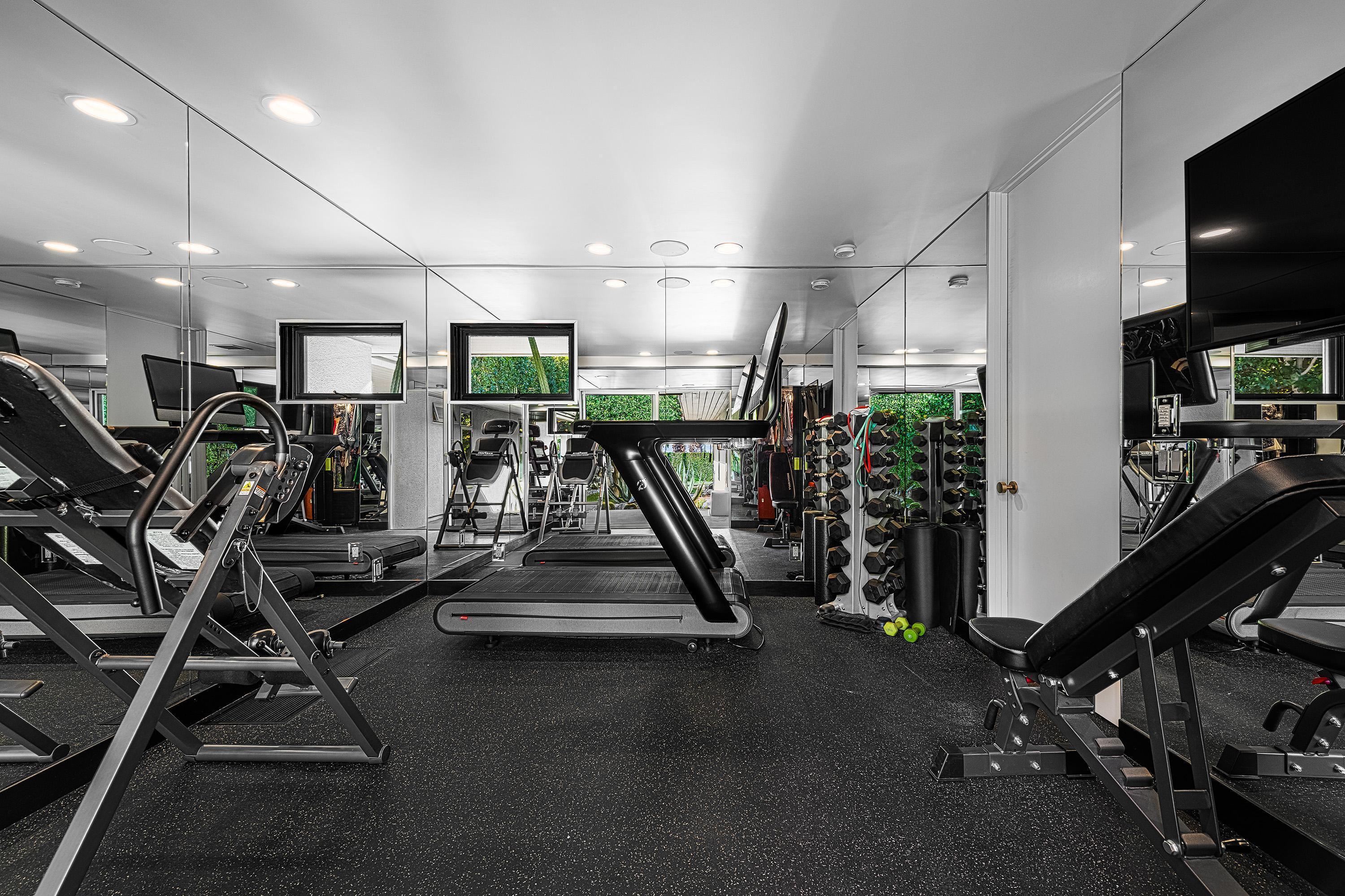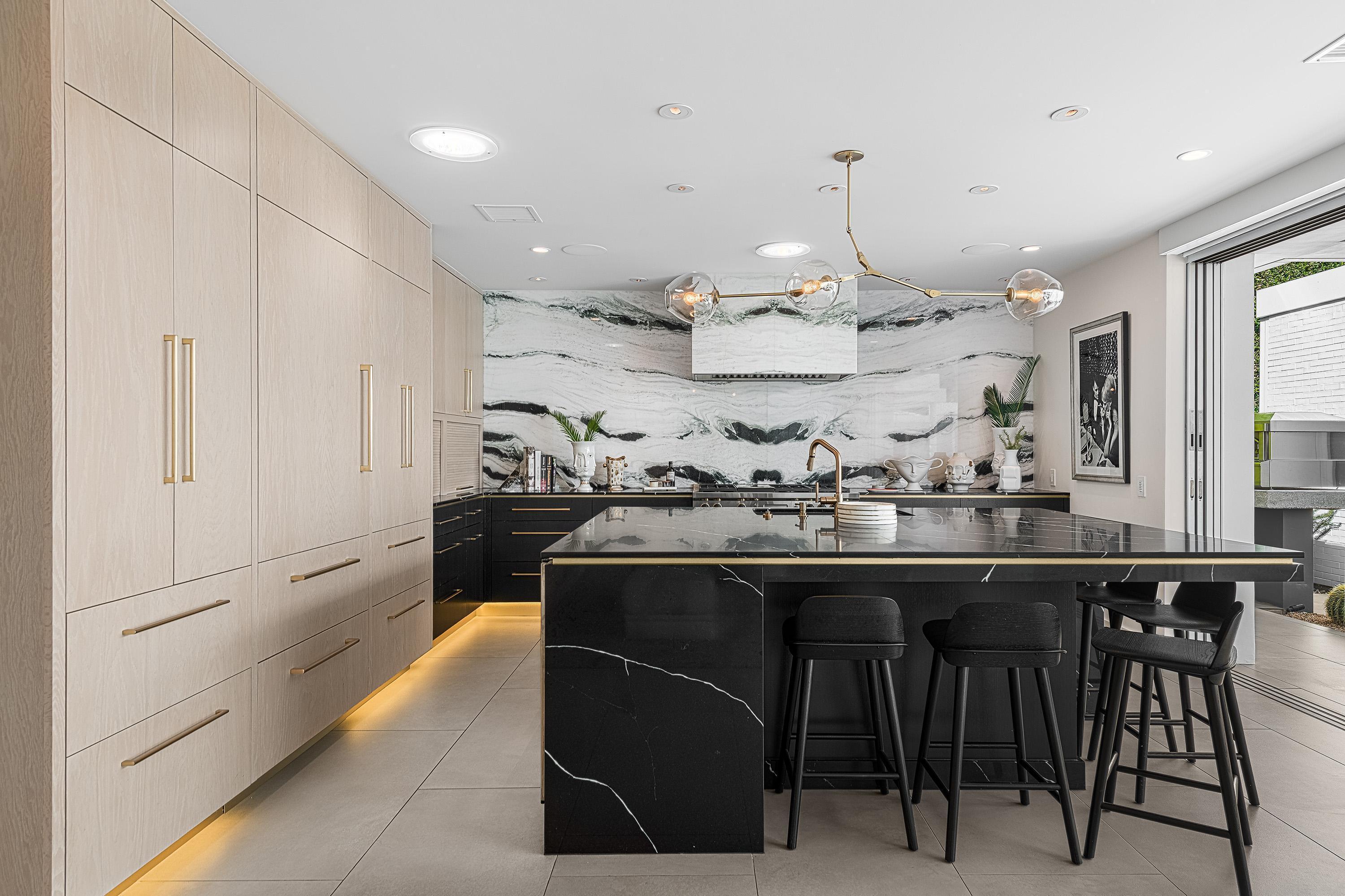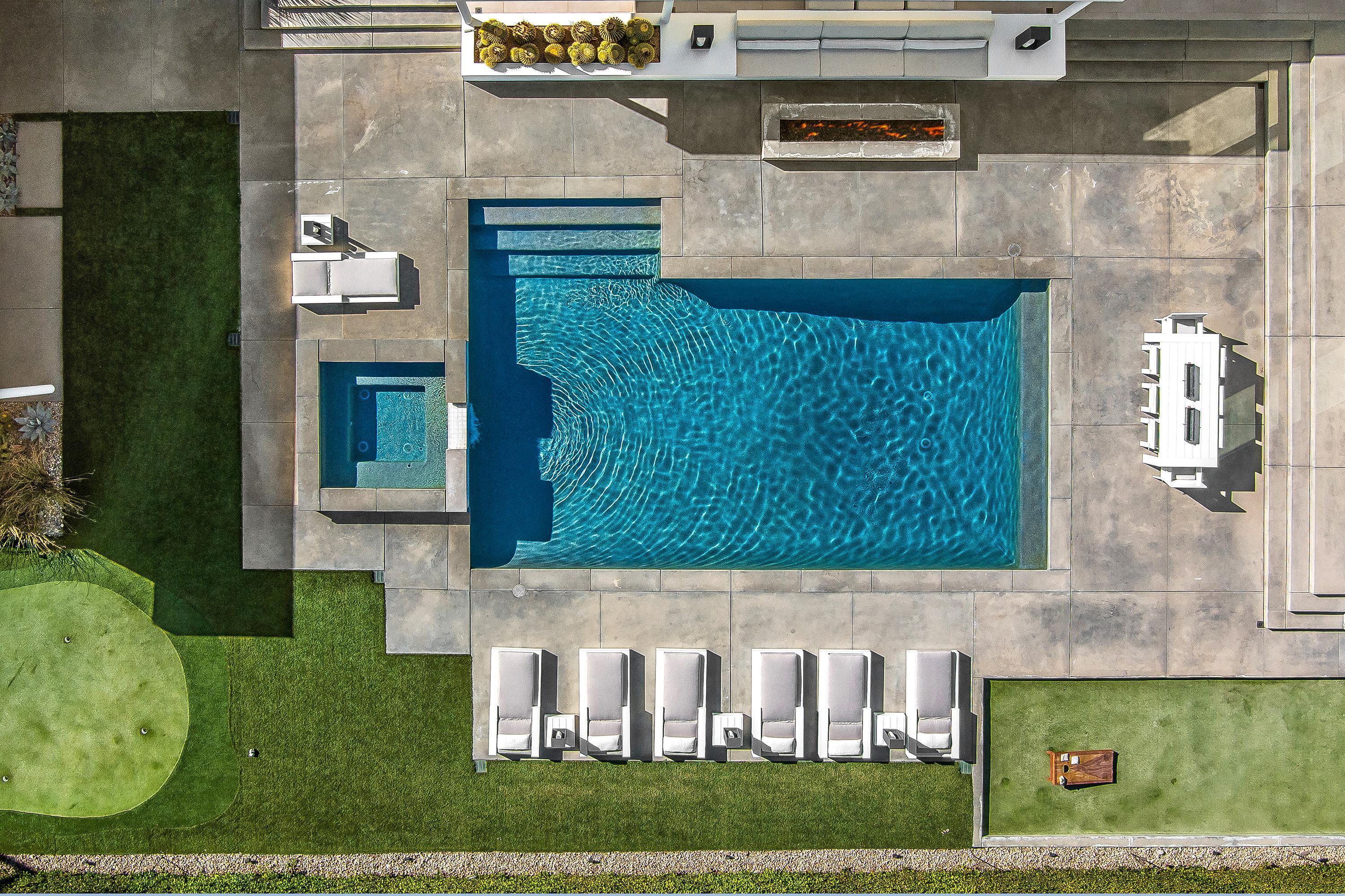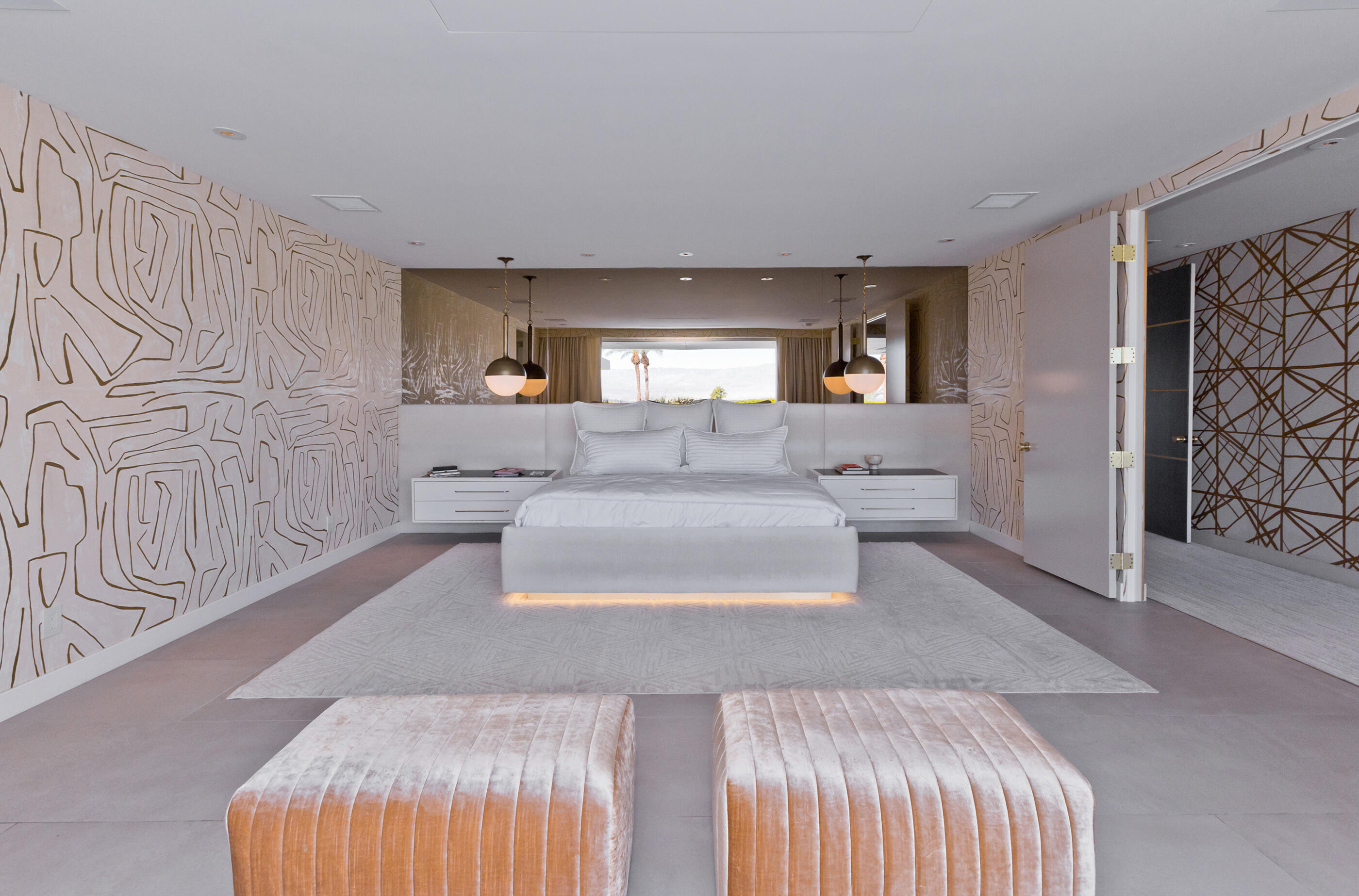 Perched high atop the exclusive Thunderbird Heights enclave, this extraordinary 6-bedroom, 7-bath residence offers 6,148 square feet of luxury living with a seamless blend of California ranch charm and mid-century modern sophistication. From the front, the home showcases its California ranch-style façade, while the rear opens into a private modern oasis—perfectly designed for indoor-outdoor living and entertaining. The home is fully renovated, every detail showcases the finest finishes, state-of-the-art appliances, smart home technology, and curated design. The expansive floor plan features multiple living and dining areas, a chef's kitchen, and generously sized bedrooms, each with an en-suite bath. Fleetwood doors and windows are integrated throughout—many retract fully to disappear into the architecture—blurring the line between indoors and outdoors, framing sweeping views, and flooding the home with natural light. The main living space is ideal for entertainers and sports enthusiasts. Four tastefully integrated televisions create the ultimate setting for game-day gatherings, movie nights, or multi-event viewing—all without compromising the home's elegant design. The property offers multiple outdoor spaces for relaxation and entertaining, including a well-appointed grilling and cooking area discreetly tucked away for seamless hosting. Whether enjoying al fresco dining or quiet moments poolside, the home's outdoor amenities elevate every occasion. Set within the historic Thunderbird Heights community, this property offers golf cart access to the legendary Thunderbird Country Club, while its elevated position provides privacy and panoramic vistas. This is desert luxury at its finest.