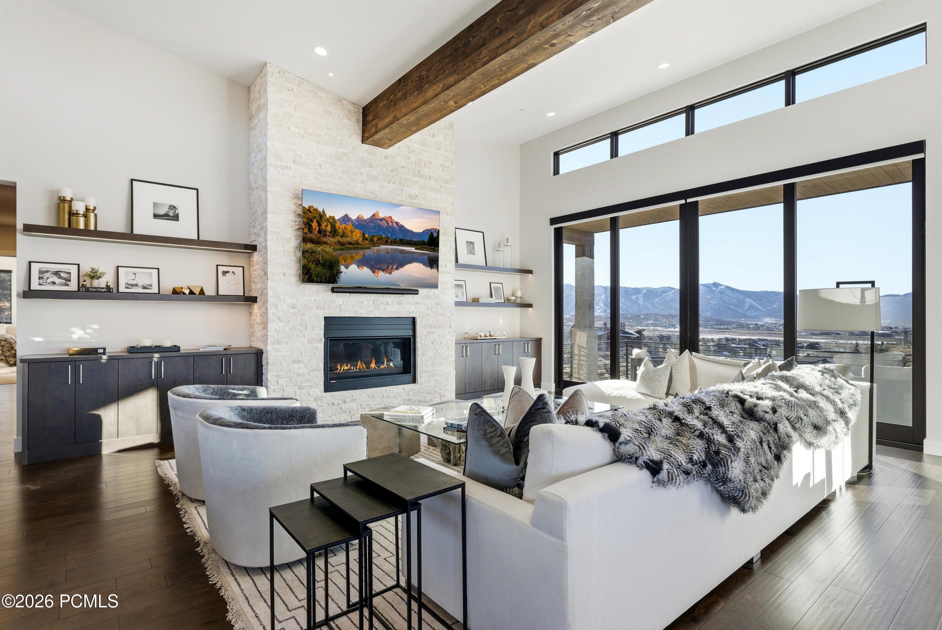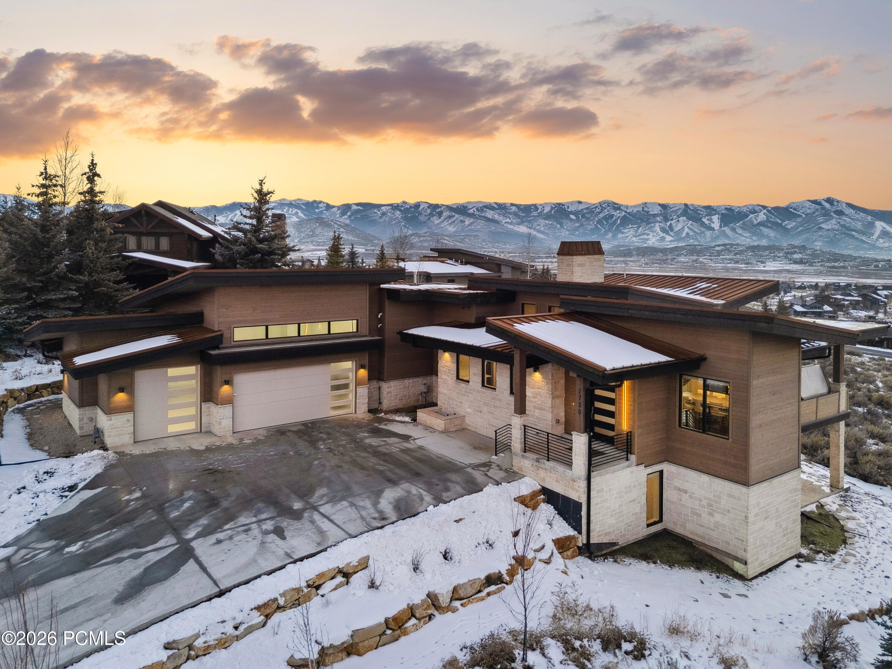Welcome to 2730 Bitterbrush Drive, located in one of Park City's premier neighborhoodsPromontory. This newly constructed 2024 residence showcases a modern, functional design, with sweeping views of Park City Mountain Resort, Deer Valley, and the Wasatch Back. Thoughtfully designed for main-level living, the home features spacious open-concept living areas, a main-level owner's suite, and an additional guest suite. The lower level offers three more bedrooms, a dedicated office, generous entertaining space, and an impressive 800-square-foot flex room, which is currently set up as a bunk room and golf simulator. An oversized three-car garage provides ample space for vehicles, toys and recreational gear. Ideally situated near Promontory's Equestrian Gate, the home offers convenient access to Park City, Heber Valley, and Salt Lake City.
