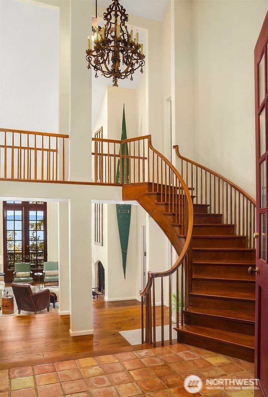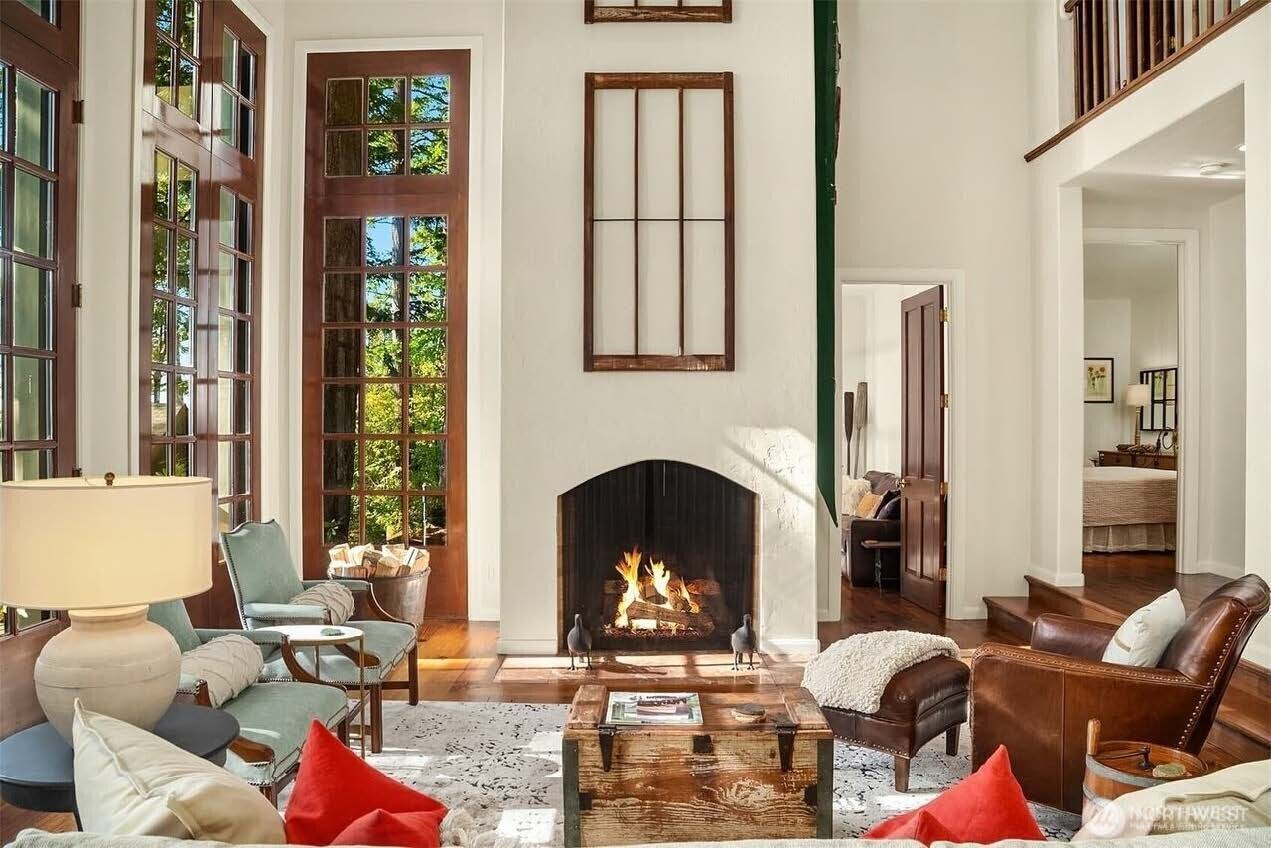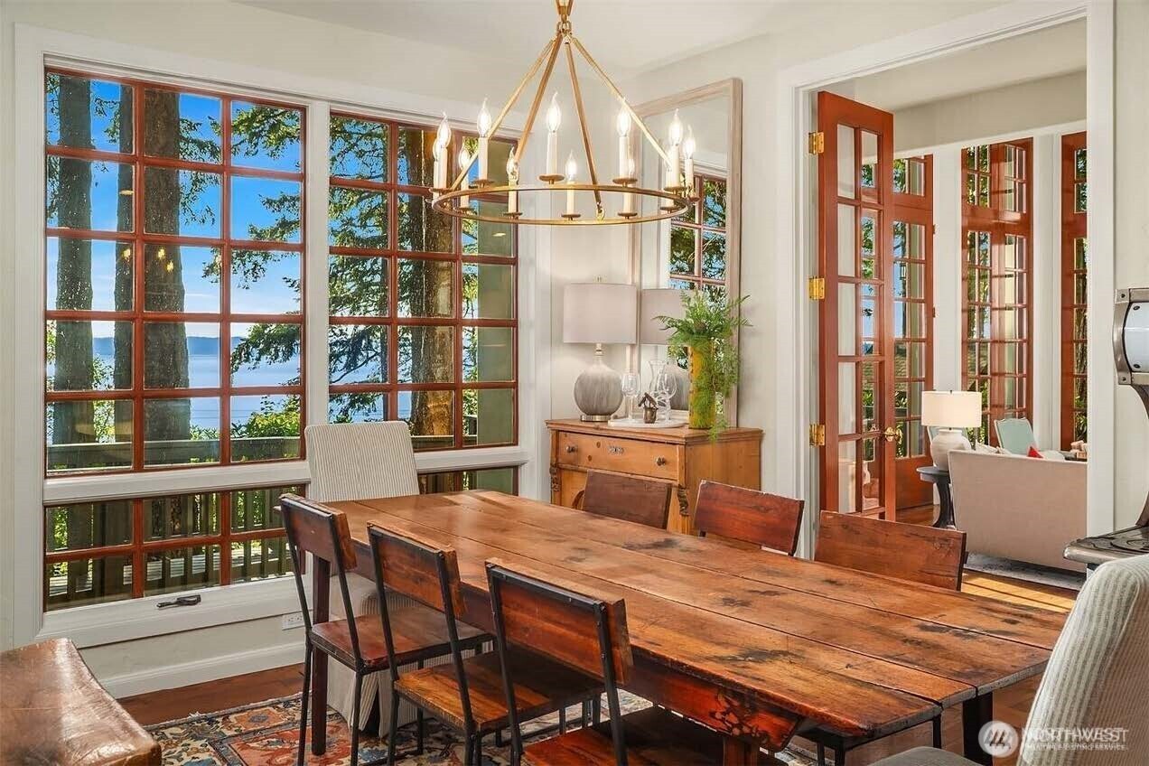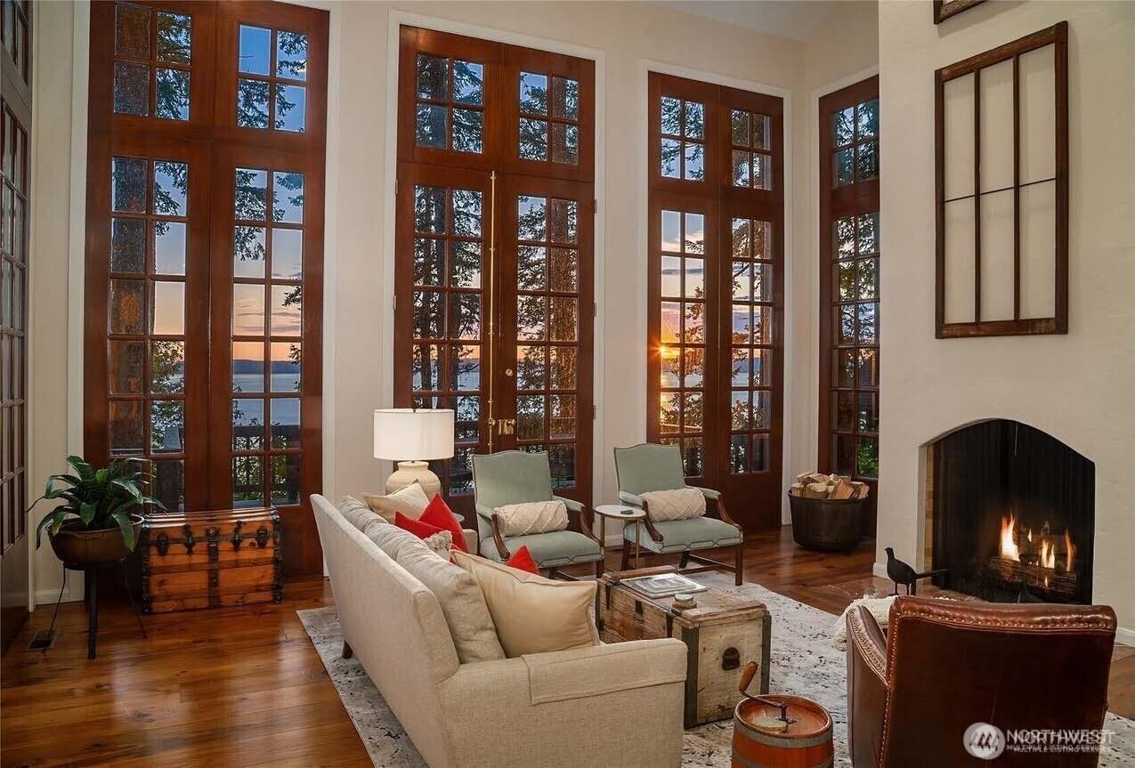 This legacy waterfront estate is tucked away on 11.2 acres near Kayak Point, with 500 feet of west-facing shoreline on Port Susan overlooking Camano Island. The perfect balance of privacy and accessibility, this island-style escape is just one hour north of Seattle–no ferry required. Step into your private cable lift and glide, any time day or night, to the secluded sandy beach below. Relax or swim while you take in epic sunsets and sweeping Olympic Mountain views or kayak to your private mooring buoy to set out for fishing or crabbing. Located just one mile from the public boat launch at Kayak Point Park, you can enjoy boating adventures across Port Susan to the San Juan Islands and beyond-all from your own home. Nestled within a coastal forest habitat with meandering trails, the property is a sanctuary for eagles, whales, and native wildlife. The home’s timeless design combines Mediterranean style with Pacific Northwest charm. Soaring ceilings and windows flood the interior with natural light, and wide plank reclaimed fir floors lend warmth and character to every room. A thoughtfully updated kitchen preserves the original mission-inspired arched fireplace, creating a warm ambiance for gatherings. Don’t miss this rare opportunity to enjoy a coastal lifestyle without compromise, where privacy, natural beauty, accessibility and convenience converge—legacy waterfront properties like this are seldom available.