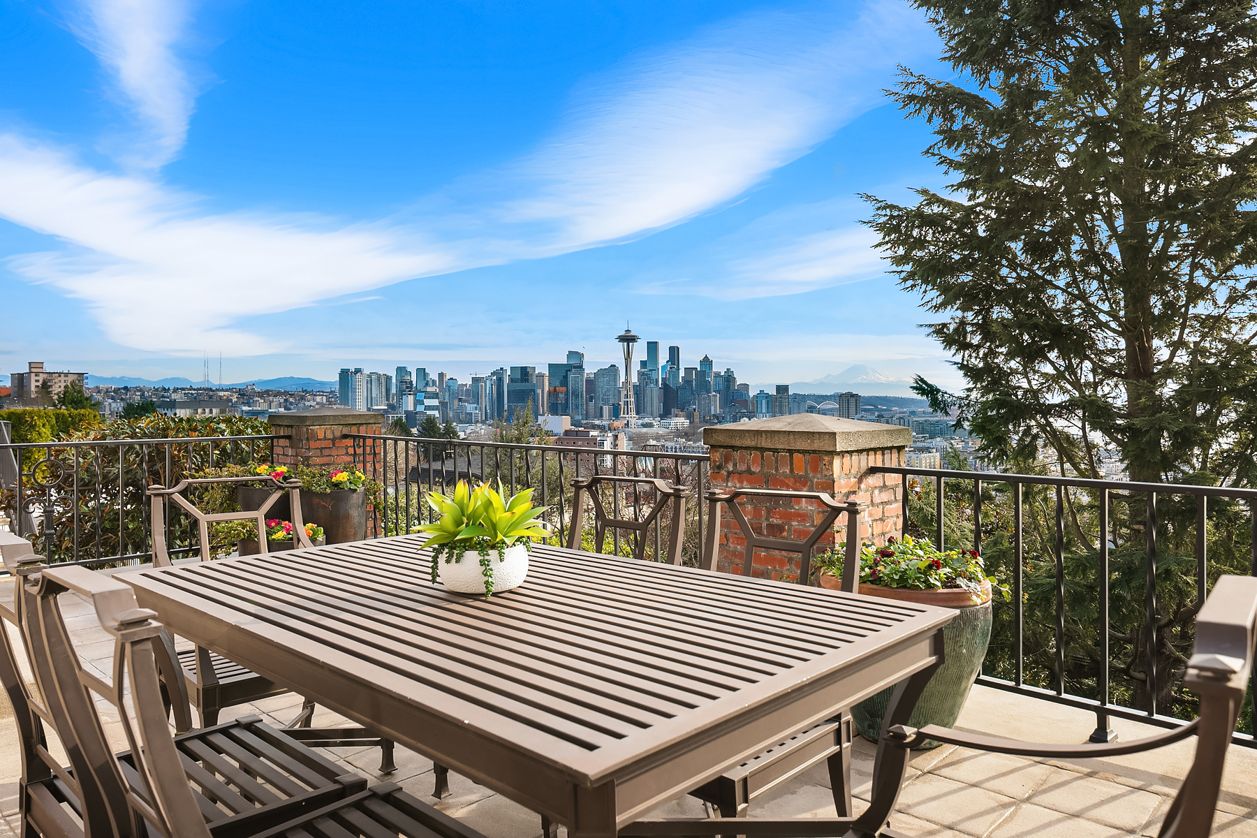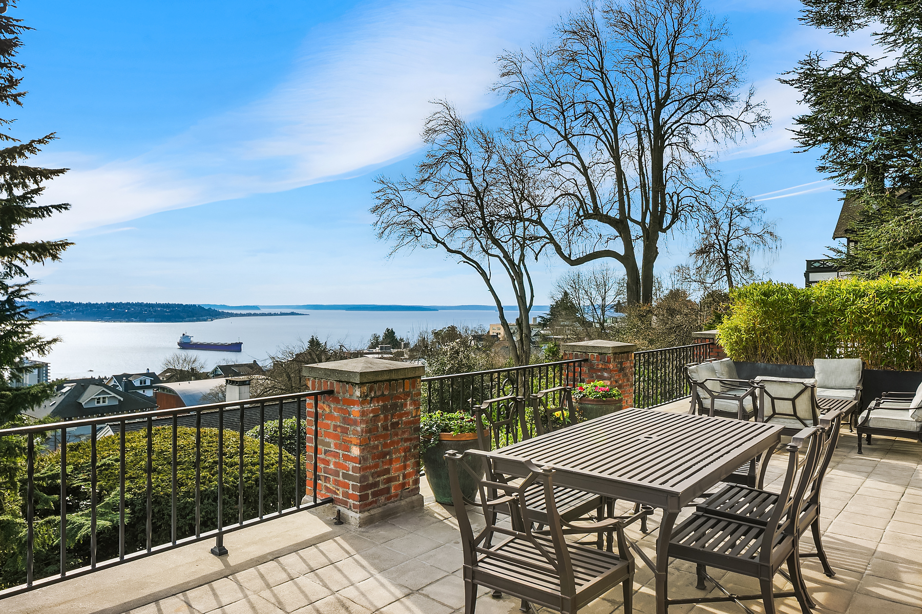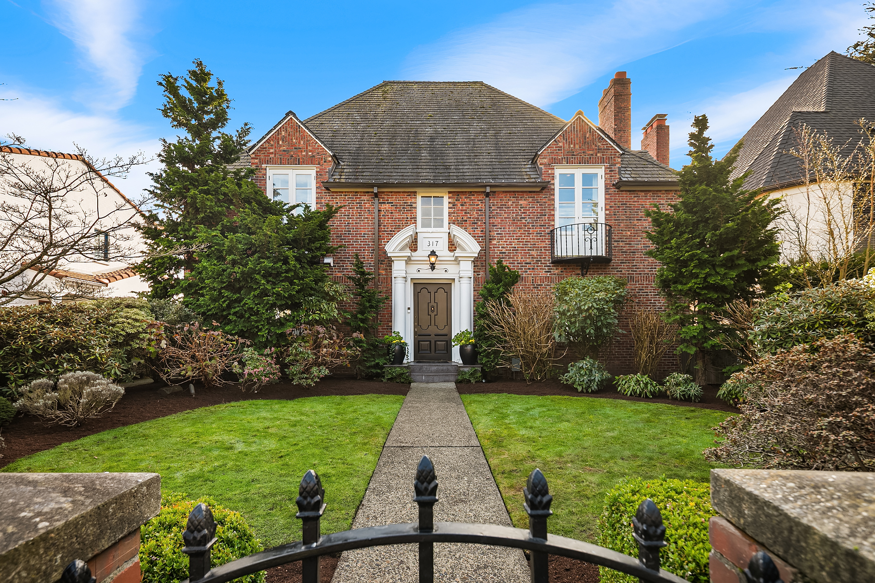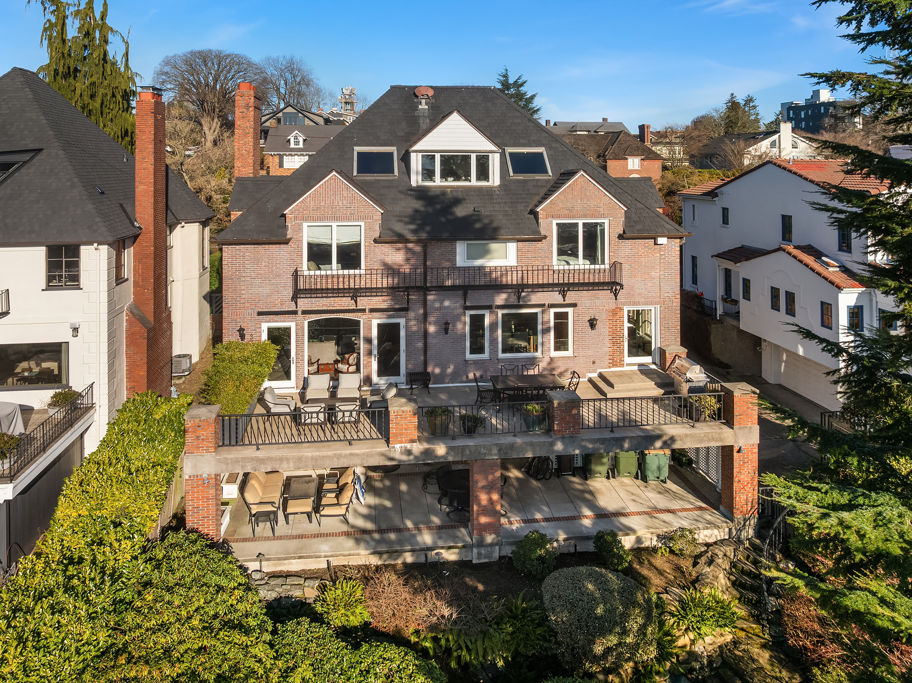 A stunning South Slope residence, thoughtfully refreshed and updated, this classic 1930 Georgian Revival blends historic elegance with contemporary luxury. Distinguished by brick walls, a slate roof, and a columned portico, the home underwent an extensive remodel in 2012 with additional improvements since, resulting in refined interiors, luxury finishes, and modern systems throughout. A dramatic two-story entry welcomes you into light-filled living spaces, including a sophisticated living room with a granite trimmed fireplace and French doors opening to a view terrace. The chef’s kitchen is equipped with top-tier appliances and premium surfaces, ideal for both daily living and entertaining.The home offers four bedrooms and 3.5 baths, including a serene primary suite, along with an office and a media room with fireplace. Expansive outdoor terraces capture breathtaking, panoramic views of downtown Seattle, Puget Sound, Mt. Rainier, Blake and Bainbridge Islands. Additional features include air conditioning, an attached two-car garage, abundant storage, and generous outdoor living areas. Listed on the Seattle Historical Sites Registry, the iconic Robert Moody House is a rare opportunity to own a piece of Seattle history in one of its most sought-after view locations.