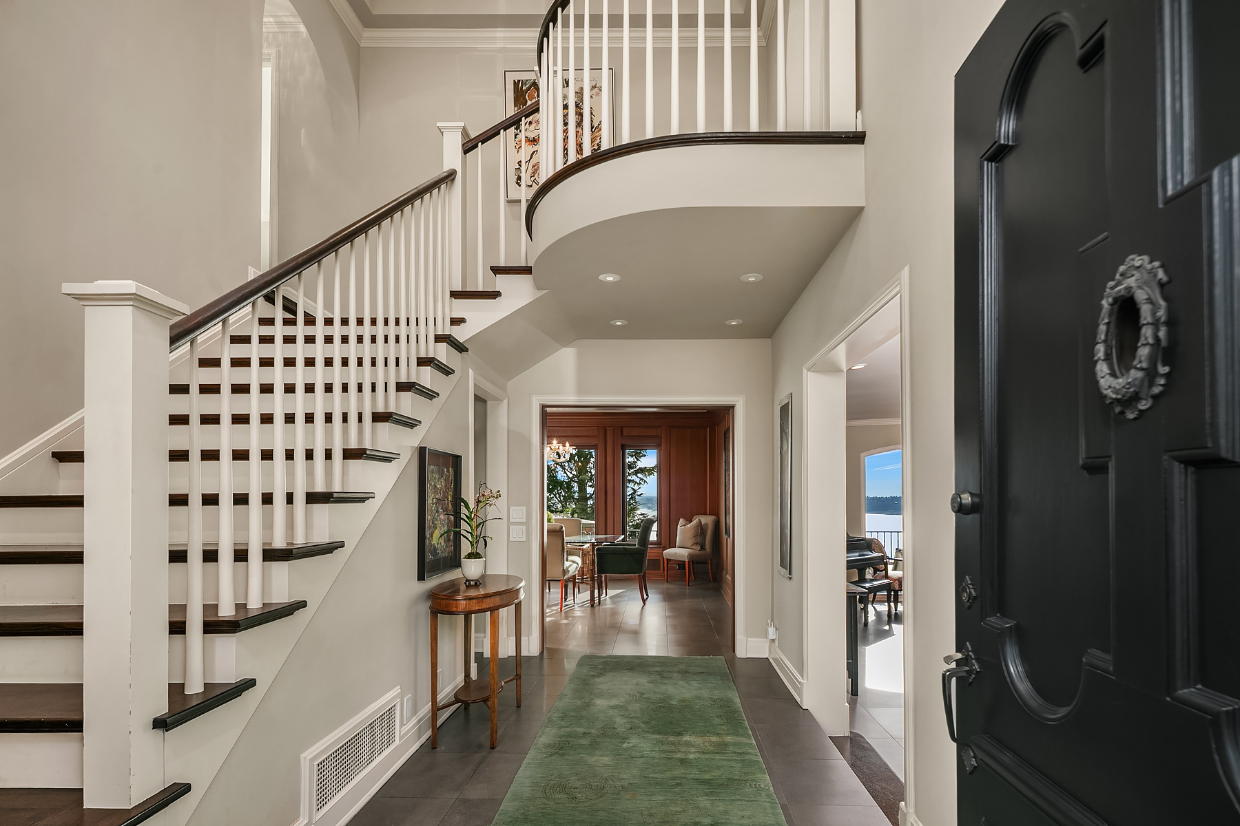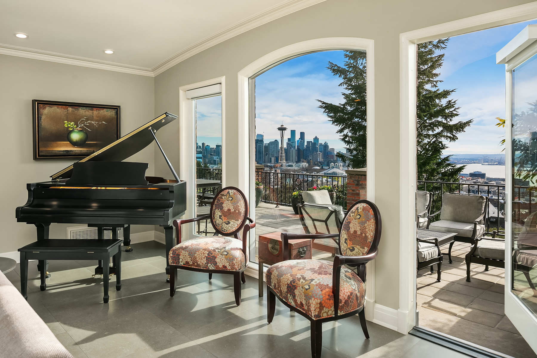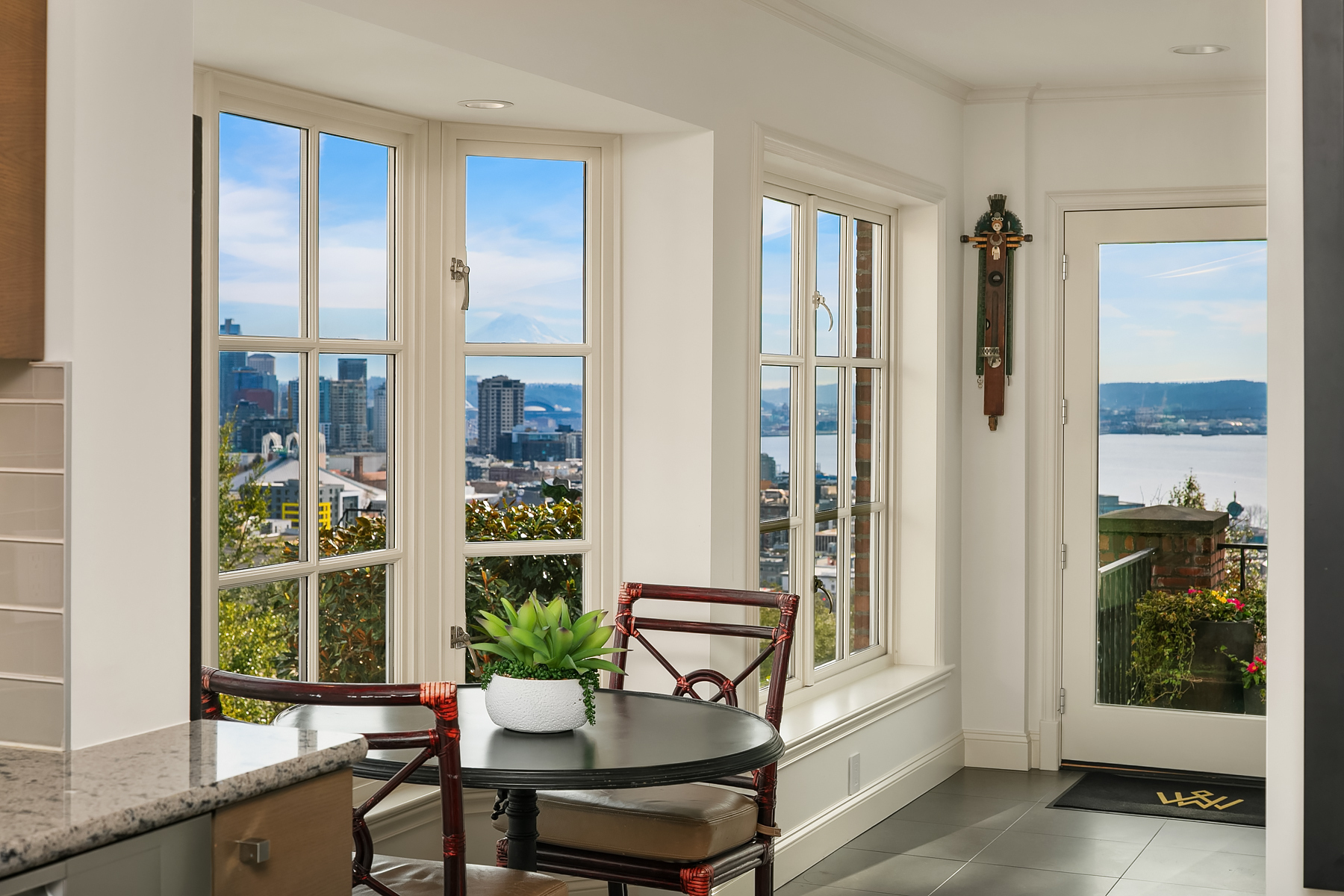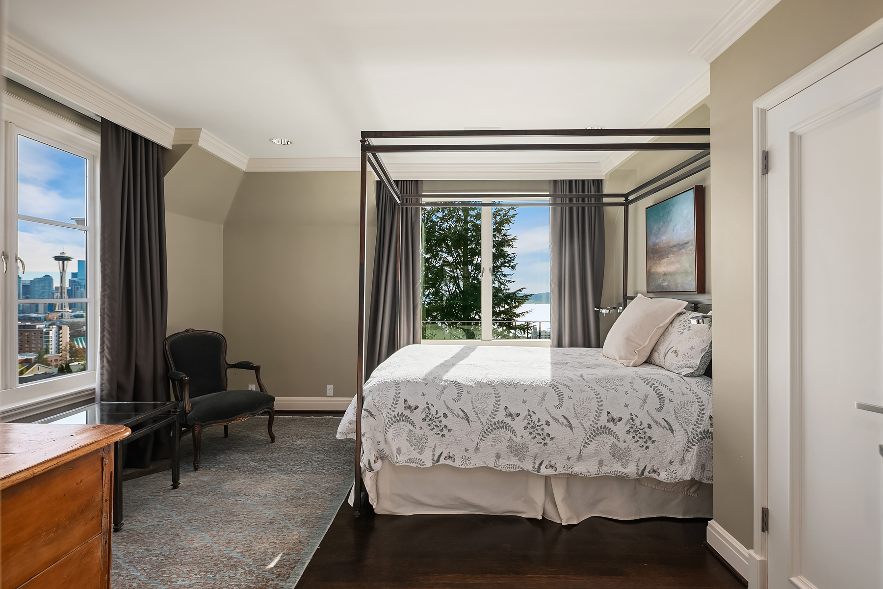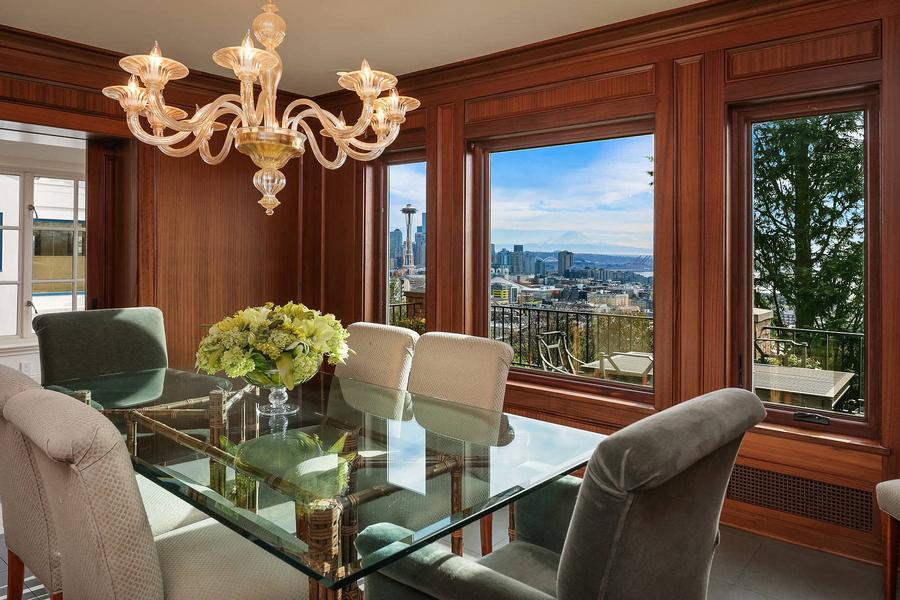 A stunning South Slope residence, thoughtfully refreshed and updated, this classic 1930 Georgian Revival blends historic elegance with contemporary luxury. Distinguished by brick walls, a slate roof, and a columned portico, the home underwent an extensive remodel in 2012 with additional improvements since, resulting in refined interiors, luxury finishes, and modern systems throughout. A dramatic two-story entry welcomes you into light-filled living spaces, including a sophisticated living room with a granite trimmed fireplace and French doors opening to a view terrace. The chef’s kitchen is equipped with top-tier appliances and premium surfaces, ideal for both daily living and entertaining.The home offers four bedrooms and 3.5 baths, including a serene primary suite, along with an office and a media room with fireplace. Expansive outdoor terraces capture breathtaking, panoramic views of downtown Seattle, Puget Sound, Mt. Rainier, Blake and Bainbridge Islands. Additional features include air conditioning, an attached two-car garage, abundant storage, and generous outdoor living areas. Listed on the Seattle Historical Sites Registry, the iconic Robert Moody House is a rare opportunity to own a piece of Seattle history in one of its most sought-after view locations.