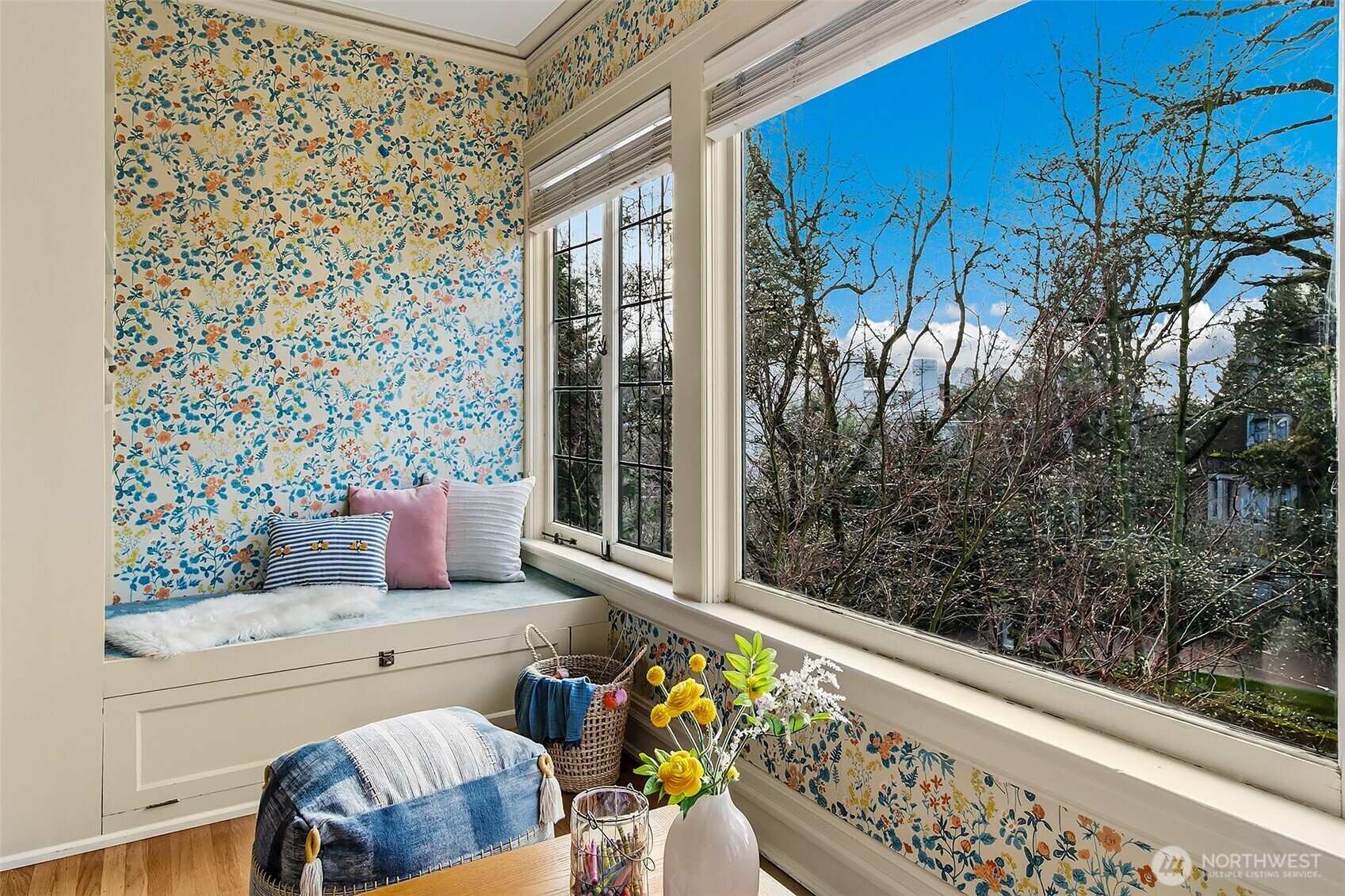Graciously set in Capitol Hill’s storied Harvard-Belmont enclave, this grand 1906 Craftsman is both legacy estate and enduring residence. Set on an extraordinary 15,000-square-foot lot, it reflects an era when Seattle’s leading citizens built with vision, permanence, and artistry. Spanning three finished levels above grade, the home balances historic integrity with thoughtful modernization. Public rooms unfold in measured succession ~ formal, yet unforced. Original millwork, generous proportions, and divided-light windows define the interiors and affirm the home’s architectural pedigree, complemented by carefully integrated updates that support contemporary living. A JAS–renovated kitchen introduces refined precision, aligned with the structure’s historic material language. A light-filled two-story stairwell rises to a broad second-floor landing, leading to additional bedrooms, baths, and a private office. Along the north elevation, the primary suite spans east to west across three rooms and a full bath, capturing steady daylight and maintaining separation from the principal gathering spaces. The top level reveals an expansive former gymnasium reimagined as a family room, accompanied by guest quarters, a full bath, and storage. Elevated above the street, the expansive, mature grounds and layered plantings provide rare privacy and quiet command—an estate-scale presence seldom found within the city.